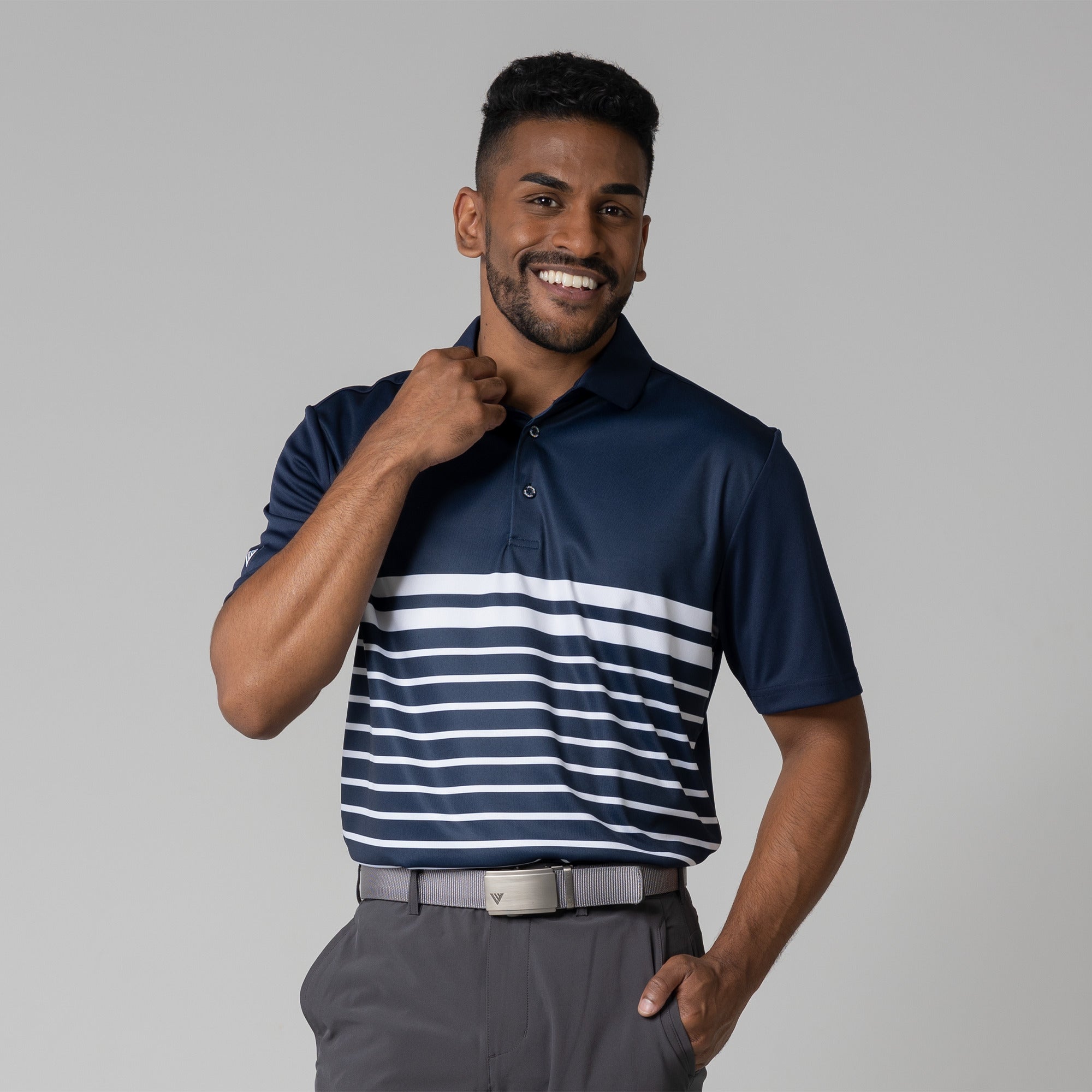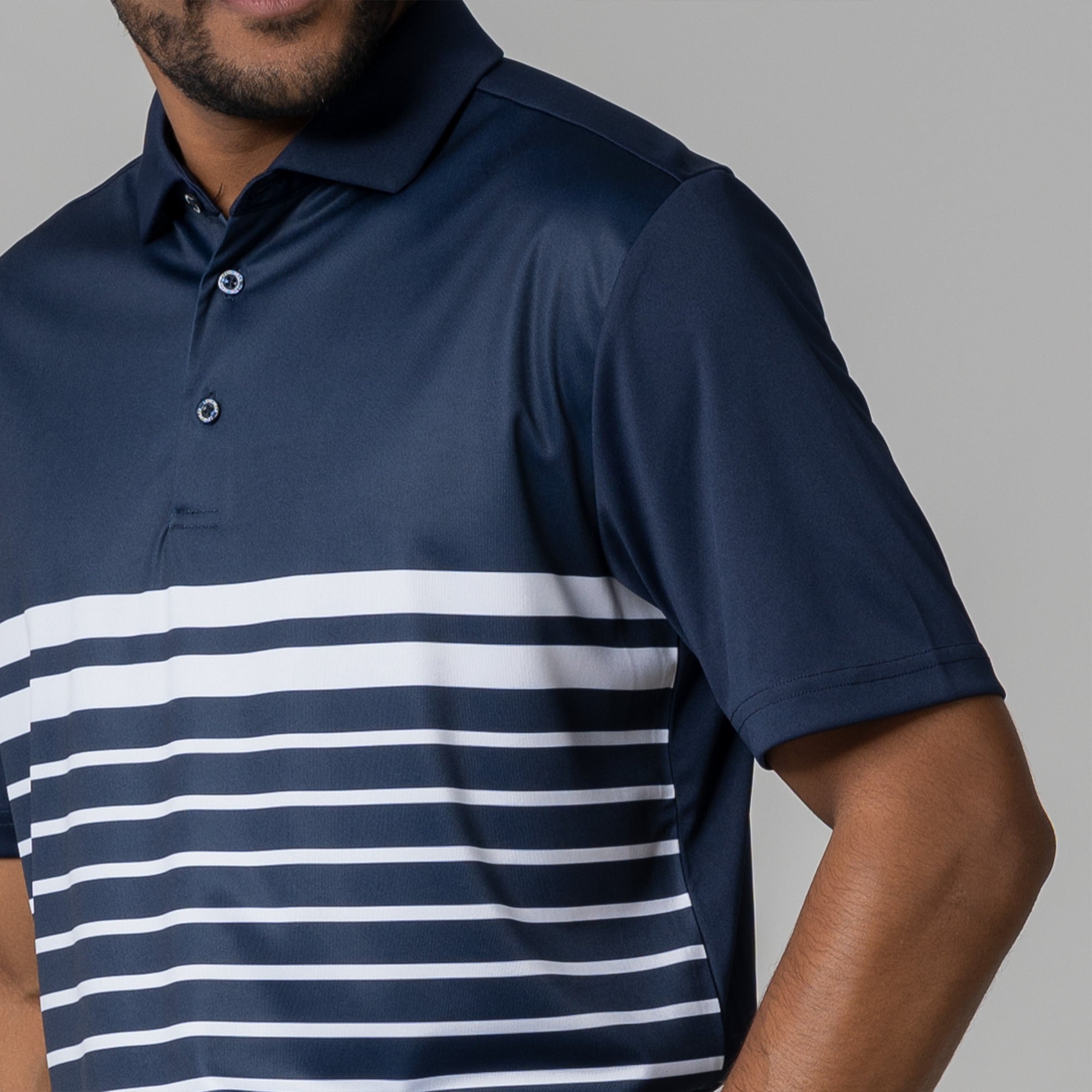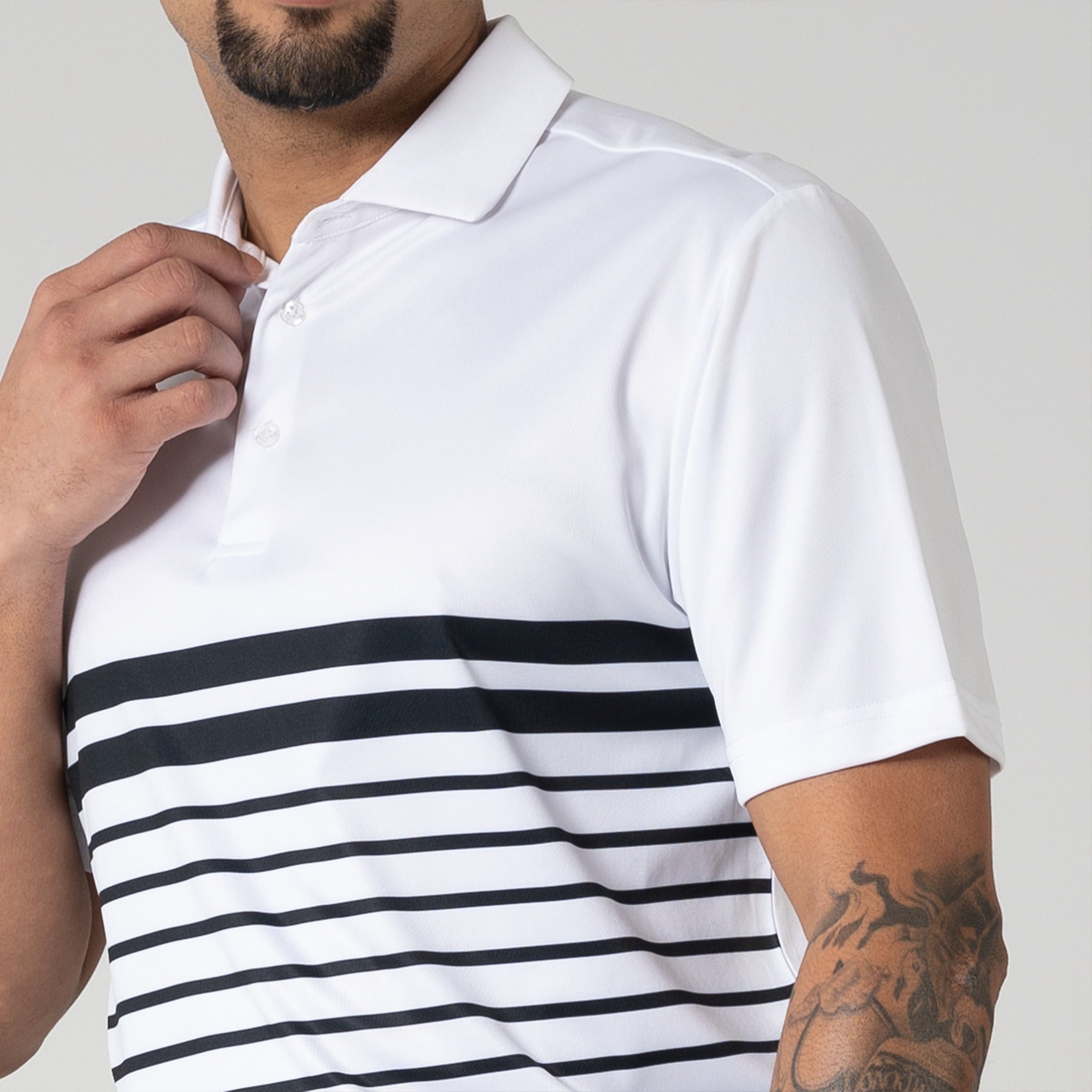 The Draft polo is made from 100% polyester to ensure durability and comfort during any activity. This polo features advanced moisture-wicking technology that efficiently removes sweat from the skin, keeping you dry and comfortable during intense physical activities or casual wear. It also benefits from anti-static properties, preventing the fabric from clinging and ensuring a smooth, comfortable fit throughout the day. The design is highlighted by stylish printed stripes that add a modern flair, while the premium collar stay keeps the shirt looking crisp and professional. Ideal for sports enthusiasts and anyone with an active lifestyle, the Draft Polo is designed to support peak performance while maintaining a sharp, clean appearance.
