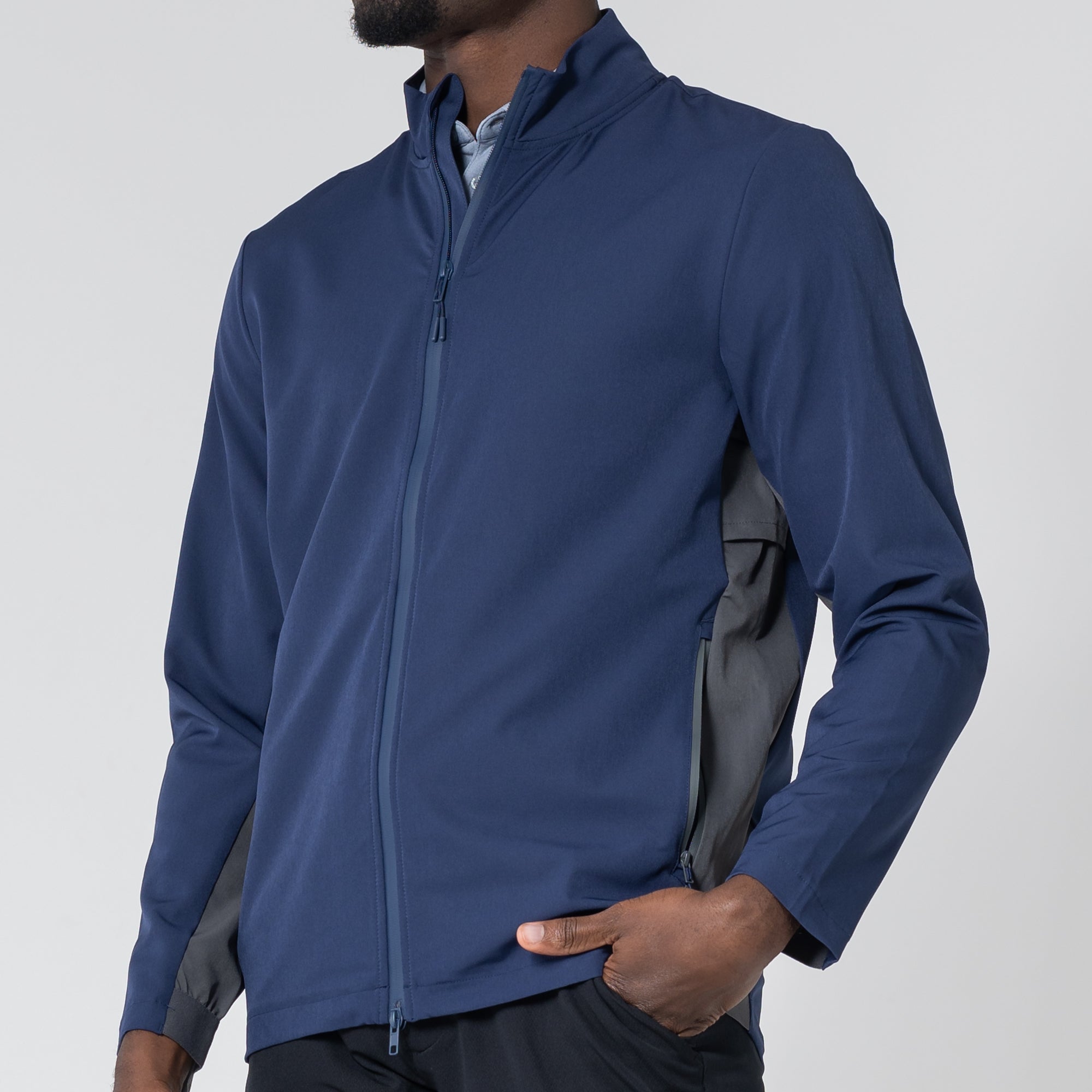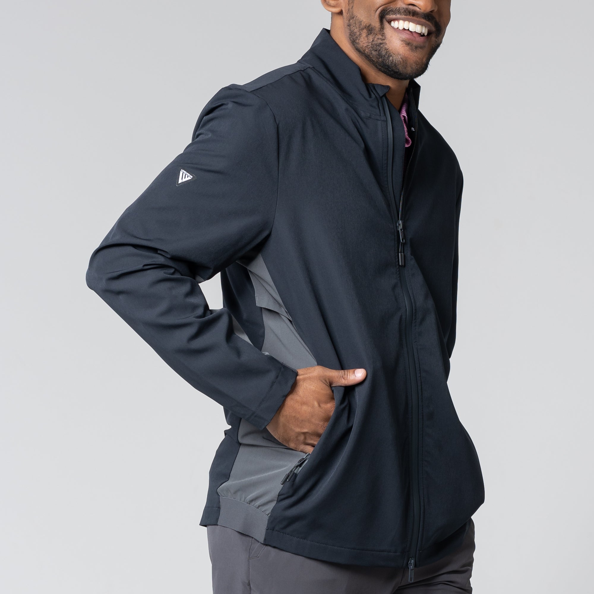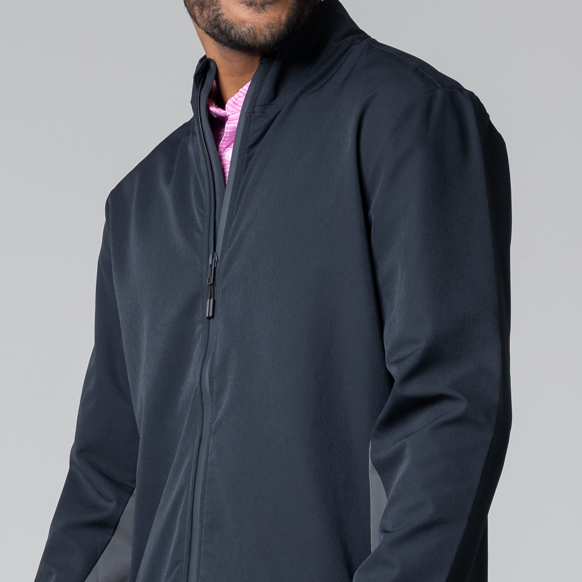Keep the swings coming in cooler weather with the Harrington full-zip jacket. This jacket's poly-spandex fabric offers a lightweight feel and built-in stretch that's a breeze to move in, with underarm vents for increased breathability.