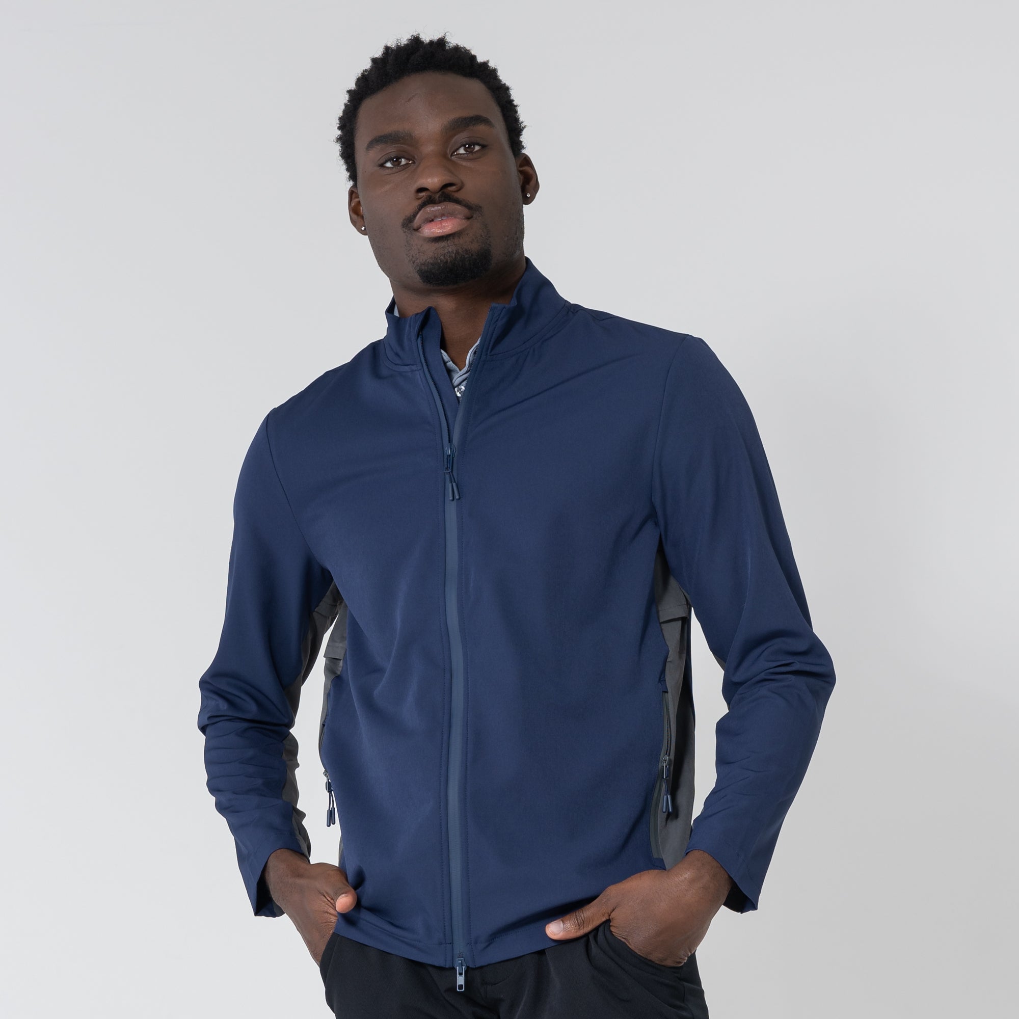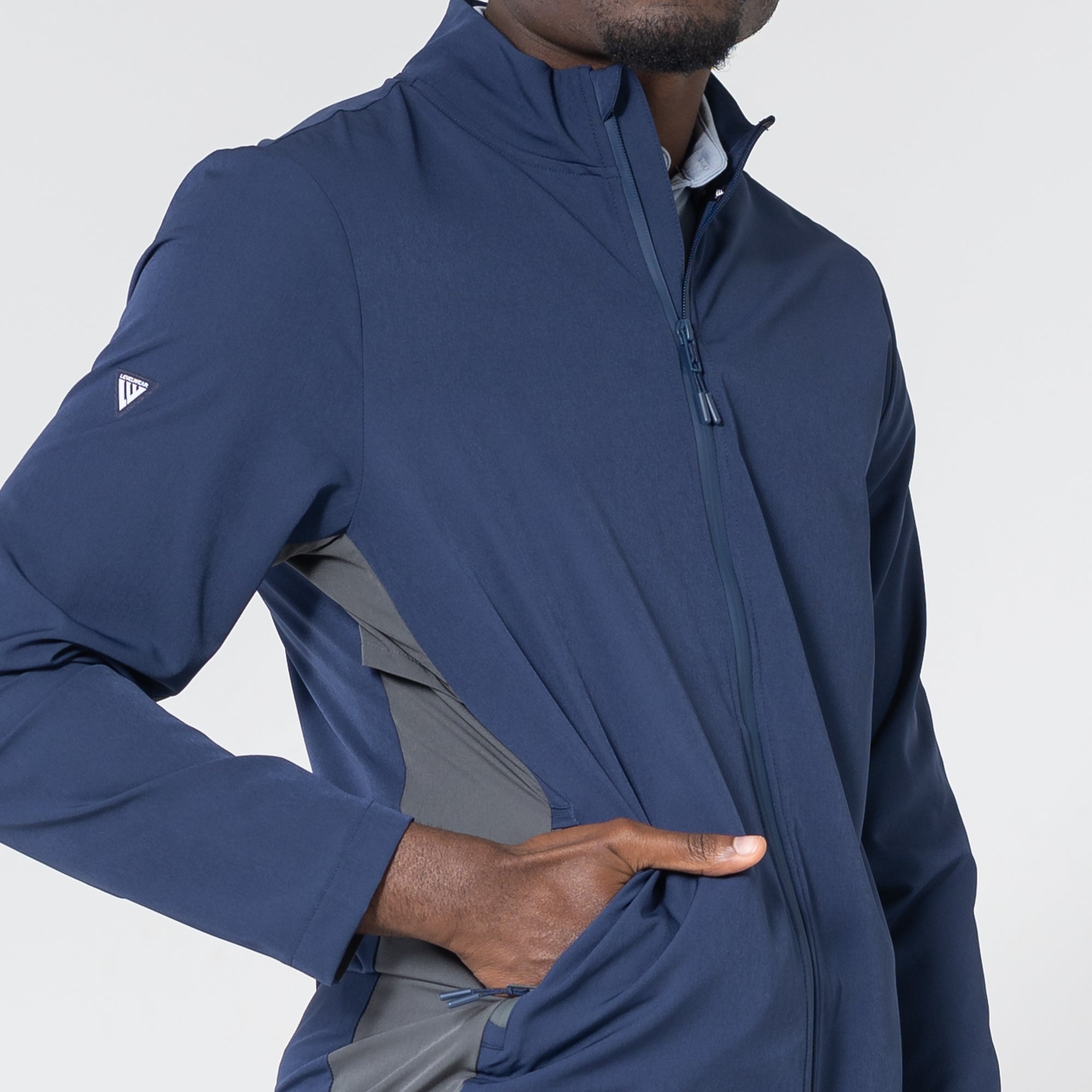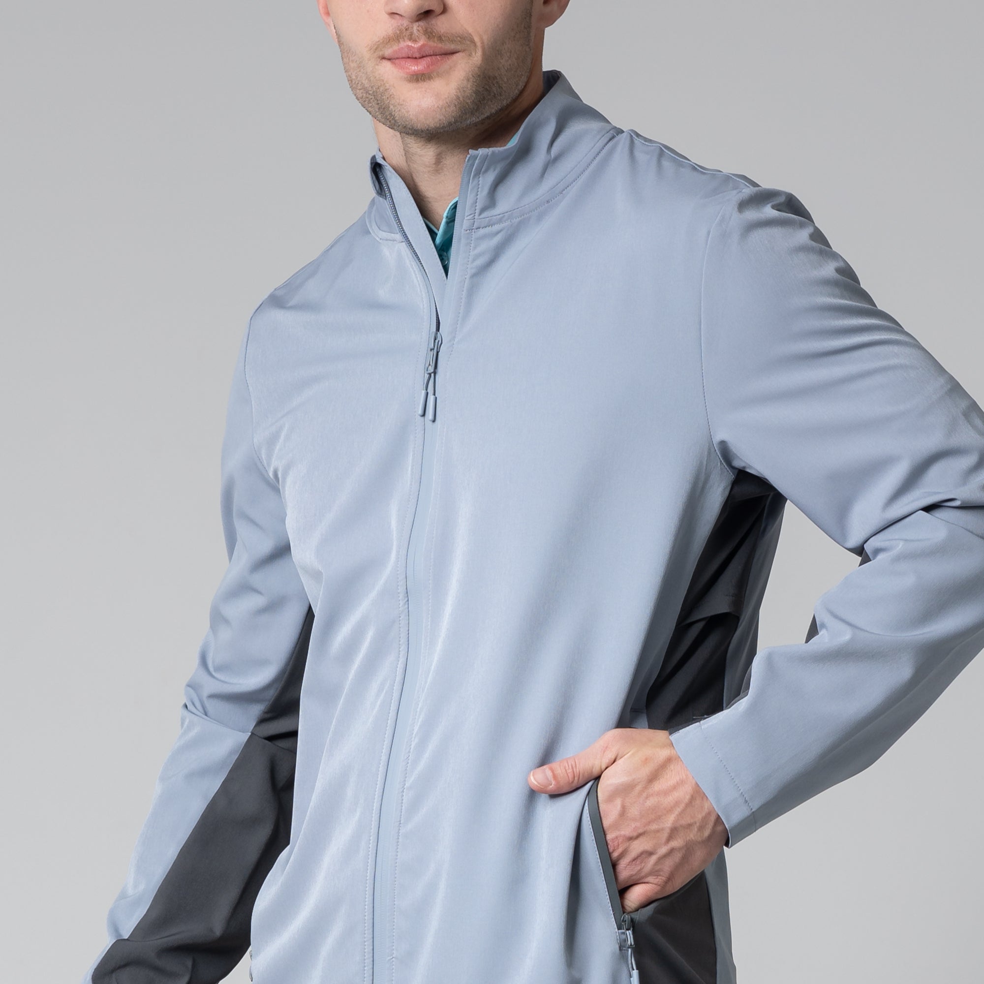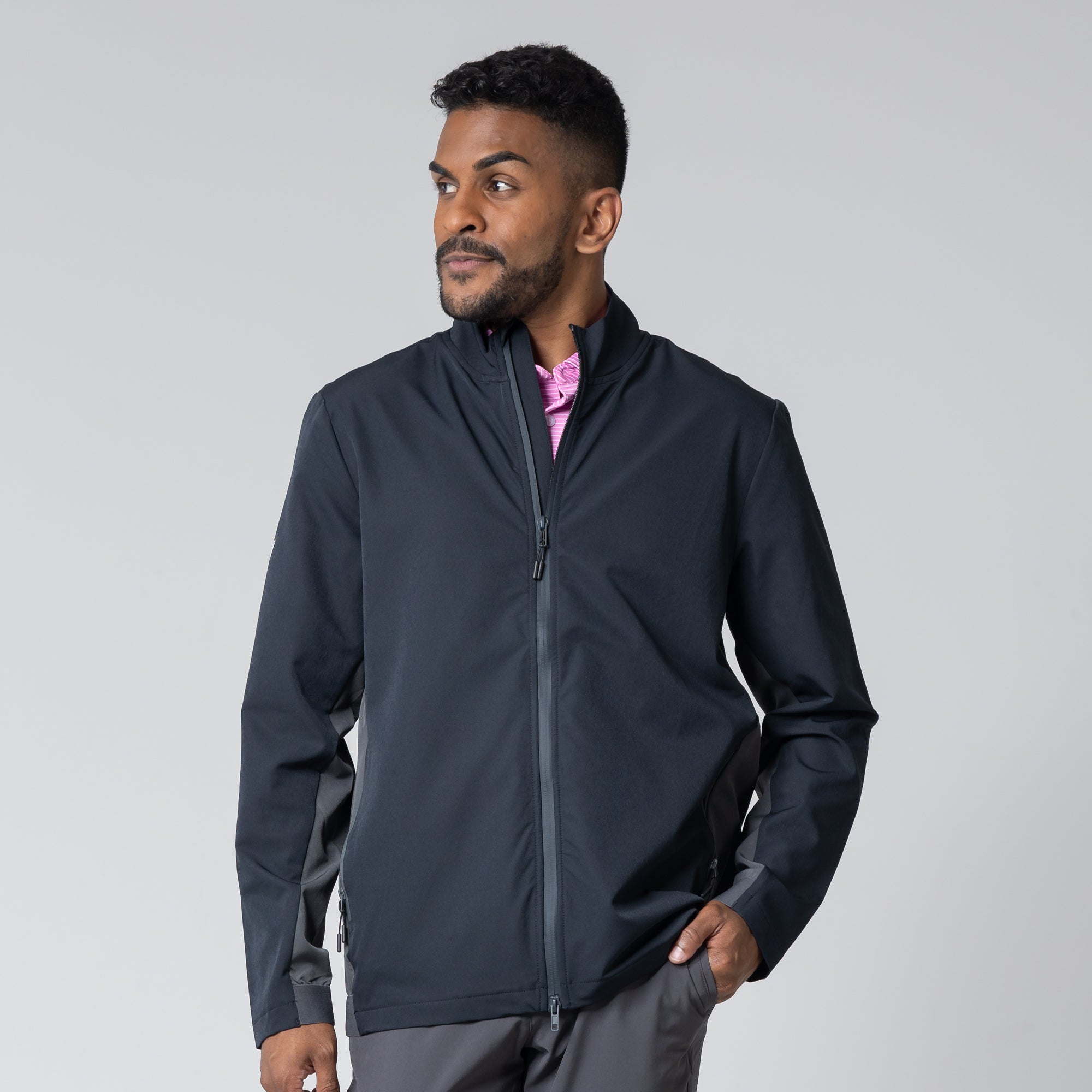 Keep the swings coming in cooler weather with the Harrington full-zip jacket. This jacket's poly-spandex fabric offers a lightweight feel and built-in stretch that's a breeze to move in, with underarm vents for increased breathability.