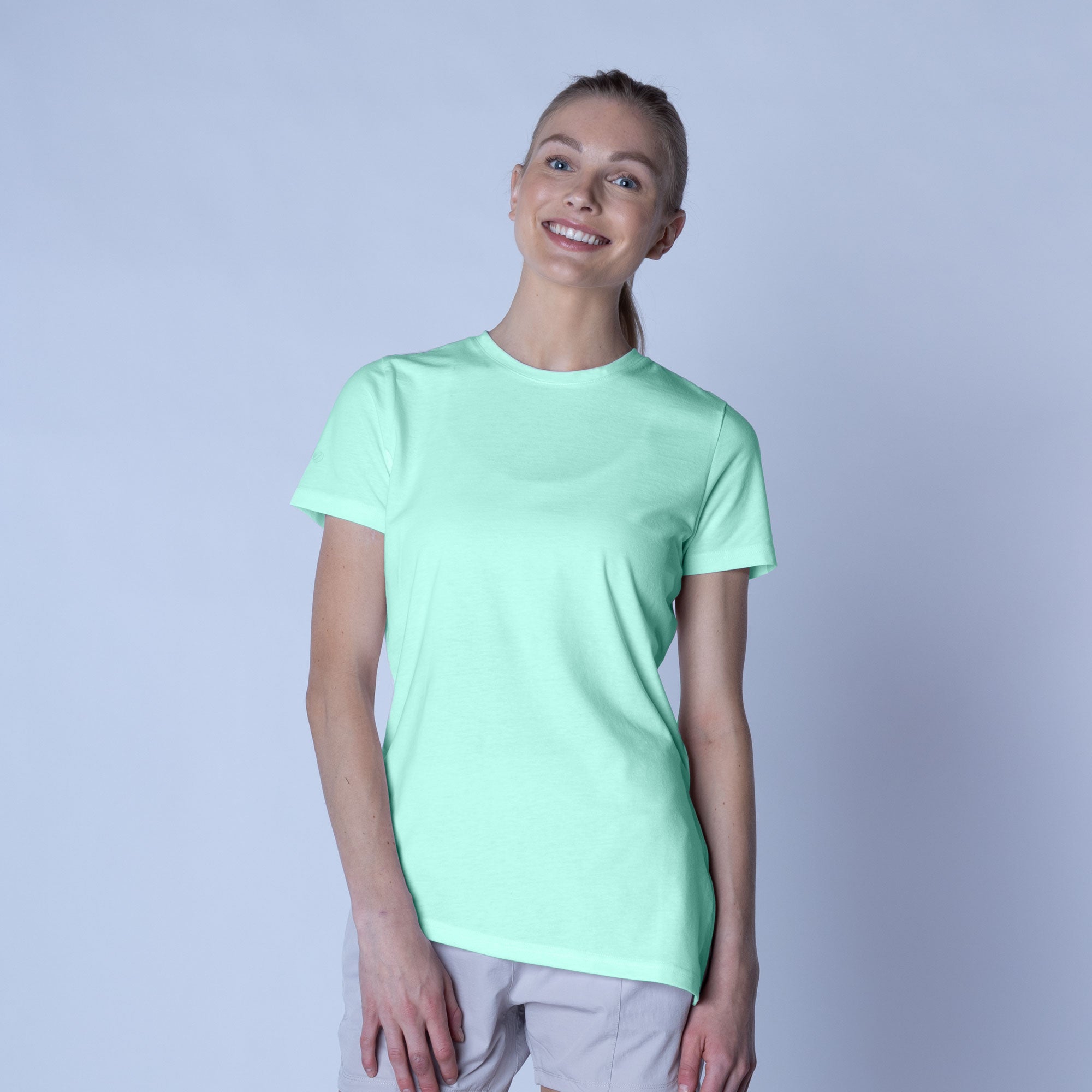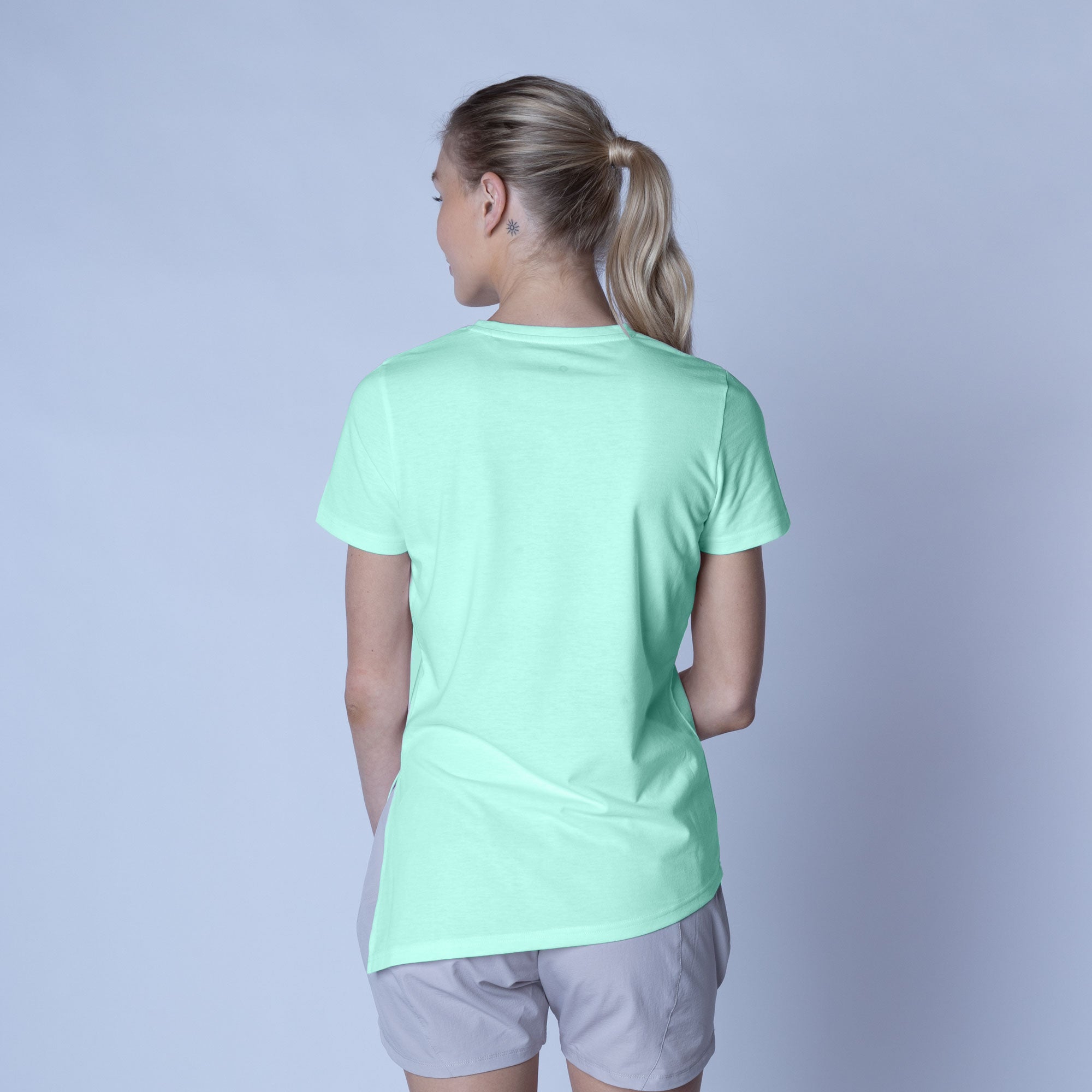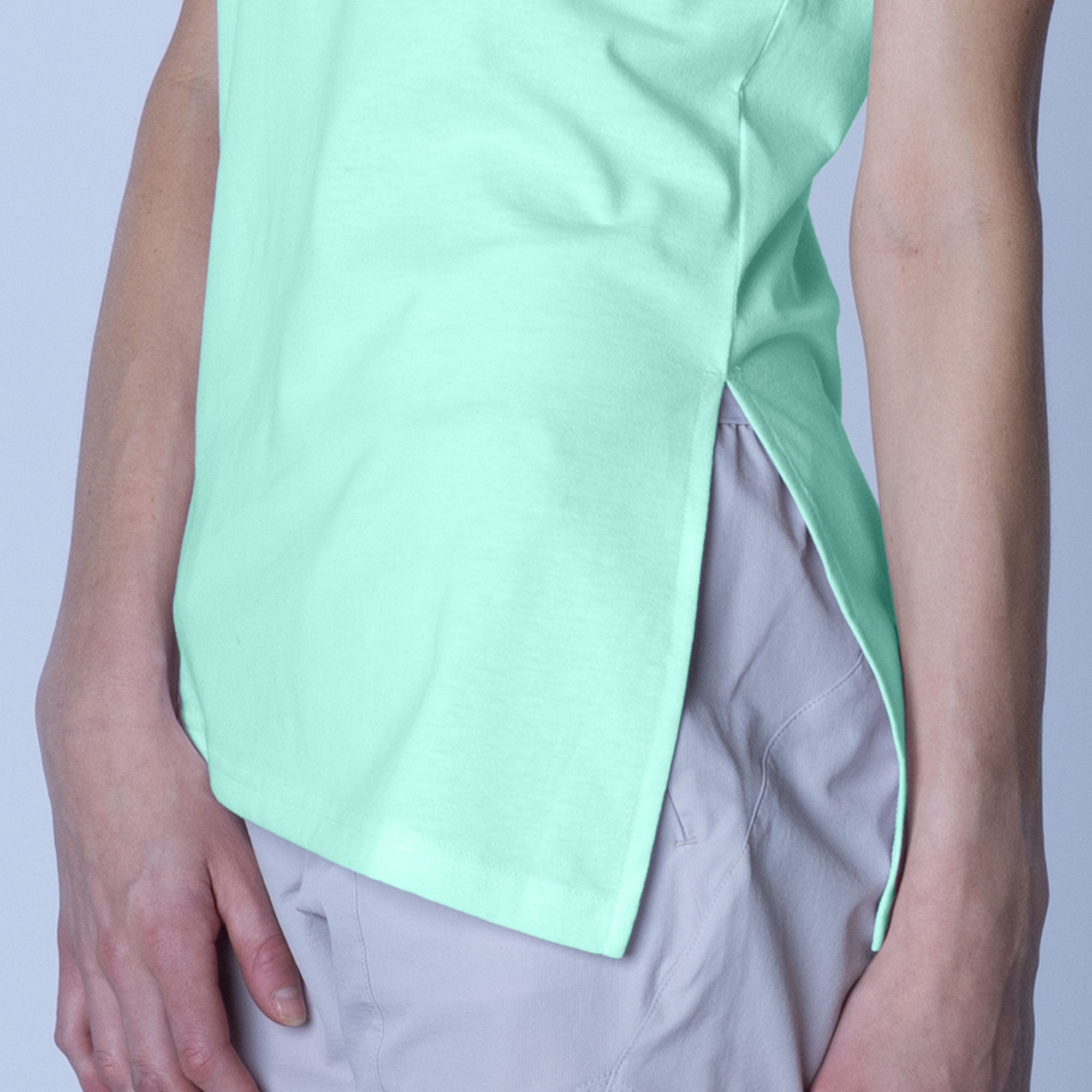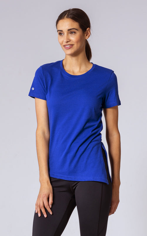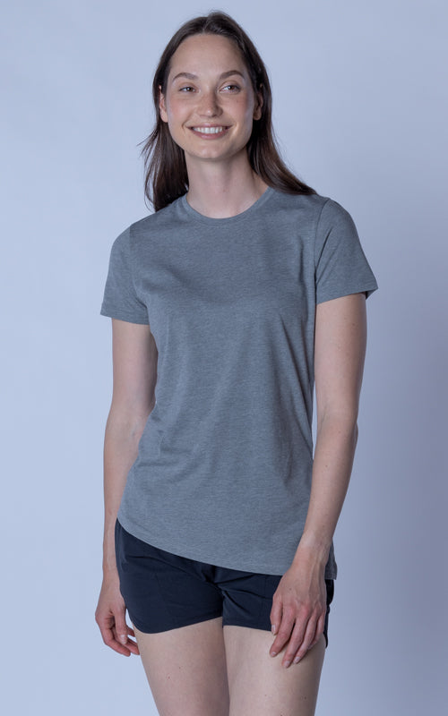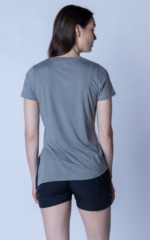 The Birch t-shirt offers a unique twist on the classic crew neck design, combining casual elegance with functional style. Made from a soft blend of 65% polyester and 35% cotton, this t-shirt provides a comfortable feel with the added benefit of performance-ready fabric. The standout feature is its asymmetrical hem with a long side slit, which introduces a touch of flair and versatility to your wardrobe. You can wear it open for a relaxed, flowing look or tie it at the side for a more defined silhouette. Perfect for both active and leisurely days, the Birch T-Shirt is designed to keep you comfortable while offering multiple styling options.