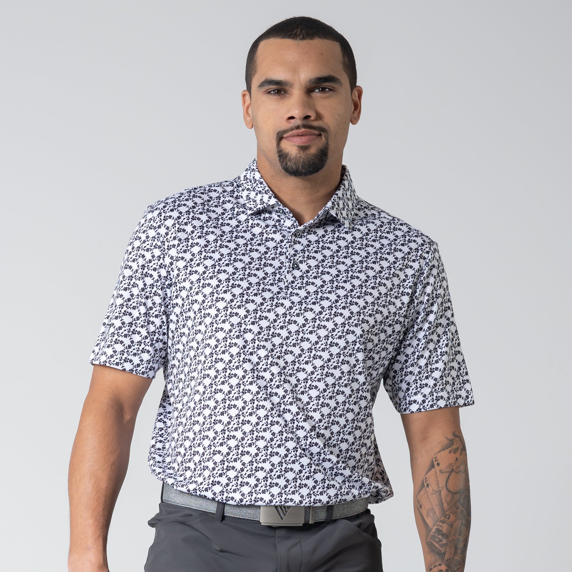 Bold patterns meet performance design with the Sentry golf polo. Featuring lightweight fabric, a comfortable self-fabric collar and easy-fitting forward shoulder seams that let you line up your swings without restriction.