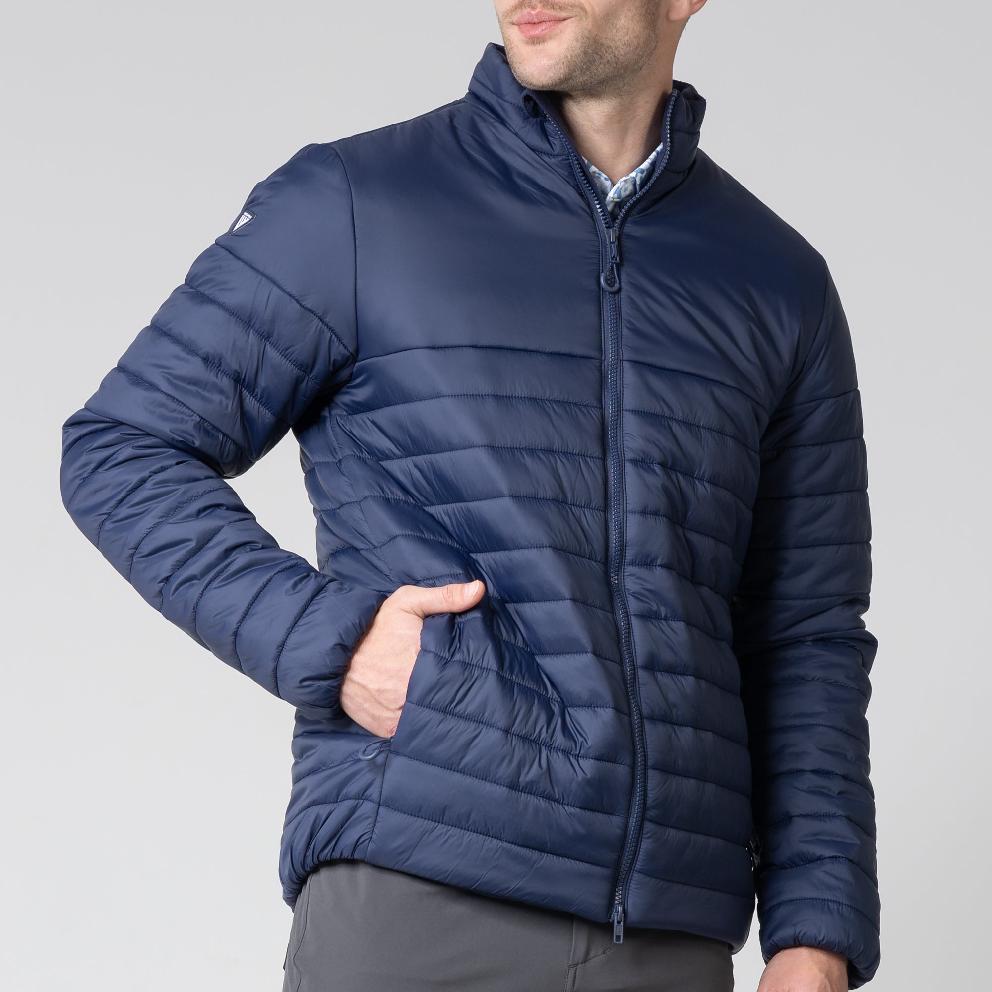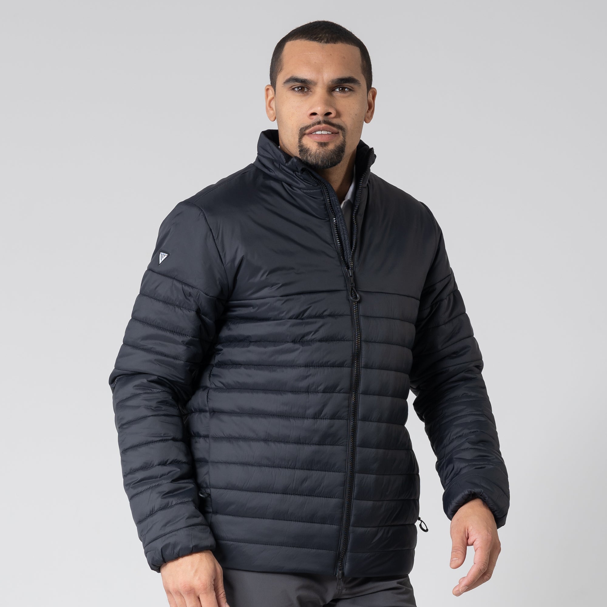 Keep moving in cooler temperatures with the Stealth men's jacket. This jacket is equipped with quilted insulation for added warmth and a soft brushed interior. Move hands-free with zippered pockets for your belongings, and easily adjust this elasticated hem for a tailored fit.