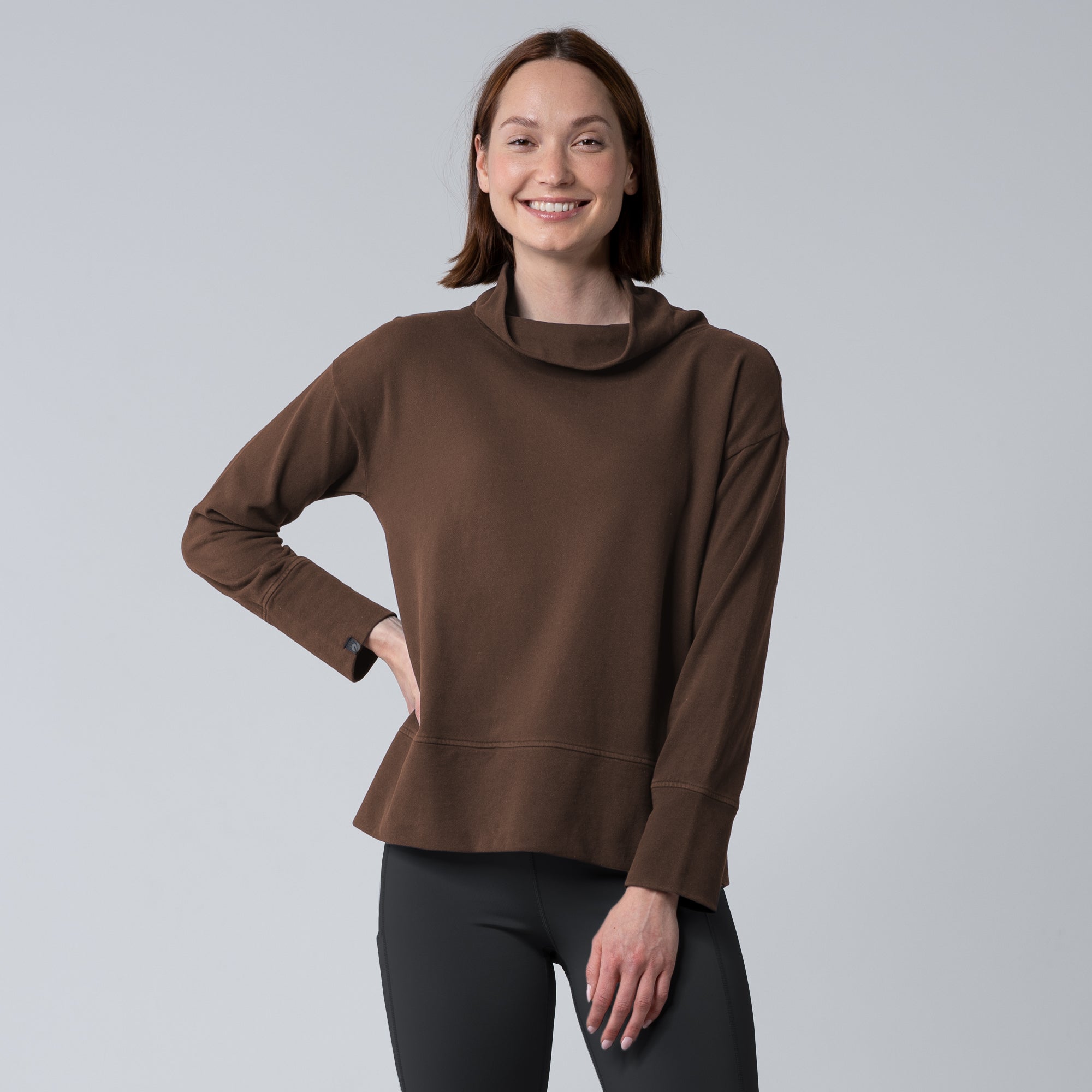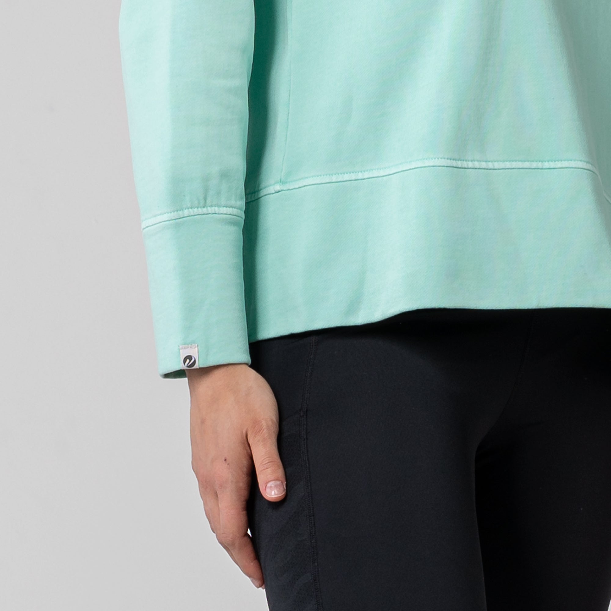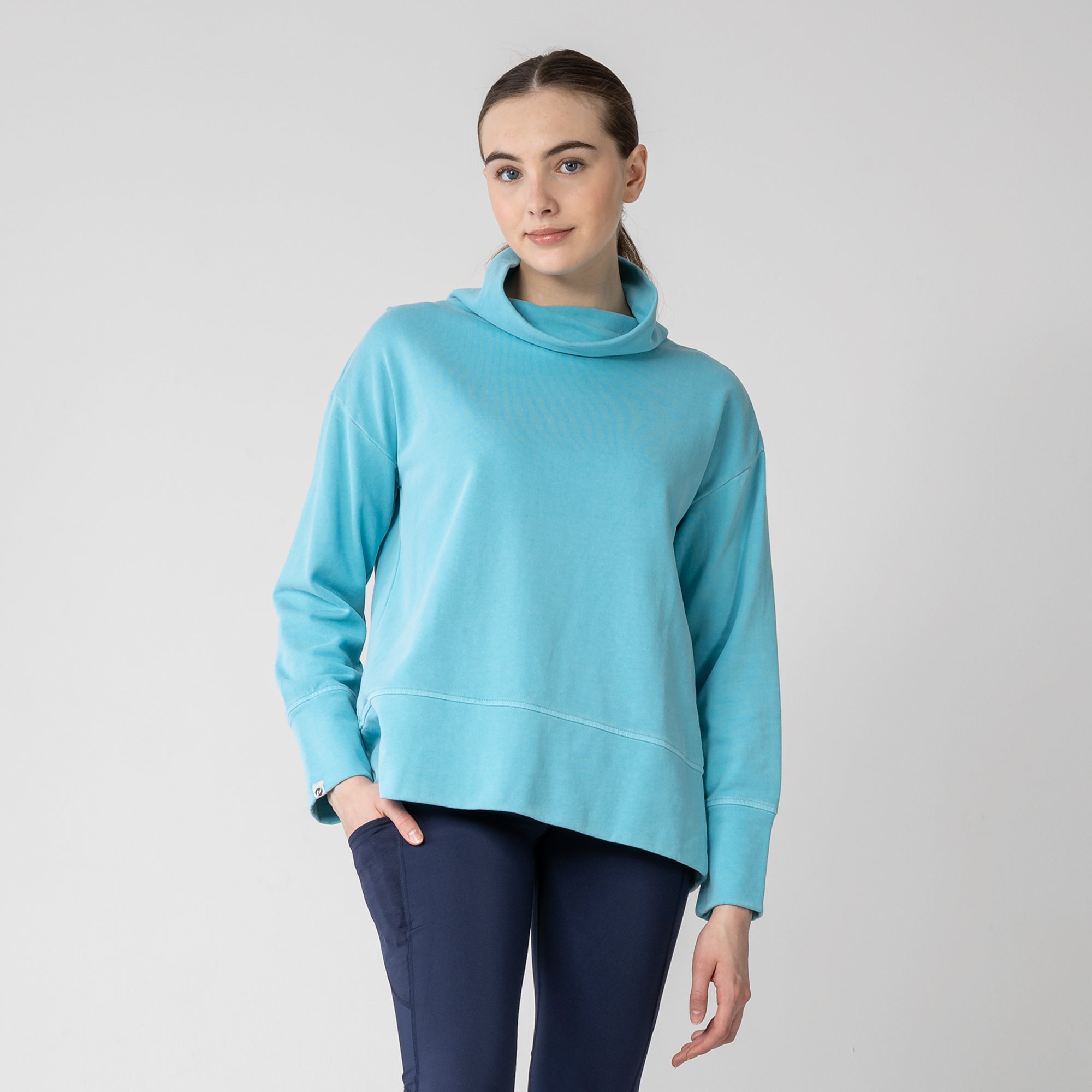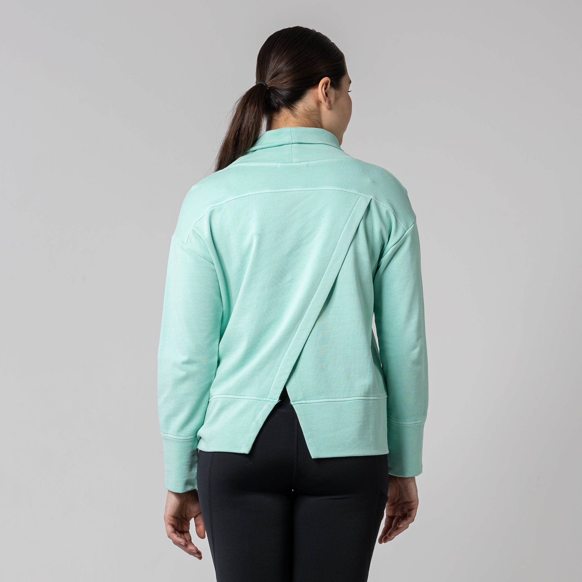 Warmth, style and comfort. The Sunset Pullover does it all. This women’s golf polo features an asymmetrical back slit opening, cozy mock neck, and a comfy drop shoulder. Wear it on the golf course for added warmth, then wear it after the golf course for whatever your night has in store.
