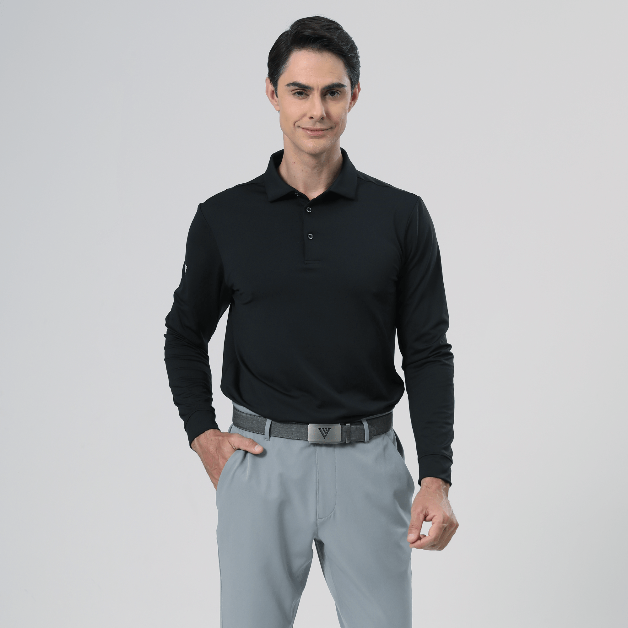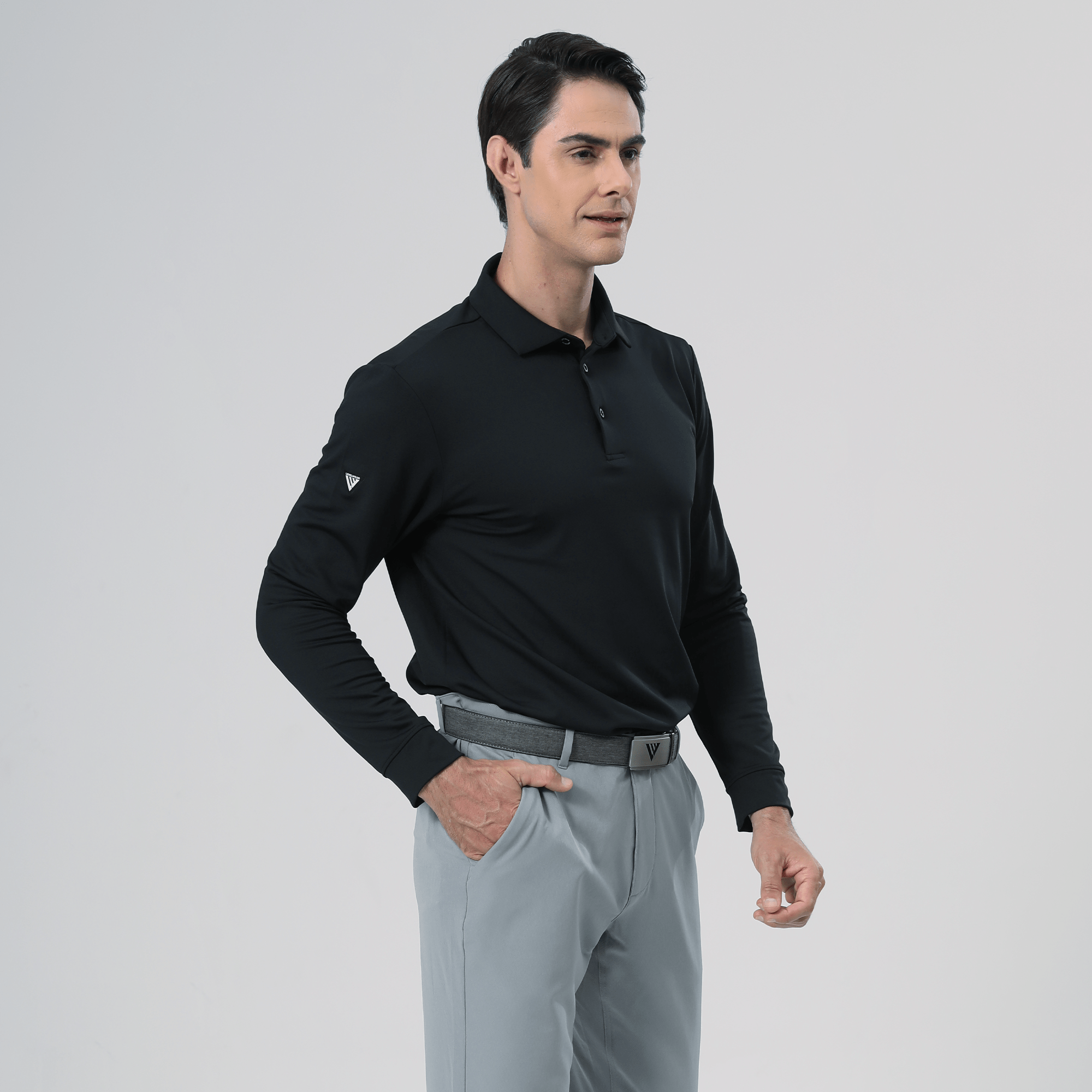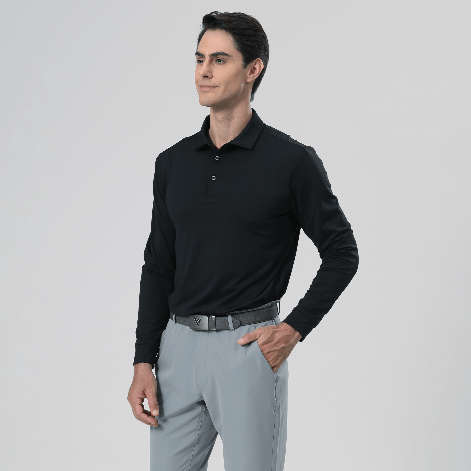 Take to the golf course in the men's Align polo, a top engineered to support peak performance under any conditions. Made from a blend of 91% polyester and 9% spandex, this polo offers exceptional stretch and comfort, ideal for the dynamic movements of the game. It features advanced moisture-wicking technology to ensure you stay dry, anti-bacterial properties to keep the fabric fresh, and UPF 50+ protection to block out harmful UV rays. The self-fabric collar with built-in collar stay and self-fabric sleeve cuffs ensure a sharp, structured look throughout your round. The high-low hem with side slits adds a modern touch and enhances mobility, making the Align Polo a perfect fusion of function, comfort, and style for any serious golfer.