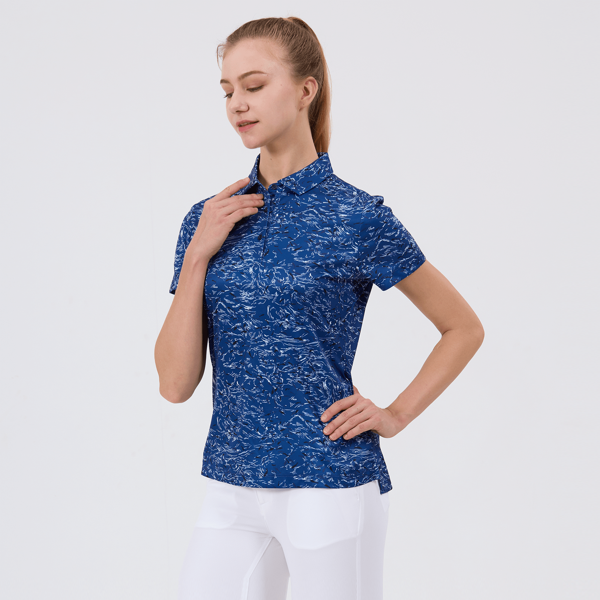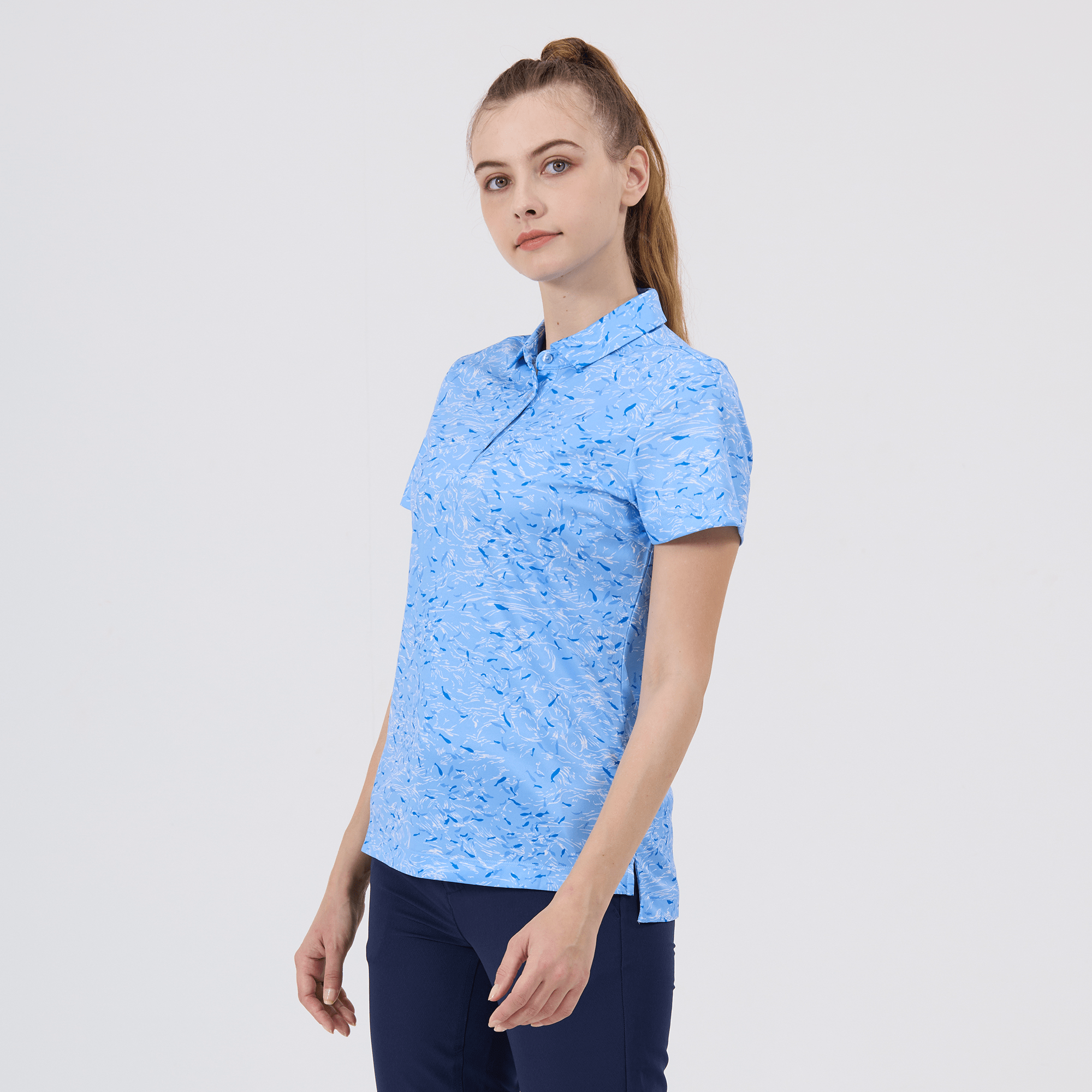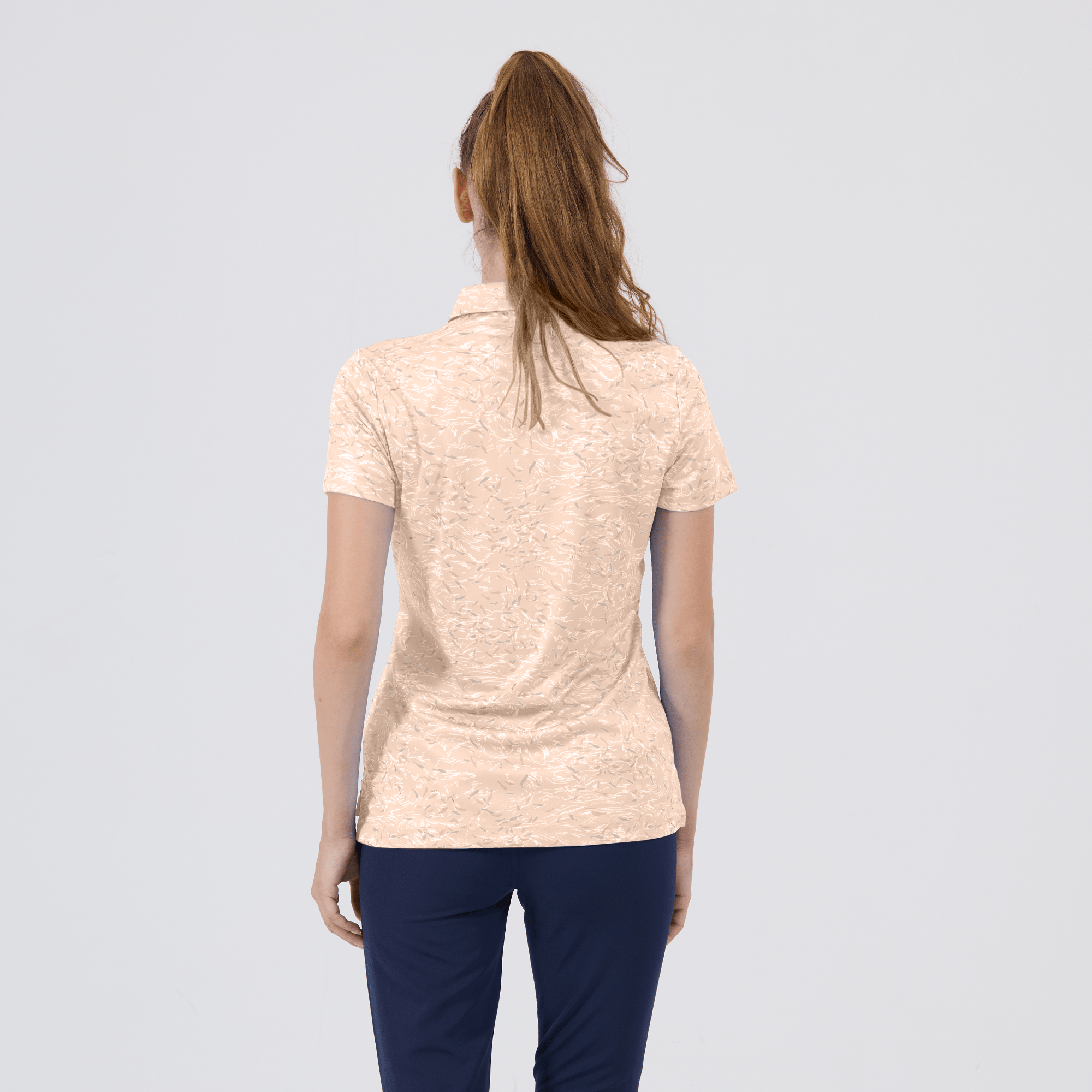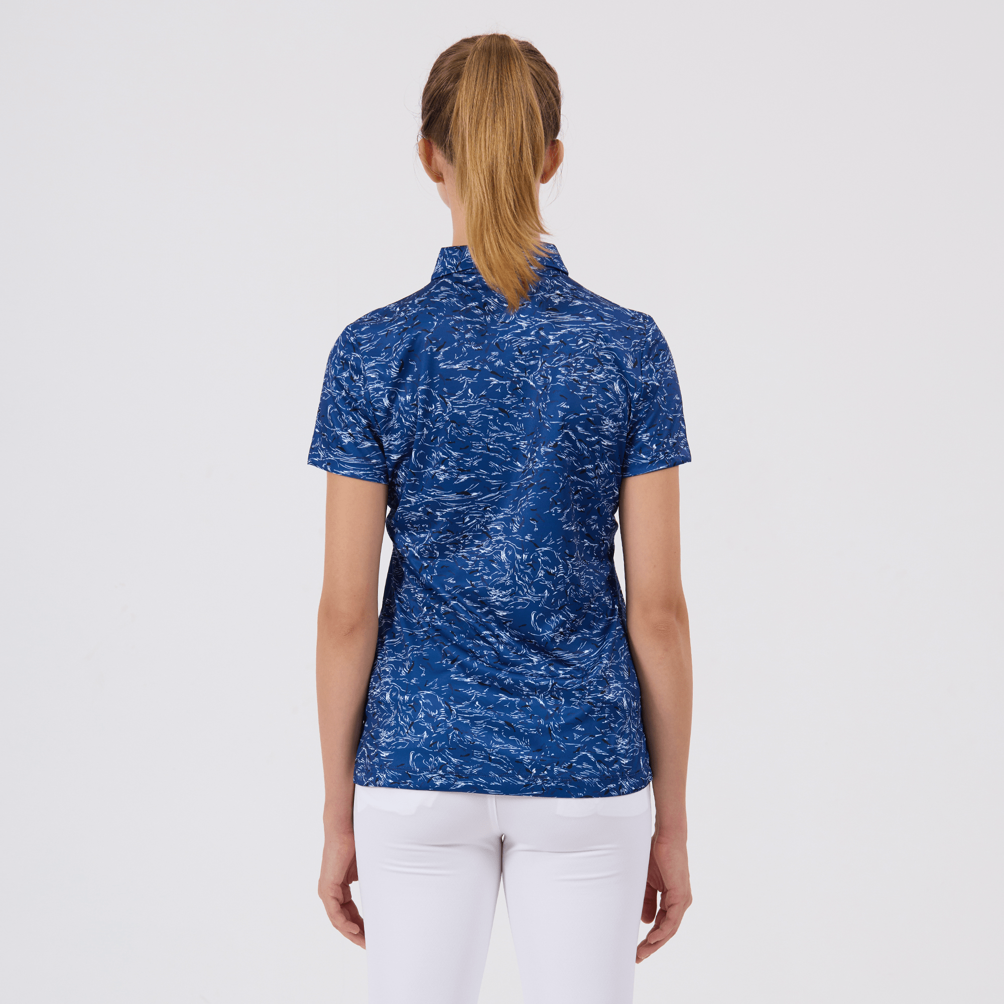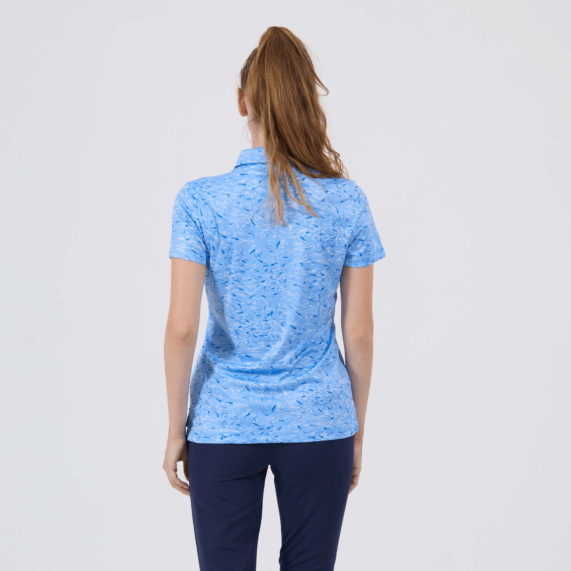 Refine your golf wardrobe with the women's Koi polo, tailored specifically for those who value sustainability and a sophisticated look on the course. This polo is meticulously crafted from 100% recycled polyester, highlighting our dedication to environmentally conscious fashion without sacrificing quality. It features moisture-wicking technology that effectively absorbs and evaporates sweat, ensuring you stay dry from the first tee to the last green. The self-fabric collar with built-in collar stay keeps your look sharp and polished, while forward shoulder seams promote ease of movement. The high-low hem with side slits offers a flattering fit and enhanced mobility, complemented by a vibrant all-over print that makes a striking statement on the green. Ideal for both casual rounds and competitive play, the Koi polo embodies a sophisticated blend of eco-friendly practices and detailed craftsmanship.