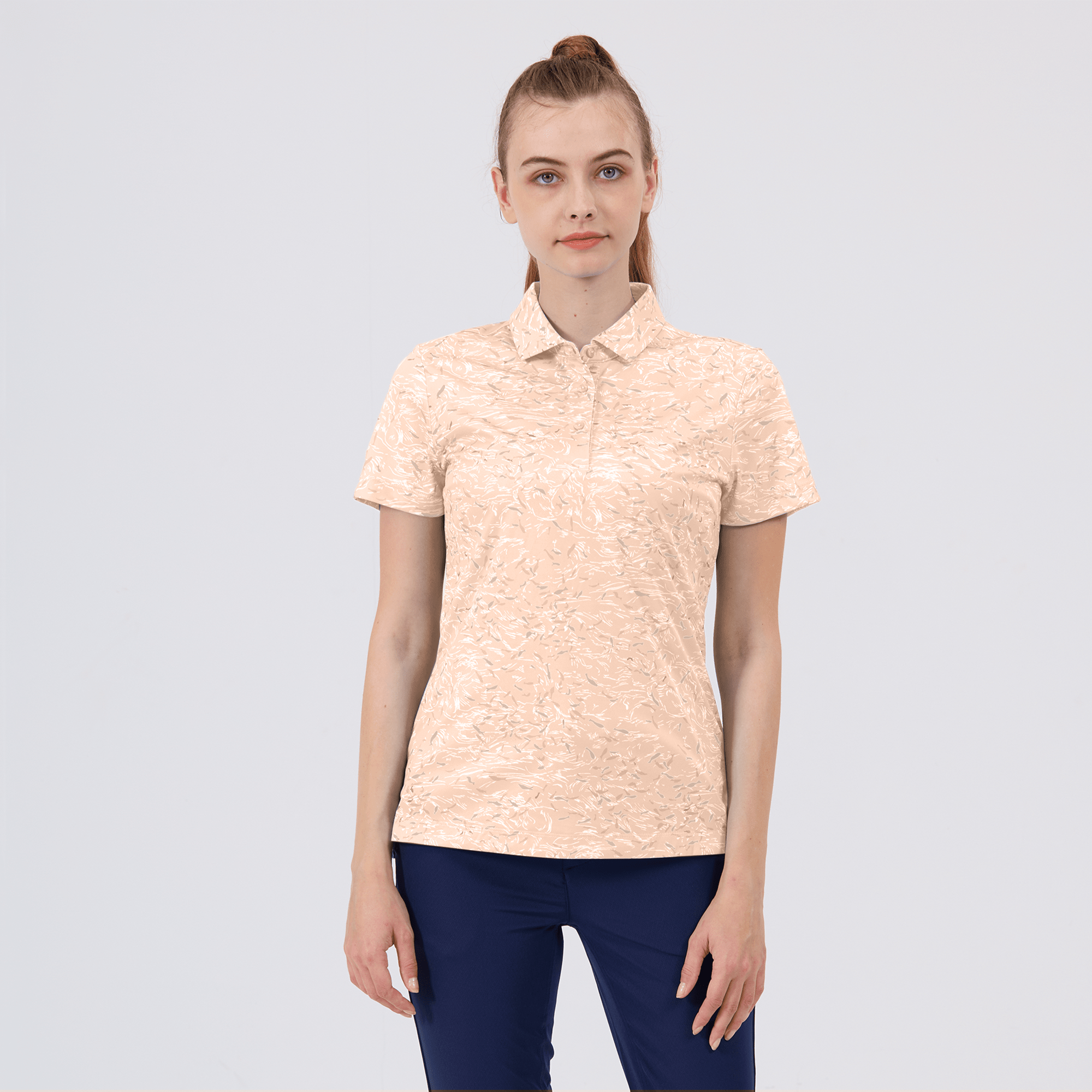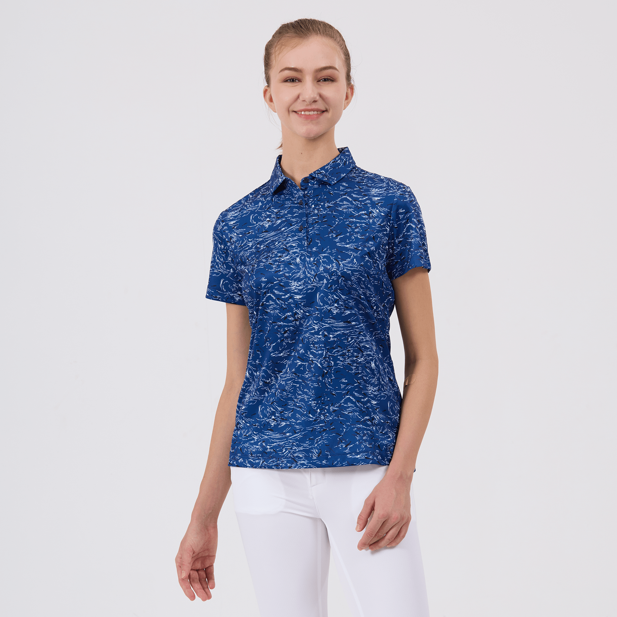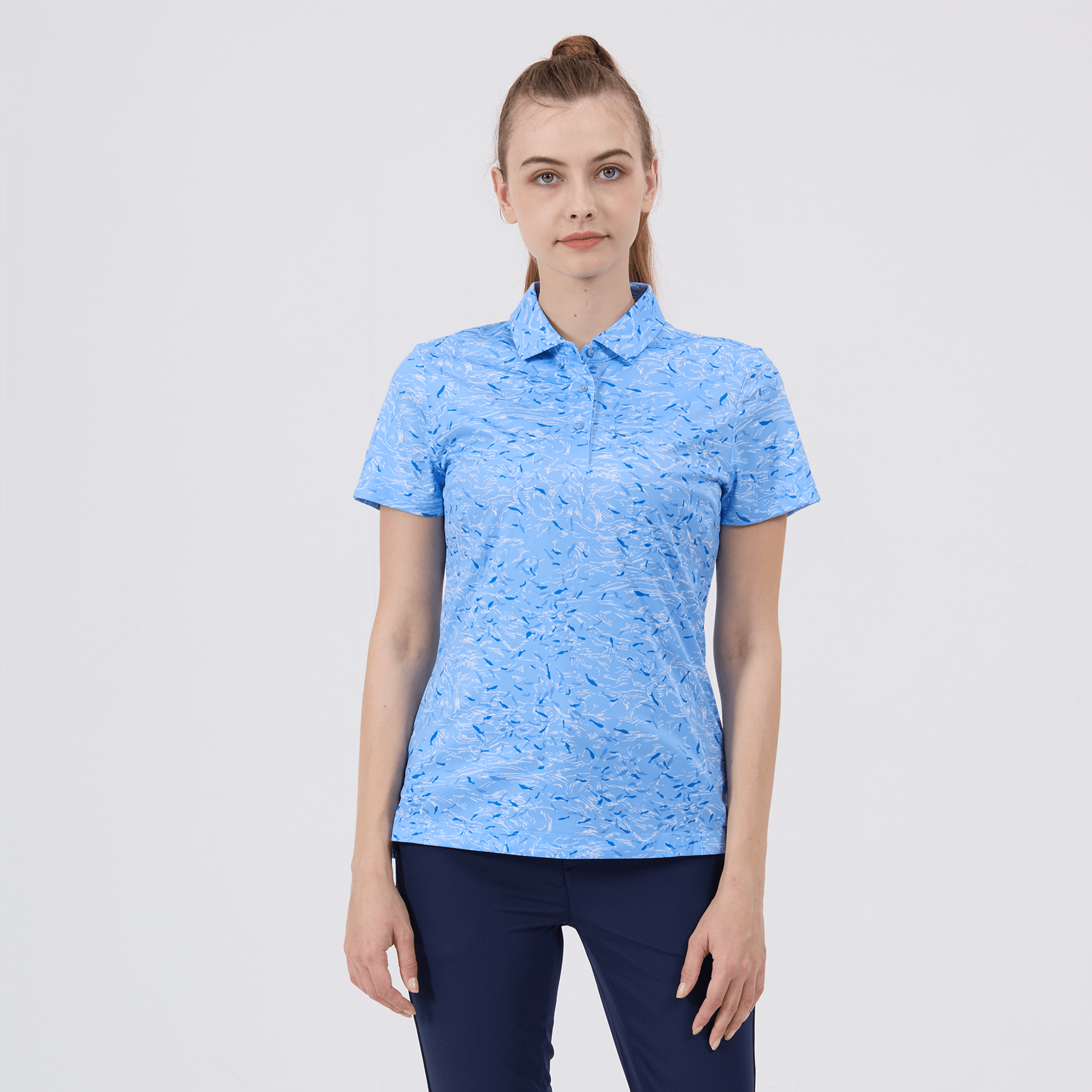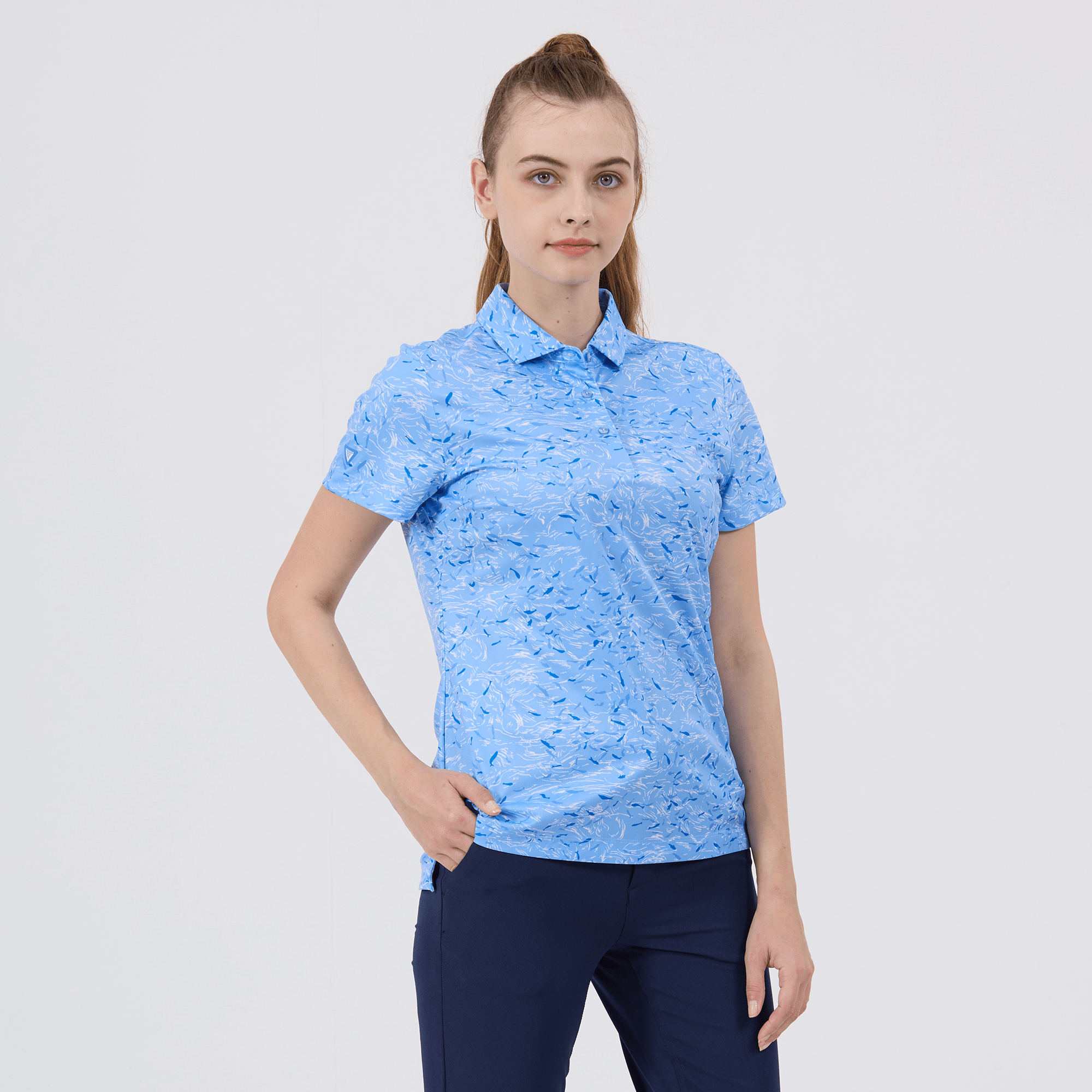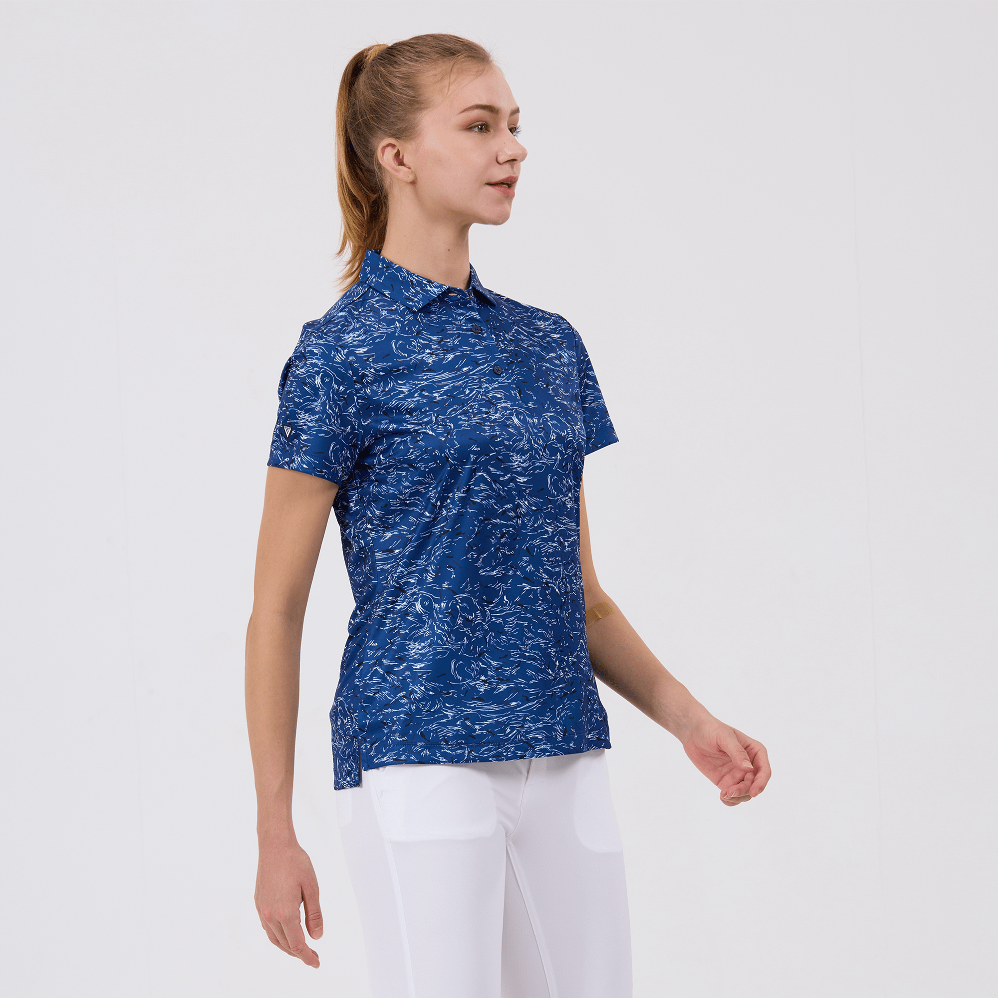 Refine your golf wardrobe with the women's Koi polo, tailored specifically for those who value sustainability and a sophisticated look on the course. This polo is meticulously crafted from 100% recycled polyester, highlighting our dedication to environmentally conscious fashion without sacrificing quality. It features moisture-wicking technology that effectively absorbs and evaporates sweat, ensuring you stay dry from the first tee to the last green. The self-fabric collar with built-in collar stay keeps your look sharp and polished, while forward shoulder seams promote ease of movement. The high-low hem with side slits offers a flattering fit and enhanced mobility, complemented by a vibrant all-over print that makes a striking statement on the green. Ideal for both casual rounds and competitive play, the Koi polo embodies a sophisticated blend of eco-friendly practices and detailed craftsmanship.