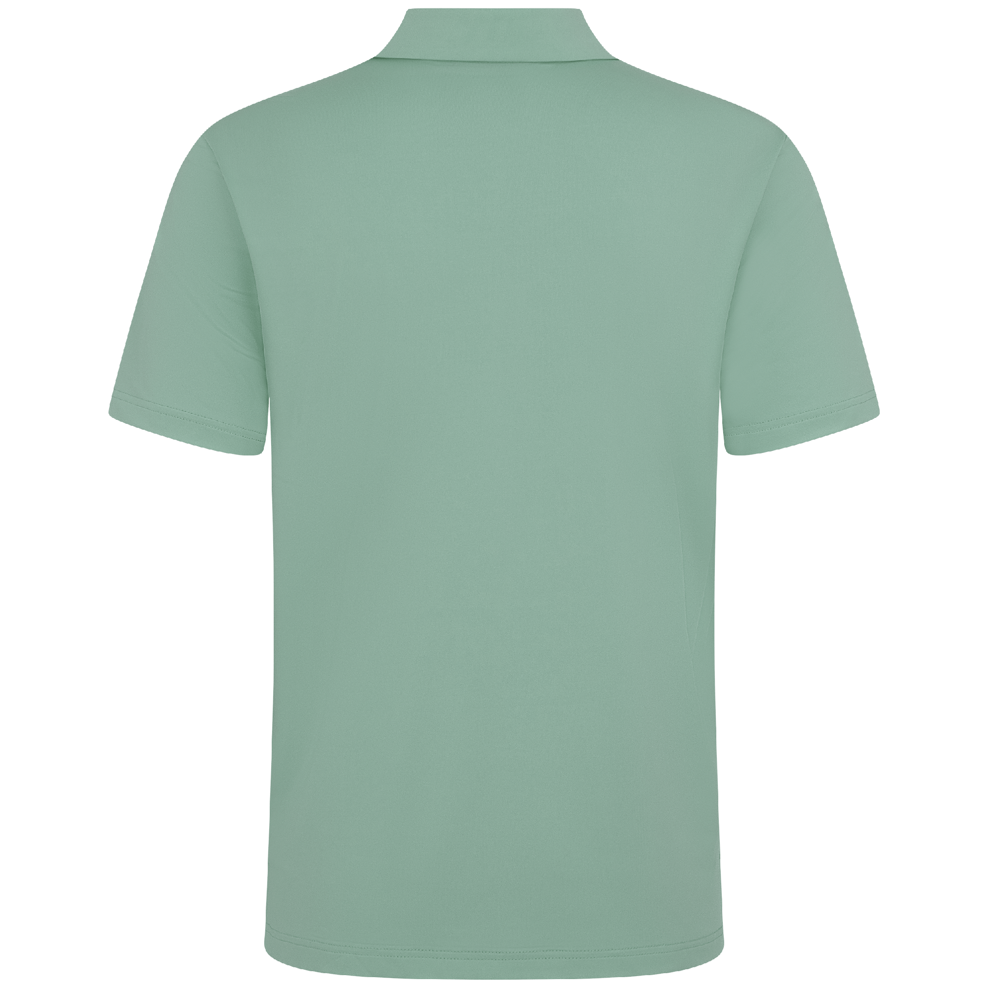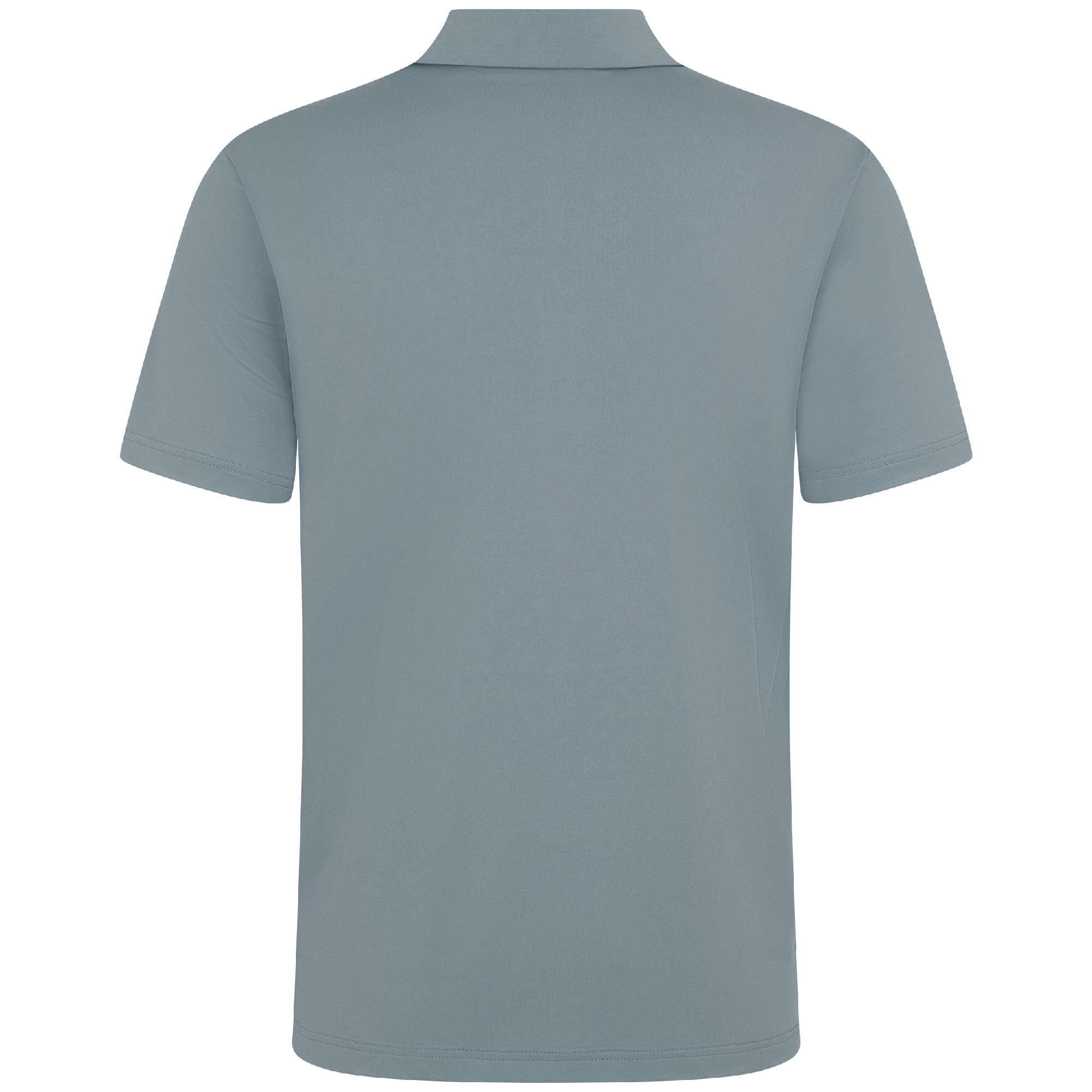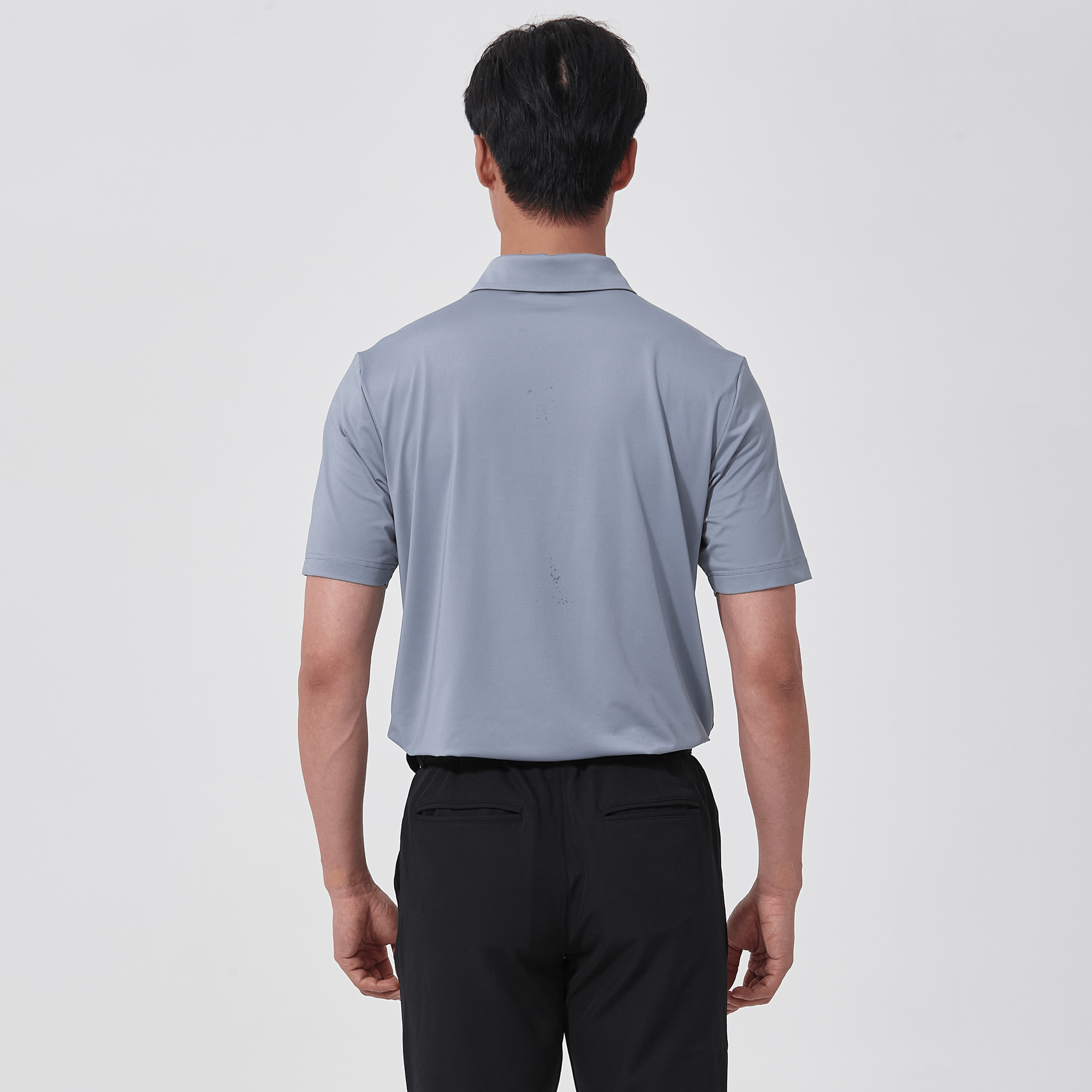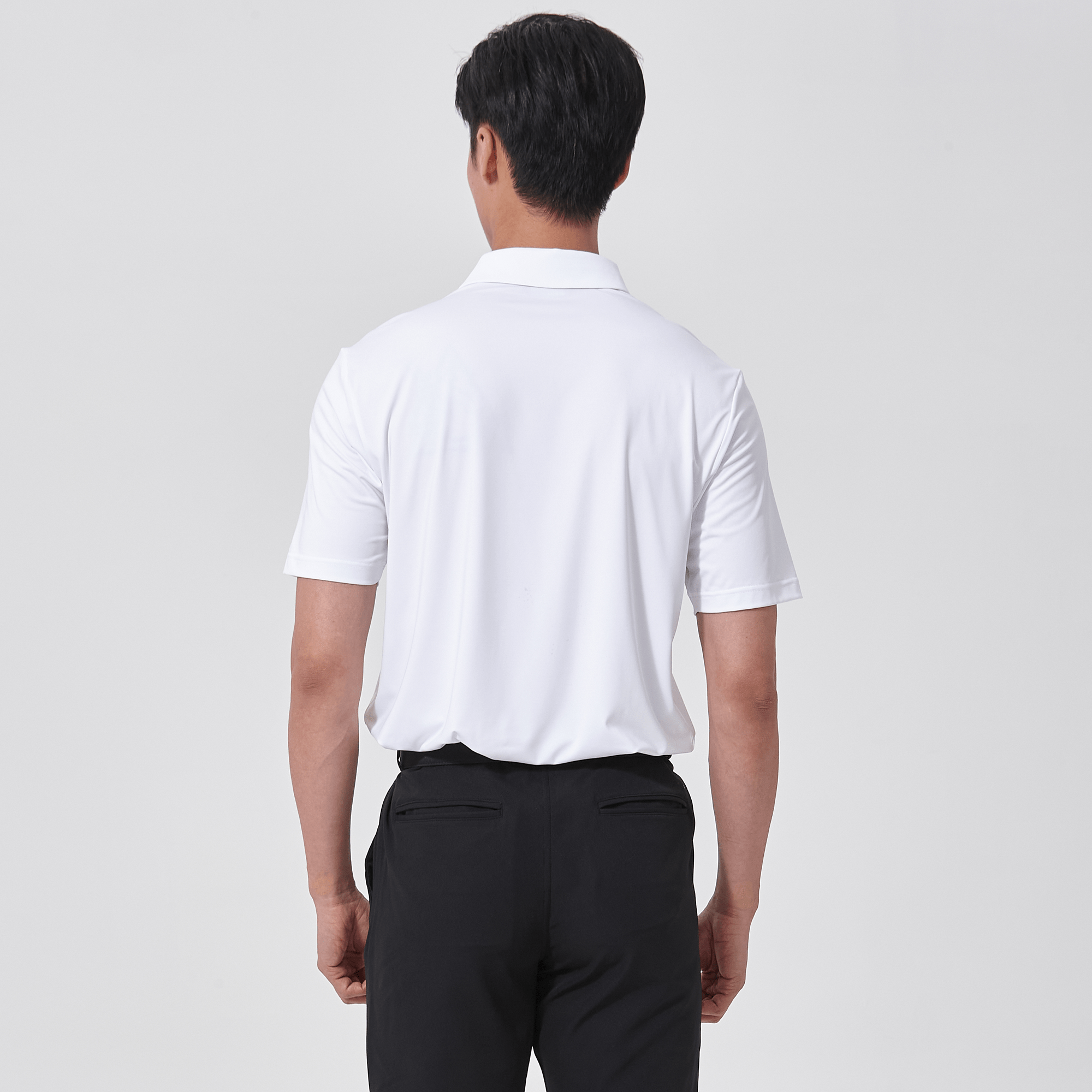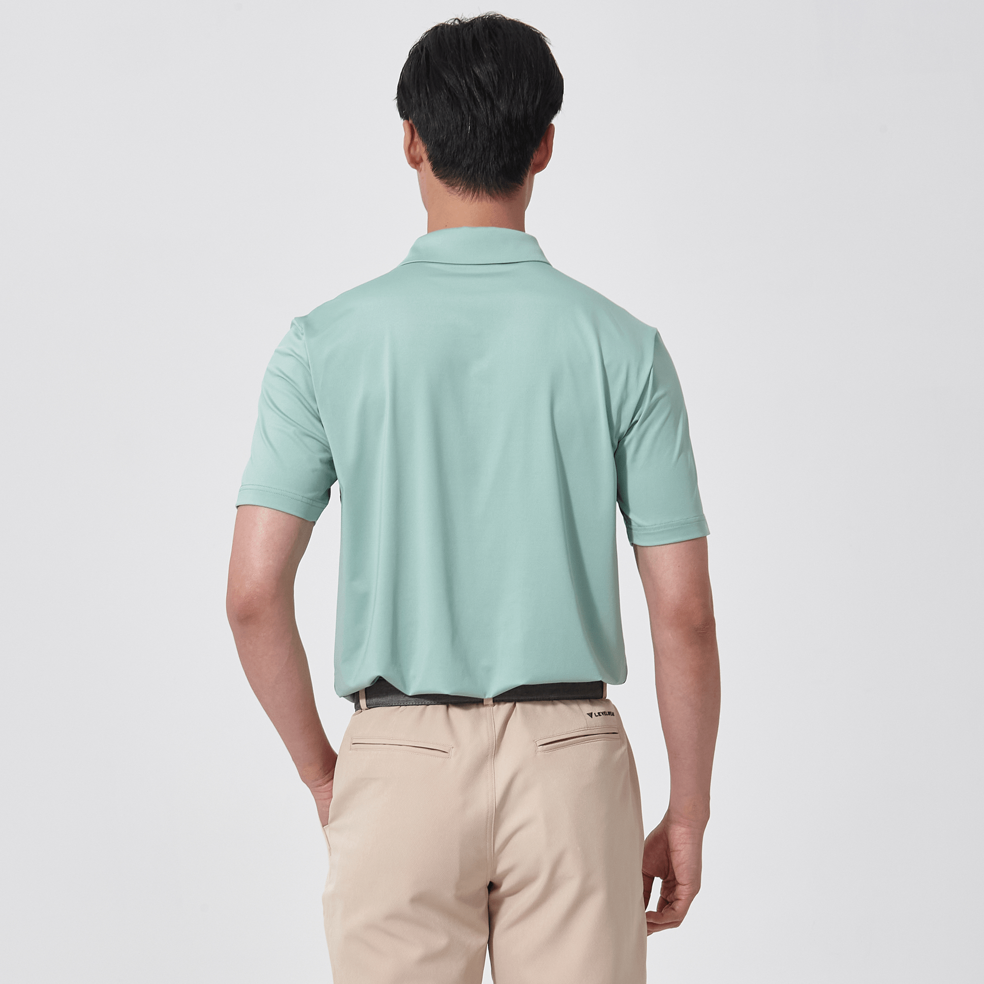 Elevate your game with the Onward men's polo, designed for avid golfers. This shirt features UPF50+ protection and moisture-wicking technology to keep you dry and shielded on sunny days. Its anti-bacterial properties ensure lasting freshness during play. The stylish stripe print across the front chest and a neat self-fabric collar with a built-in collar stay enhance its sophisticated and classic appearance. Tailored with a high-low hem and side slits for greater mobility, this polo is made from 92% recycled polyester and 8% spandex, blending eco-conscious fashion with functional design.