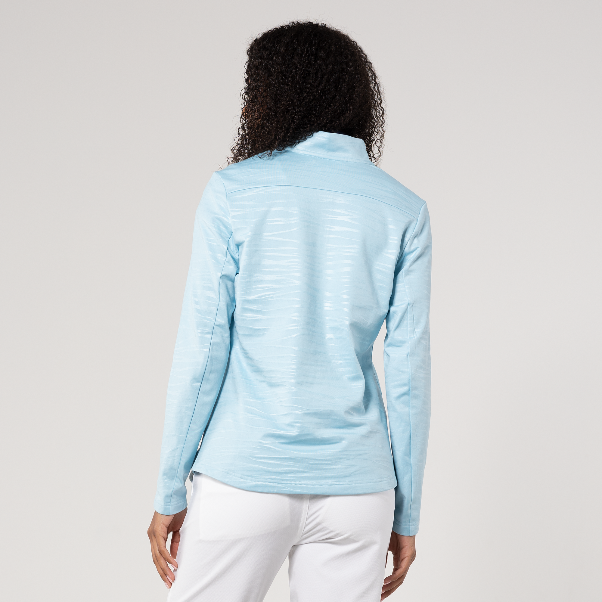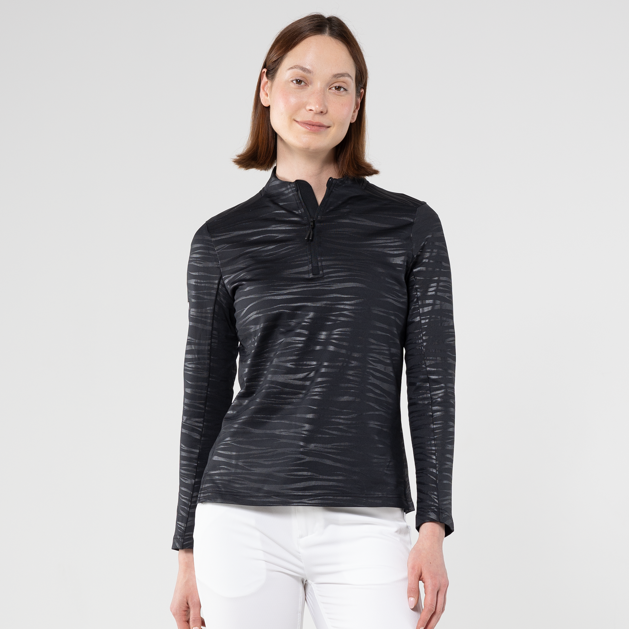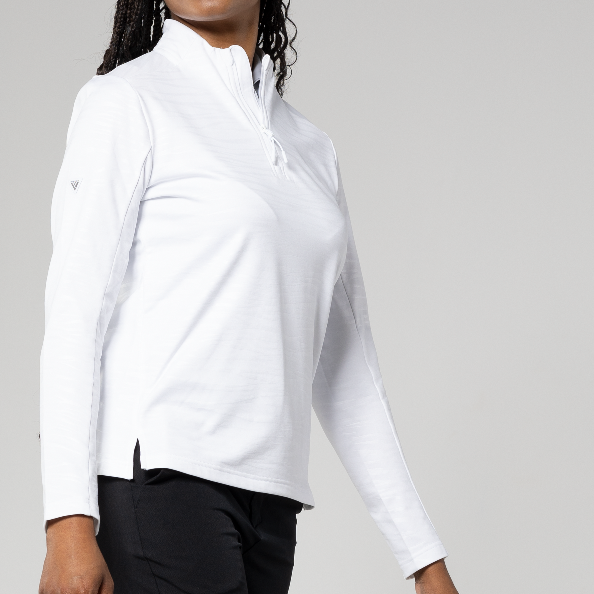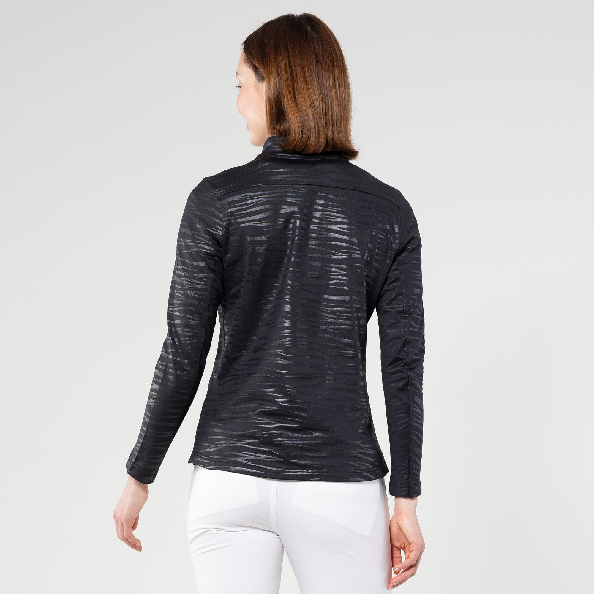 Enhance your active wardrobe with the Patina midlayer. Crafted from a blend of 88% polyester and 12% spandex, it seamlessly blends comfort and flexibility. The tonal debossed linear print and angular yoke seams add a contemporary touch, making this midlayer the ideal choice for both style and performance during your workouts.