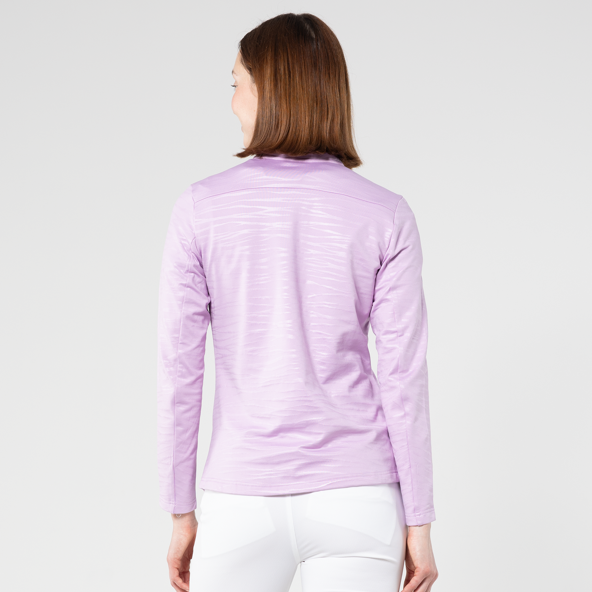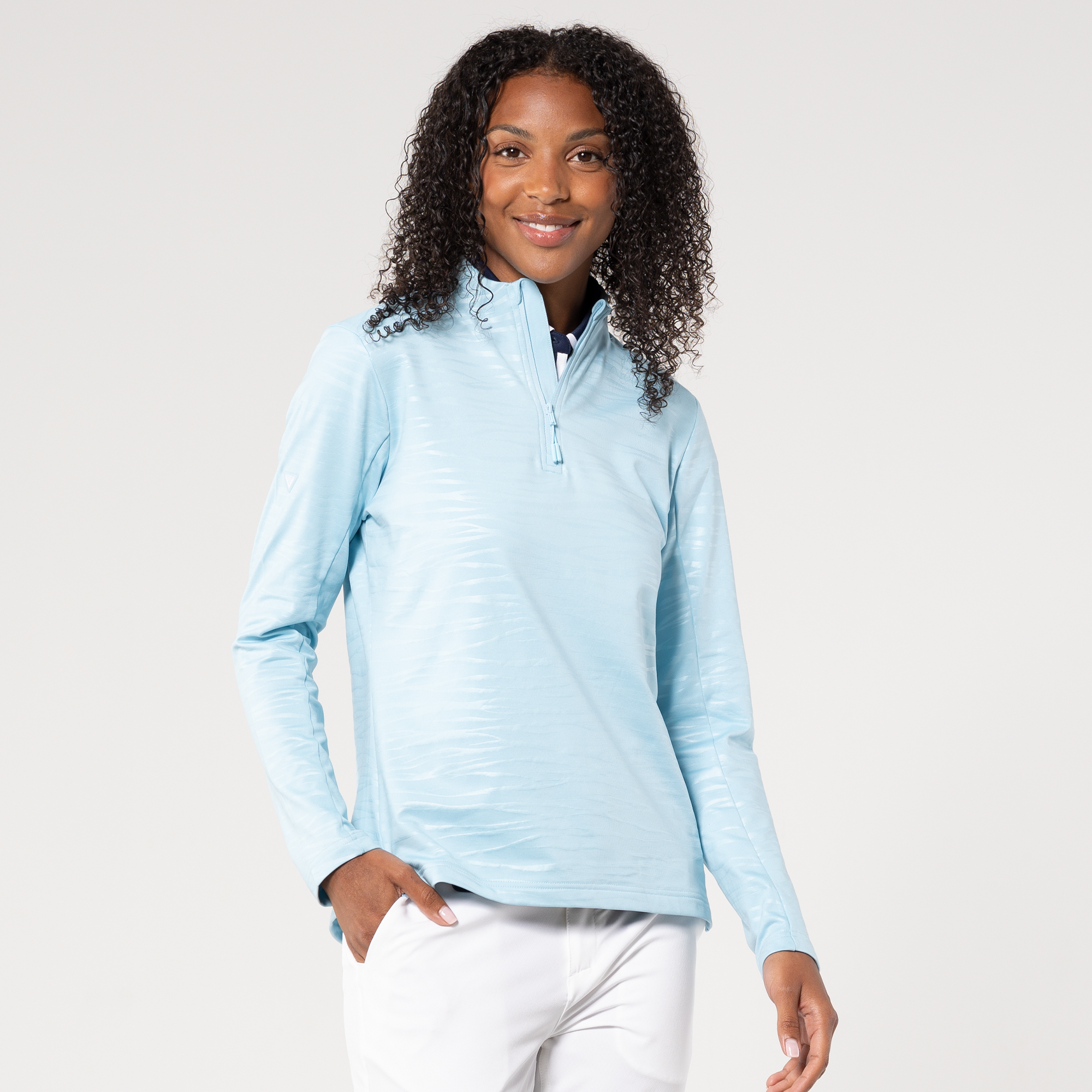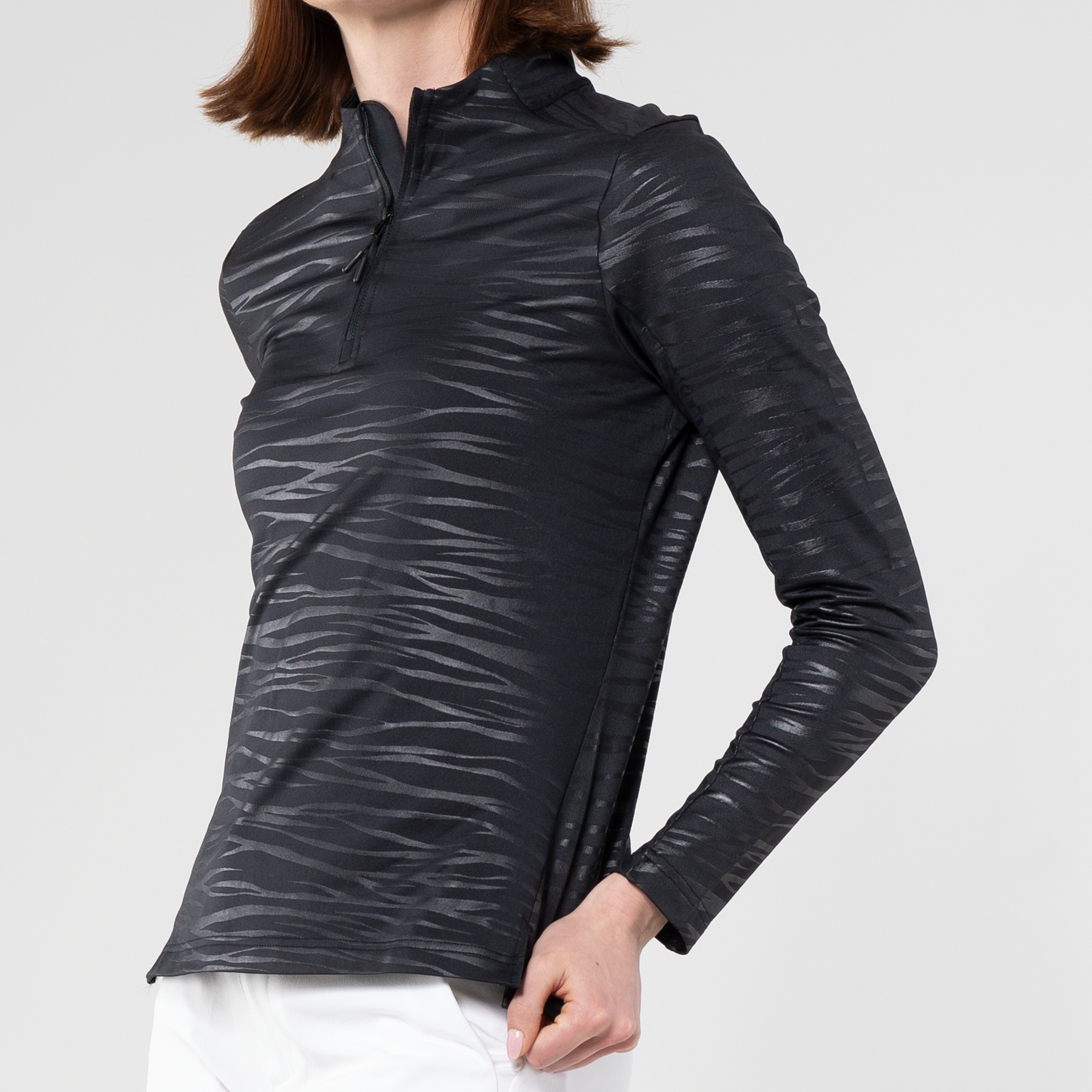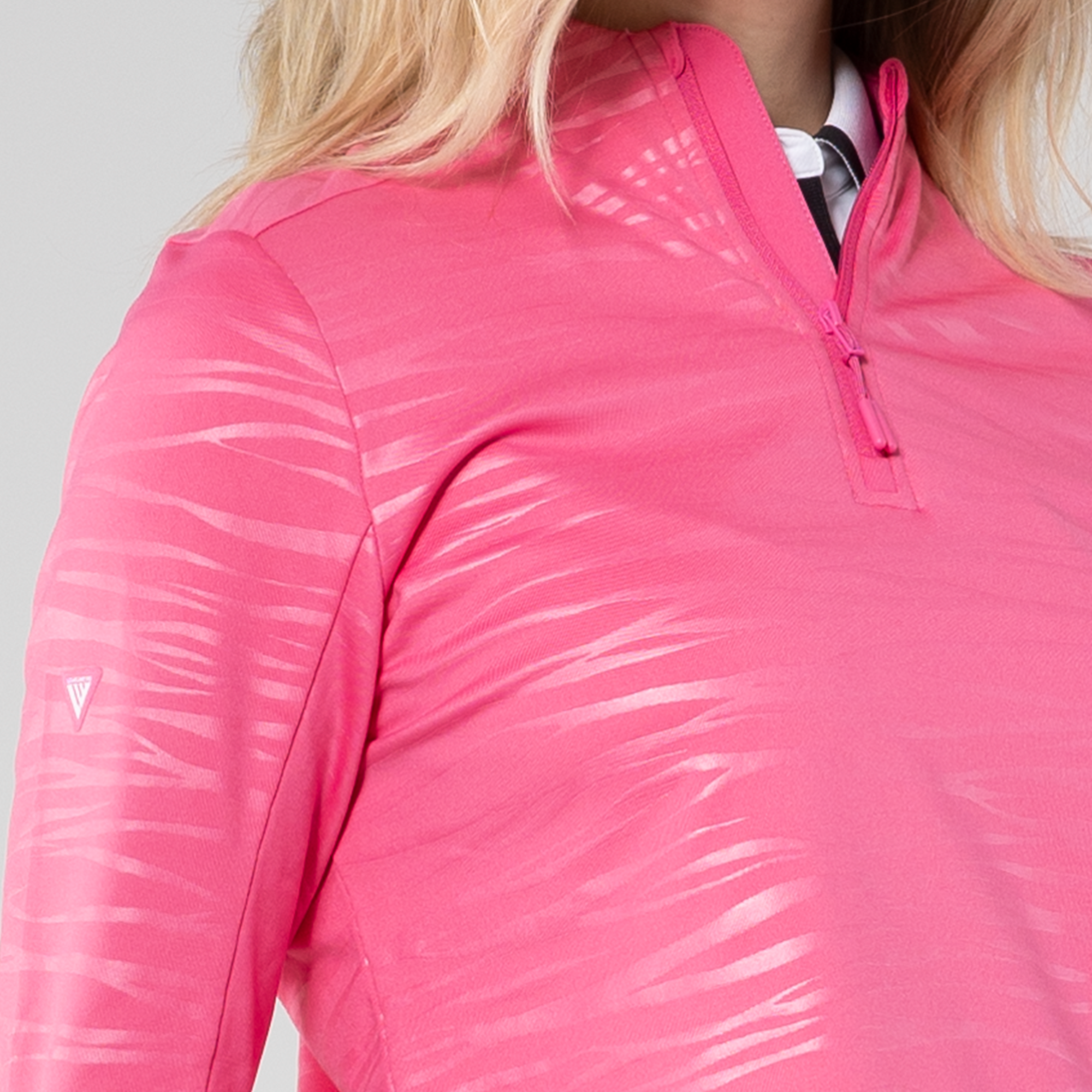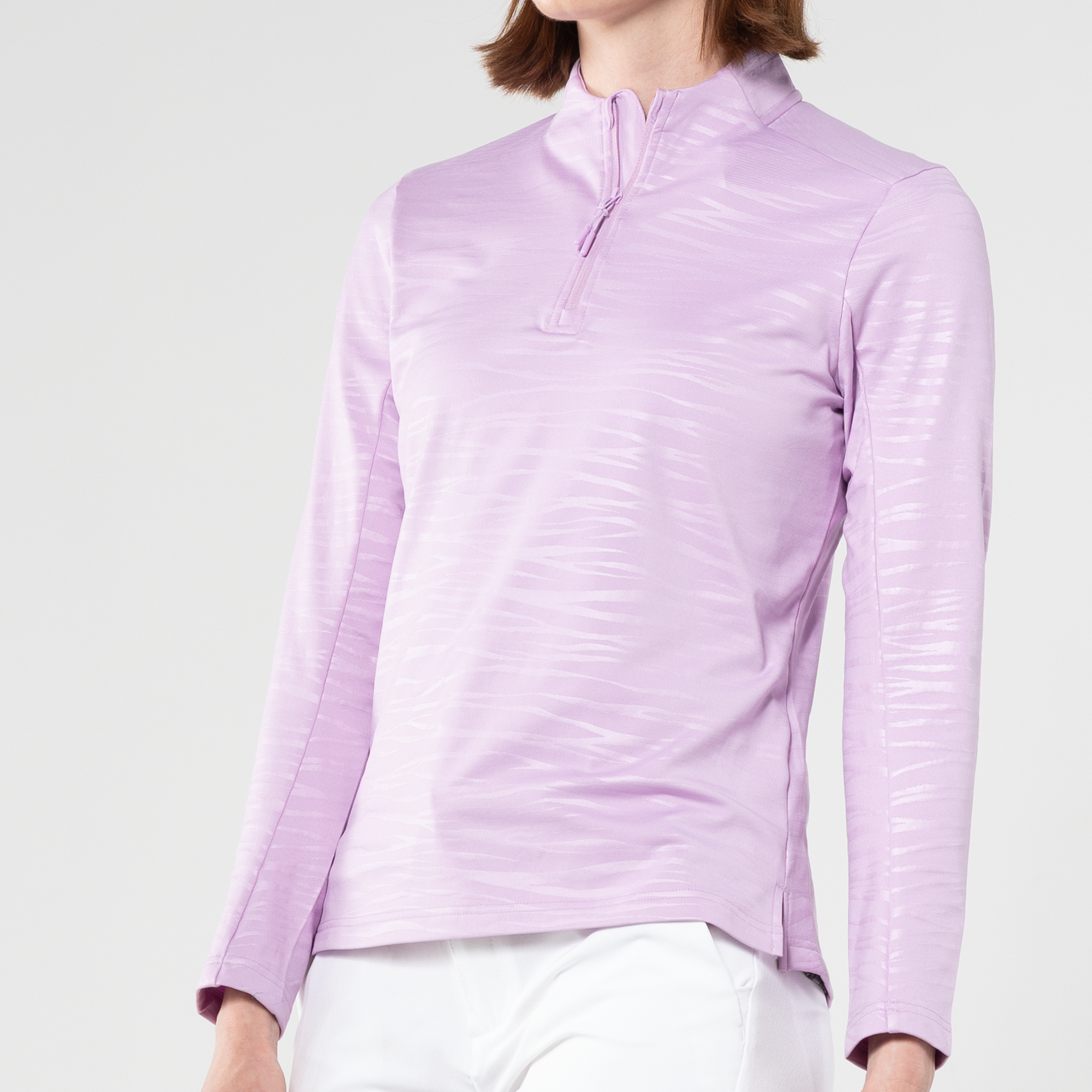 Enhance your active wardrobe with the Patina midlayer. Crafted from a blend of 88% polyester and 12% spandex, it seamlessly blends comfort and flexibility. The tonal debossed linear print and angular yoke seams add a contemporary touch, making this midlayer the ideal choice for both style and performance during your workouts.