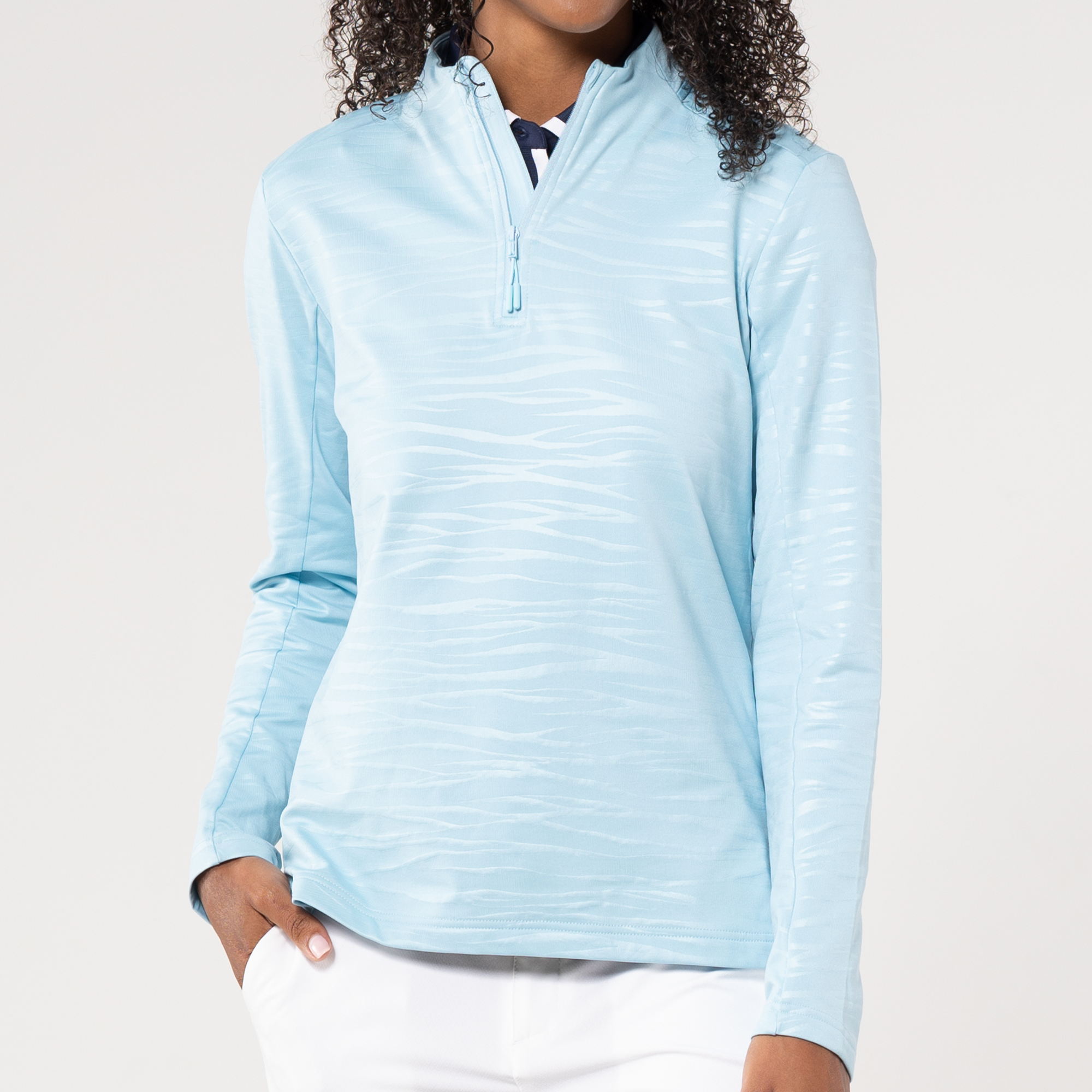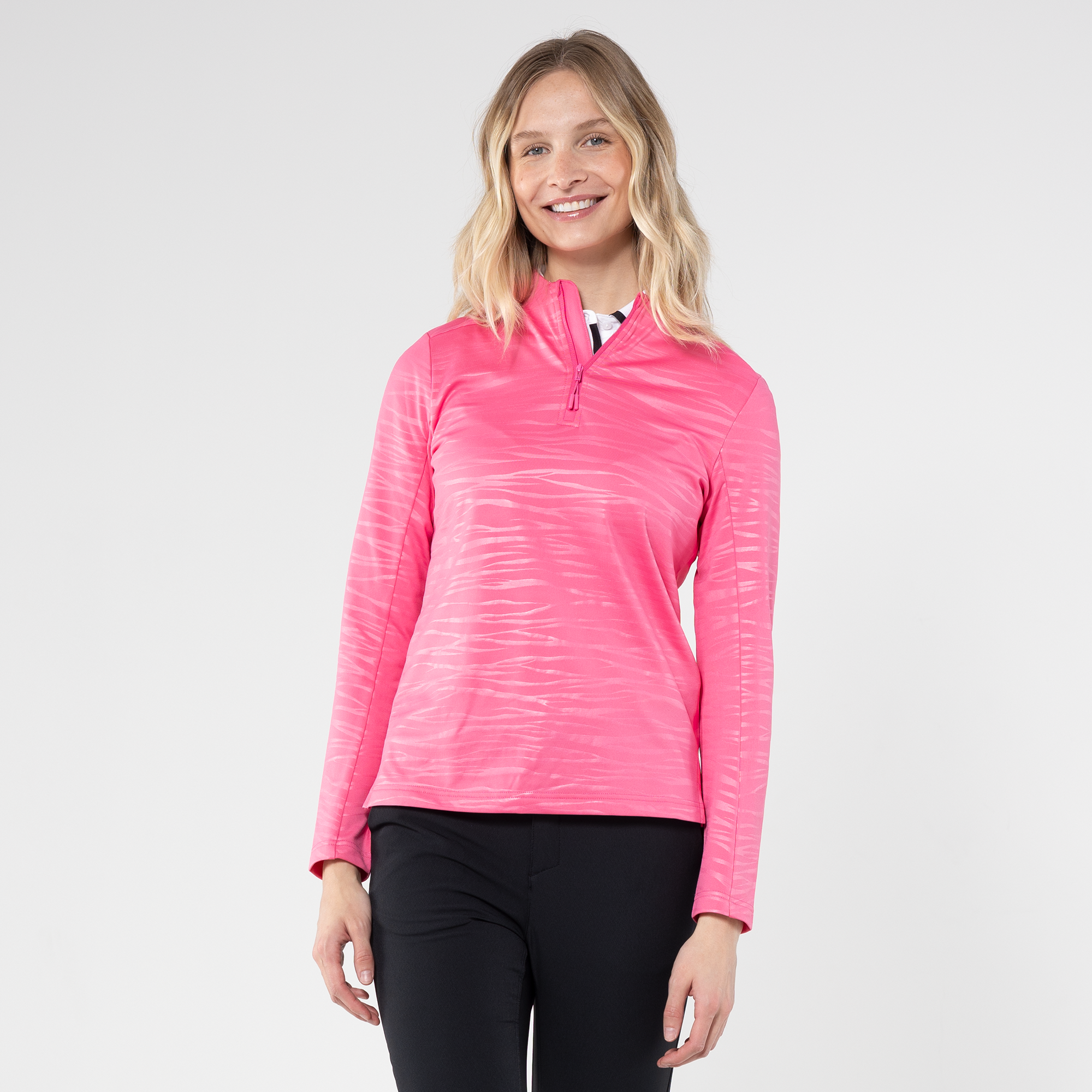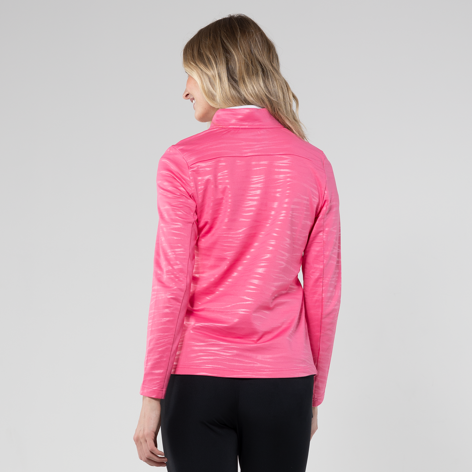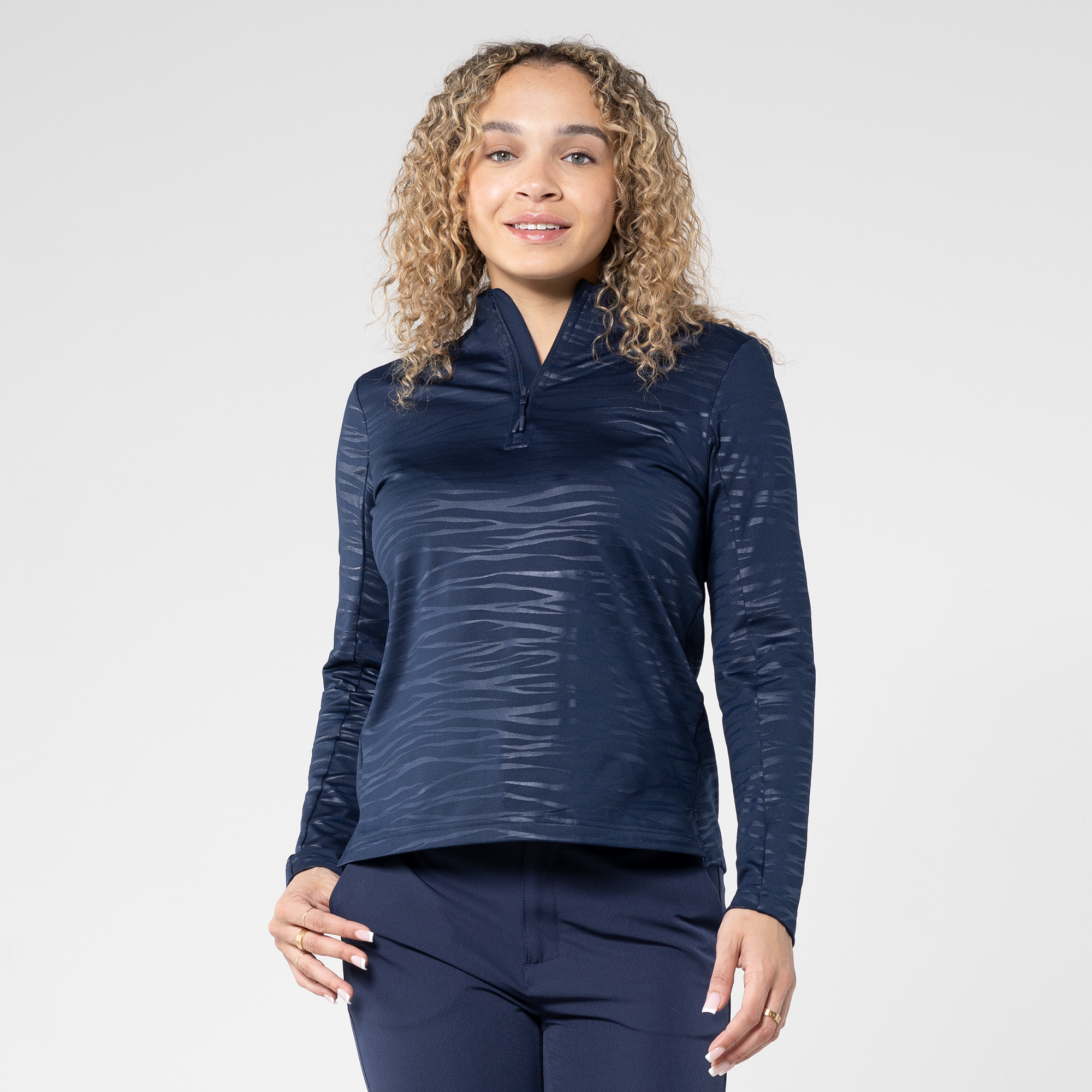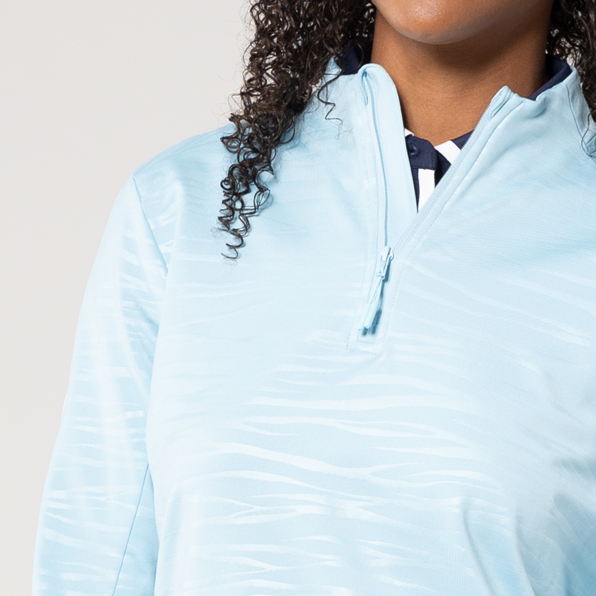 Enhance your active wardrobe with the Patina midlayer. Crafted from a blend of 88% polyester and 12% spandex, it seamlessly blends comfort and flexibility. The tonal debossed linear print and angular yoke seams add a contemporary touch, making this midlayer the ideal choice for both style and performance during your workouts.