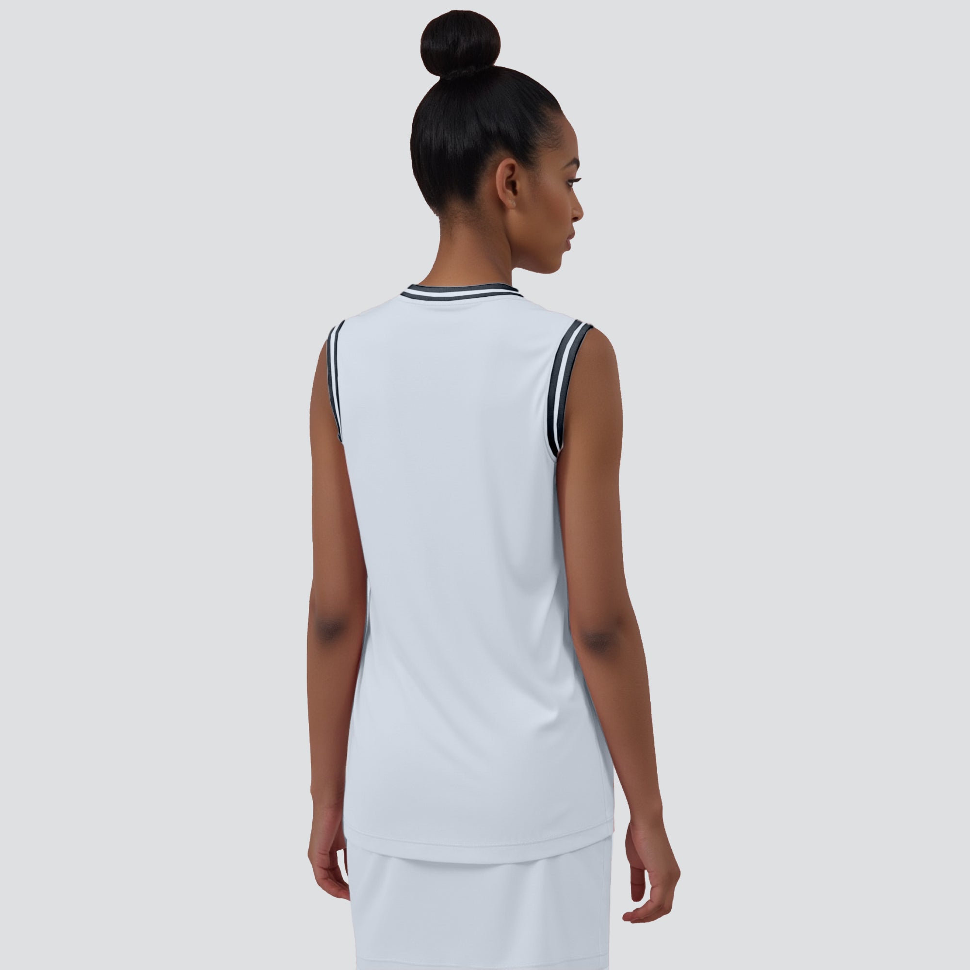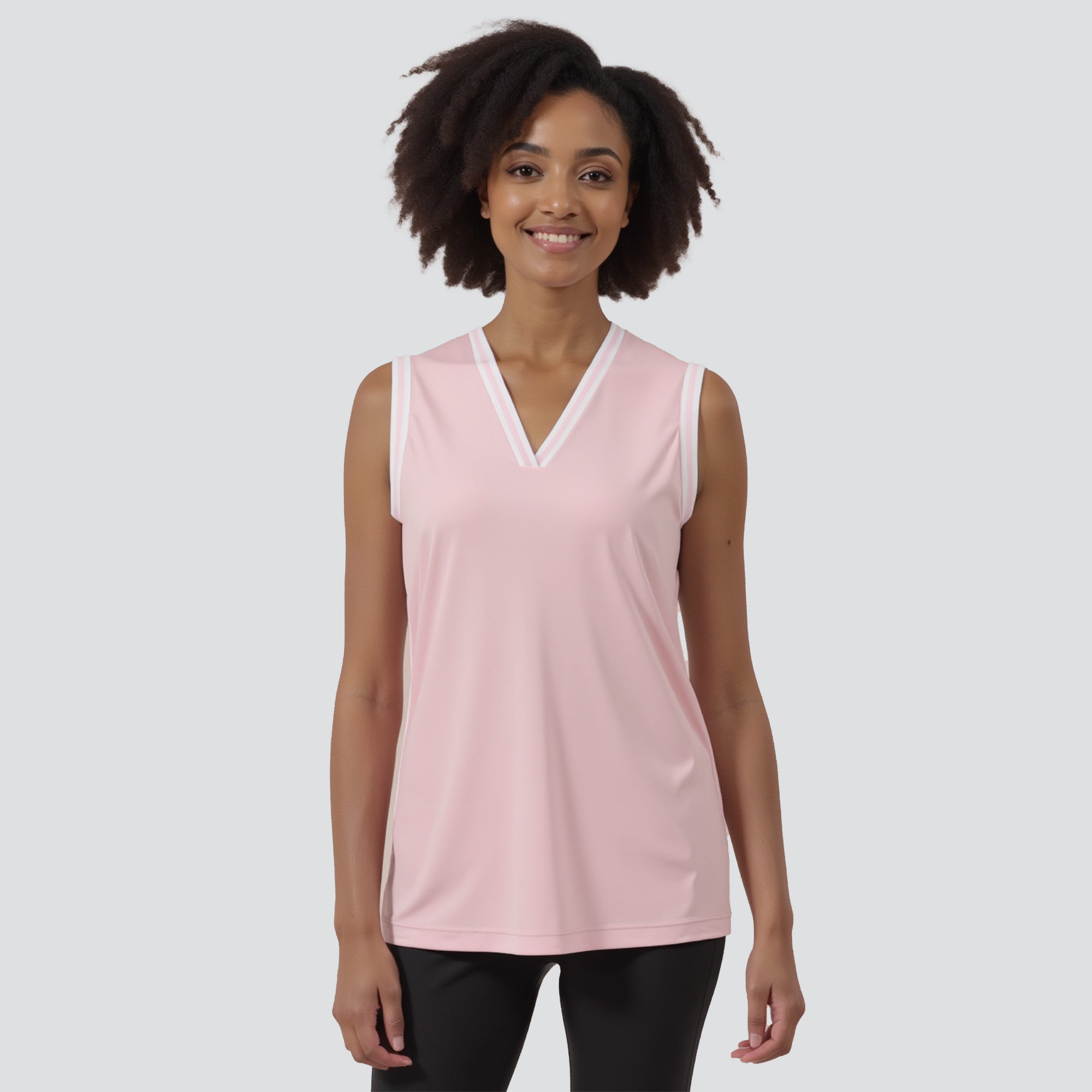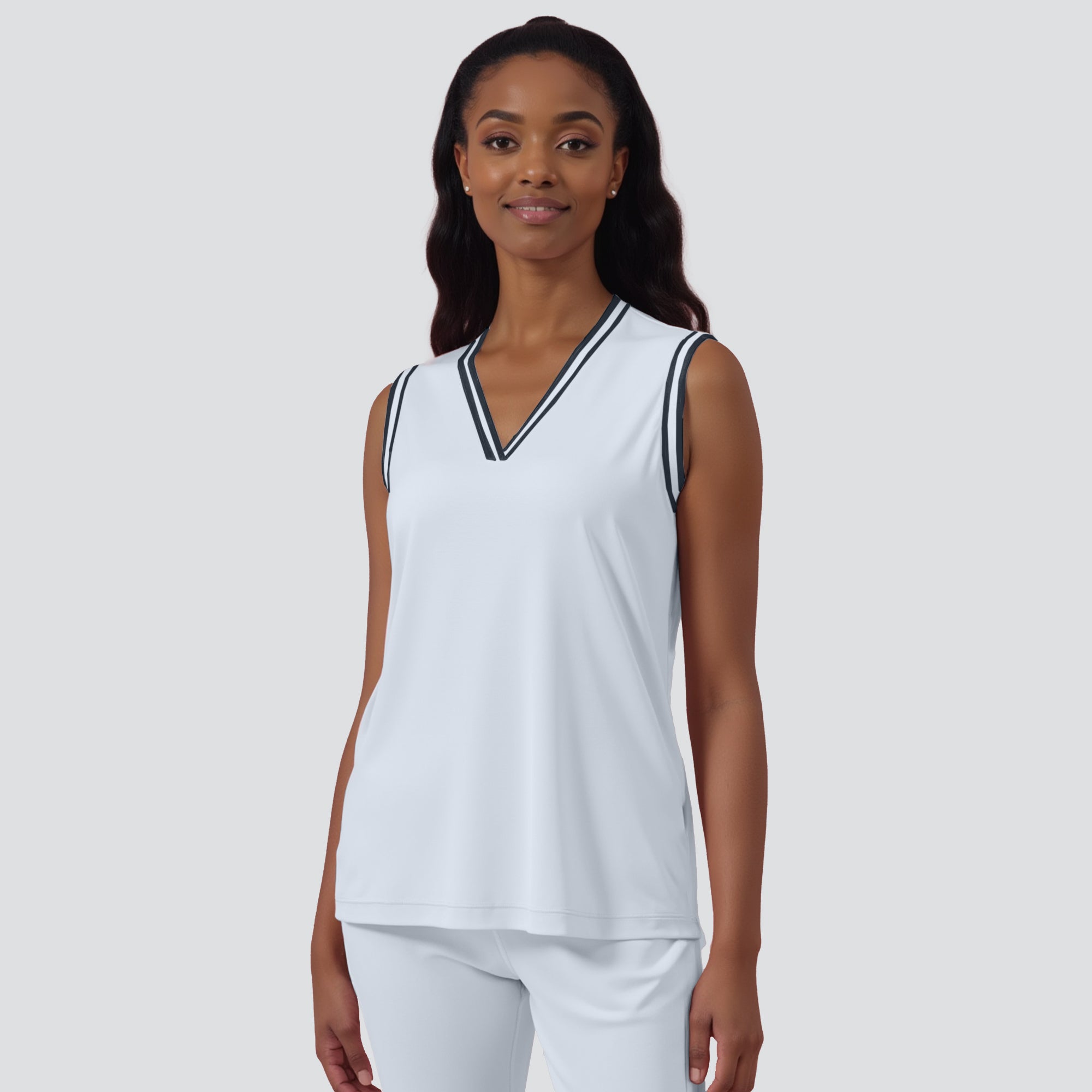 Introducing the women's Secret, a sophisticated and eco-friendly top made for the stylish and environmentally conscious. Made with 83% recycled yarn and 100% polyester, this top not only promotes sustainability but also ensures you stay comfortable with its moisture-wicking and anti-bacterial properties, keeping you fresh and dry all day. The chic split neckline is complimented by a varsity stripe flat knit at the collar and armhole, adding a sporty flair to its elegant design. The high-low hem detail provides a flattering fit that enhances its flowy silhouette, making it perfect for both casual wear and more active settings. Whether you're enjoying a leisurely day out or engaging in light activities, the women's Secret blends functionality, comfort, and style seamlessly.
