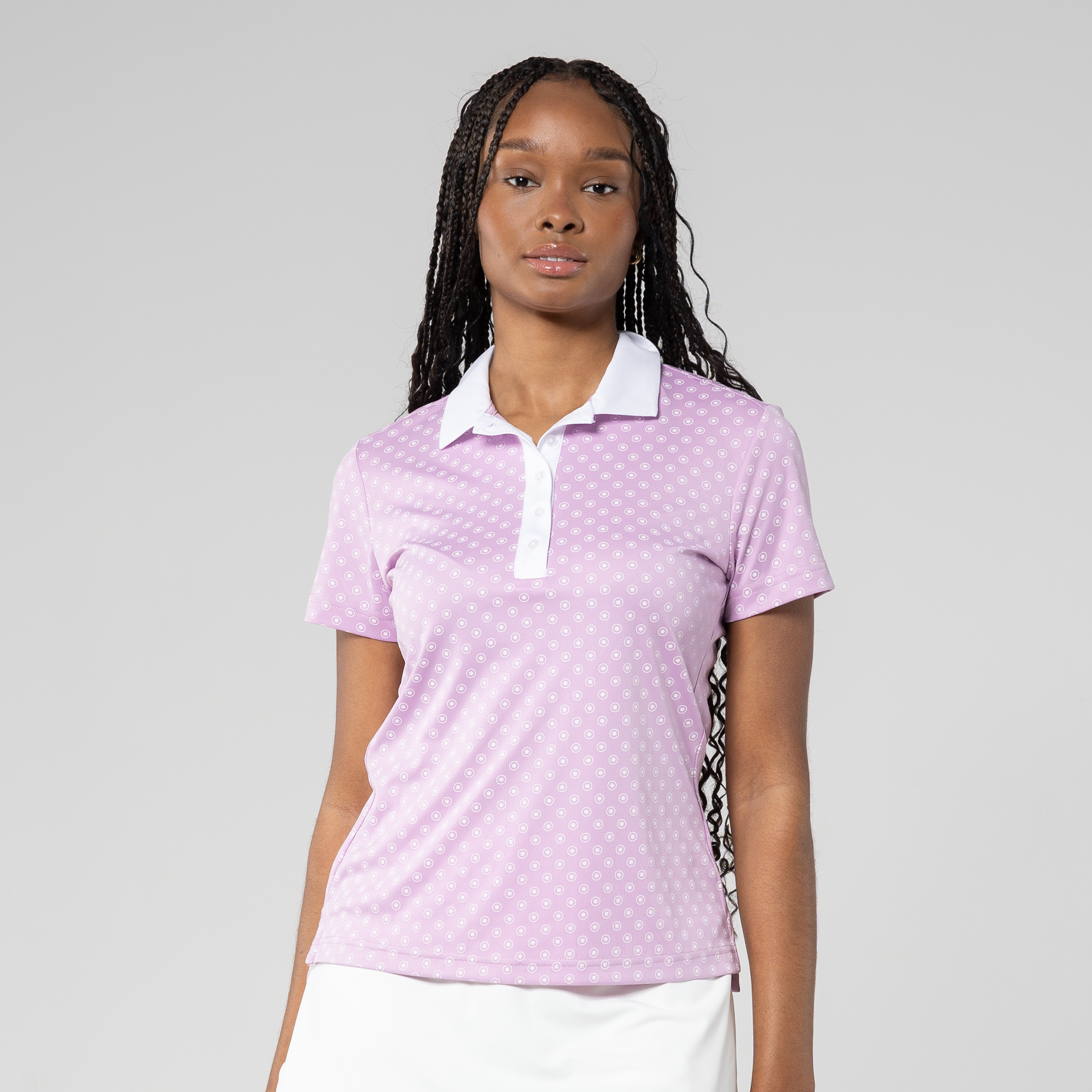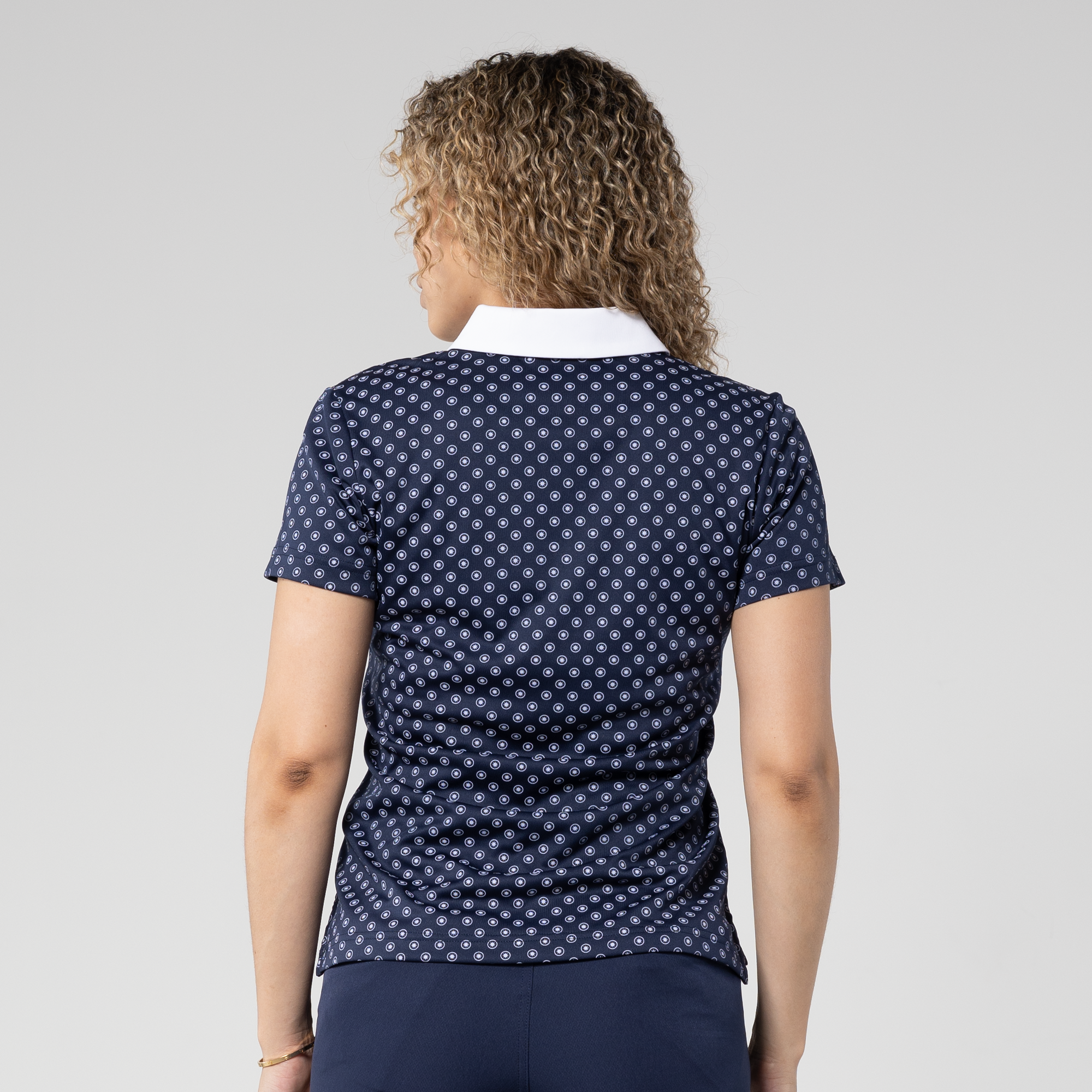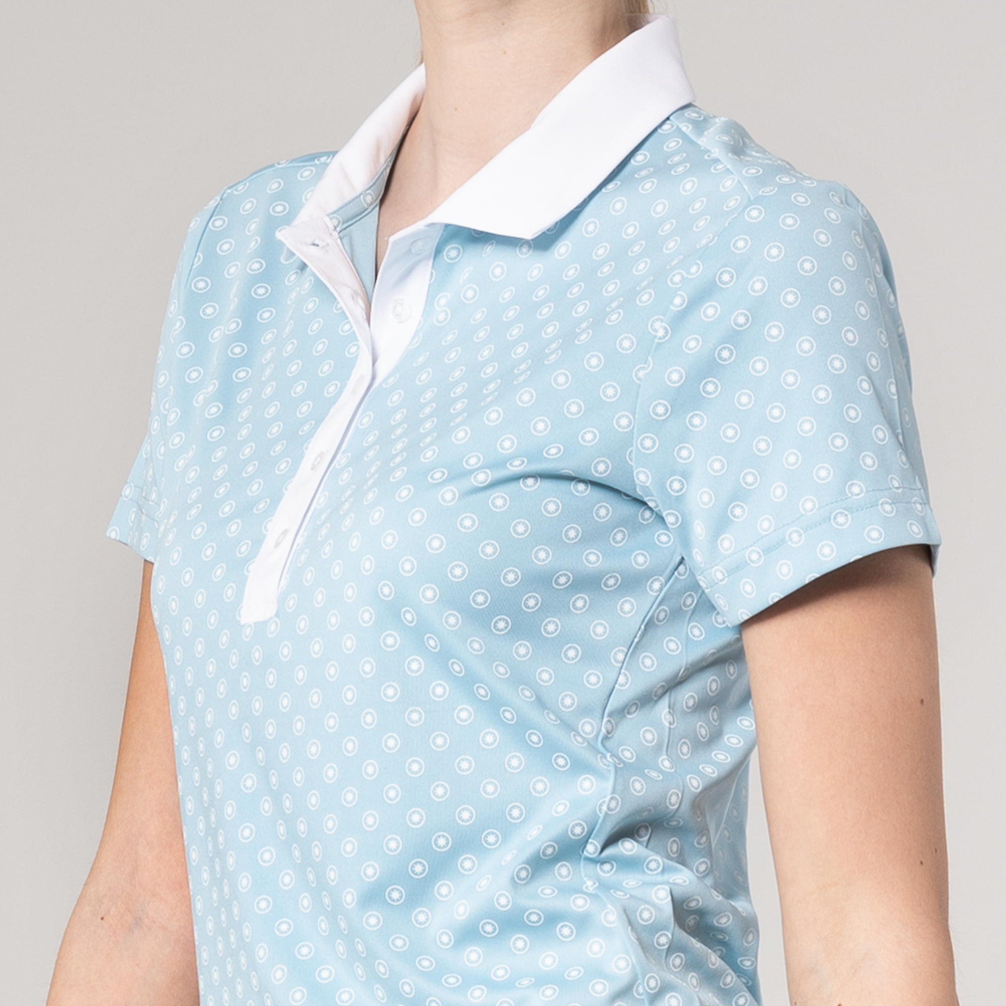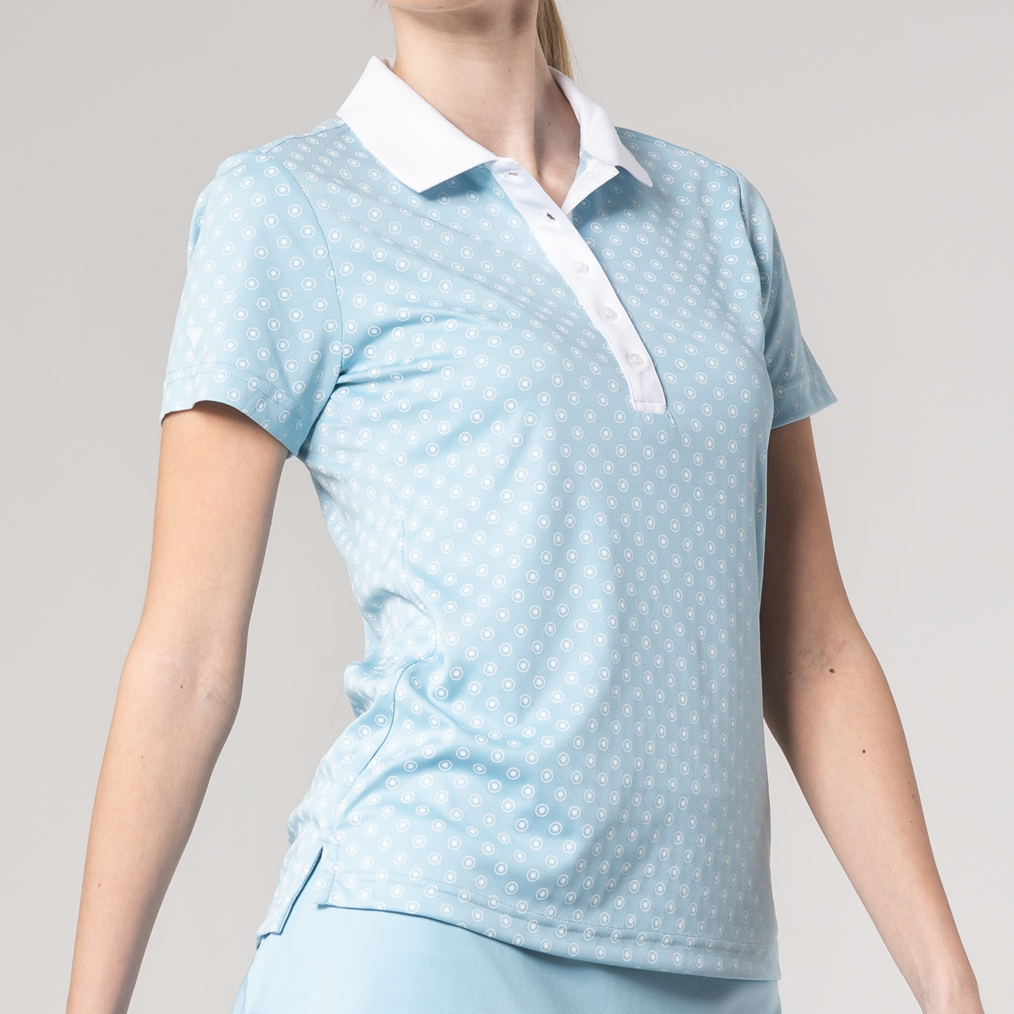 Elevate your style with the Stardust polo. Crafted from 100% Polyester, it features a chic pigment all-over-print design for a celestial touch. The self-fabric collar, complete with a built-in collar stay, ensures a polished look, while the high-low hem detail with side slits adds a flattering finish. Experience the perfect blend of fashion and functionality with the Stardust polo, perfect for any occasion.