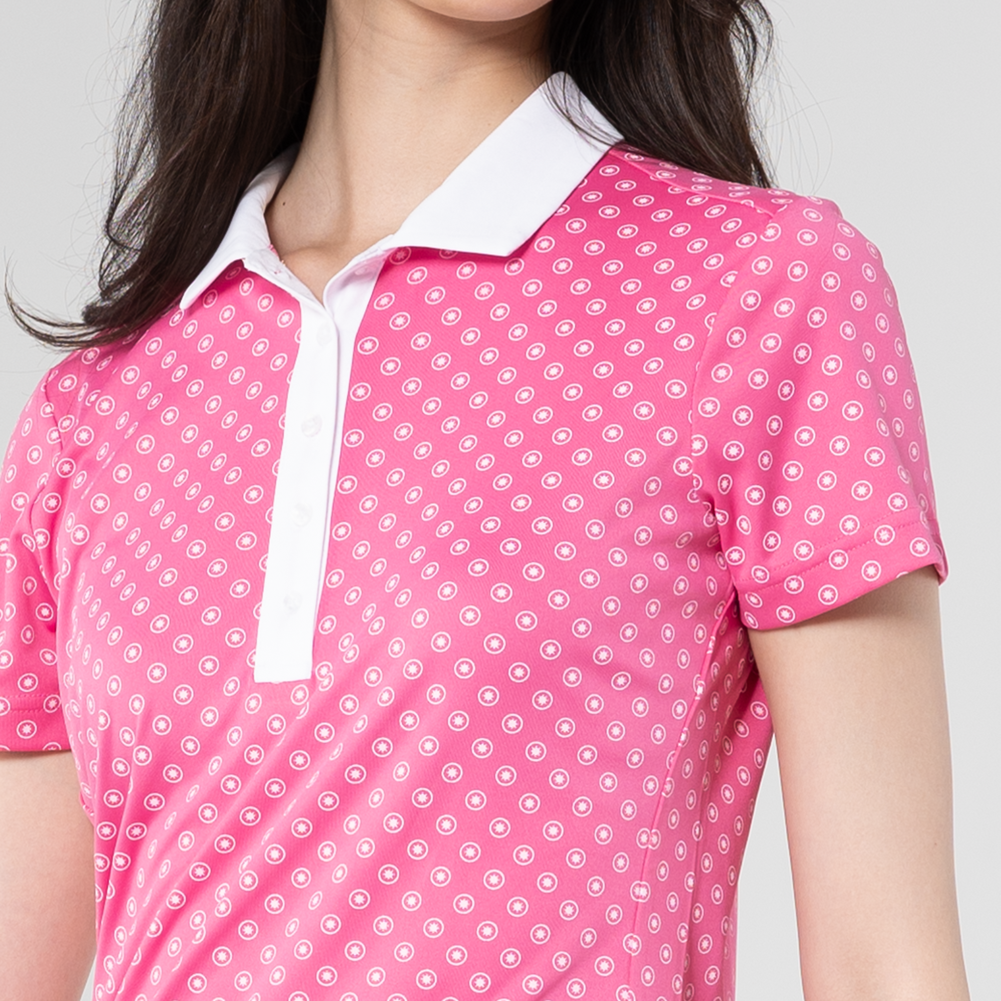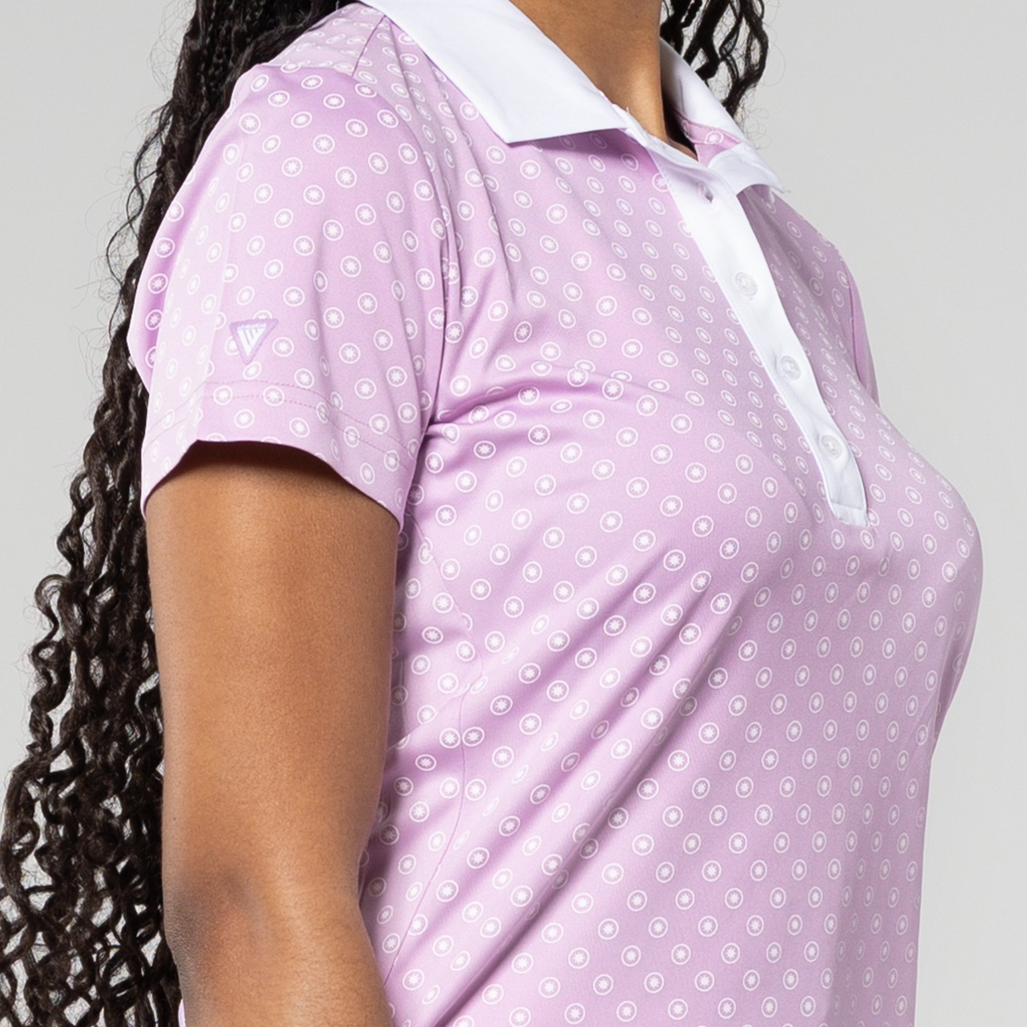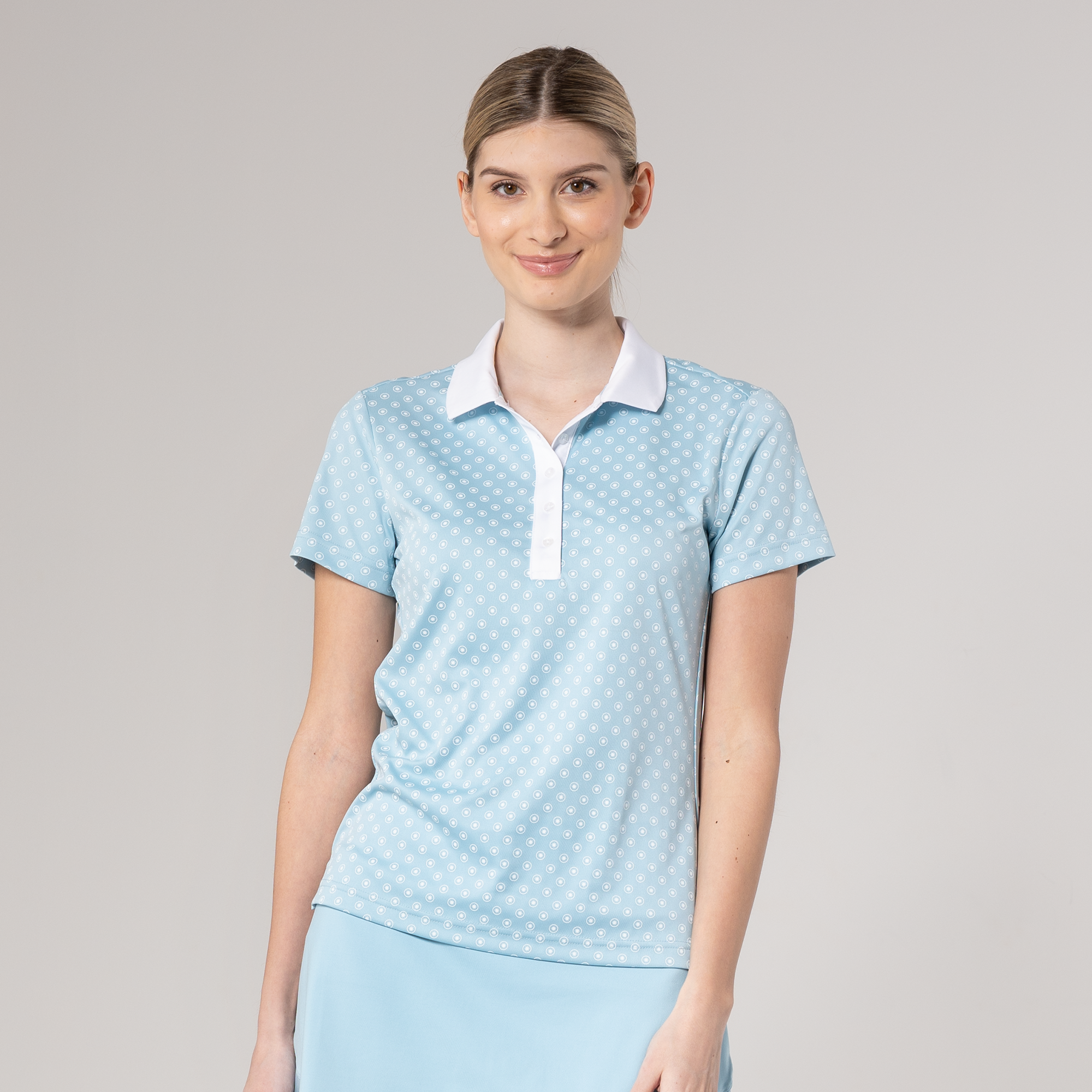 Elevate your style with the Stardust polo. Crafted from 100% Polyester, it features a chic pigment all-over-print design for a celestial touch. The self-fabric collar, complete with a built-in collar stay, ensures a polished look, while the high-low hem detail with side slits adds a flattering finish. Experience the perfect blend of fashion and functionality with the Stardust polo, perfect for any occasion.