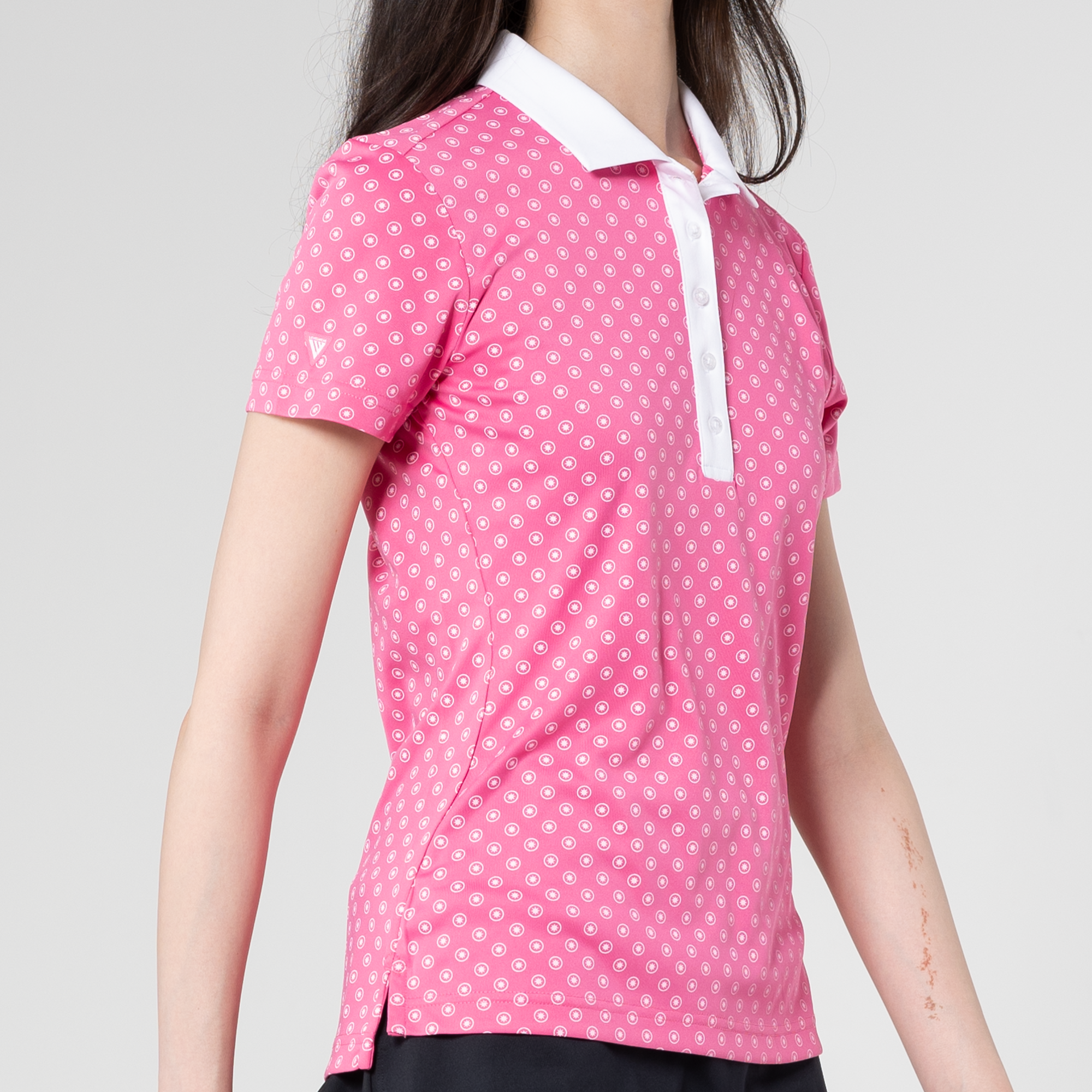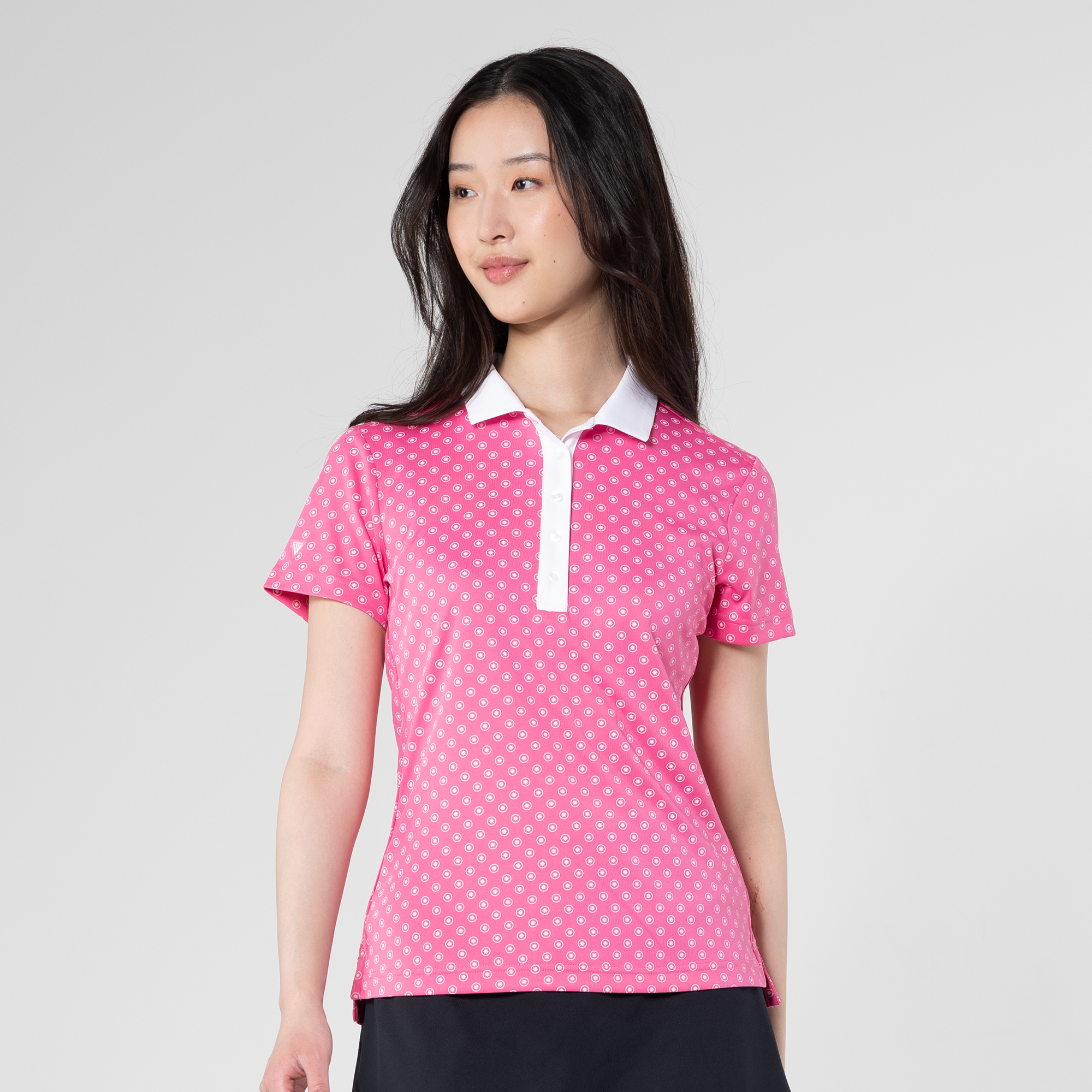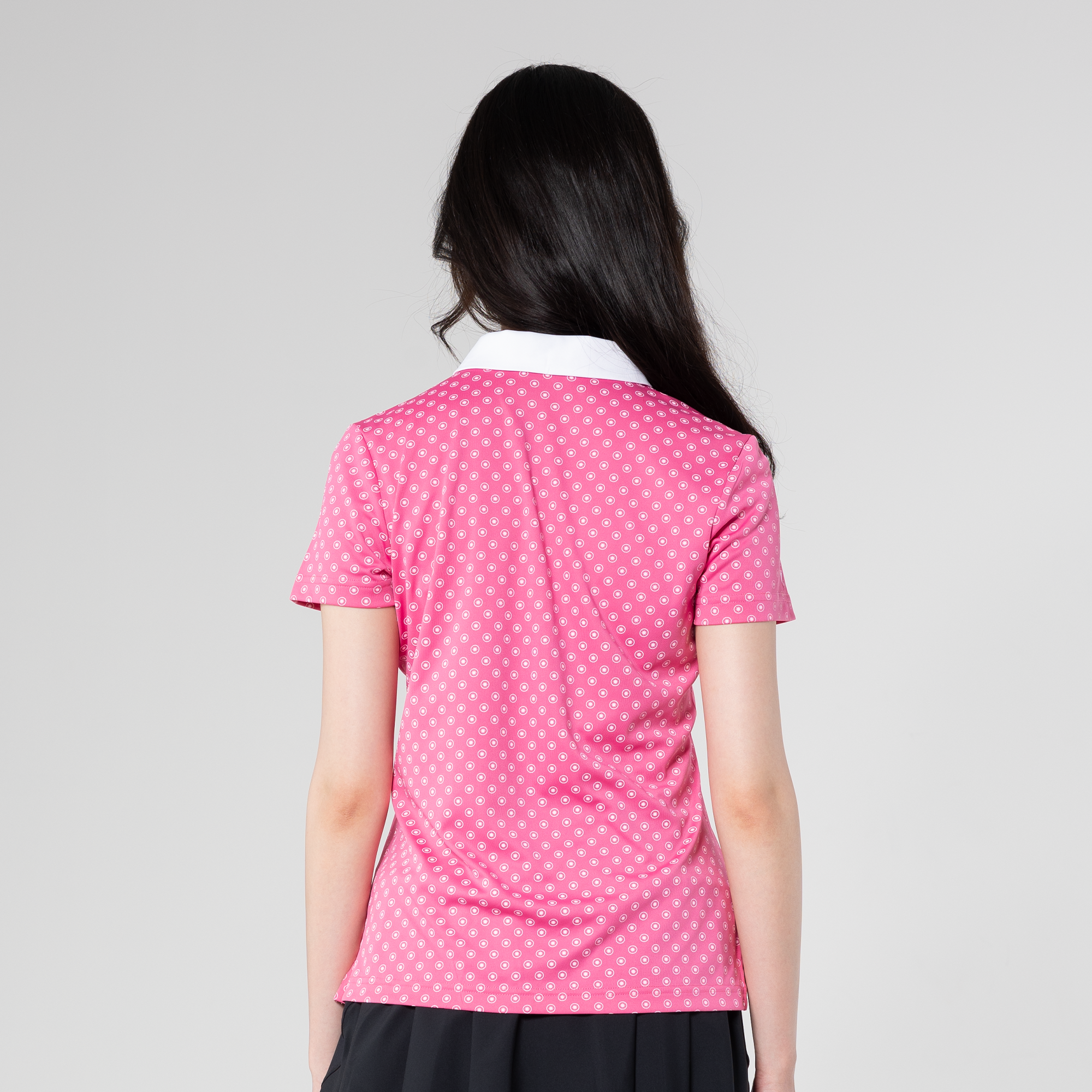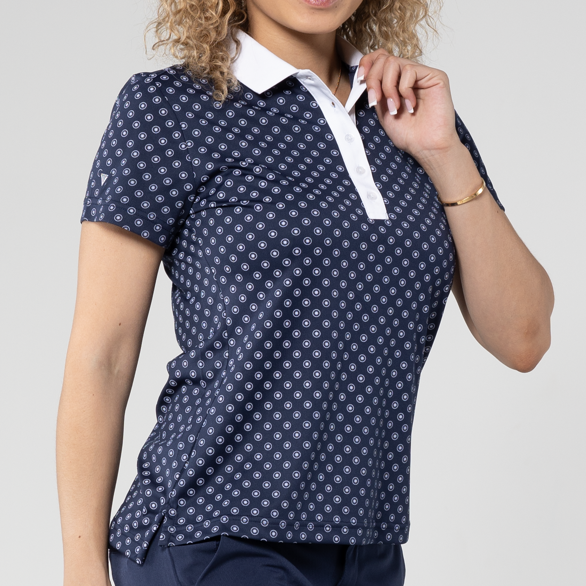 Elevate your style with the Stardust polo. Crafted from 100% Polyester, it features a chic pigment all-over-print design for a celestial touch. The self-fabric collar, complete with a built-in collar stay, ensures a polished look, while the high-low hem detail with side slits adds a flattering finish. Experience the perfect blend of fashion and functionality with the Stardust polo, perfect for any occasion.