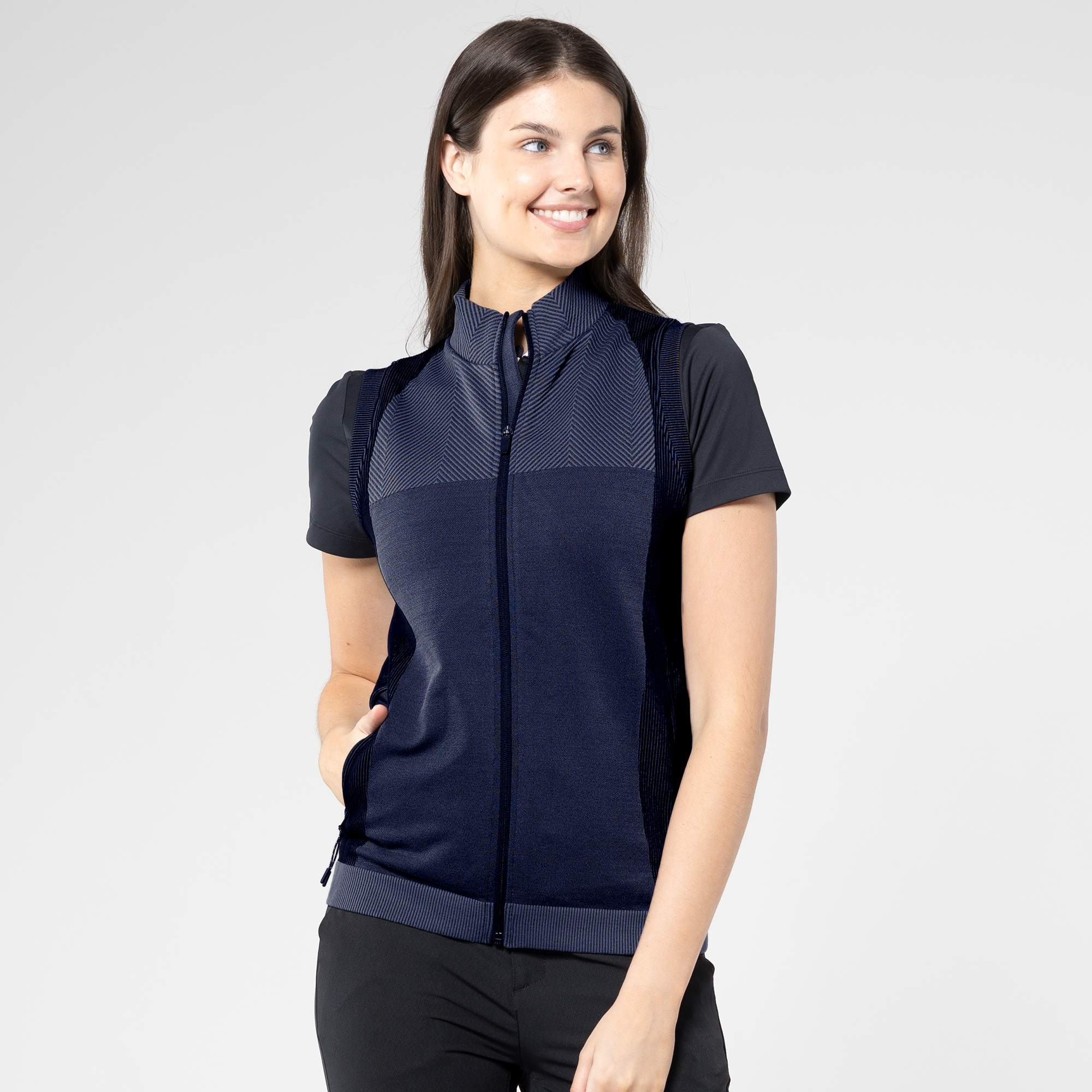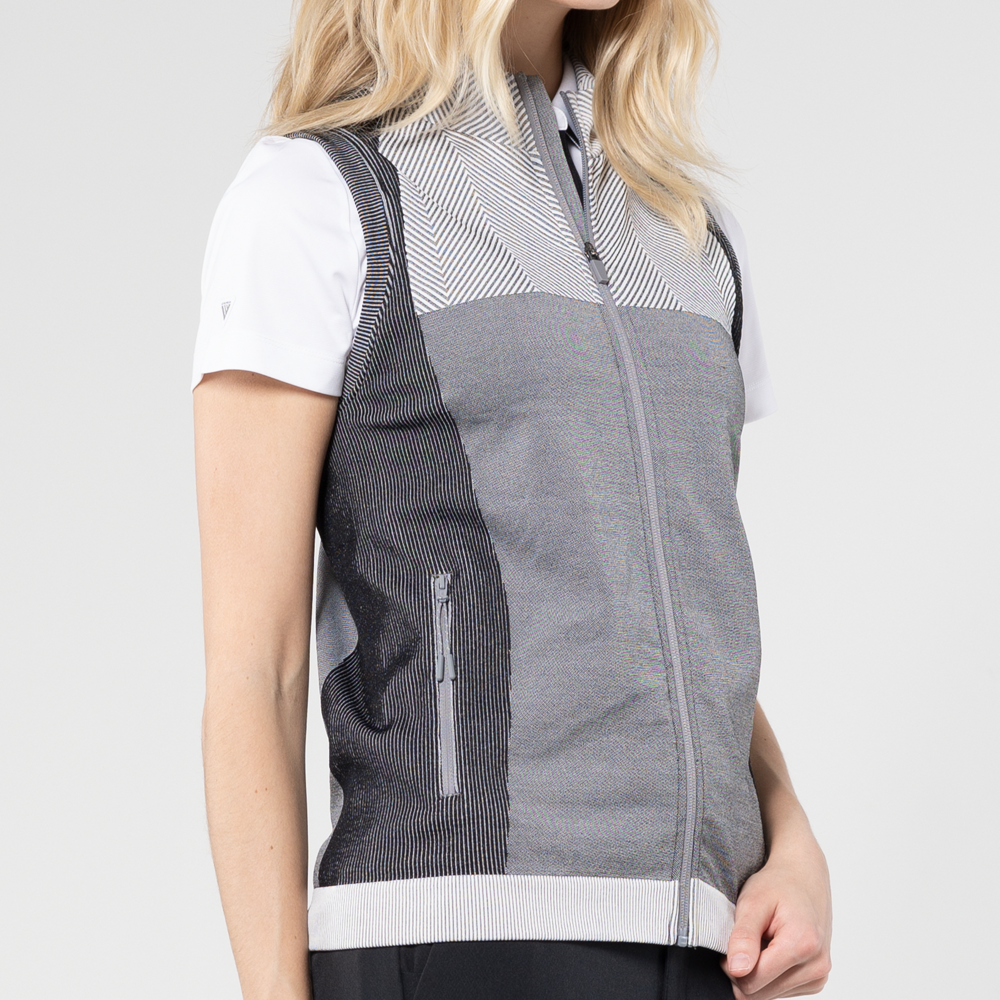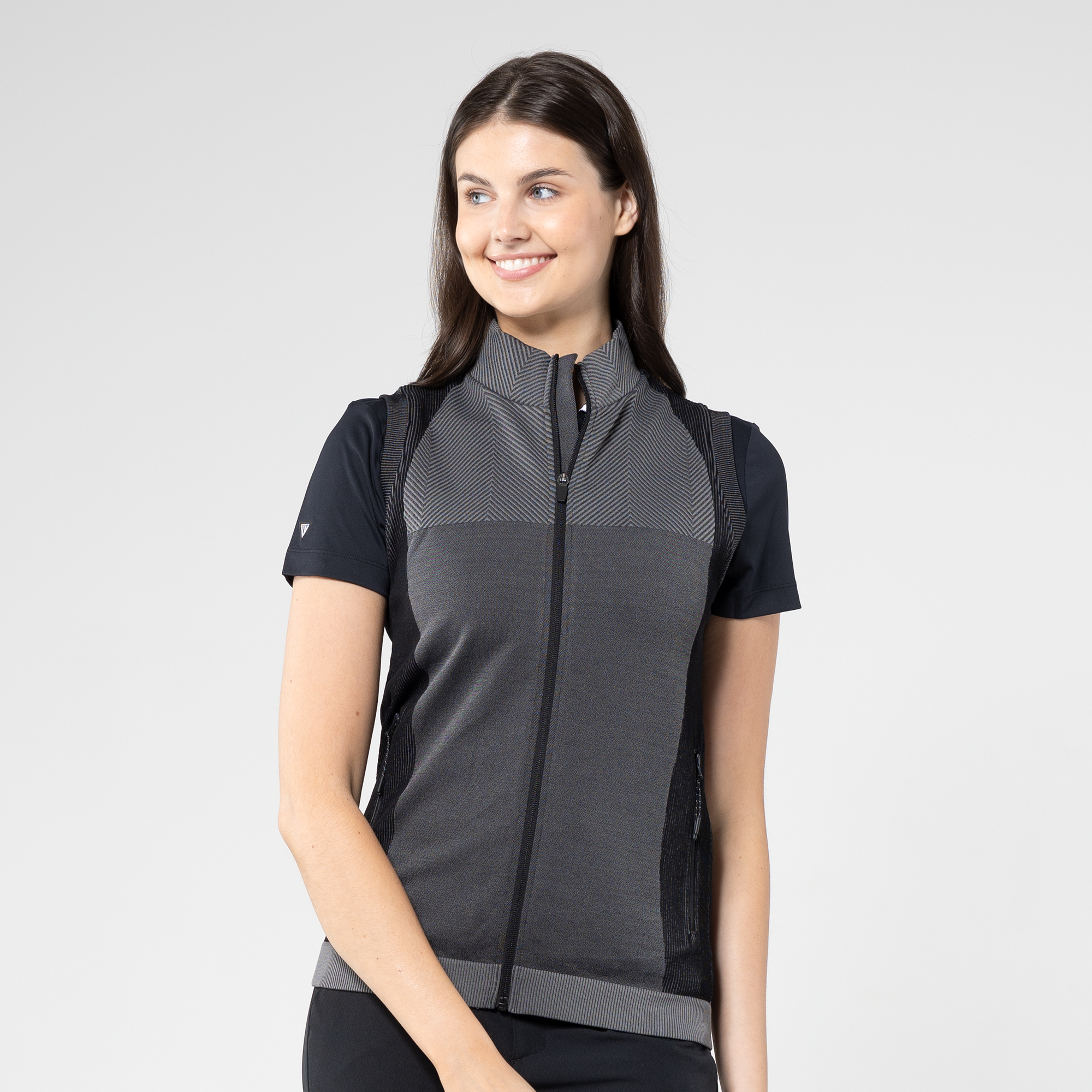 Elevate your winter wardrobe with the Tension Women's Vest a perfect fusion of style and versatility. Crafted from a dynamic blend of 57% polyester, 38% nylon, and 5% spandex, this engineered knit full-zip vest provides the ideal balance of warmth and flexibility. The texture combination ensures added stretch, adapting seamlessly to your movements. The reverse coil zipper adds a sleek touch, while the side zipper pockets offer both functionality and flair. Stay cozy and chic in the Tension Women's Vest, a must-have layer for embracing the cold with confidence.