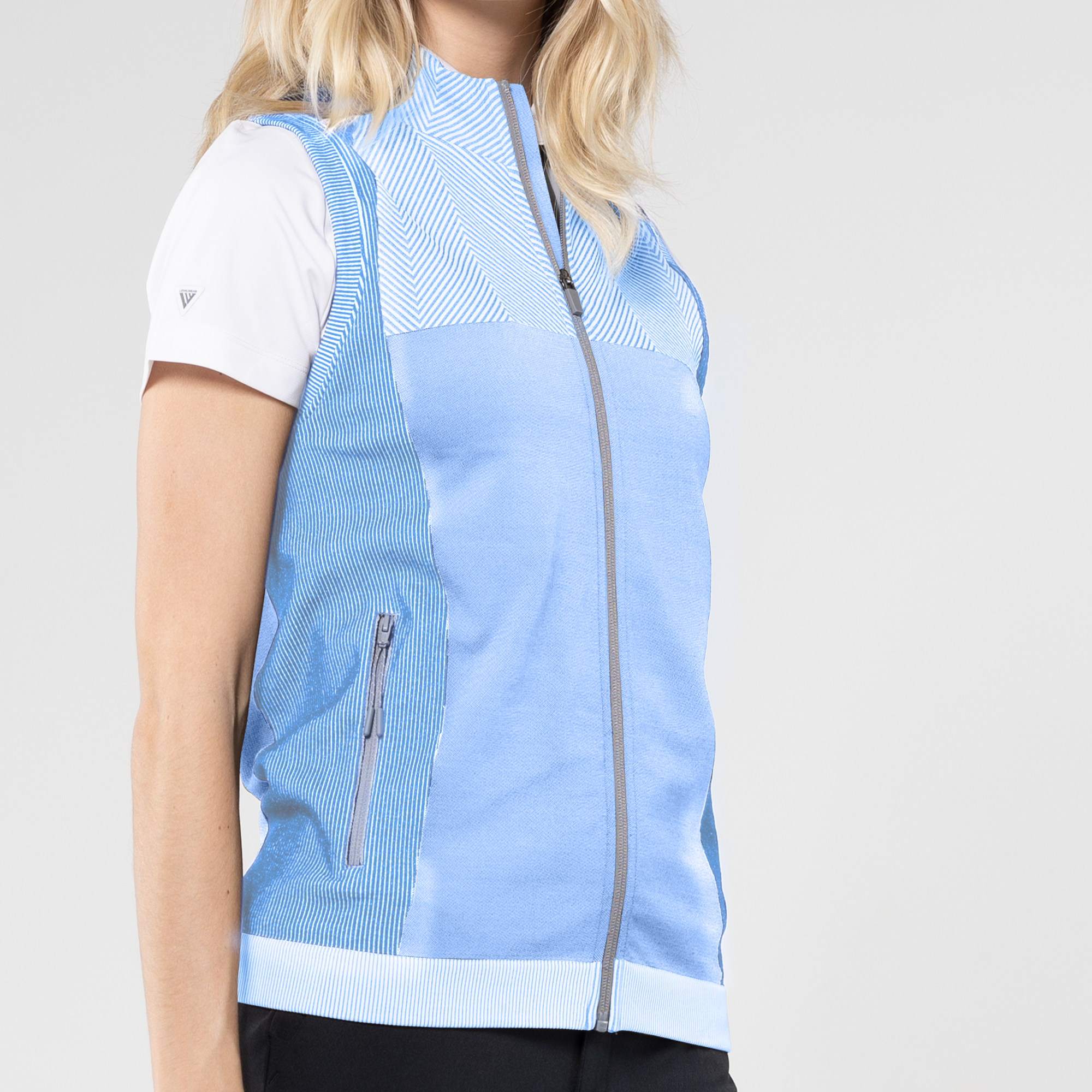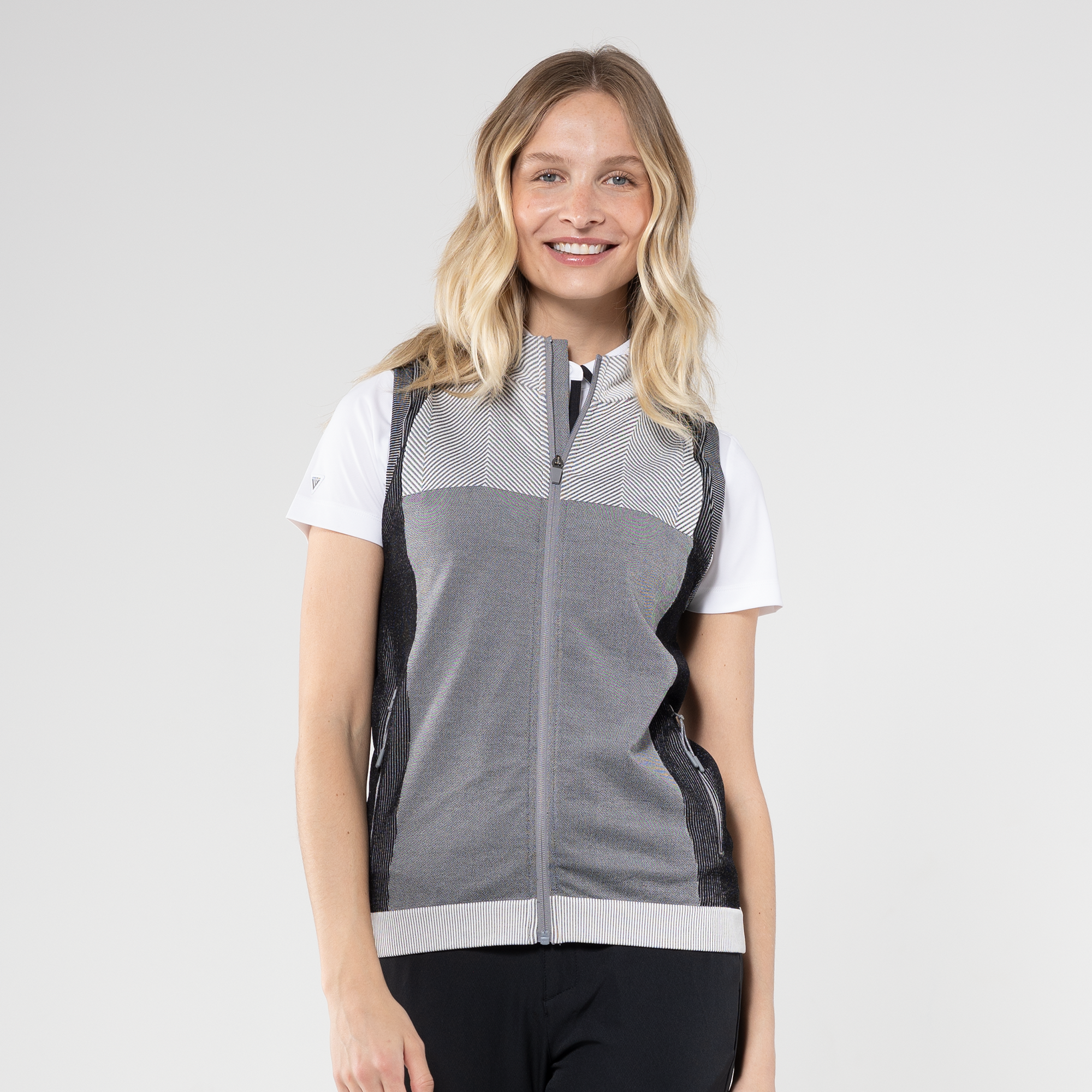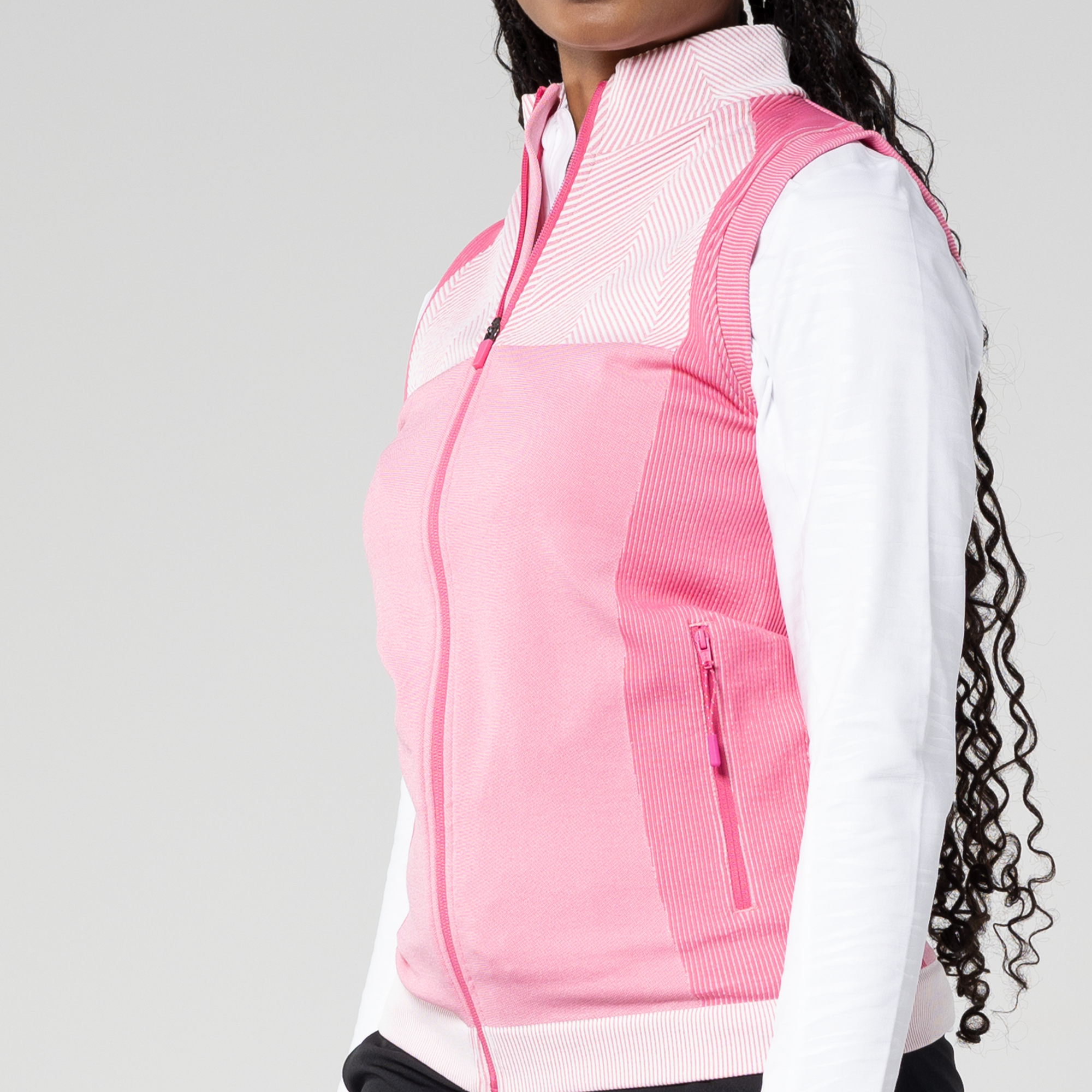 Elevate your winter wardrobe with the Tension Women's Vest a perfect fusion of style and versatility. Crafted from a dynamic blend of 57% polyester, 38% nylon, and 5% spandex, this engineered knit full-zip vest provides the ideal balance of warmth and flexibility. The texture combination ensures added stretch, adapting seamlessly to your movements. The reverse coil zipper adds a sleek touch, while the side zipper pockets offer both functionality and flair. Stay cozy and chic in the Tension Women's Vest, a must-have layer for embracing the cold with confidence.