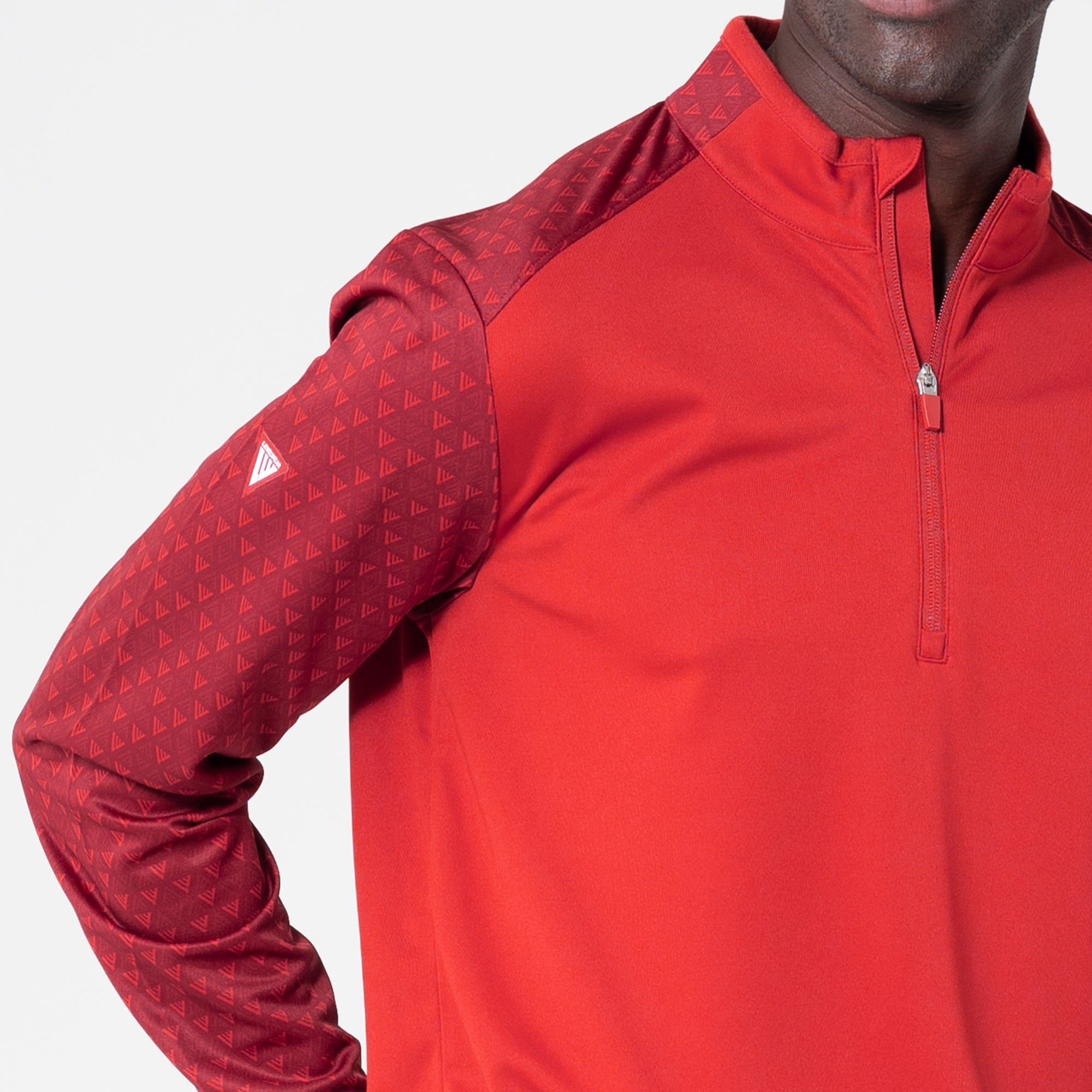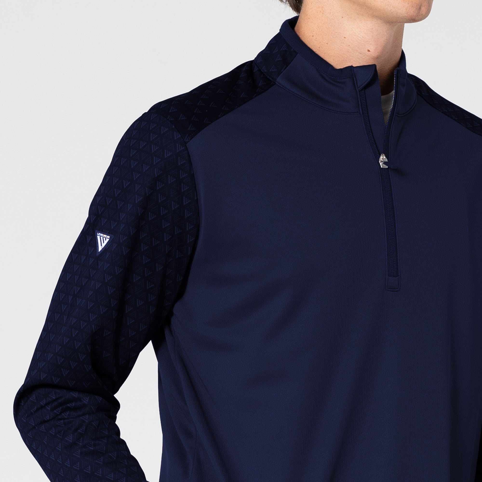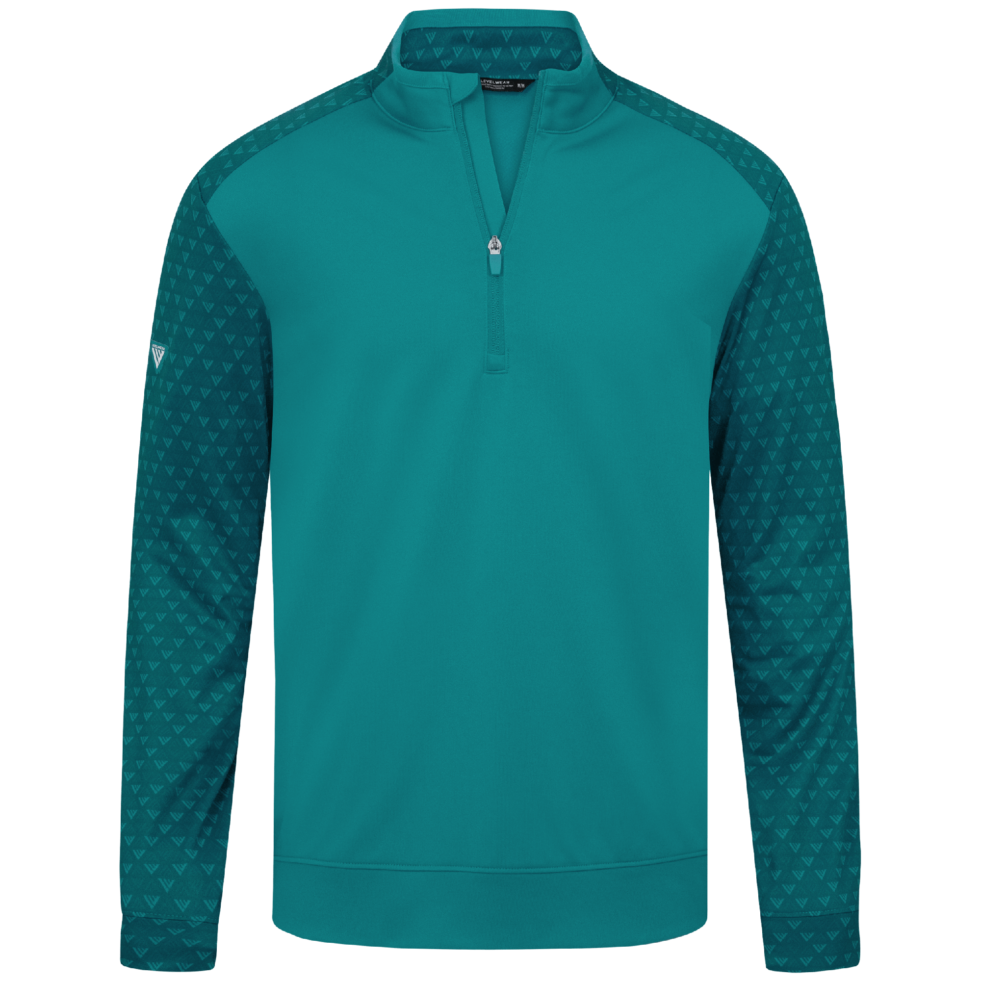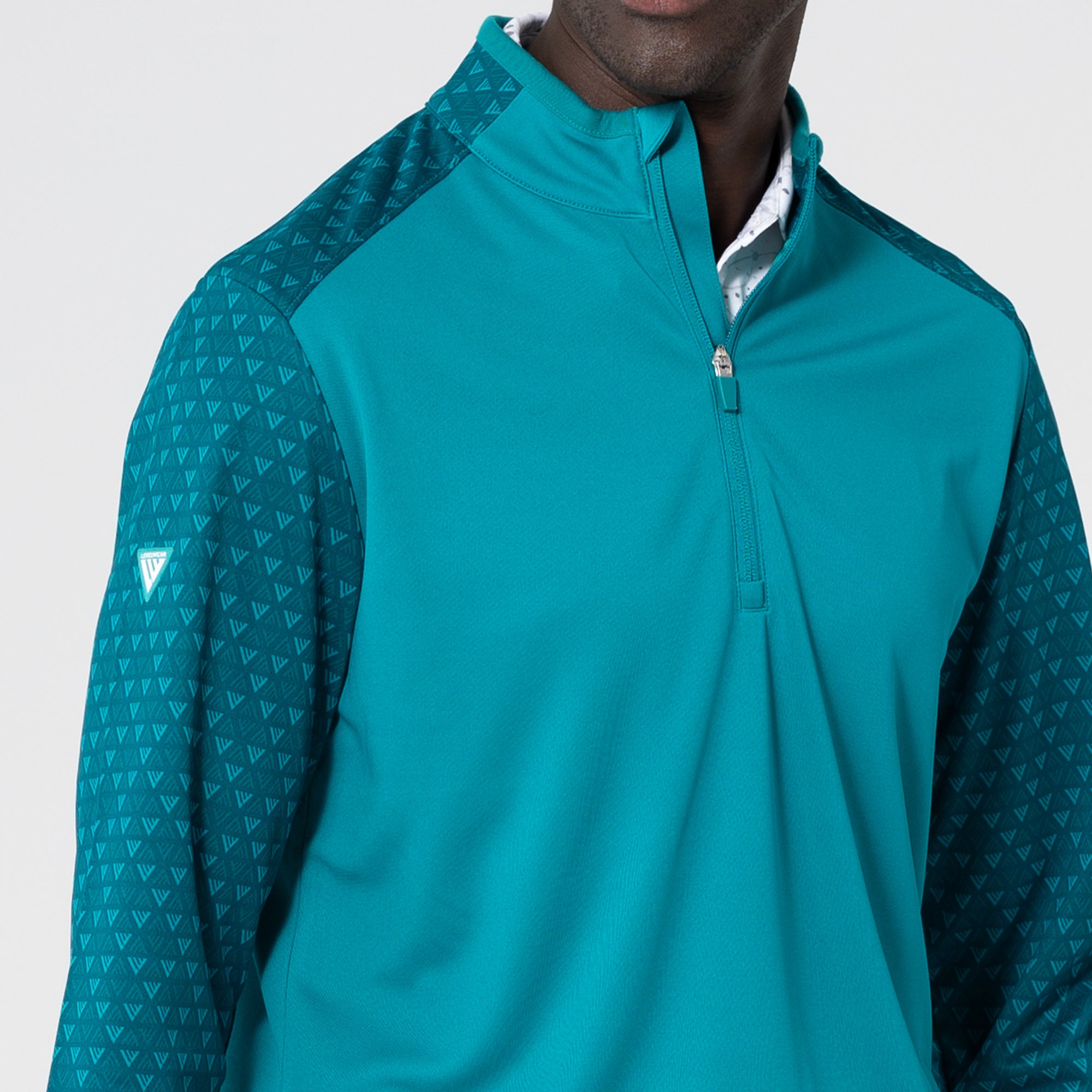 The Aztec midlayer is made from 100% polyester, featuring moisture-wicking technology to keep you dry throughout your activities. This midlayer includes a zippered front for easy wear and temperature control. It showcases a distinctive two-tone contrast along with a ribbed collar detail that adds a touch of sophistication. Signature monogram prints adorn the sleeves, shoulder yoke, and collar, elevating the visual appeal of the garment. Ideal for active pursuits, the Aztec midlayer ensures performance and durability in any setting.