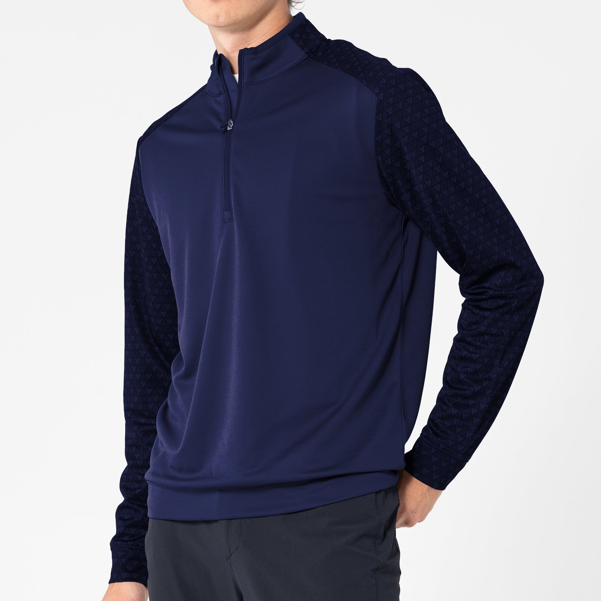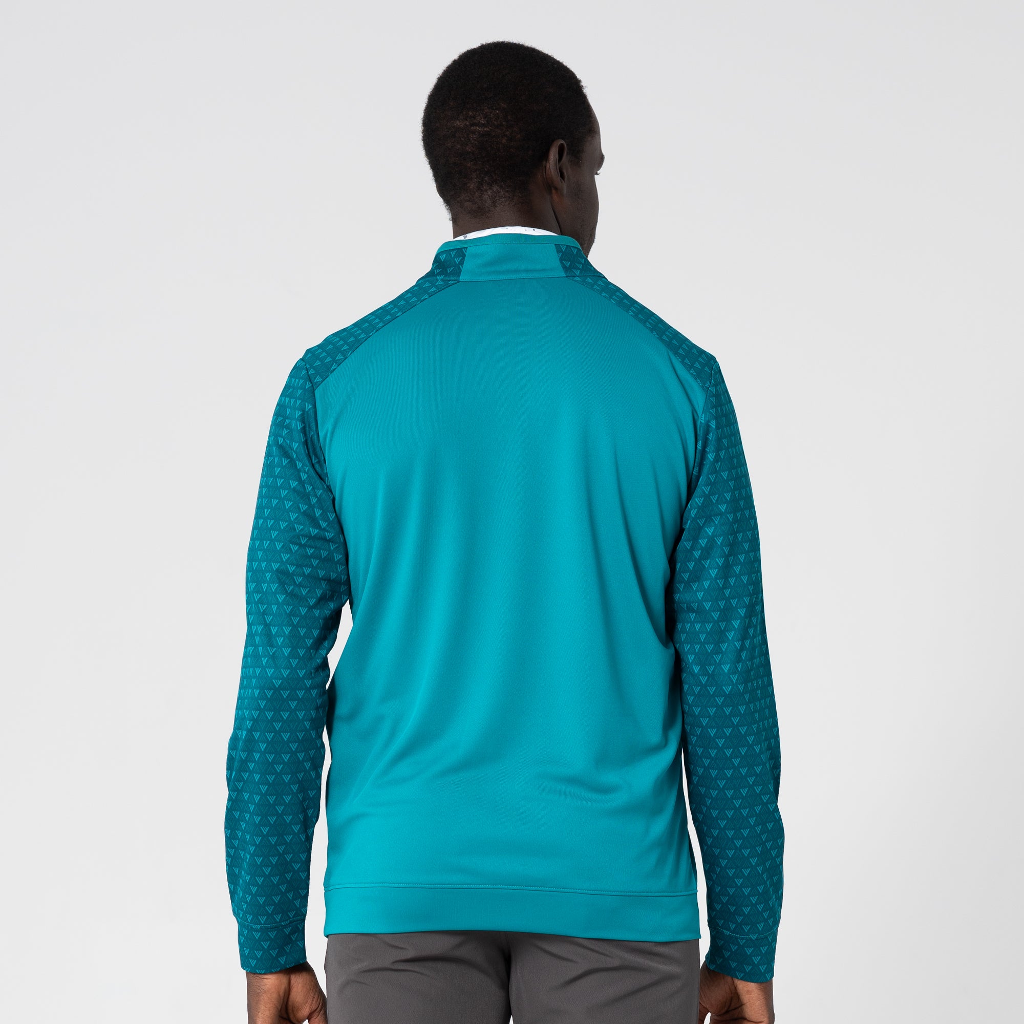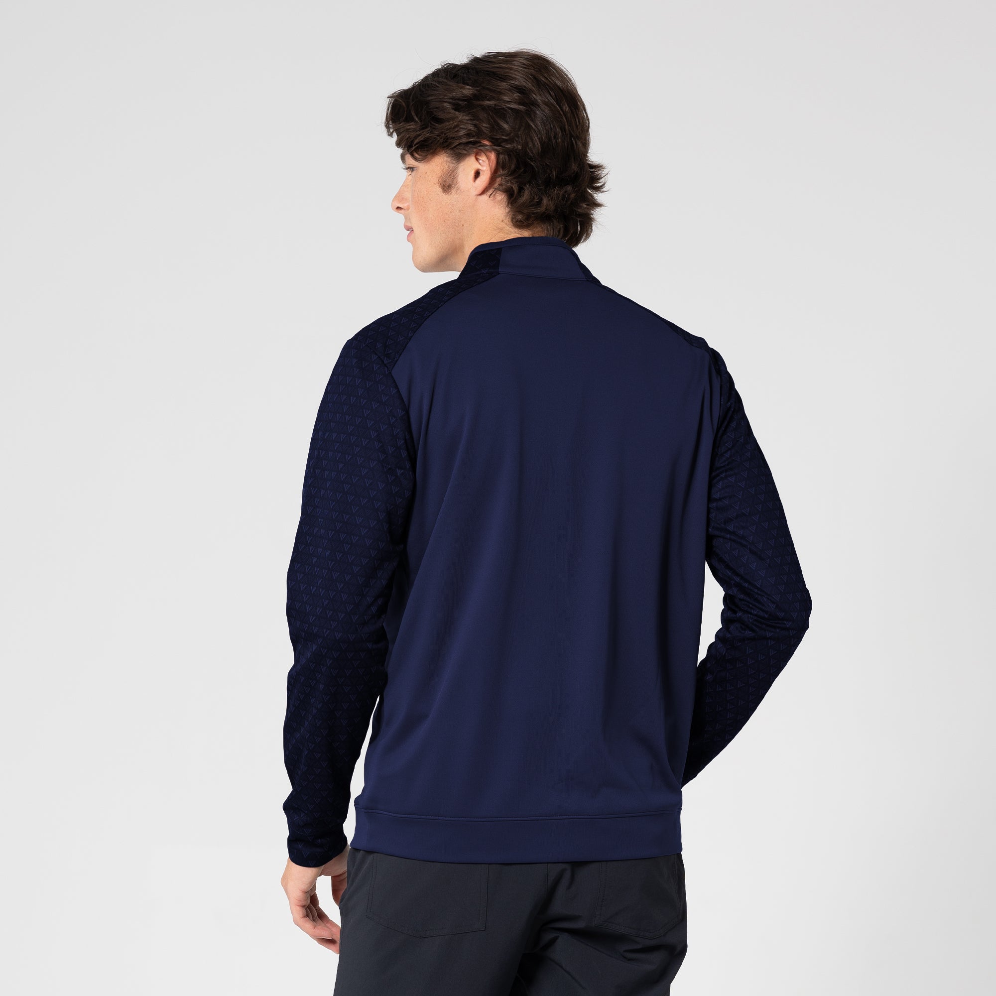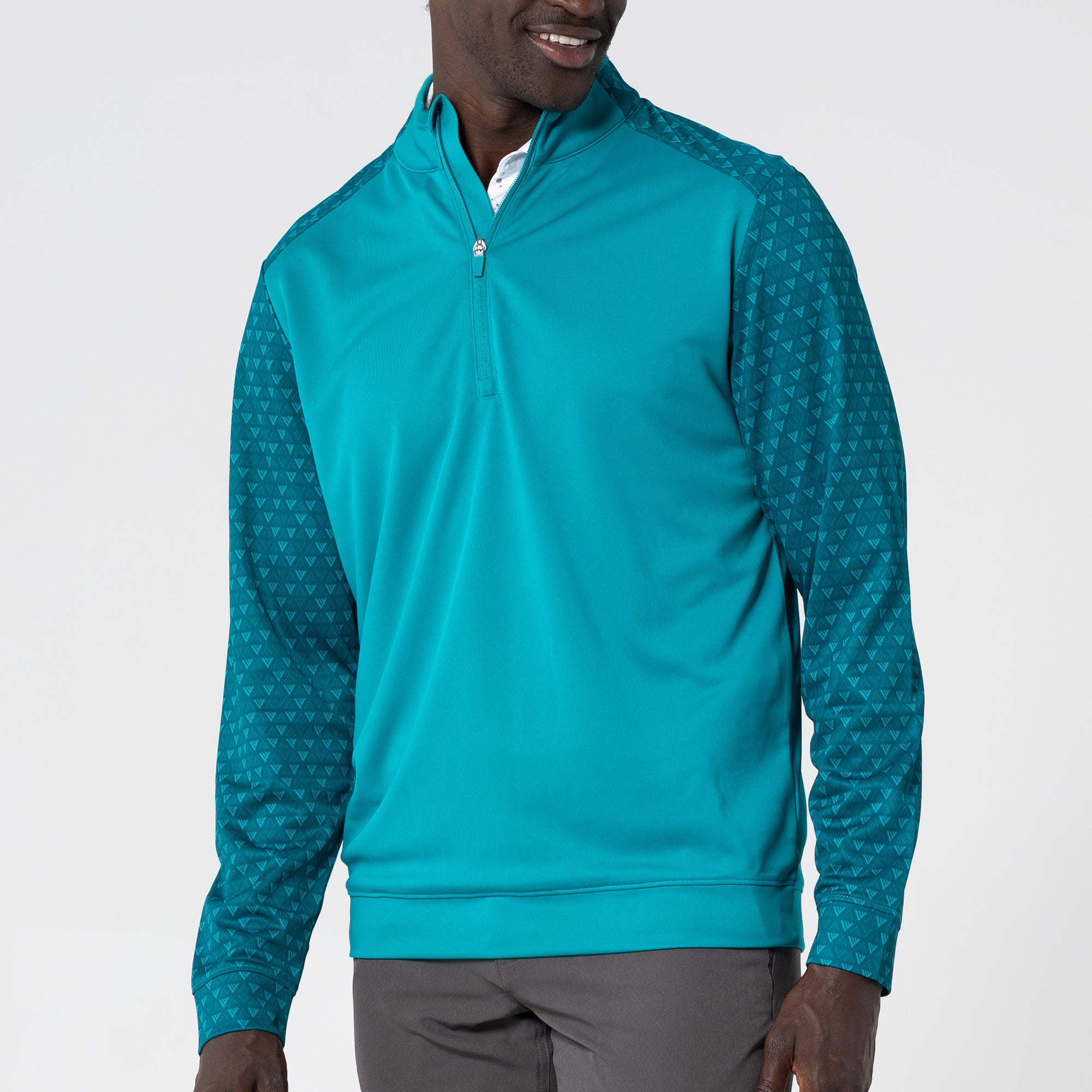 The Aztec midlayer is made from 100% polyester, featuring moisture-wicking technology to keep you dry throughout your activities. This midlayer includes a zippered front for easy wear and temperature control. It showcases a distinctive two-tone contrast along with a ribbed collar detail that adds a touch of sophistication. Signature monogram prints adorn the sleeves, shoulder yoke, and collar, elevating the visual appeal of the garment. Ideal for active pursuits, the Aztec midlayer ensures performance and durability in any setting.