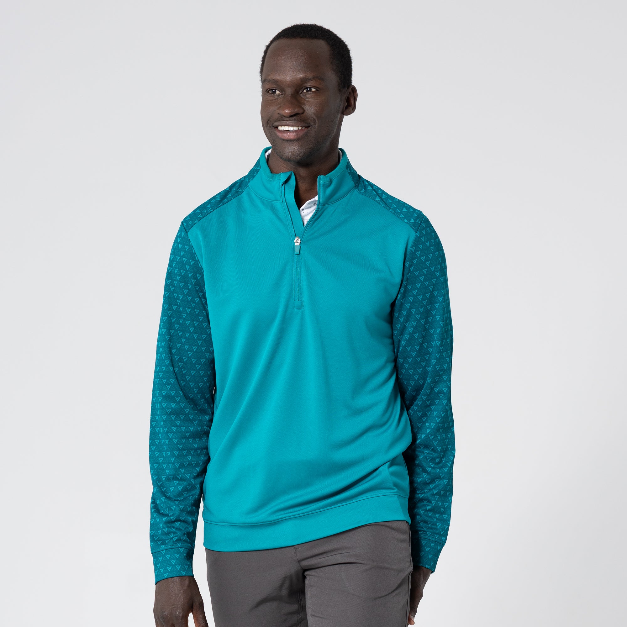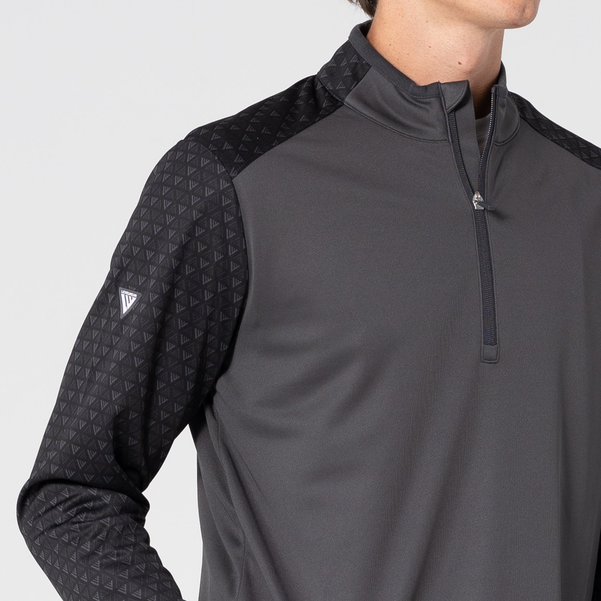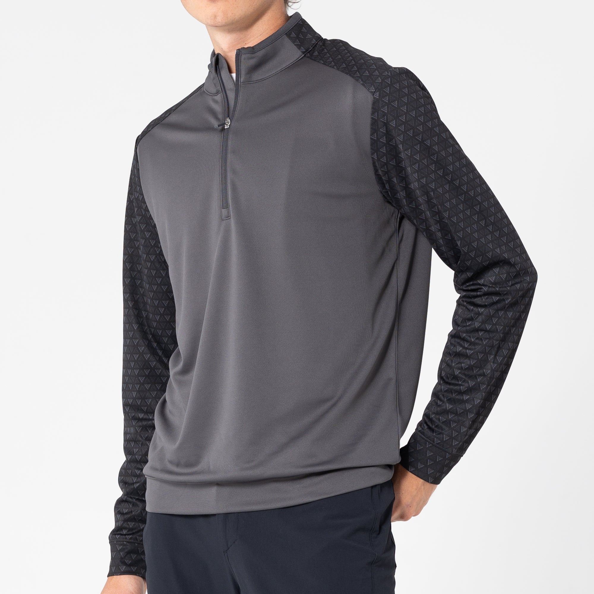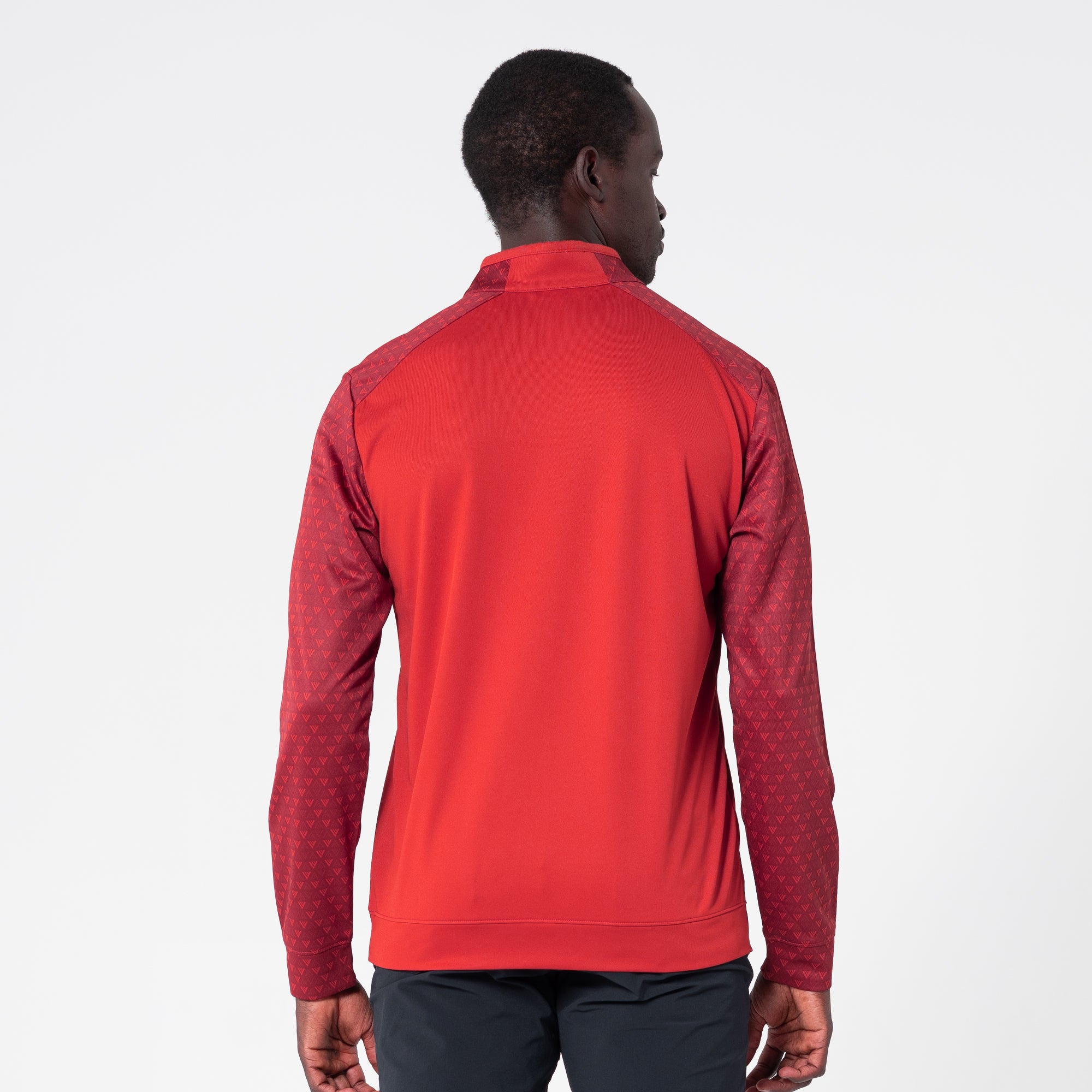 The Aztec midlayer is made from 100% polyester, featuring moisture-wicking technology to keep you dry throughout your activities. This midlayer includes a zippered front for easy wear and temperature control. It showcases a distinctive two-tone contrast along with a ribbed collar detail that adds a touch of sophistication. Signature monogram prints adorn the sleeves, shoulder yoke, and collar, elevating the visual appeal of the garment. Ideal for active pursuits, the Aztec midlayer ensures performance and durability in any setting.