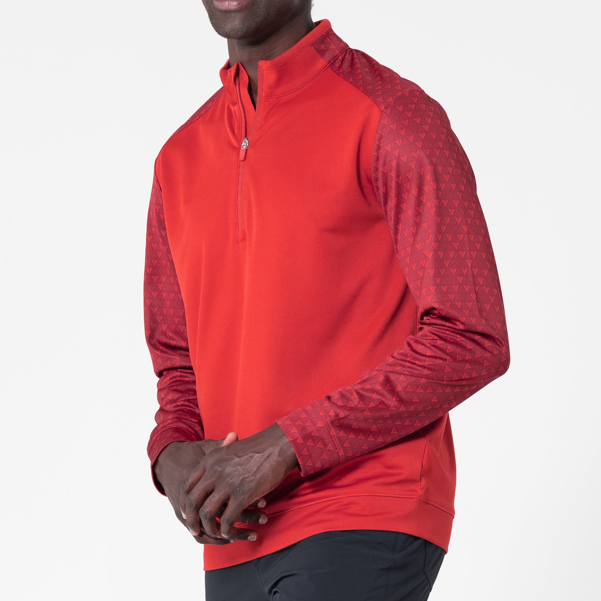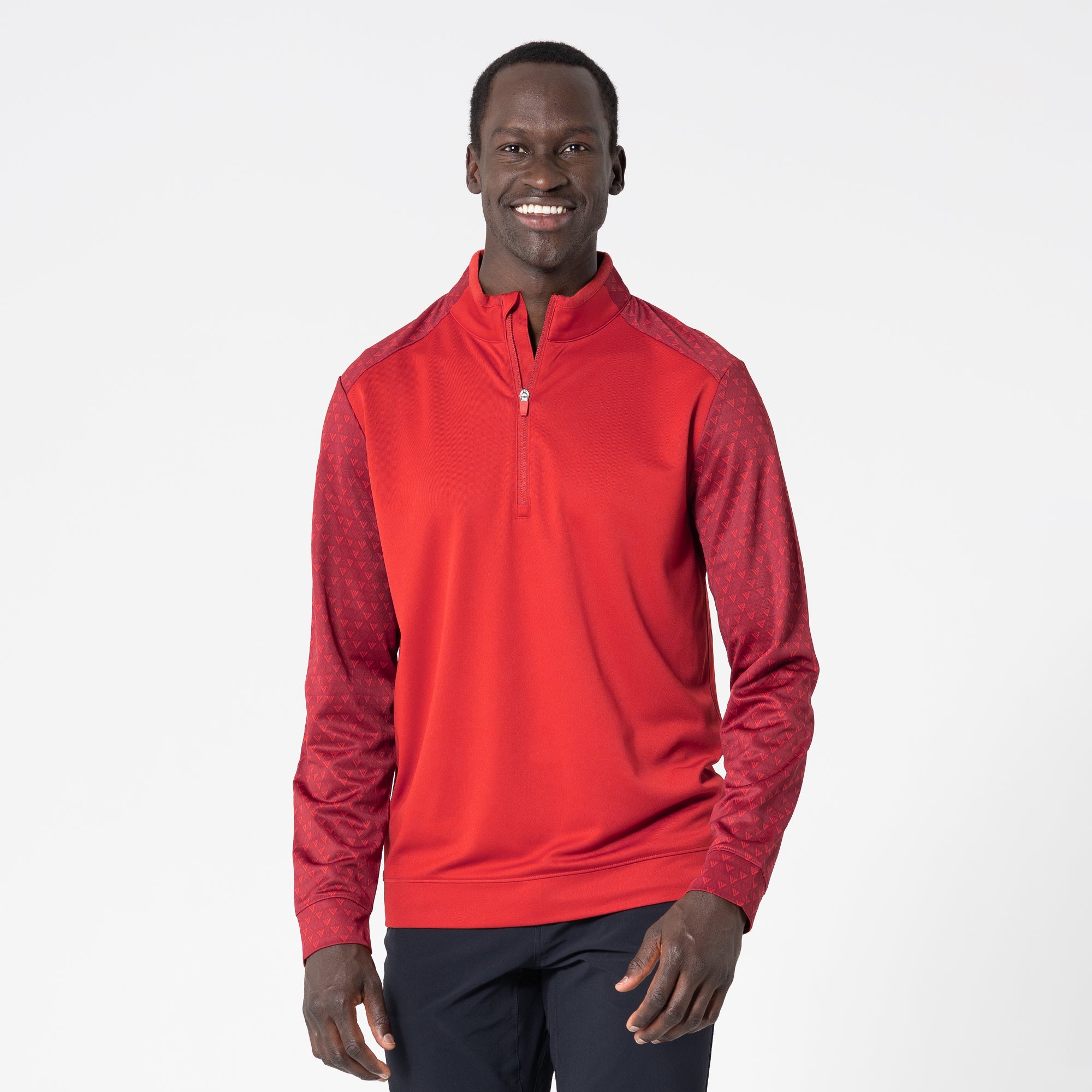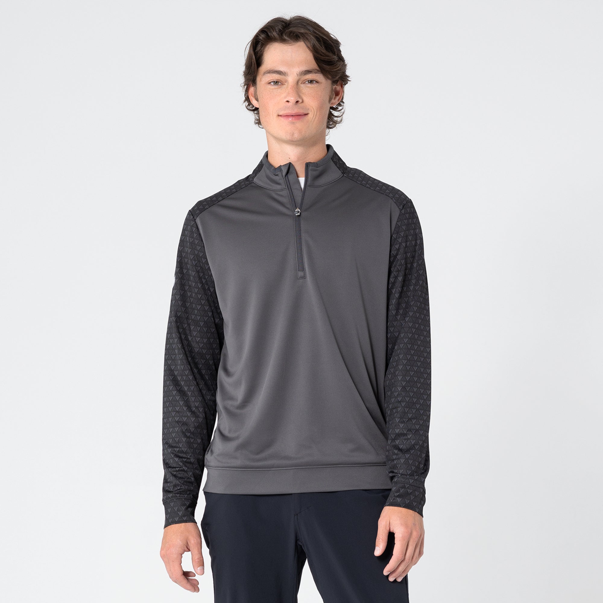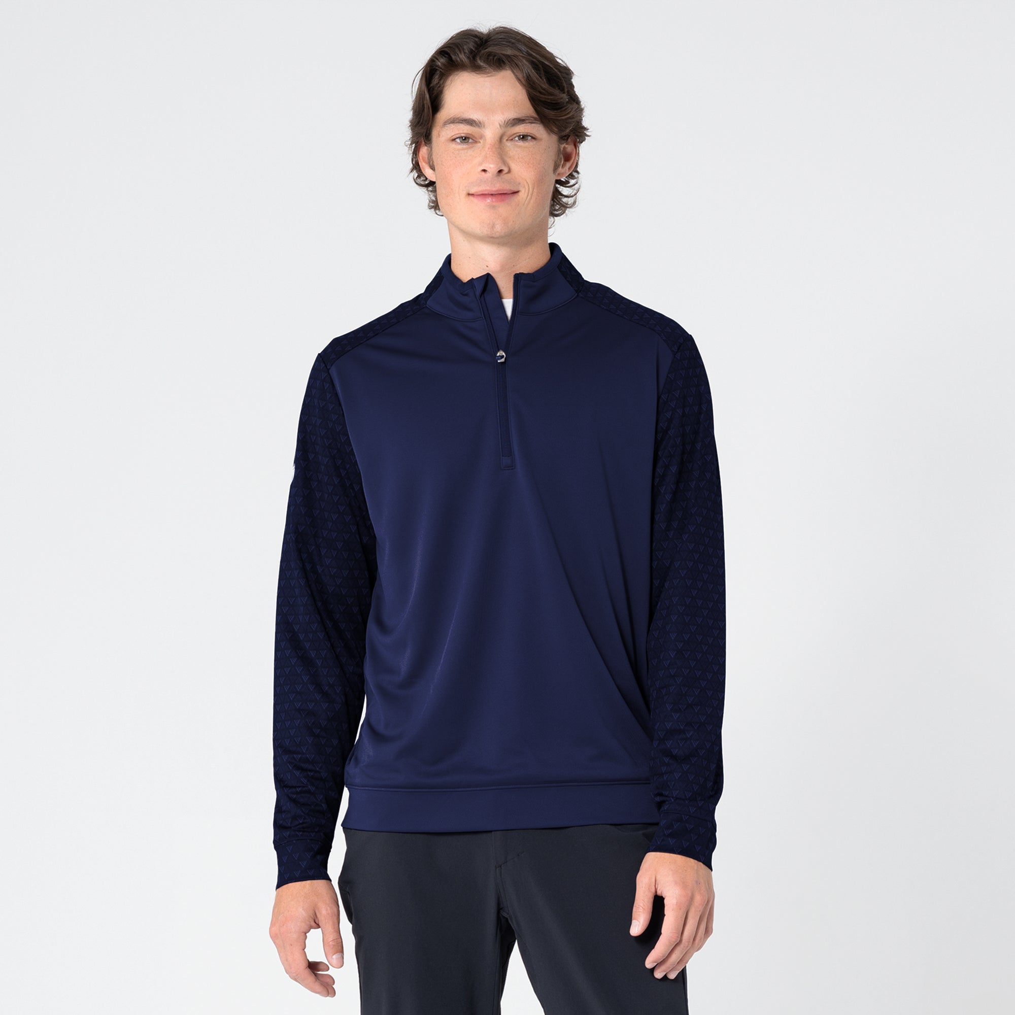 The Aztec midlayer is made from 100% polyester, featuring moisture-wicking technology to keep you dry throughout your activities. This midlayer includes a zippered front for easy wear and temperature control. It showcases a distinctive two-tone contrast along with a ribbed collar detail that adds a touch of sophistication. Signature monogram prints adorn the sleeves, shoulder yoke, and collar, elevating the visual appeal of the garment. Ideal for active pursuits, the Aztec midlayer ensures performance and durability in any setting.
