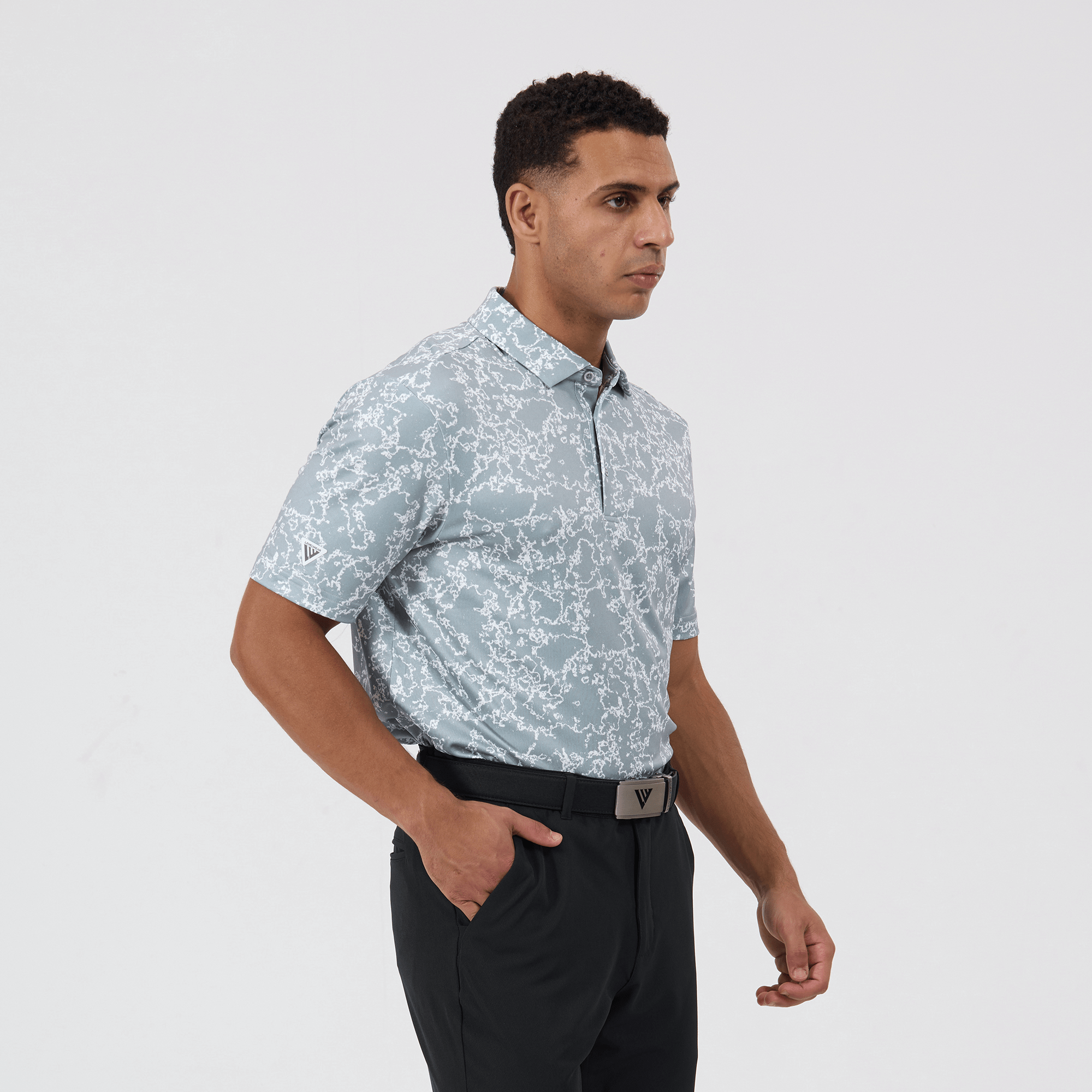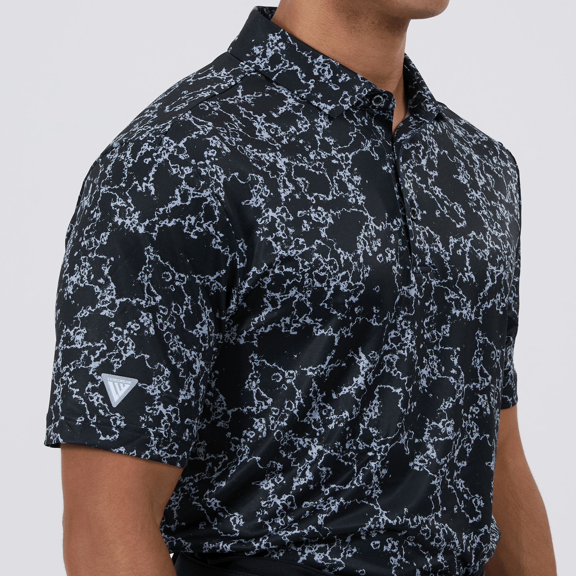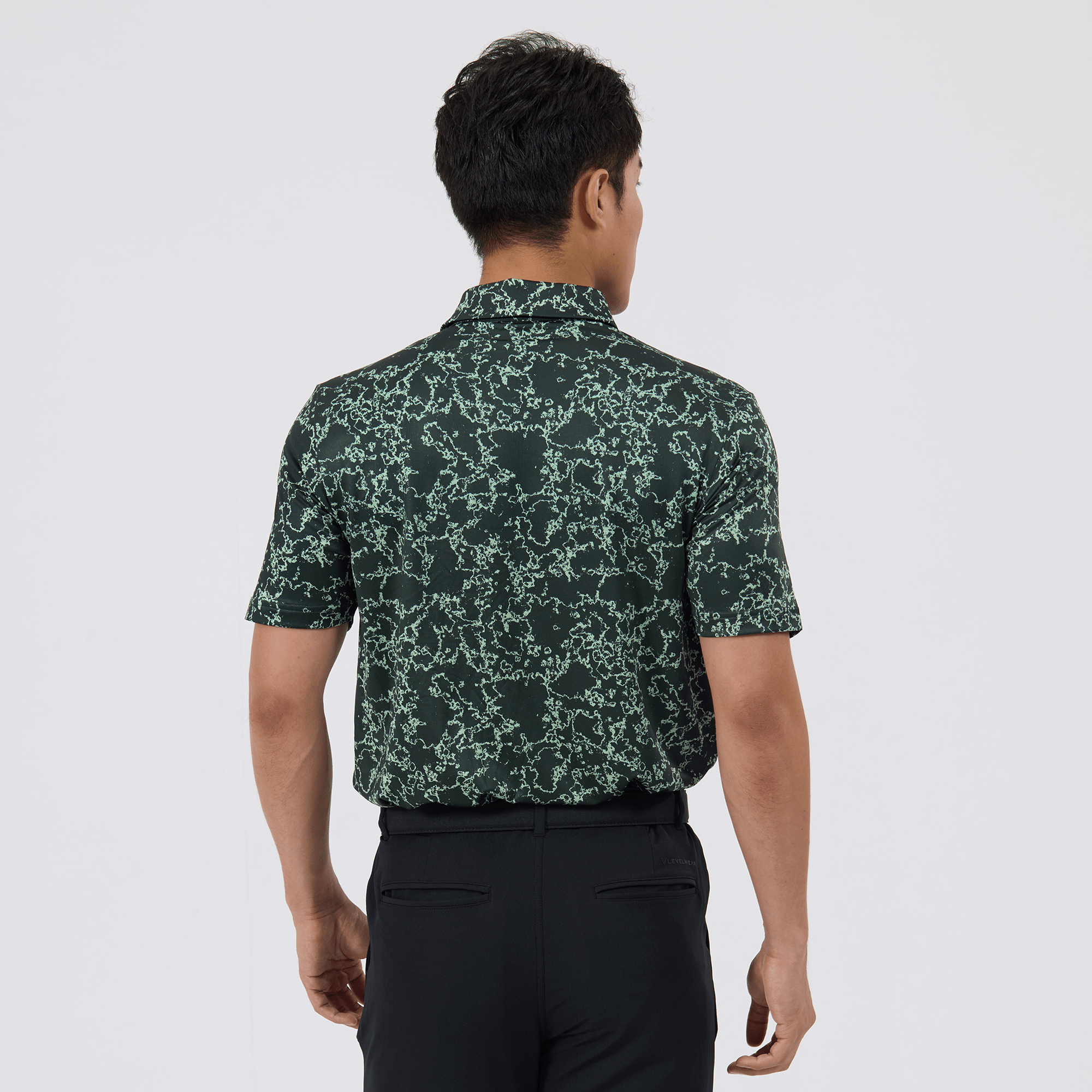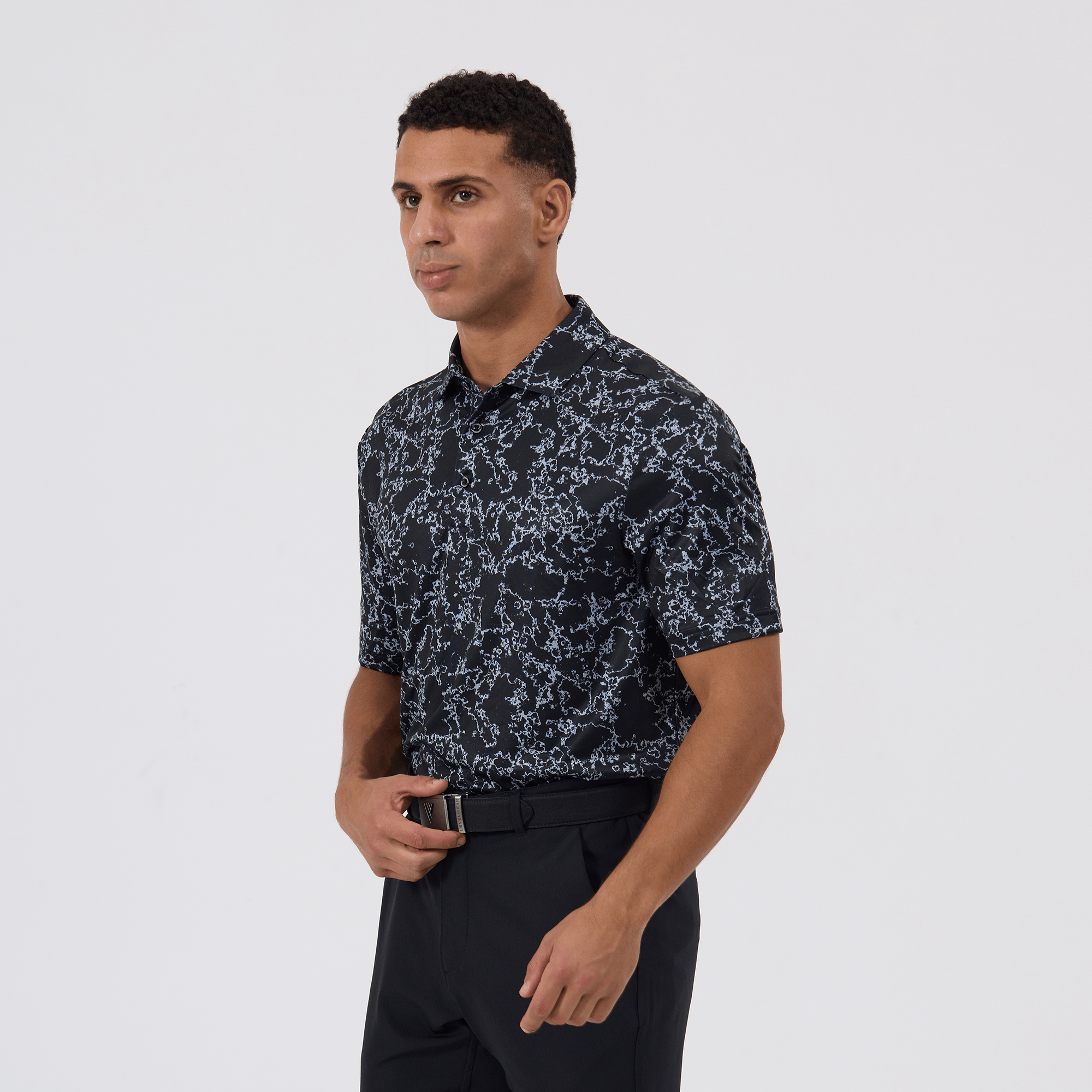 Introducing the men's Camoflow polo, a modern twist on classic camouflage, designed for both the golf enthusiast and the style conscious. This polo is made from a blend of 91% polyester and 9% spandex, offering a flexible fit that moves with you. It features advanced moisture-wicking and anti-bacterial properties to ensure you stay cool and fresh, while UPF 50+ protection shields you from the sun's harmful rays during long hours outdoors. The self-fabric collar with built-in collar stay keeps the neckline neat and structured, and the high-low hem with side slits provides enhanced mobility and a contemporary silhouette. With its unique, updated take on camouflage, the Camoflow polo is perfect for golfers looking to make a statement on the course and in casual settings.