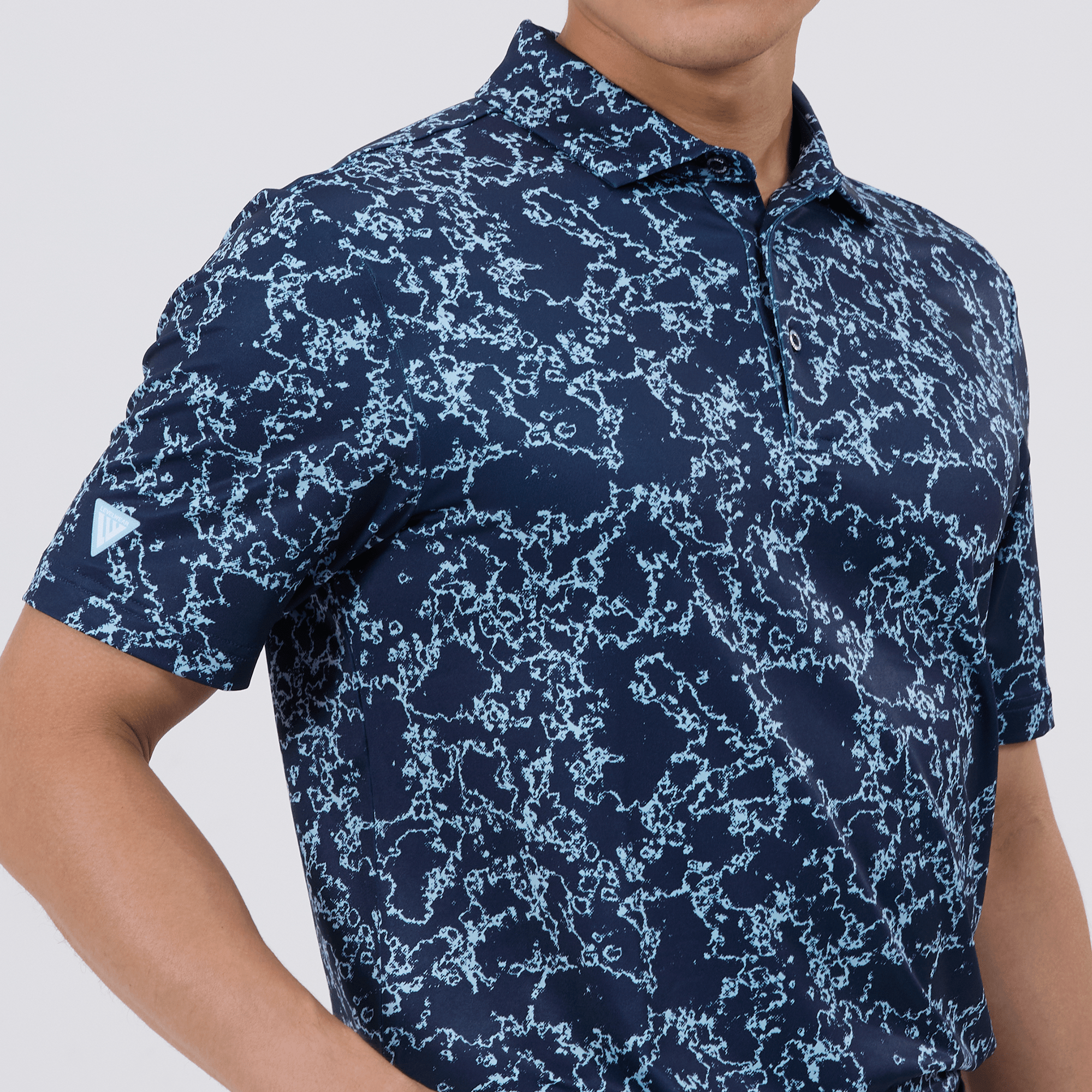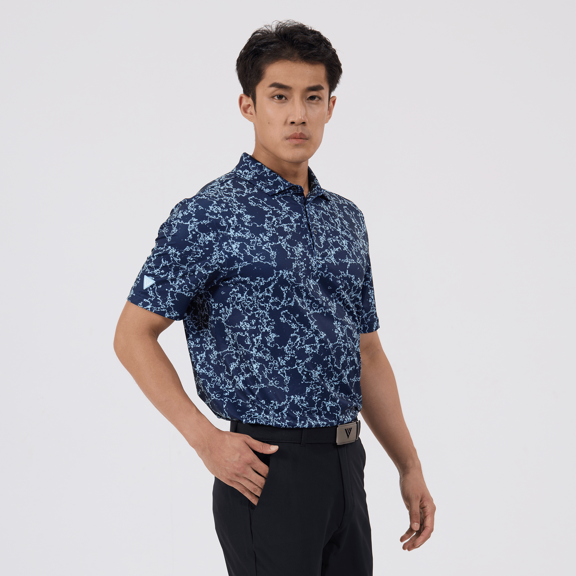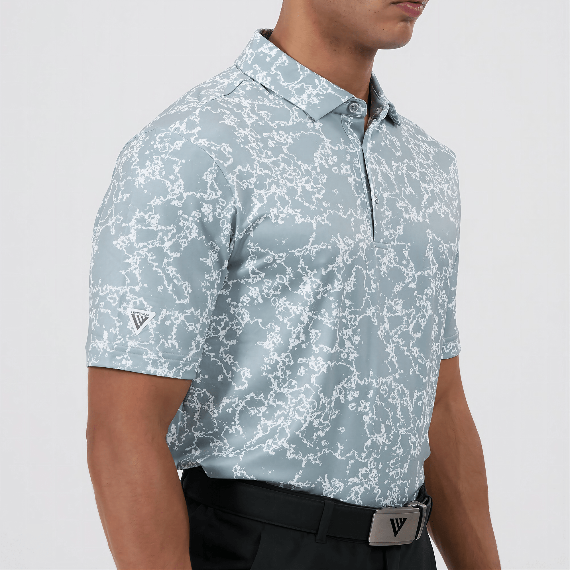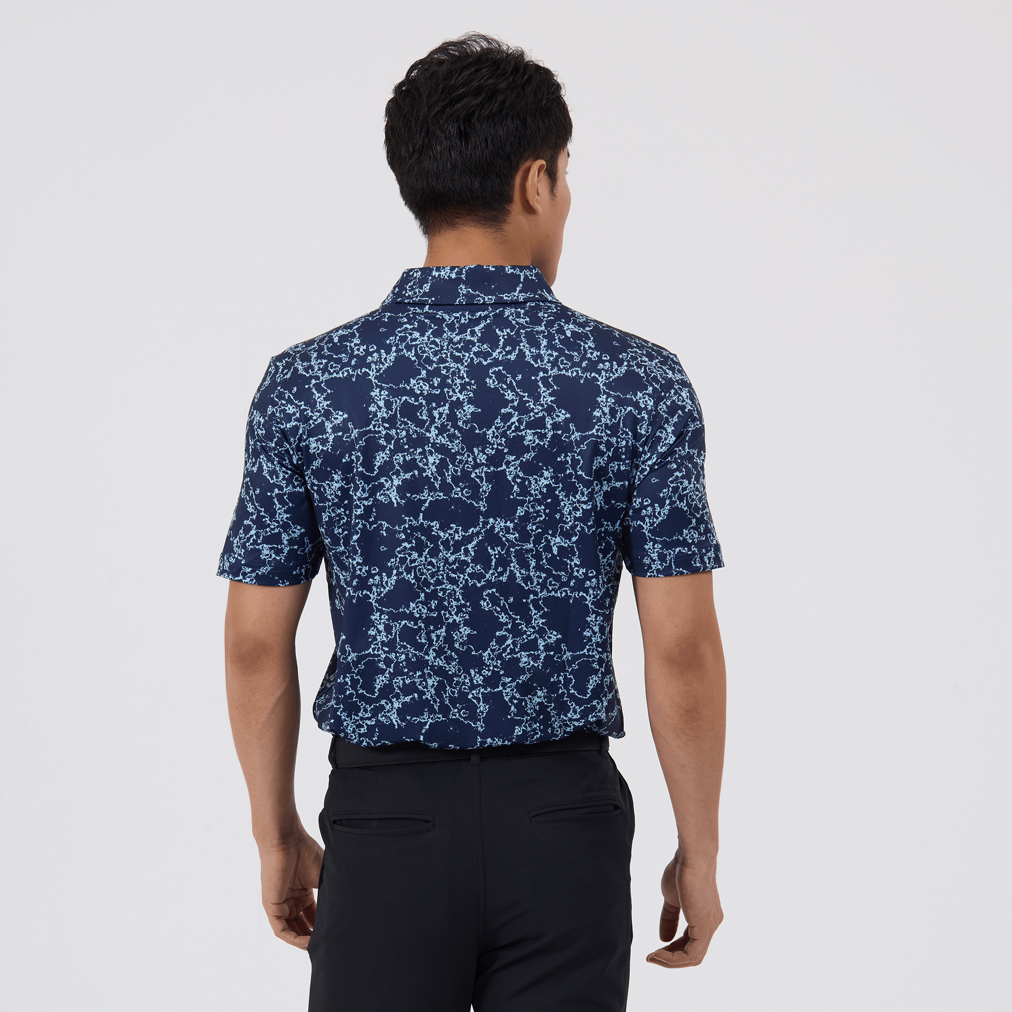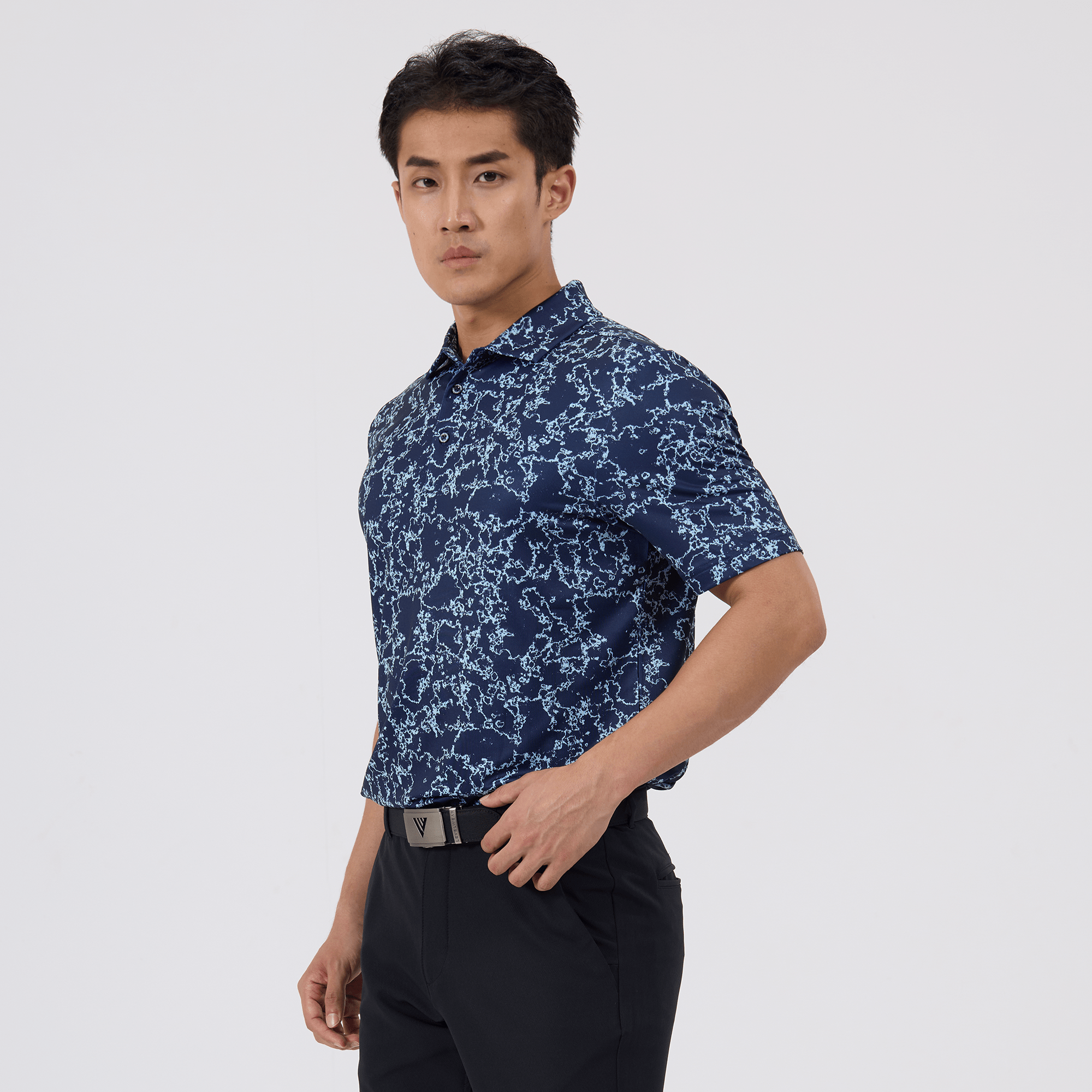 Introducing the men's Camoflow polo, a modern twist on classic camouflage, designed for both the golf enthusiast and the style conscious. This polo is made from a blend of 91% polyester and 9% spandex, offering a flexible fit that moves with you. It features advanced moisture-wicking and anti-bacterial properties to ensure you stay cool and fresh, while UPF 50+ protection shields you from the sun's harmful rays during long hours outdoors. The self-fabric collar with built-in collar stay keeps the neckline neat and structured, and the high-low hem with side slits provides enhanced mobility and a contemporary silhouette. With its unique, updated take on camouflage, the Camoflow polo is perfect for golfers looking to make a statement on the course and in casual settings.