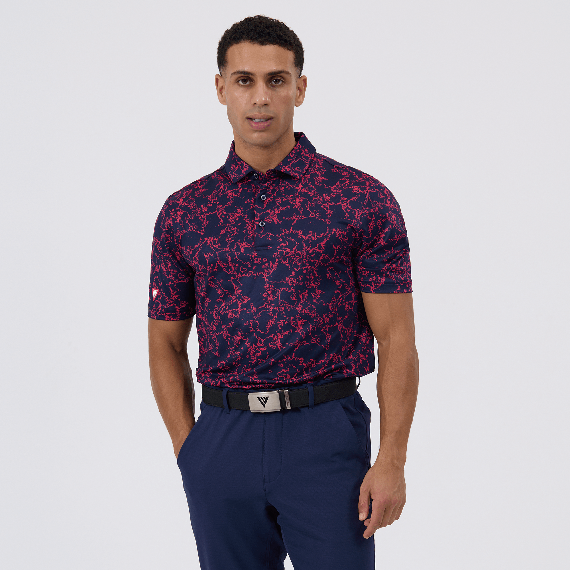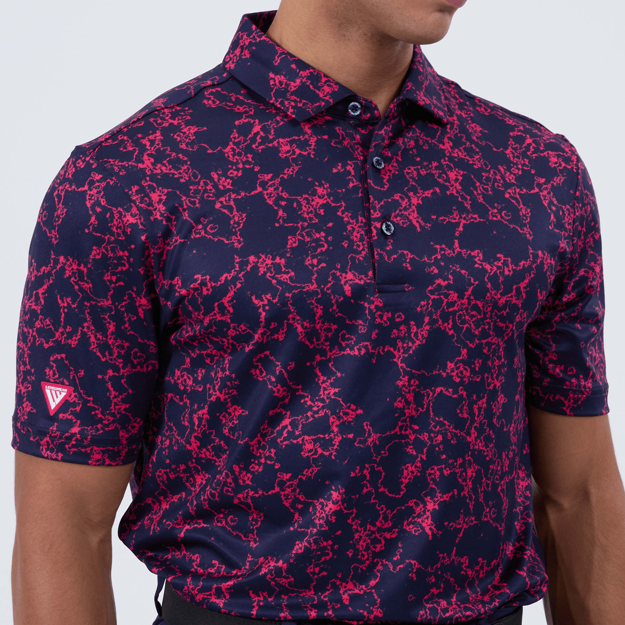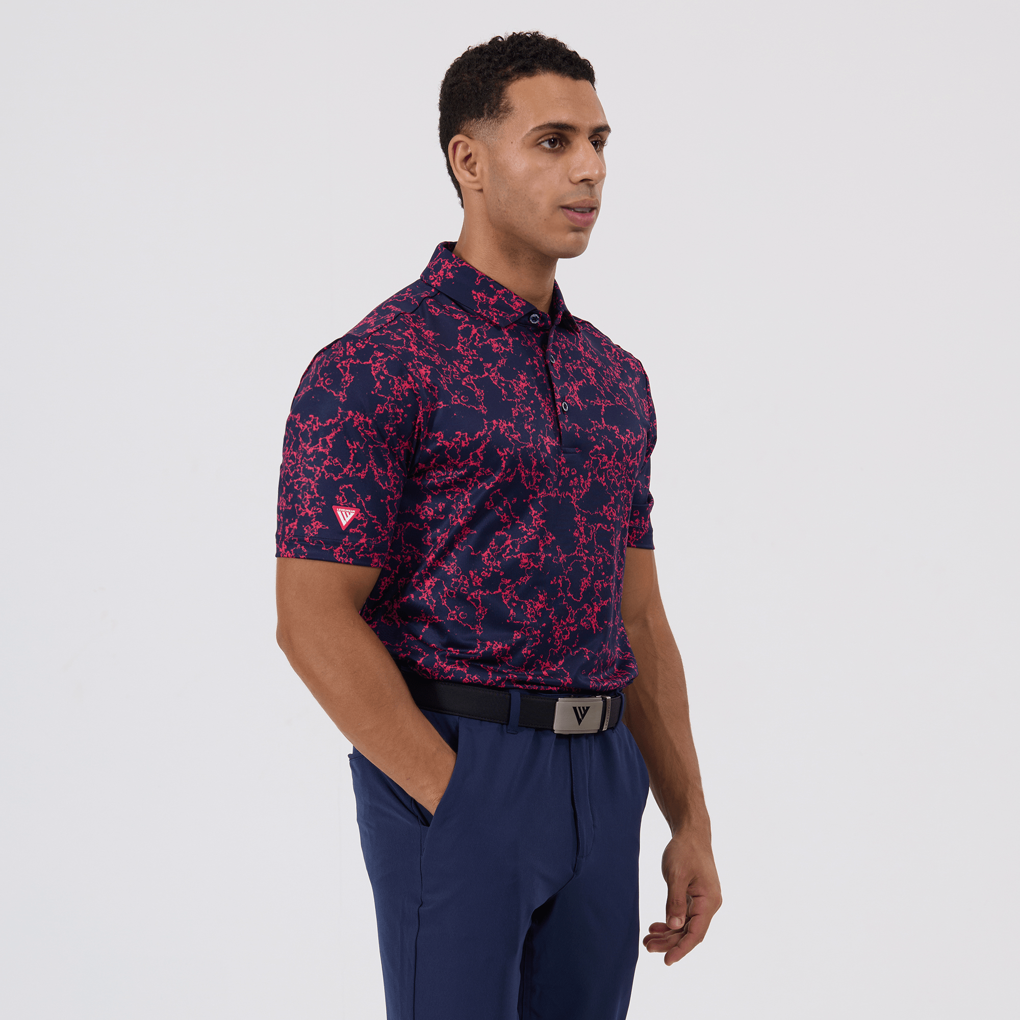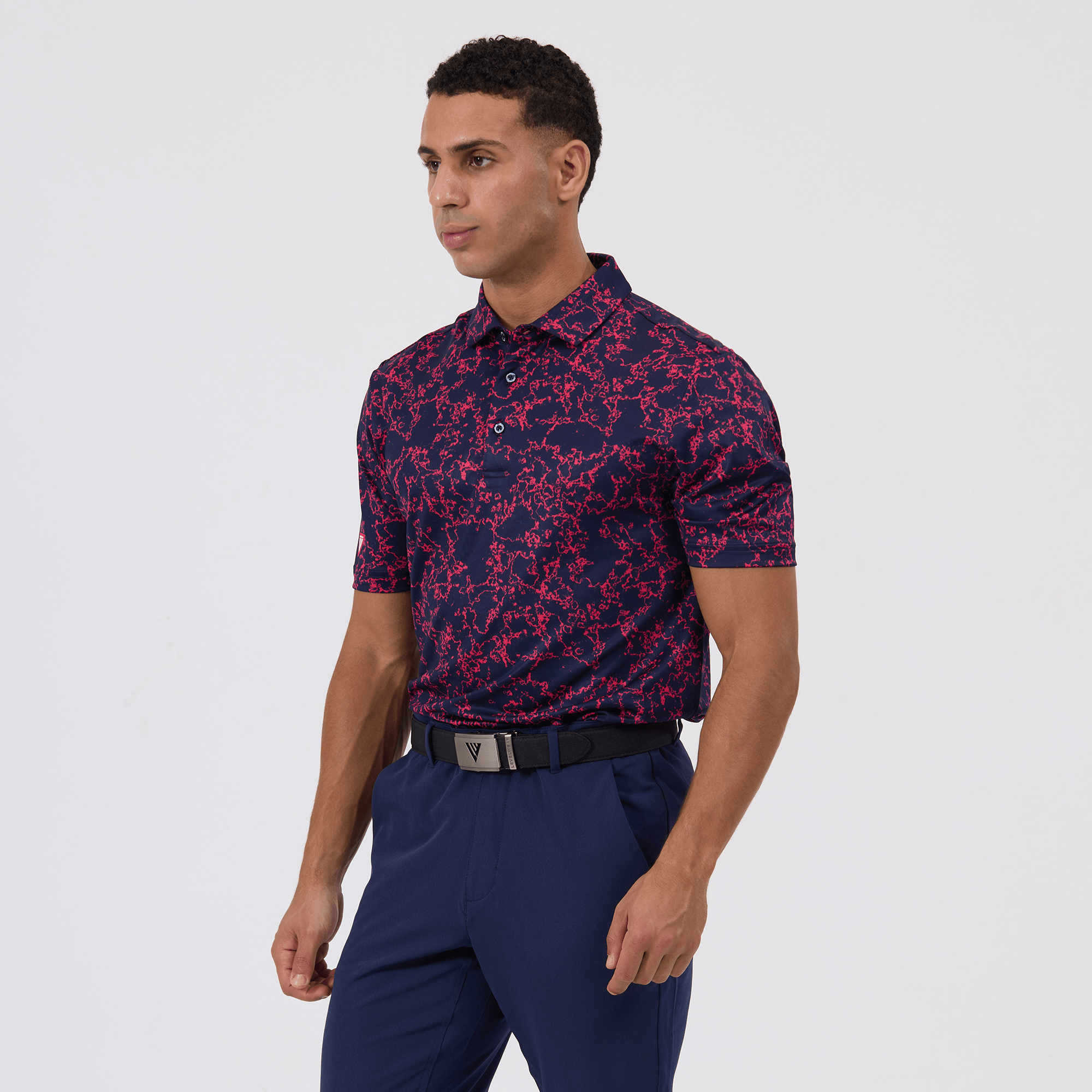 Introducing the men's Camoflow polo, a modern twist on classic camouflage, designed for both the golf enthusiast and the style conscious. This polo is made from a blend of 91% polyester and 9% spandex, offering a flexible fit that moves with you. It features advanced moisture-wicking and anti-bacterial properties to ensure you stay cool and fresh, while UPF 50+ protection shields you from the sun's harmful rays during long hours outdoors. The self-fabric collar with built-in collar stay keeps the neckline neat and structured, and the high-low hem with side slits provides enhanced mobility and a contemporary silhouette. With its unique, updated take on camouflage, the Camoflow polo is perfect for golfers looking to make a statement on the course and in casual settings.