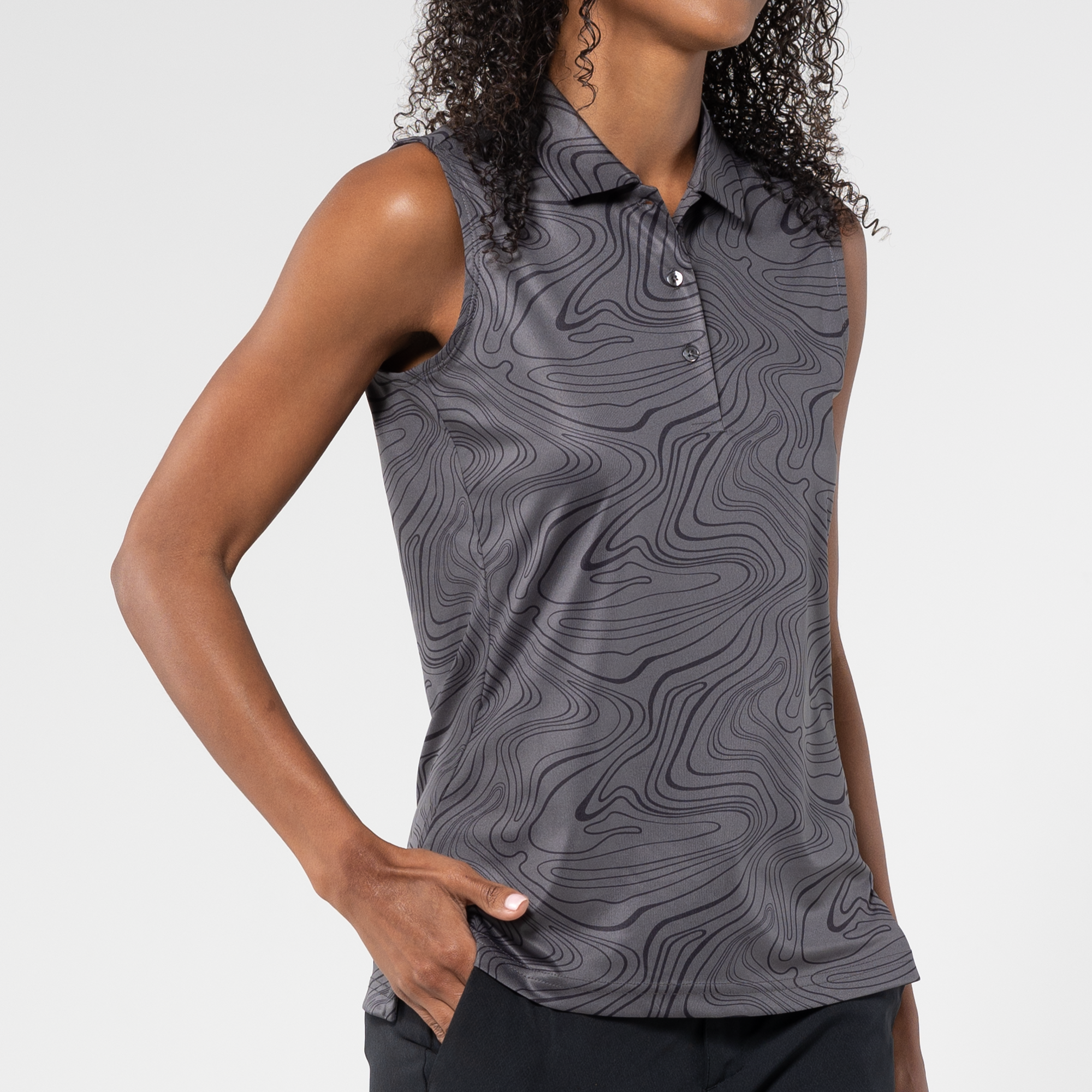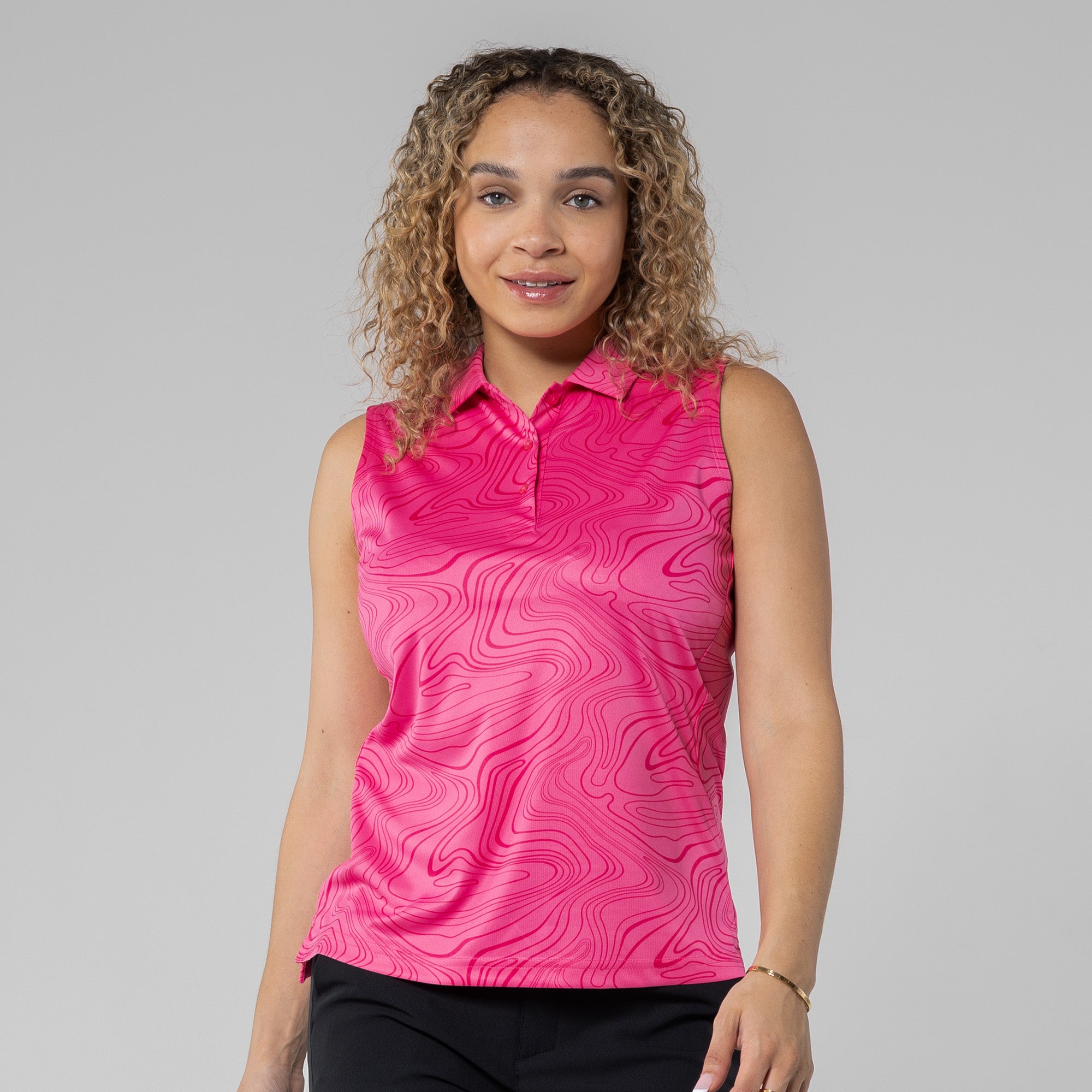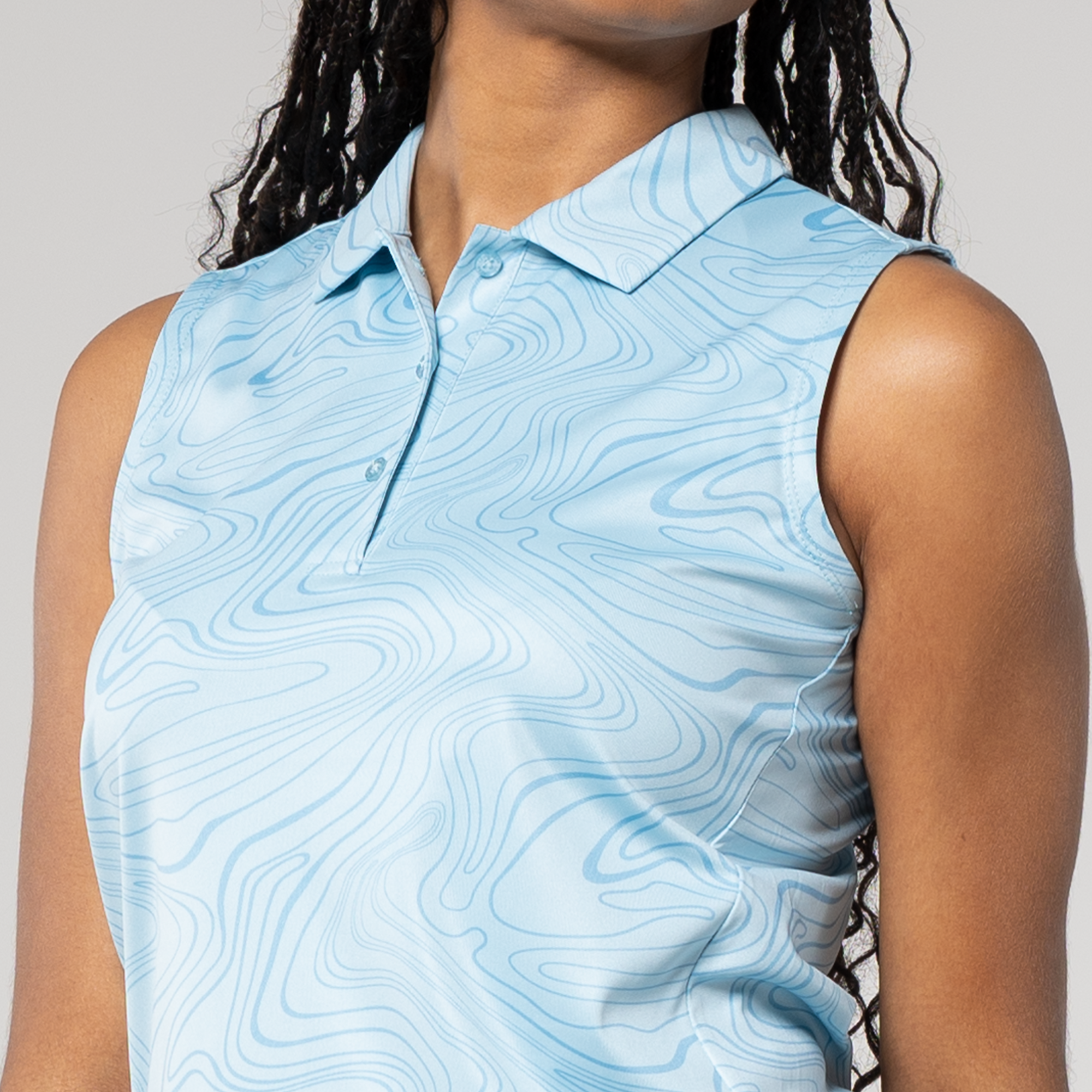 Level up your active wear with the Jazz Sleeveless Polo, a perfect blend of style and performance. Featuring an all-over stylish sublimation print that adds a contemporary flair, the contour princess seam ensures a flattering and feminine fit. The self-fabric collar adds a touch of sophistication to this sporty silhouette. Whether you're hitting the gym or enjoying outdoor activities, the Jazz Sleeveless Polo combines fashion-forward design with comfort, making it a must-have in your athletic wardrobe.