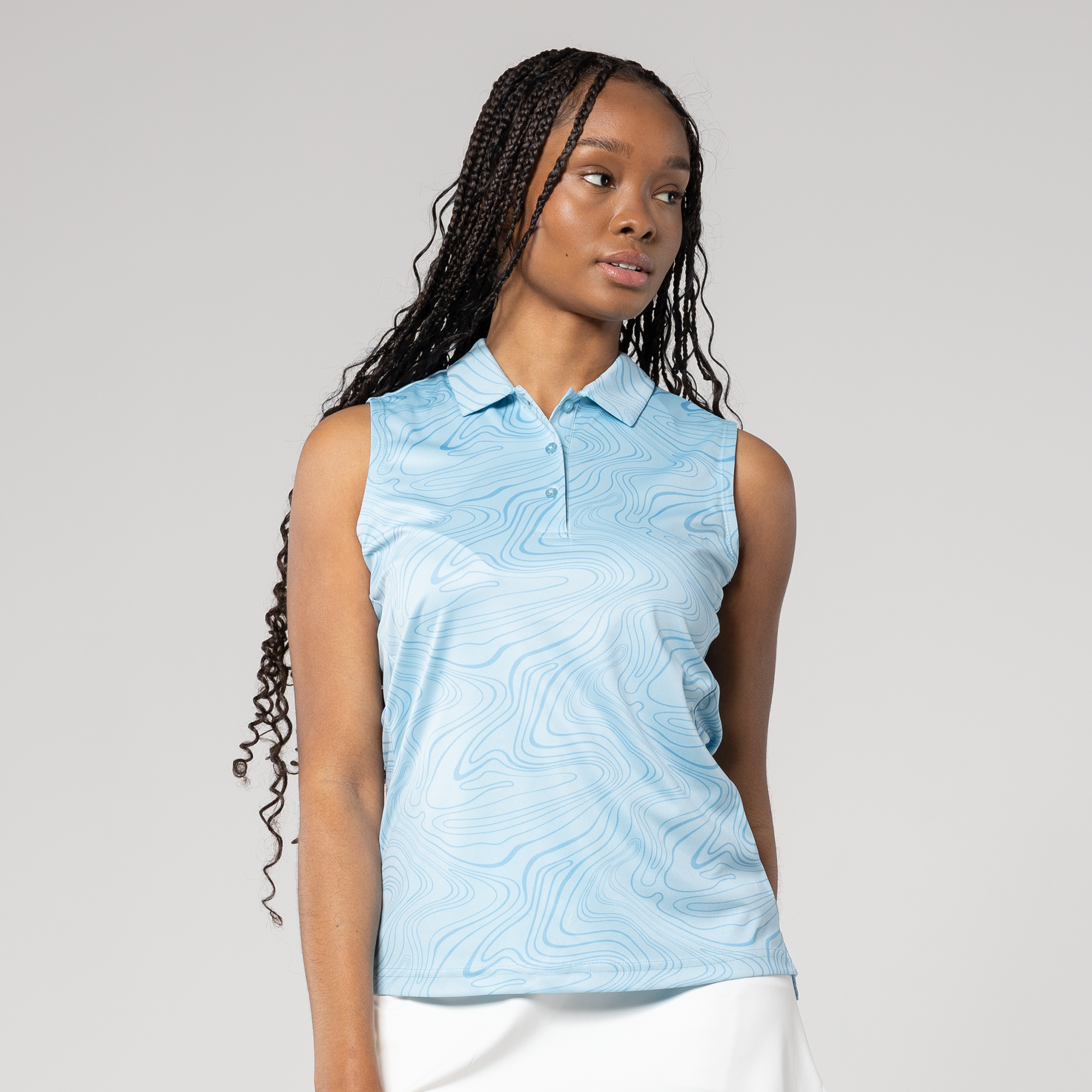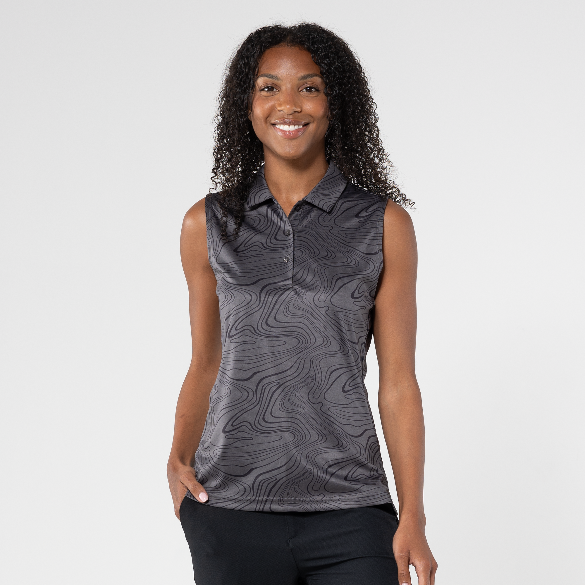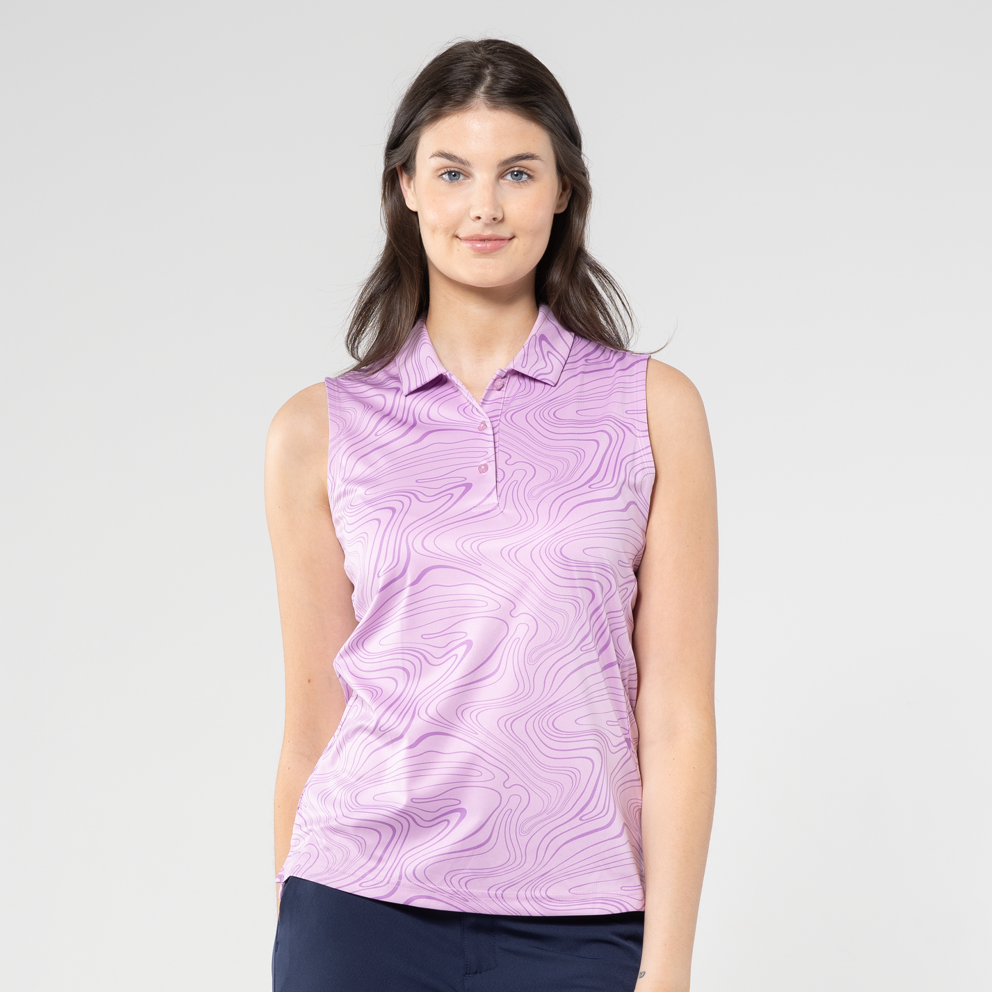 Level up your active wear with the Jazz Sleeveless Polo, a perfect blend of style and performance. Featuring an all-over stylish sublimation print that adds a contemporary flair, the contour princess seam ensures a flattering and feminine fit. The self-fabric collar adds a touch of sophistication to this sporty silhouette. Whether you're hitting the gym or enjoying outdoor activities, the Jazz Sleeveless Polo combines fashion-forward design with comfort, making it a must-have in your athletic wardrobe.