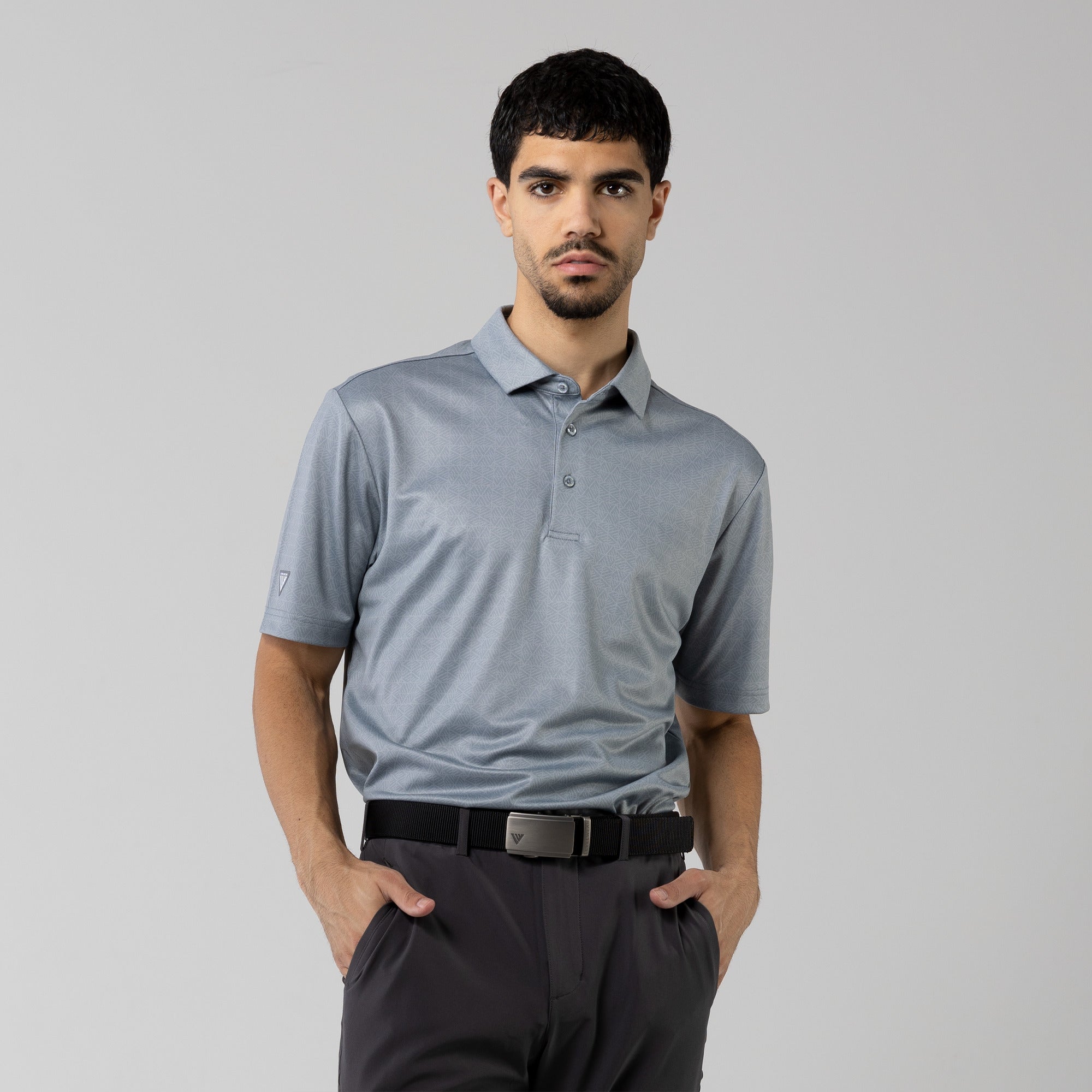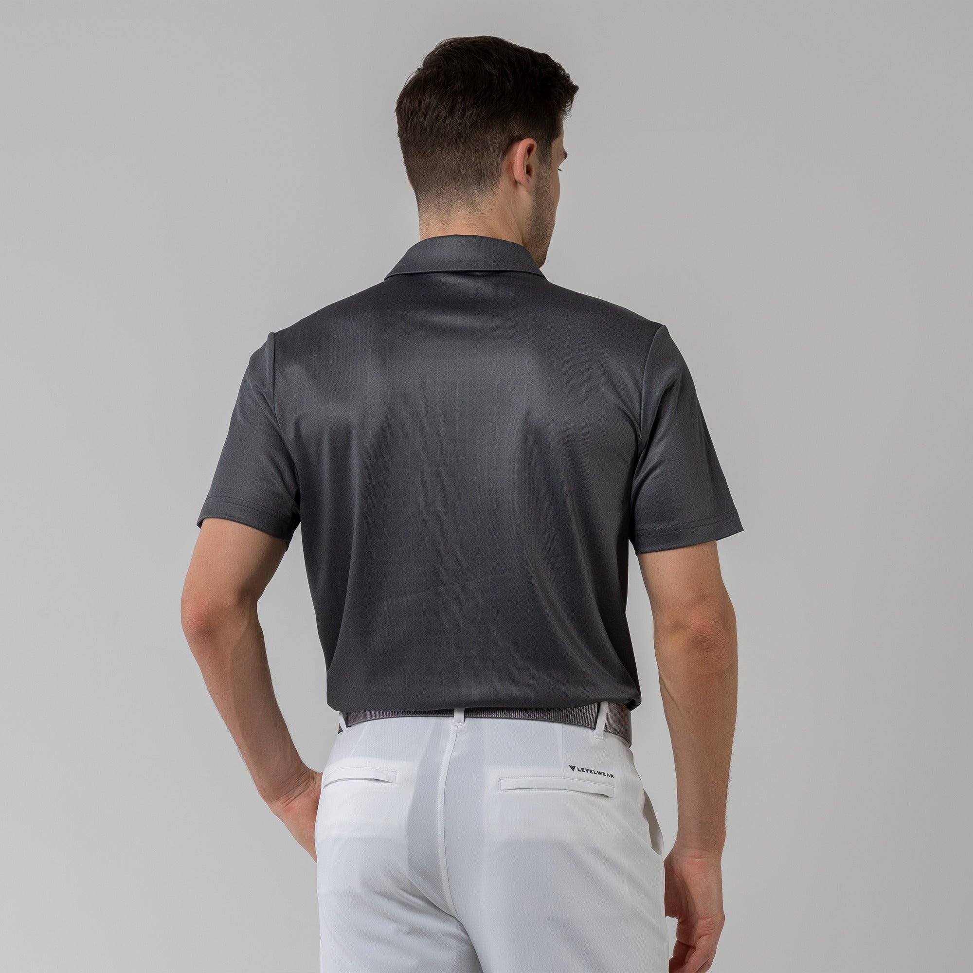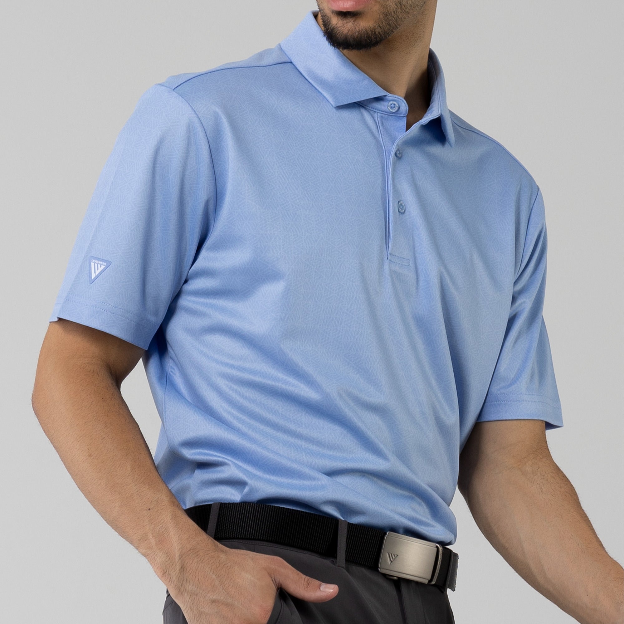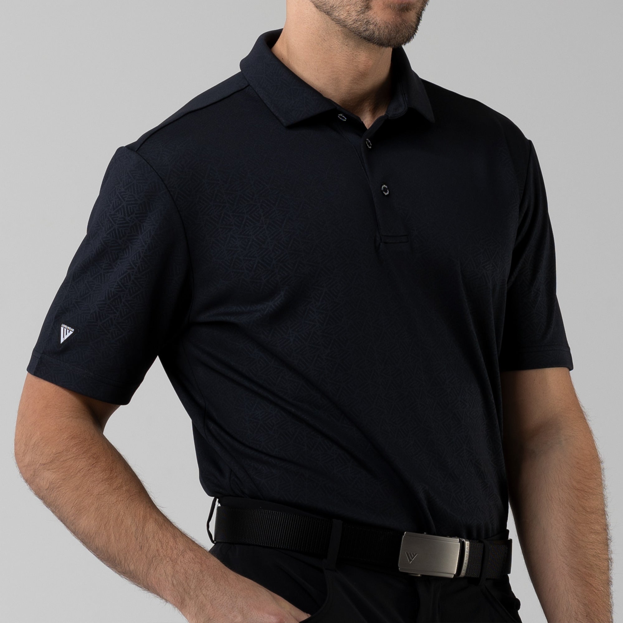 The men's Reveal polo is made from 100% polyester, is lightweight and designed to handle the rigors of an active day with its moisture-wicking technology that ensures you stay dry as you move from hole to hole. The self-fabric collar contributes to a clean, streamlined look, maintaining its shape even after multiple wears. It features a high-low hem with side slits for an enhanced range of motion and a contemporary fit that looks just as good at the 19th hole as it does on the green. Perfect for any golfer, the Reveal Polo combines classic styling with modern fabric technology to keep you comfortable and stylish throughout your game. The Reveal also features a subtle geometric pattern that brings this polo to life.