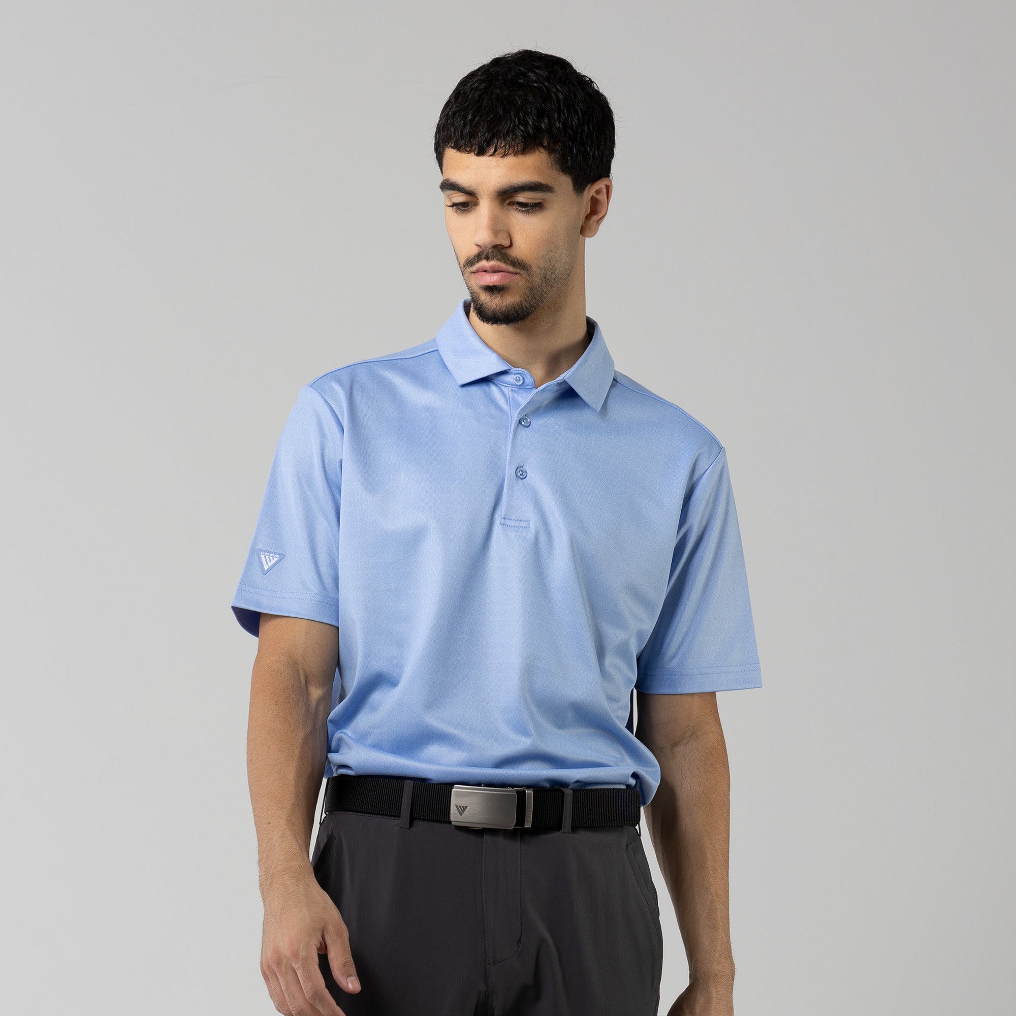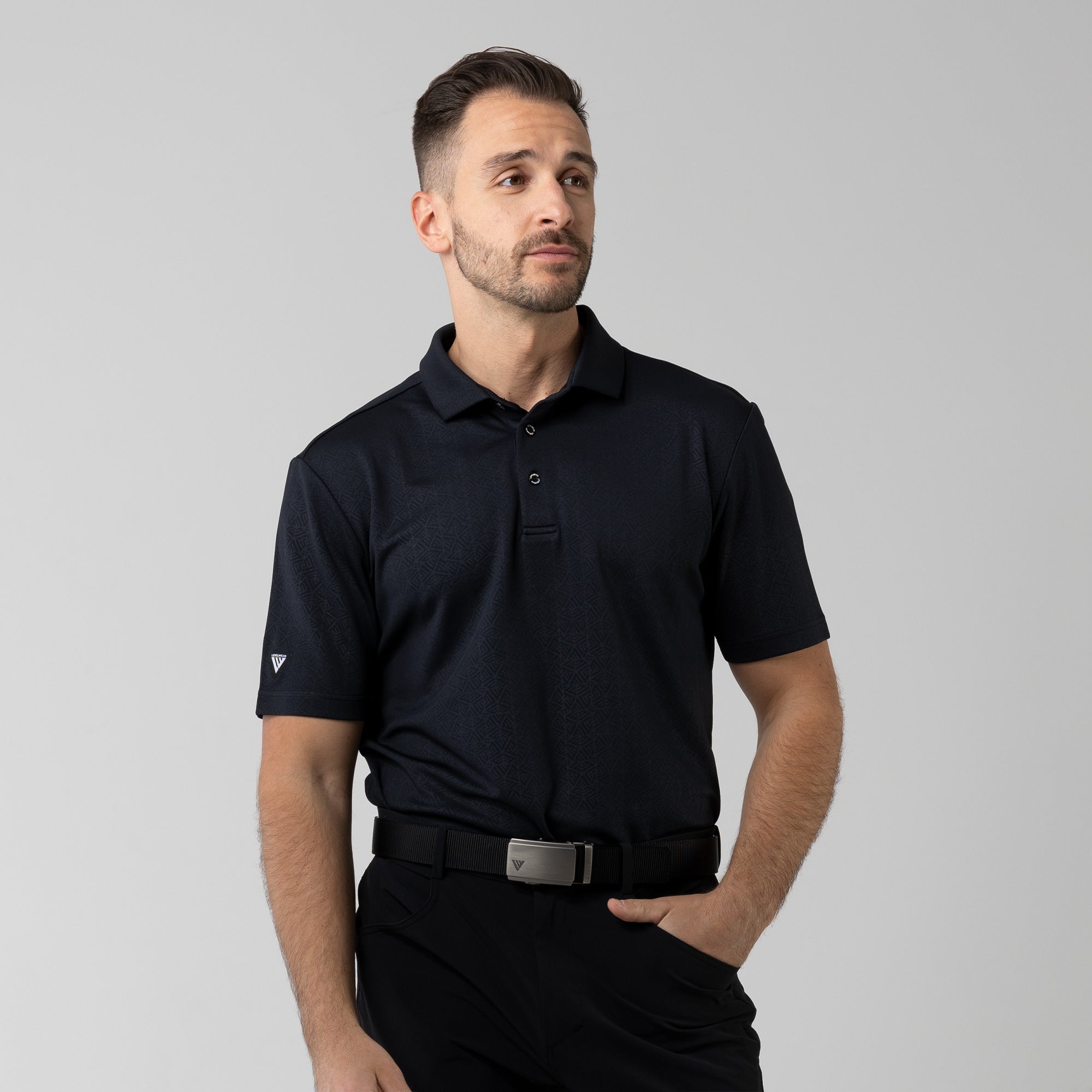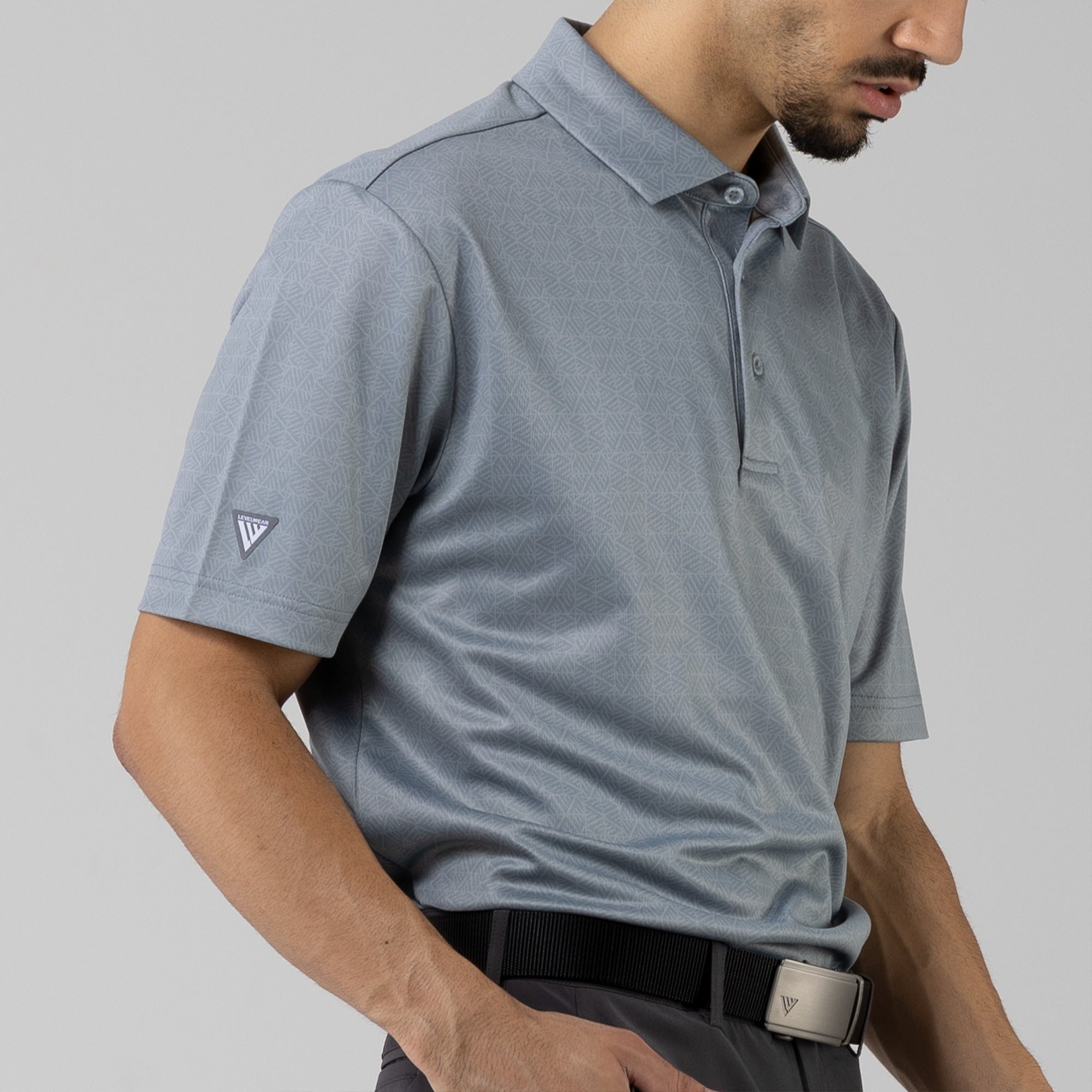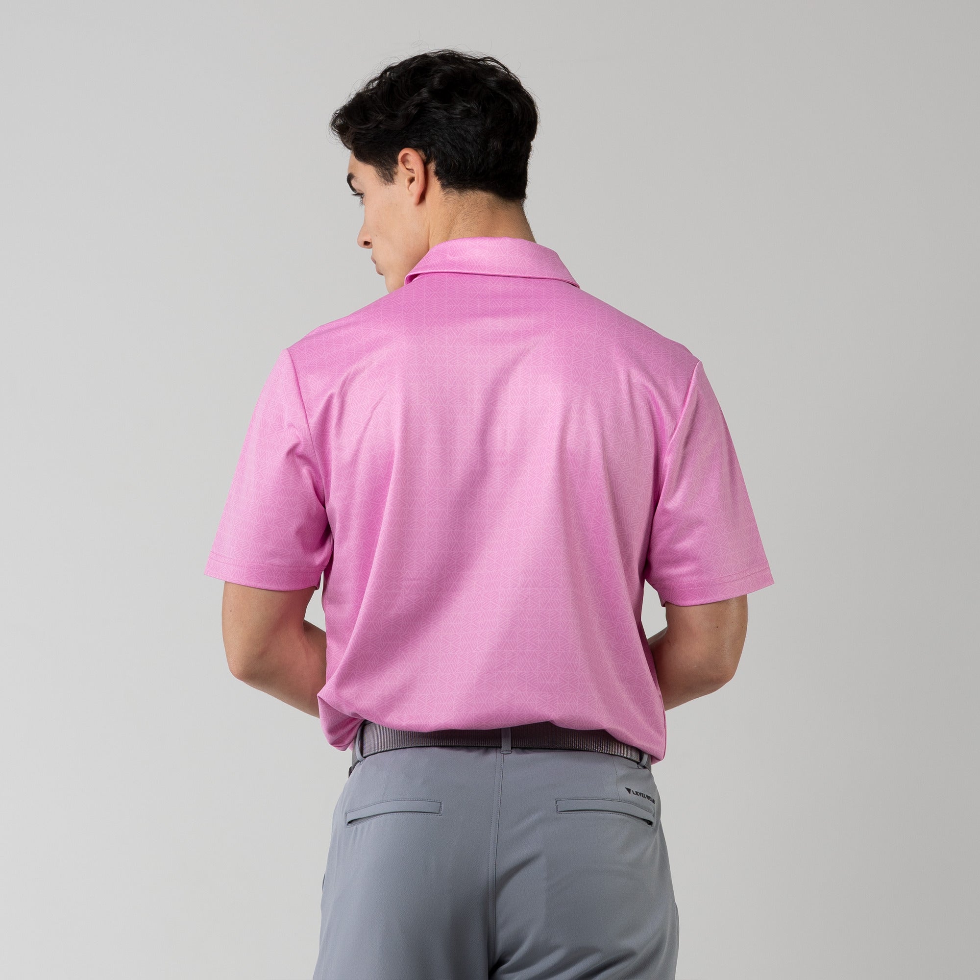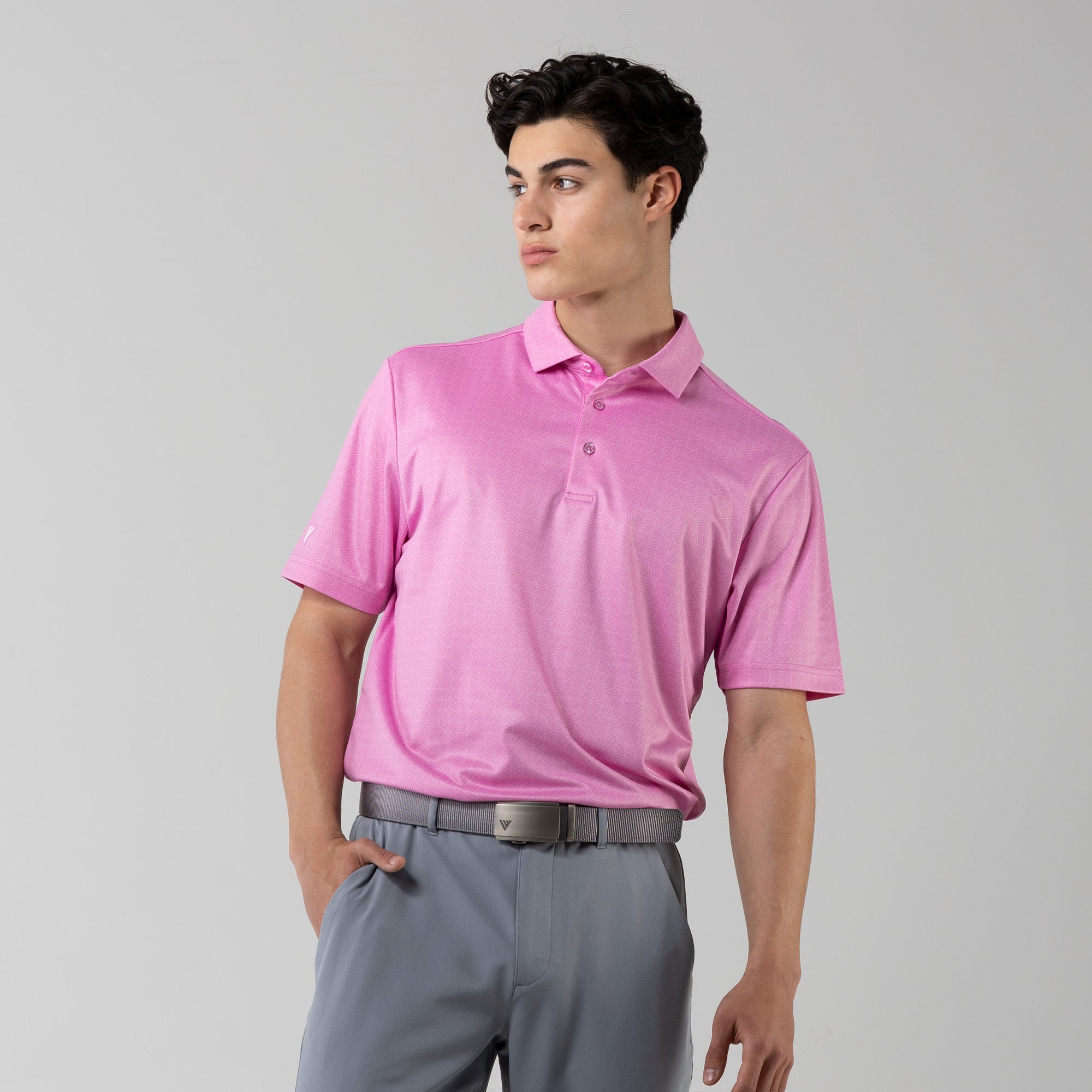 The men's Reveal polo is made from 100% polyester, is lightweight and designed to handle the rigors of an active day with its moisture-wicking technology that ensures you stay dry as you move from hole to hole. The self-fabric collar contributes to a clean, streamlined look, maintaining its shape even after multiple wears. It features a high-low hem with side slits for an enhanced range of motion and a contemporary fit that looks just as good at the 19th hole as it does on the green. Perfect for any golfer, the Reveal Polo combines classic styling with modern fabric technology to keep you comfortable and stylish throughout your game. The Reveal also features a subtle geometric pattern that brings this polo to life.