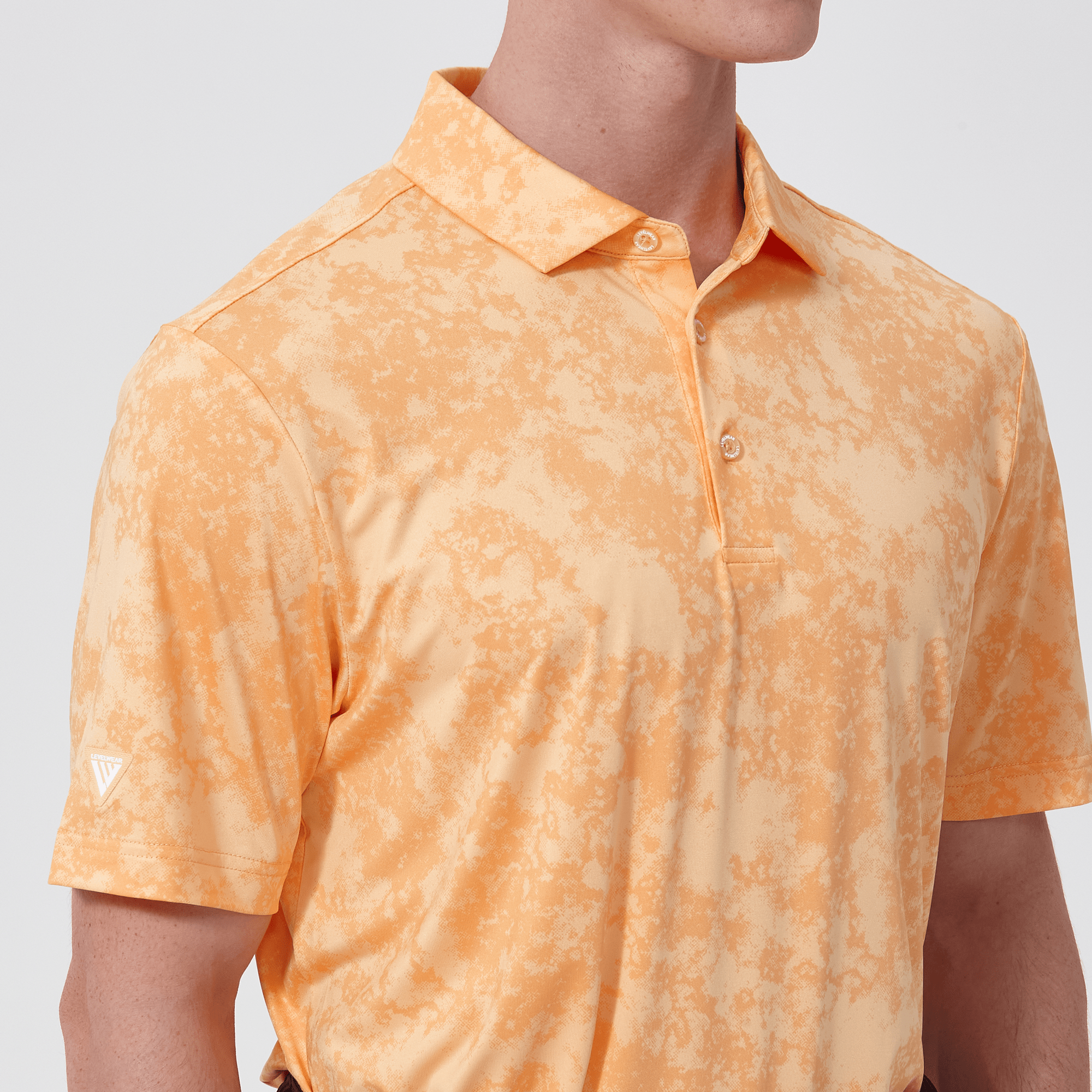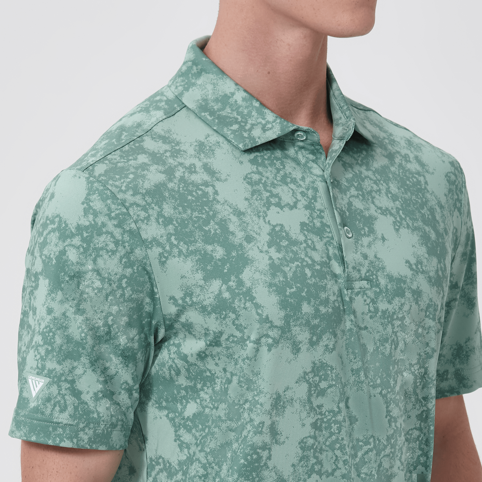 Hit the links in confidence with the Whisper golf polo, designed to offer superior protection and performance during your game. This polo is constructed from 92% recycled polyester and 8% spandex, aligning with our commitment to sustainability without compromising on quality. It features UPF 50+ protection to shield you from harmful UV rays, while the moisture-wicking technology keeps you dry and comfortable through every swing. The anti-bacterial finish ensures you stay fresh from the first tee to the last green. Designed with a self-fabric collar that includes a built-in collar stay, the polo maintains a sharp look throughout your play. The high-low hem detail with side slits provides additional coverage and enhances mobility, complemented by an all-over print that gives this polo a modern twist for any golfer focused on both function and environmental responsibility.