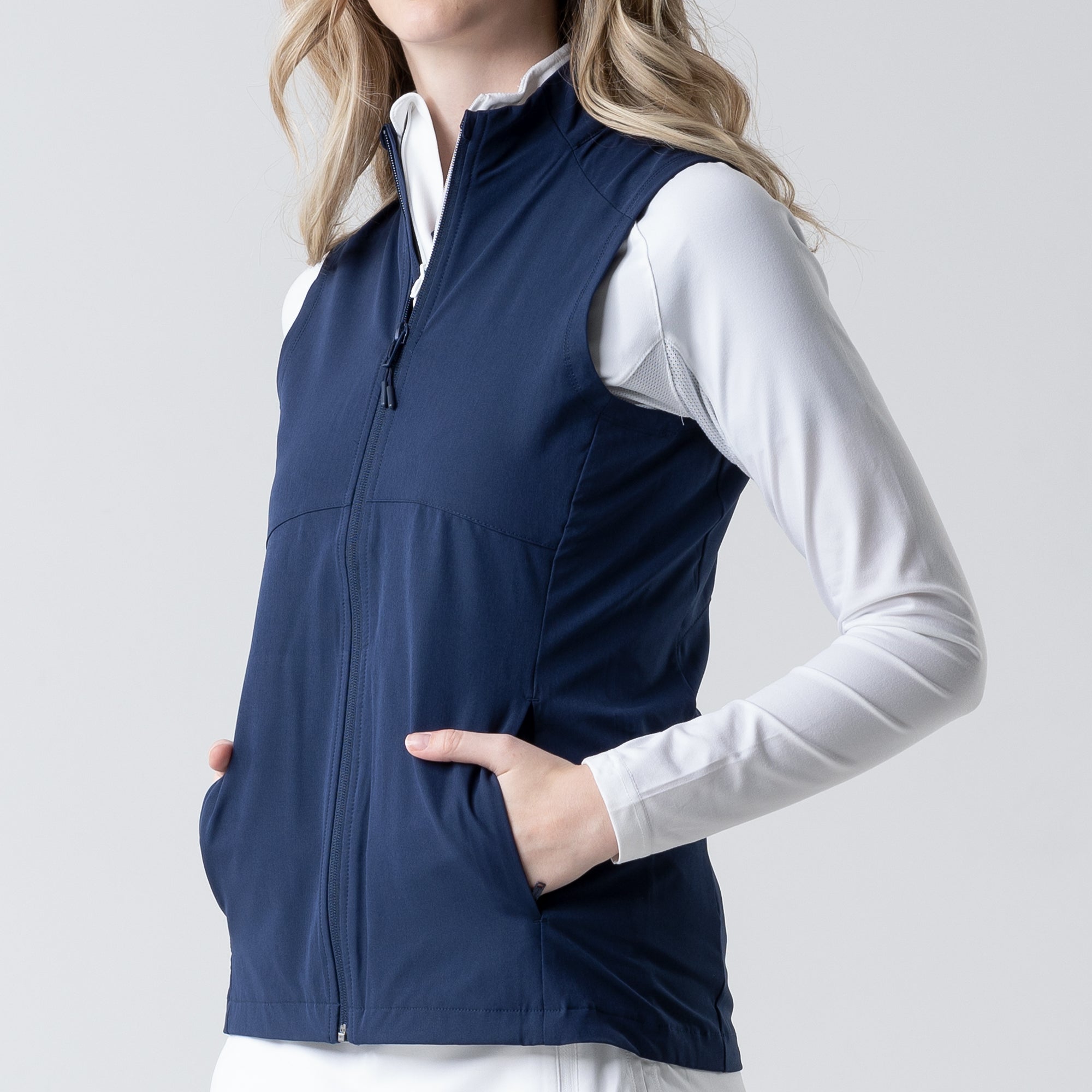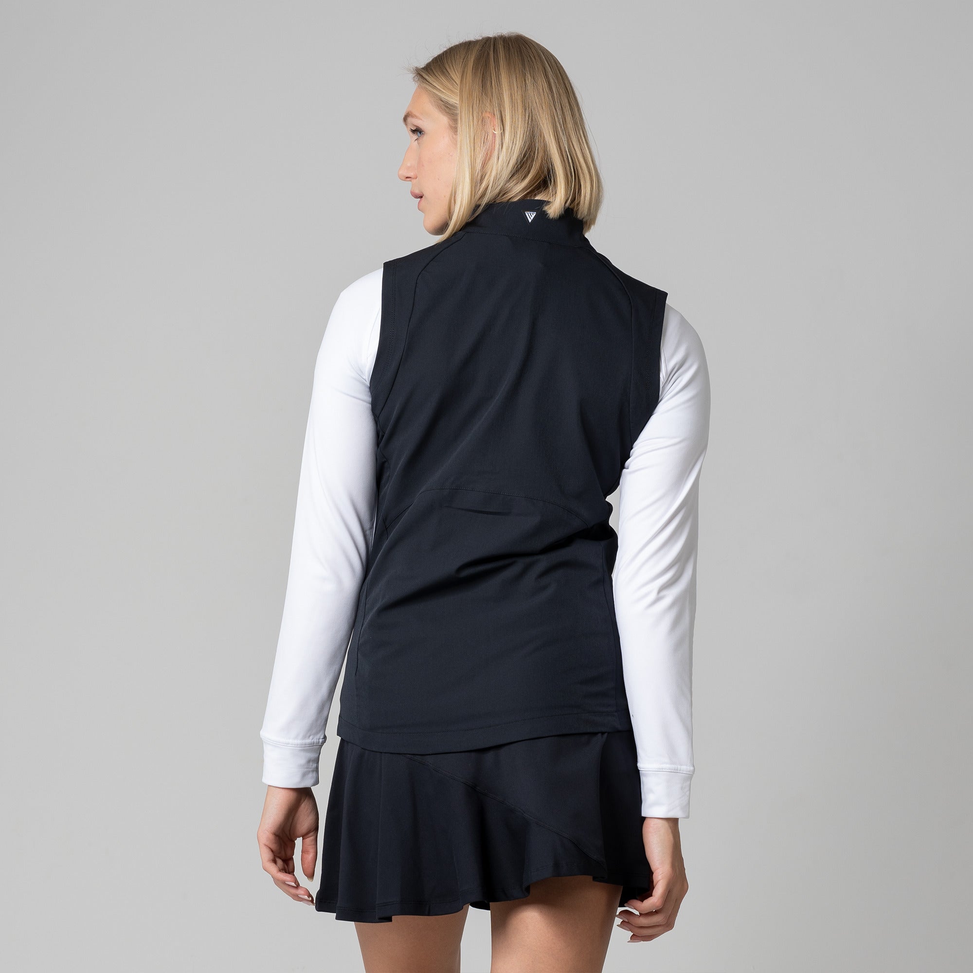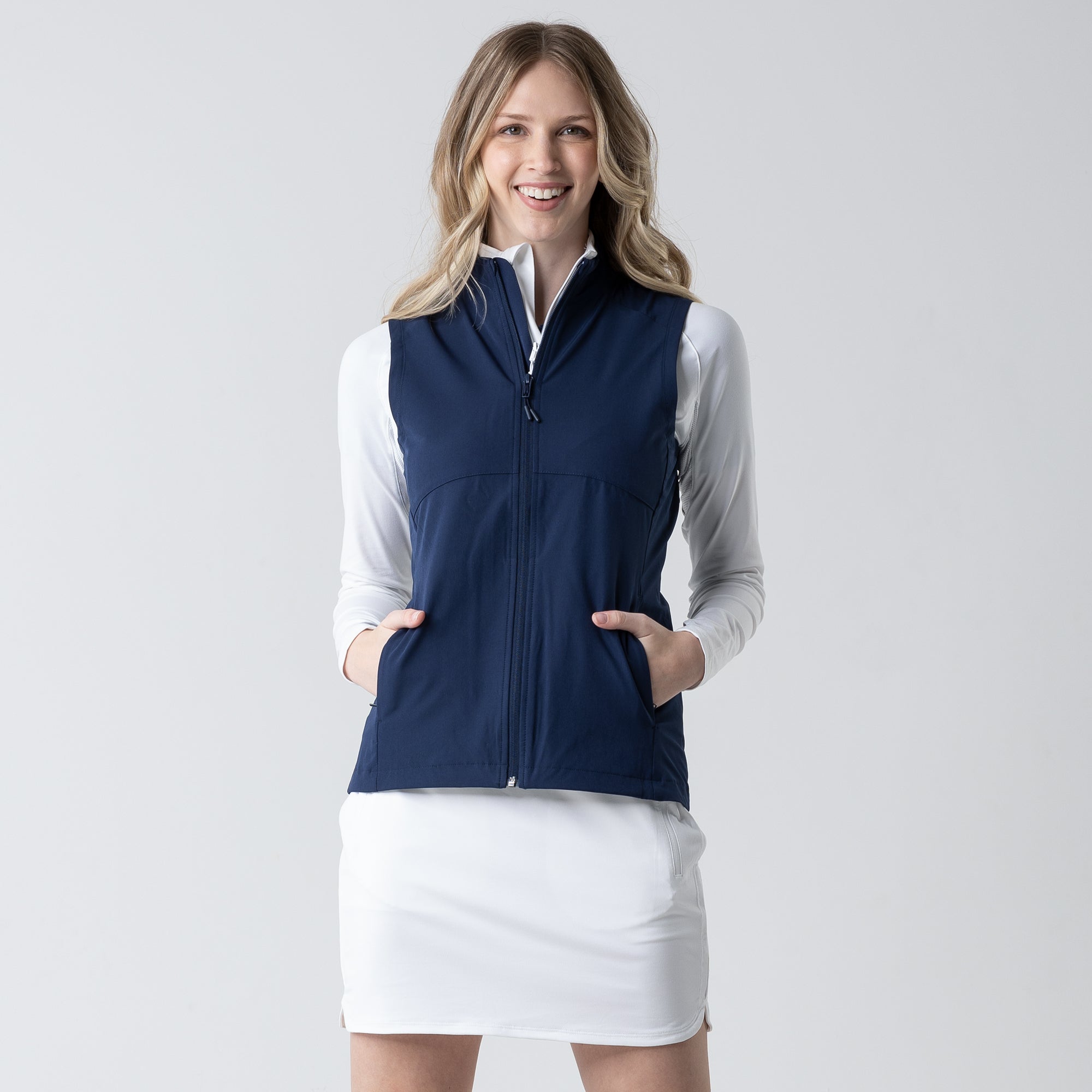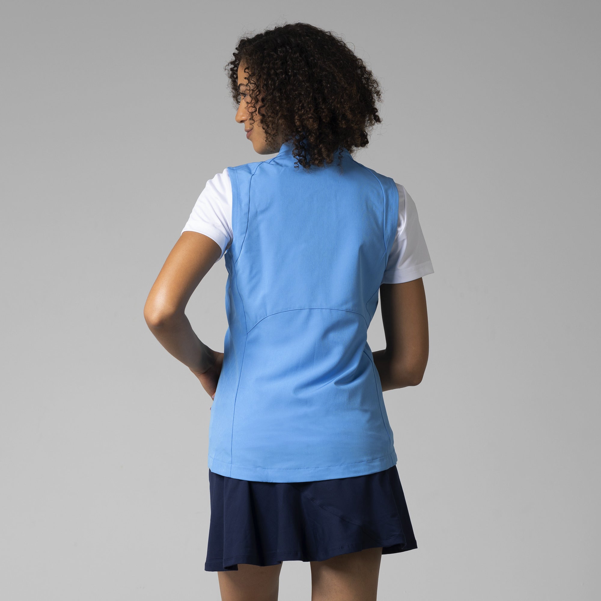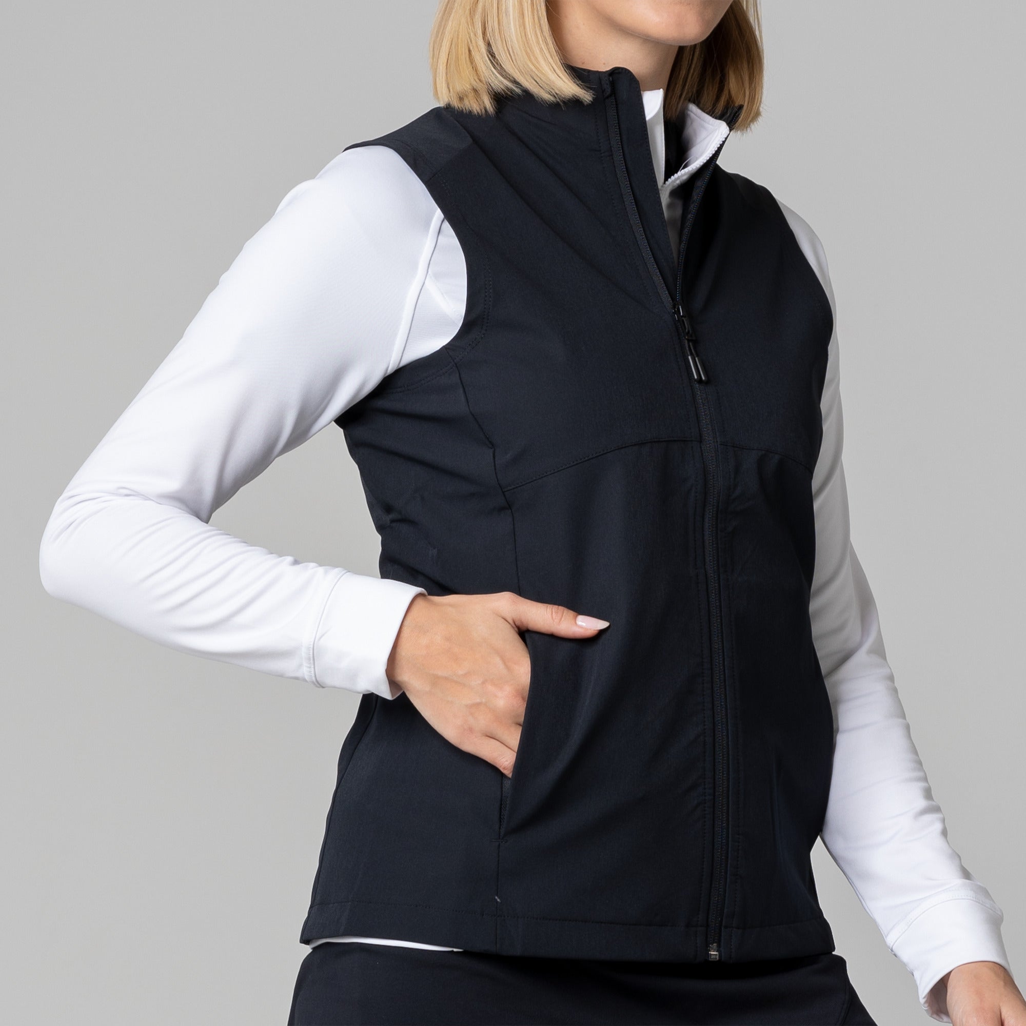 Enhance your golf attire with the Women's Zara vest, designed for those who value functionality and style on the course. This lightweight vest is crafted from a blend of 90% polyester and 10% spandex, offering flexibility and comfort without the bulk, allowing for unrestricted swings. It features water-repellent properties to keep you dry during sudden showers and includes zippered pockets for securely holding essentials like scorecards and tees. The drop tail design provides extra coverage while maintaining a sleek, flattering fit. Perfect for layering over your favorite golf polo, the Zara vest is an essential for any golfer looking to stay protected and stylish on the course.