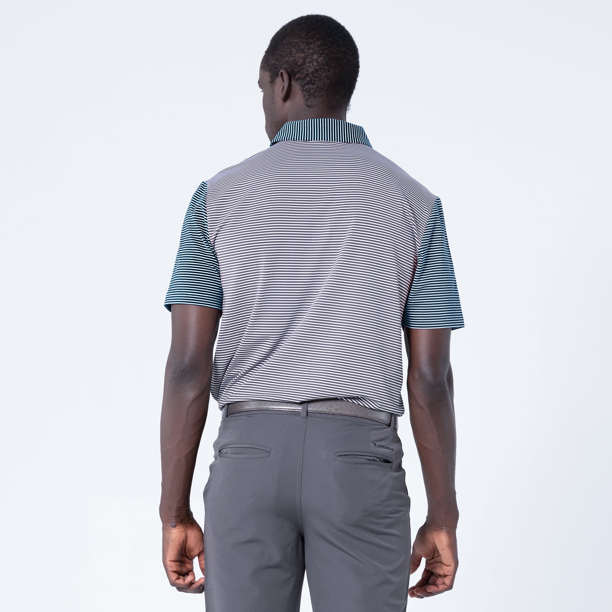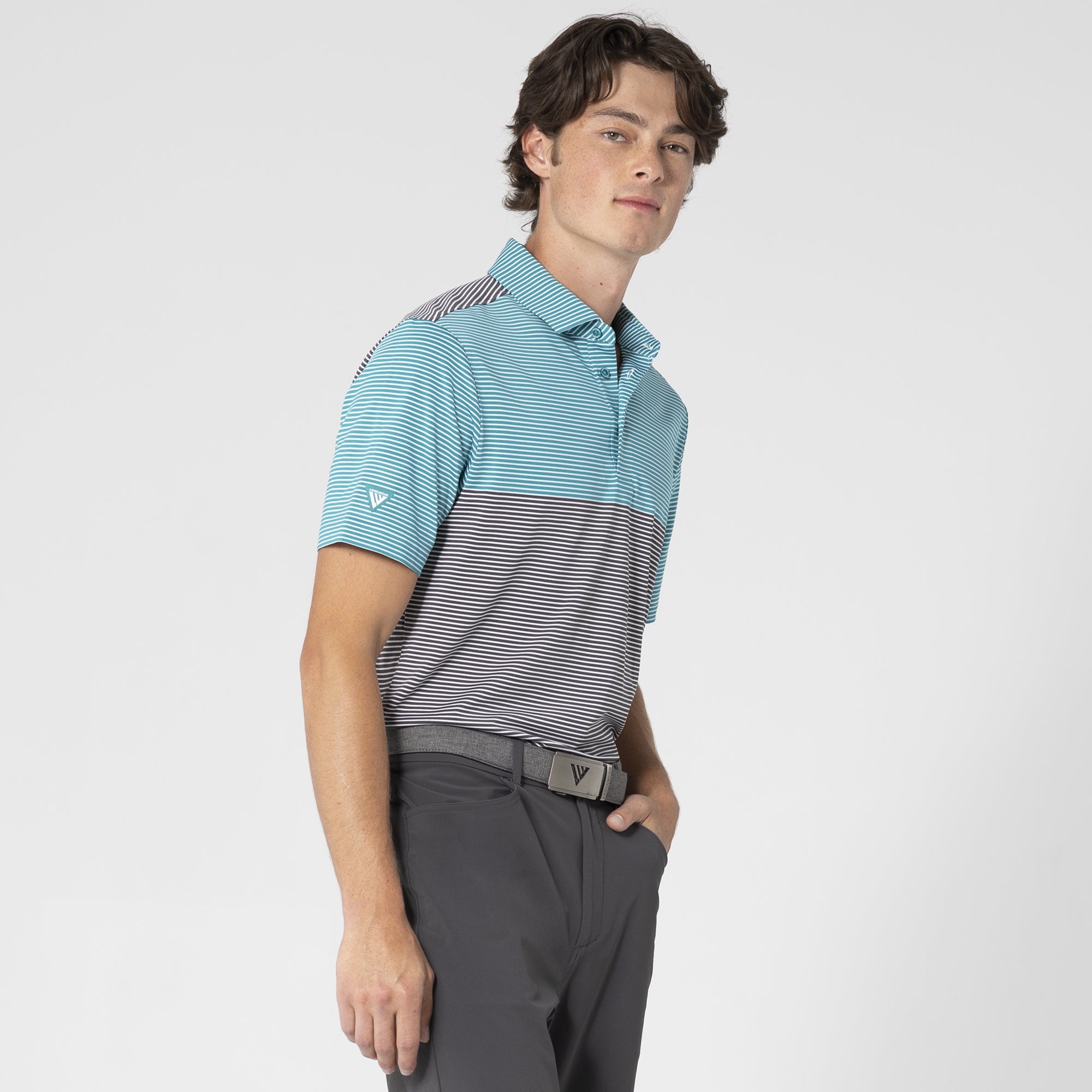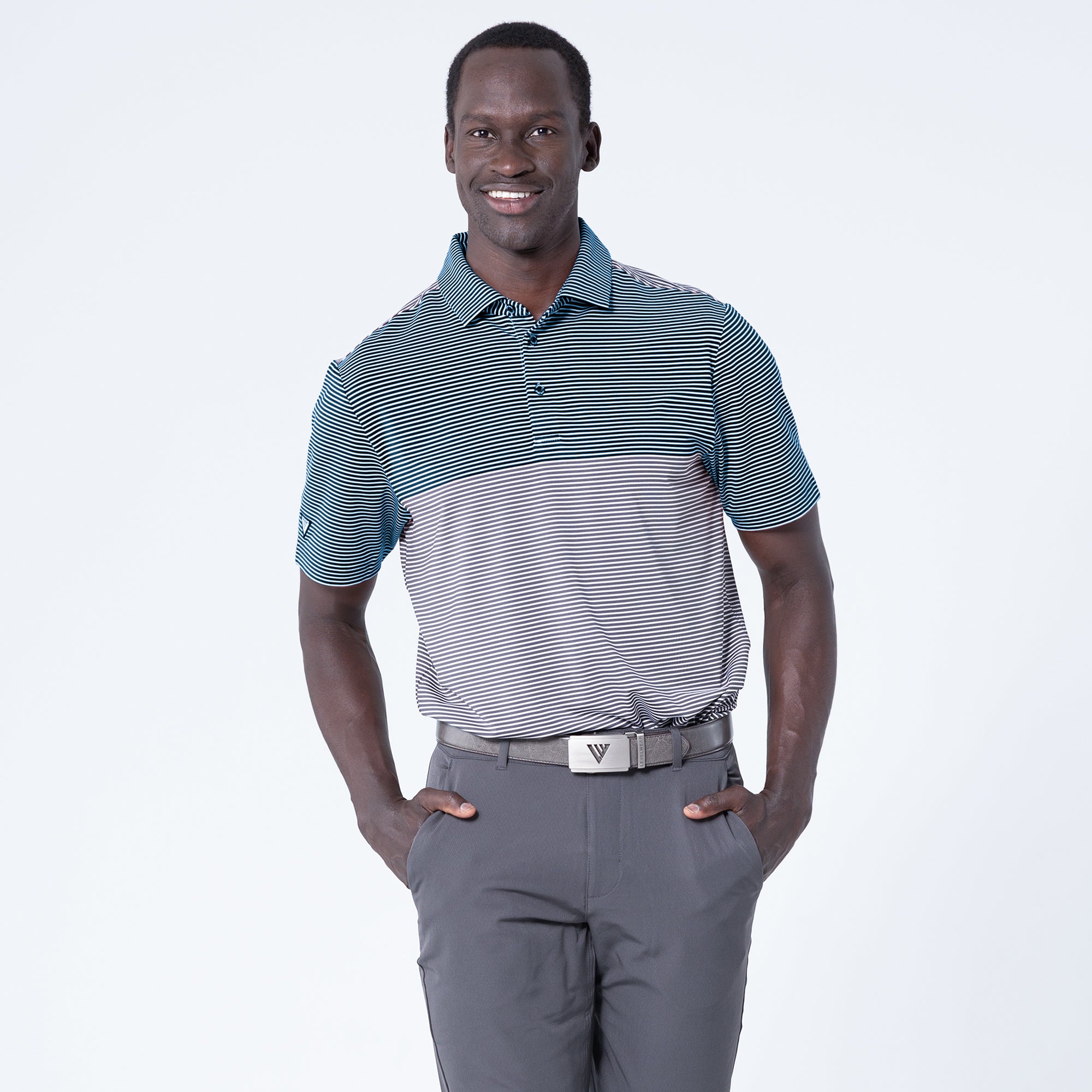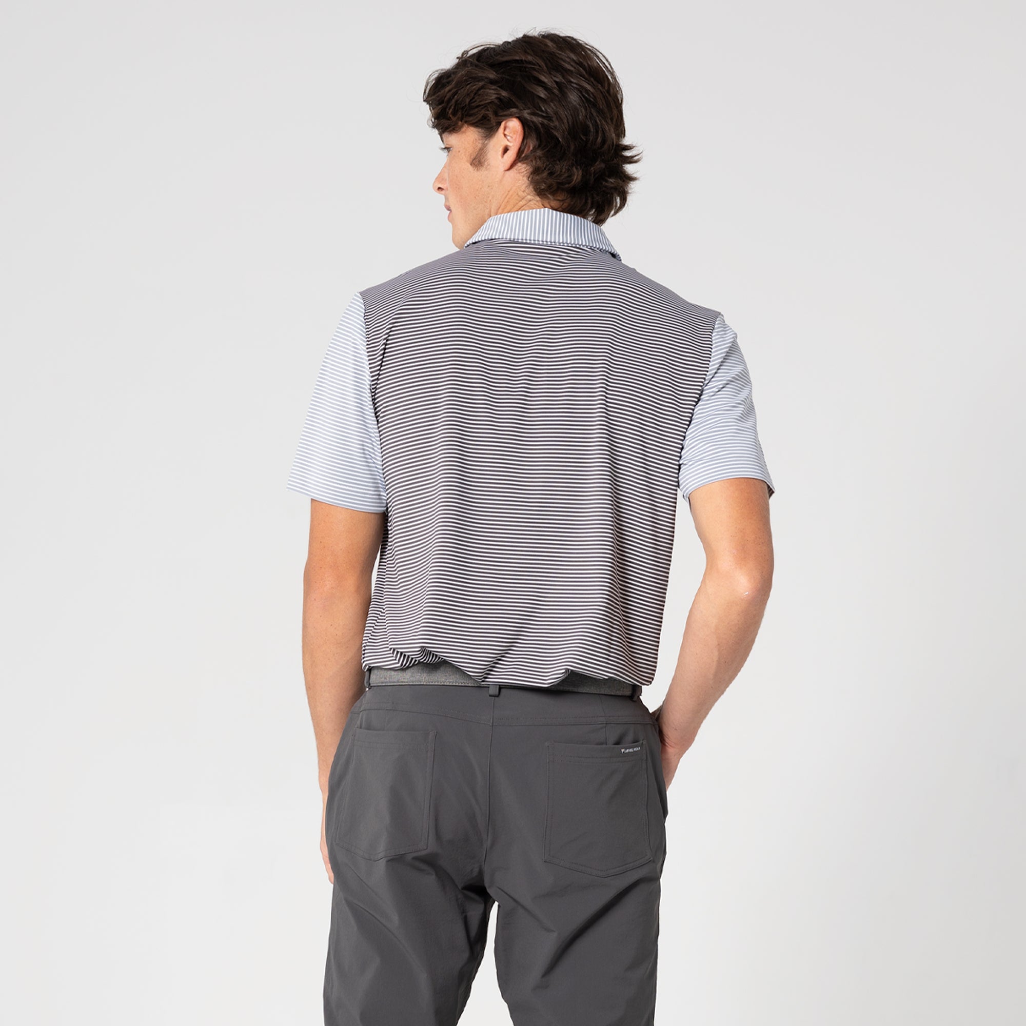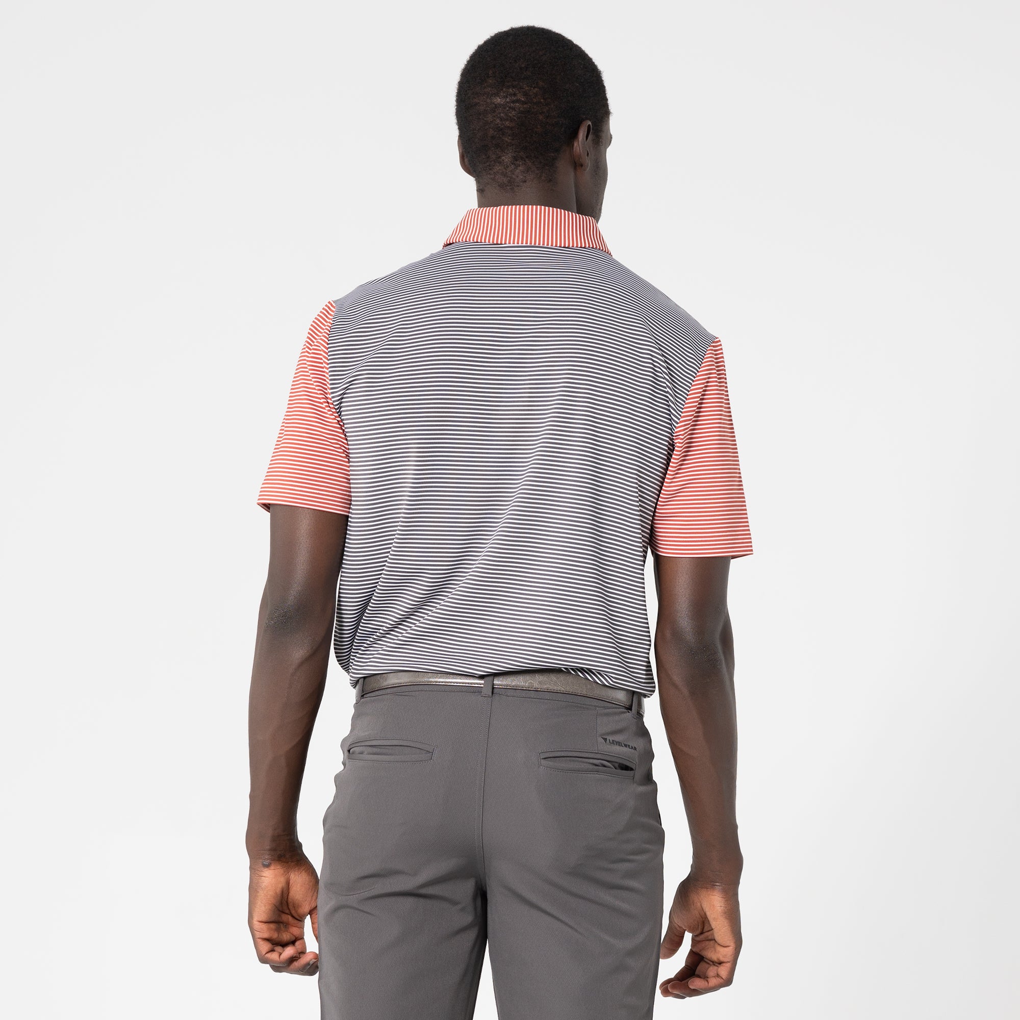 The Aruba Polo is crafted from a blend of 92% polyester and 8% spandex, offering exceptional stretch for optimal mobility and comfort during play. Featuring moisture-wicking and anti-bacterial properties, the Aruba Polo ensures you stay dry and fresh from the first tee to the last green. Its self-fabric collar includes a built-in collar stay to keep your appearance sharp throughout the game. The yard-dyed stripe pattern adds a classic touch, while the high-low hem with side slits provides a modern silhouette and enhanced freedom of movement. Perfect for any golf enthusiast, the Aruba Polo combines functionality with a sleek design to keep you looking and performing your best.