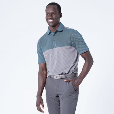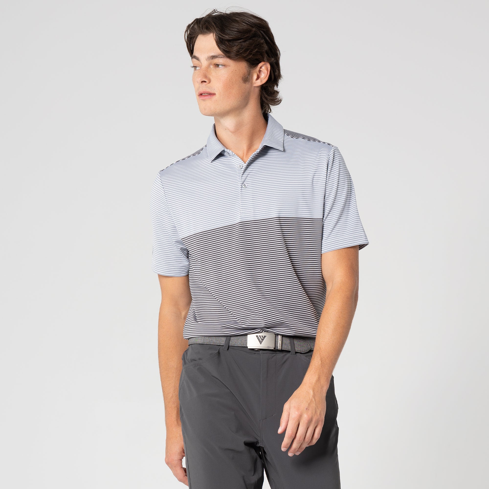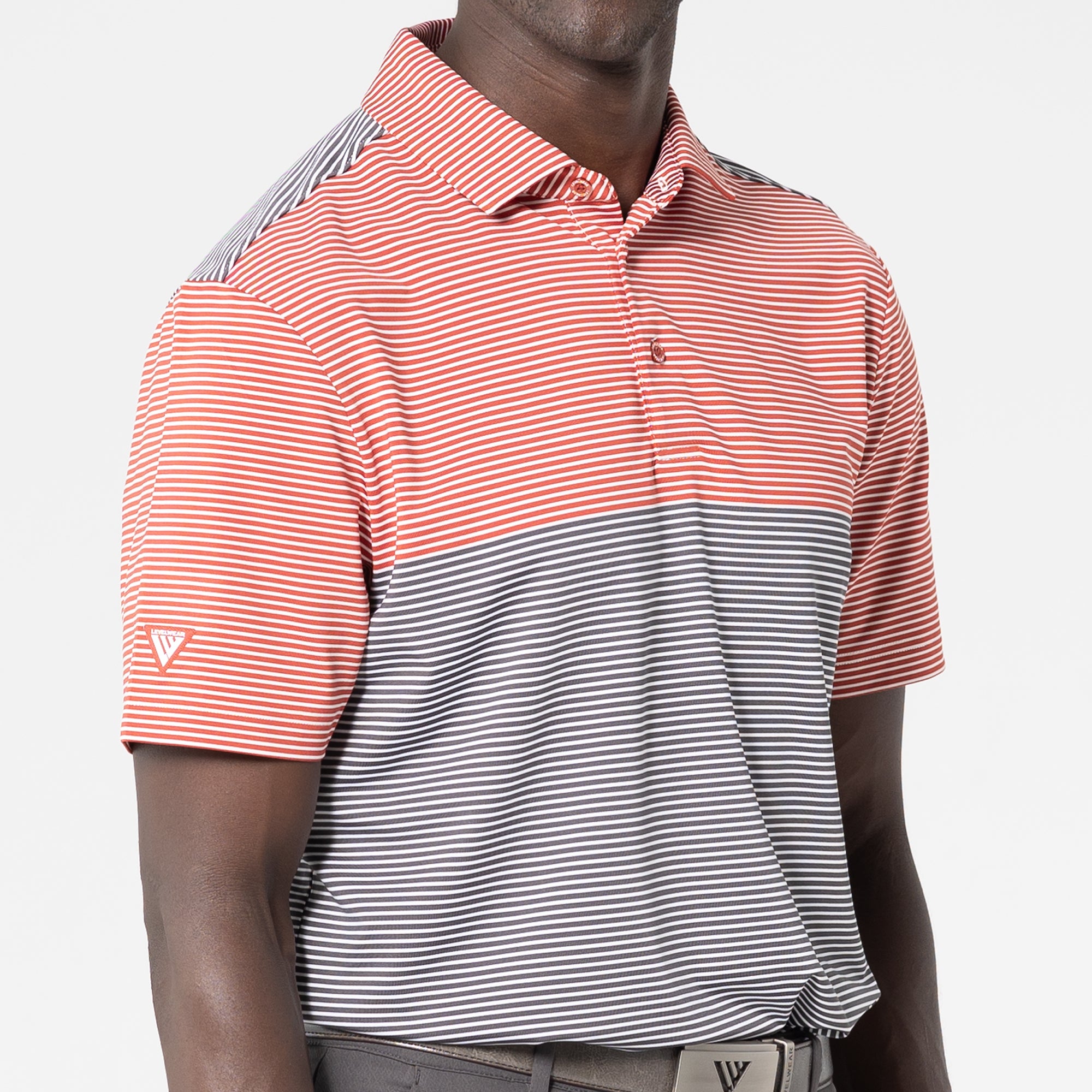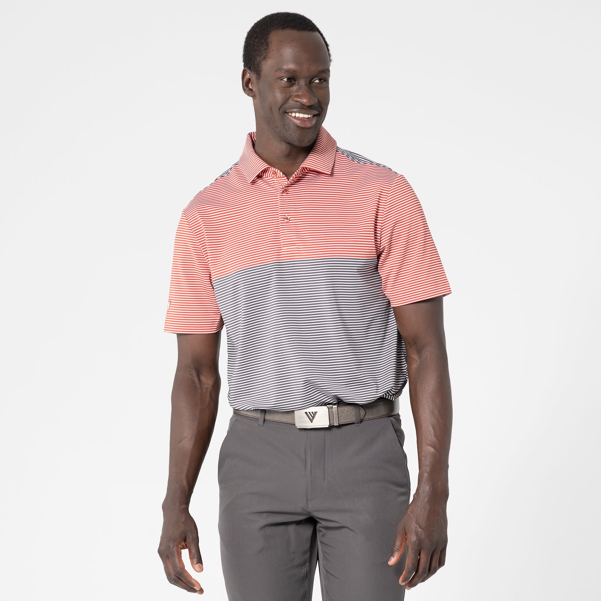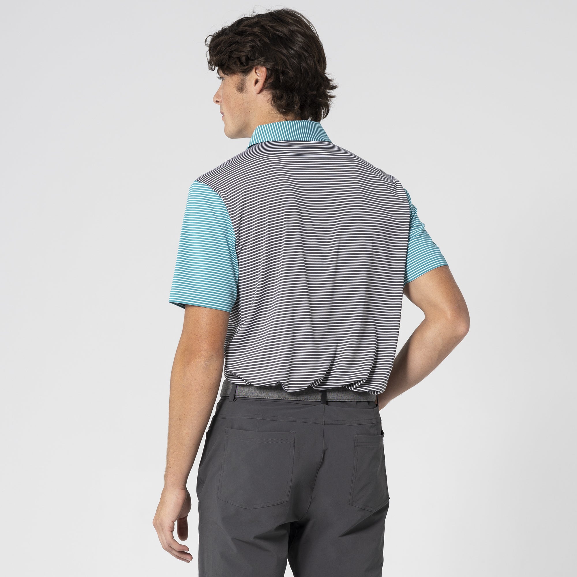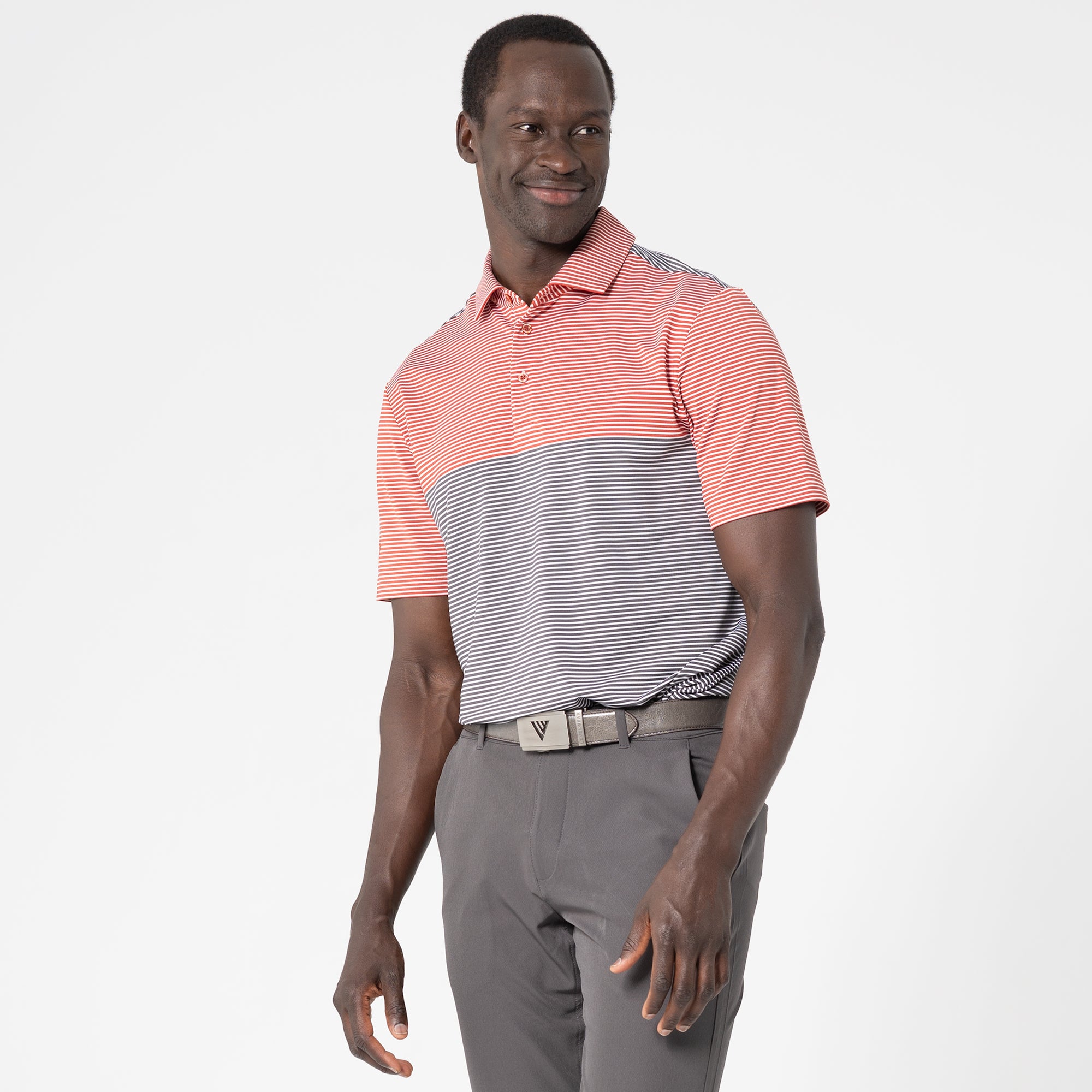 The Aruba Polo is crafted from a blend of 92% polyester and 8% spandex, offering exceptional stretch for optimal mobility and comfort during play. Featuring moisture-wicking and anti-bacterial properties, the Aruba Polo ensures you stay dry and fresh from the first tee to the last green. Its self-fabric collar includes a built-in collar stay to keep your appearance sharp throughout the game. The yard-dyed stripe pattern adds a classic touch, while the high-low hem with side slits provides a modern silhouette and enhanced freedom of movement. Perfect for any golf enthusiast, the Aruba Polo combines functionality with a sleek design to keep you looking and performing your best.