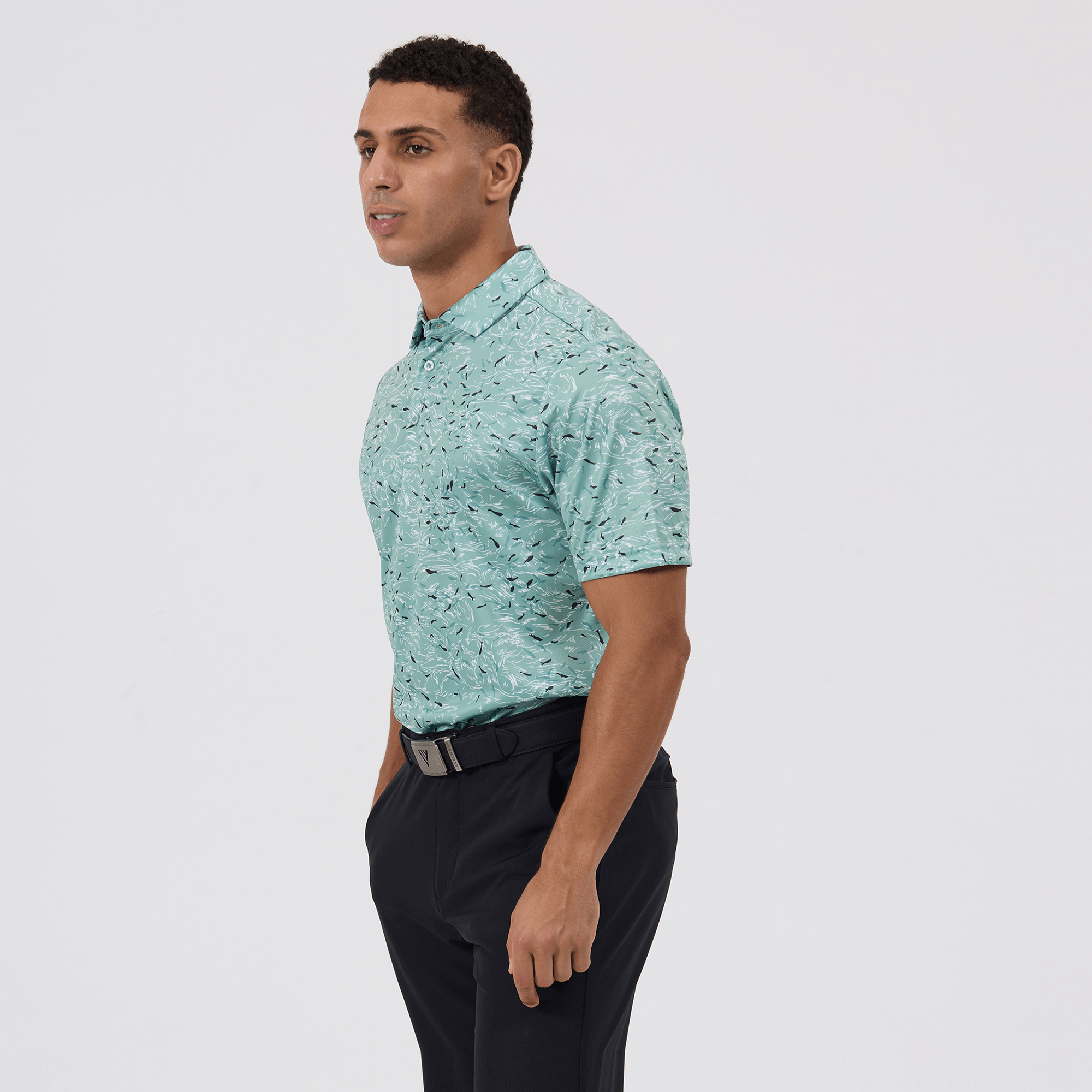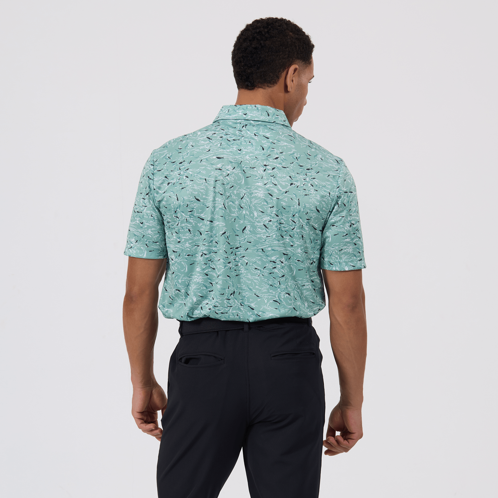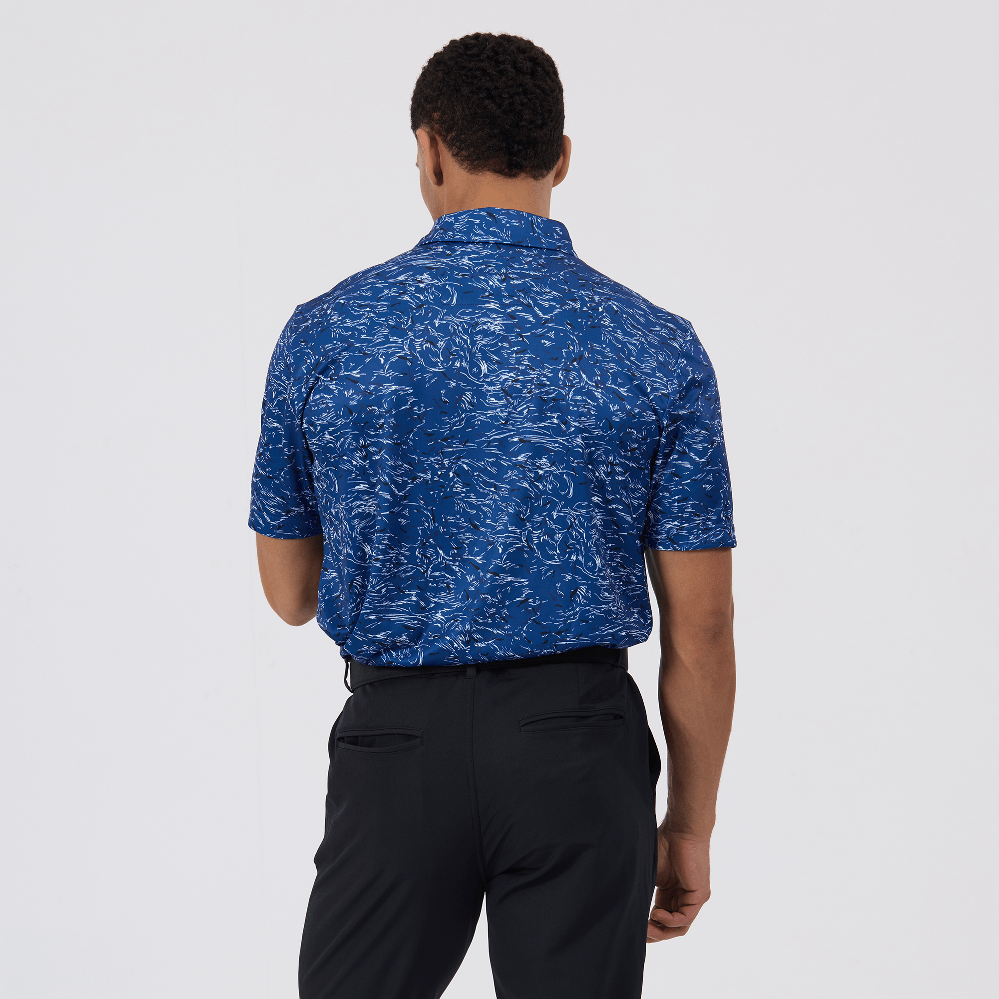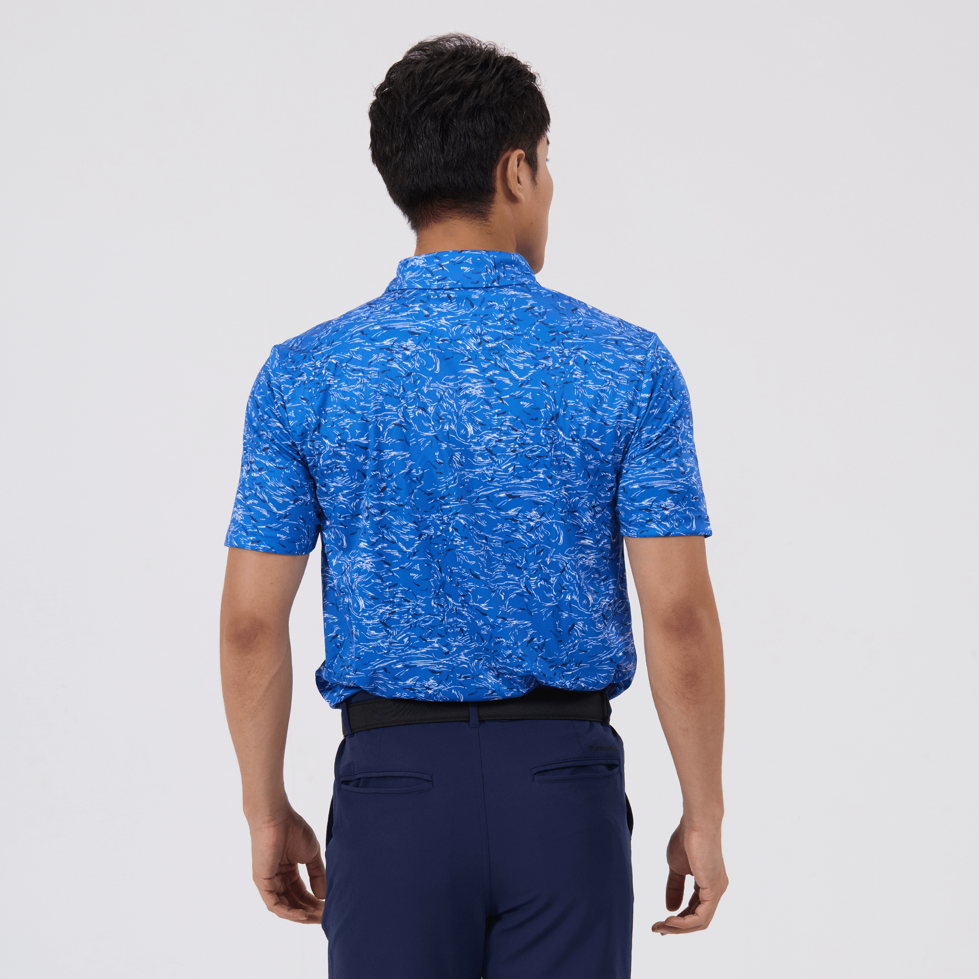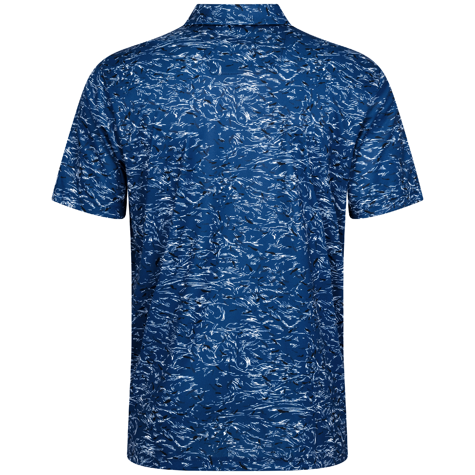 Elevate your golf attire with the men's Koi golf polo, a reflection of our commitment to sustainability and high-performance design. This polo is crafted entirely from 100% recycled polyester, emphasizing our dedication to environmental responsibility. Engineered to keep you dry and comfortable, the moisture-wicking fabric ensures you stay cool under pressure, whether you're on the green or at the driving range. The self-fabric collar with a built-in collar stay keeps your look sharp and structured throughout the day. A high-low hem detail with side slits offers enhanced mobility and a contemporary fit, while the striking all-over print makes a bold statement on style. The Koi golf polo is not just a piece of clothing, but a statement of care for the planet and a testament to functional, stylish sportswear.