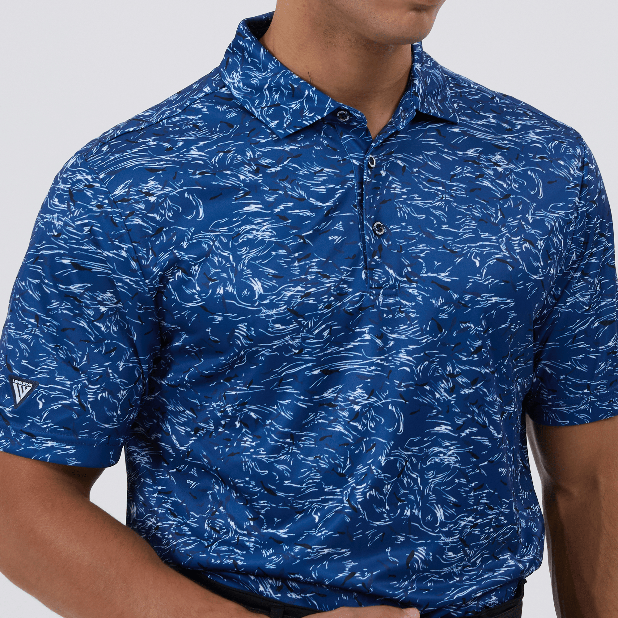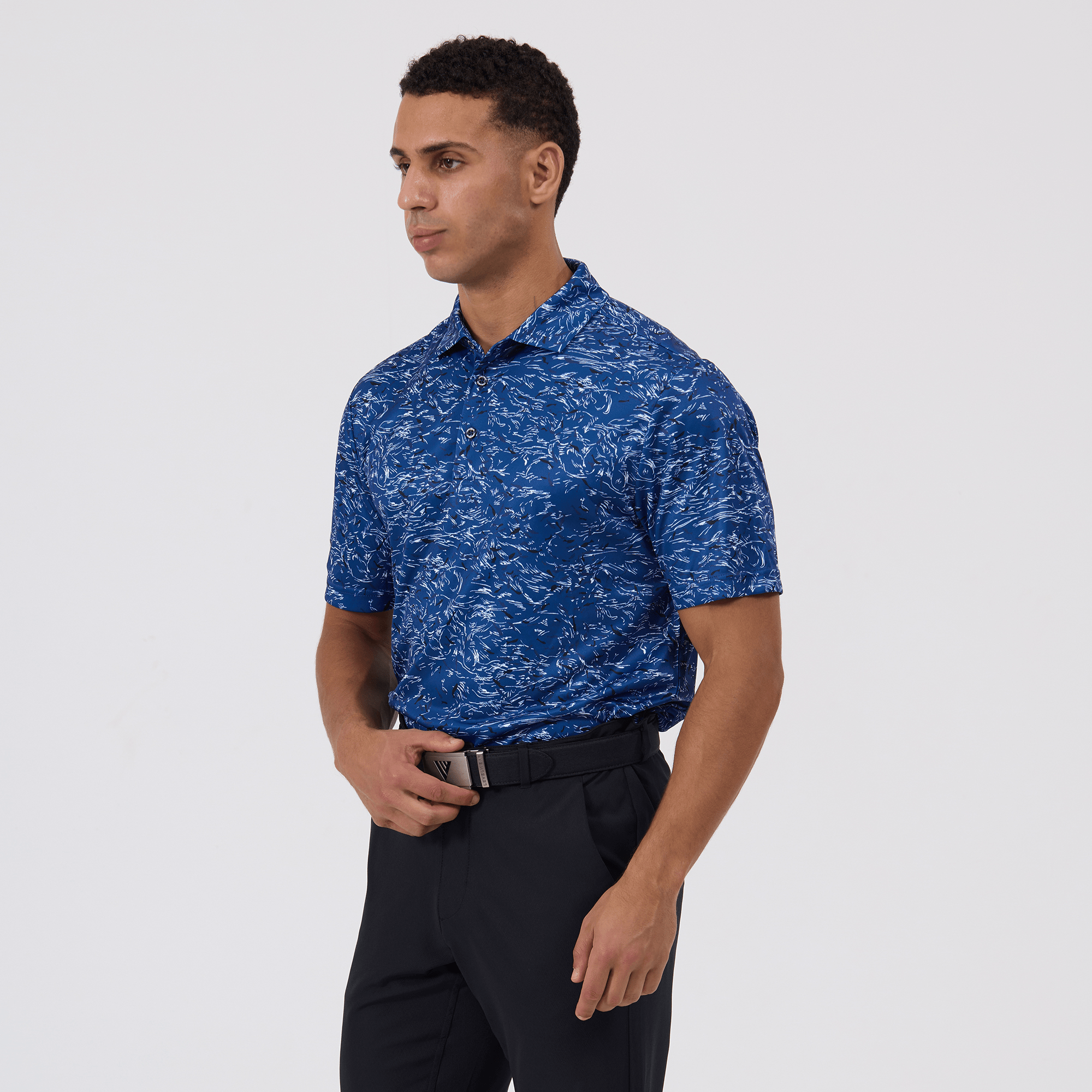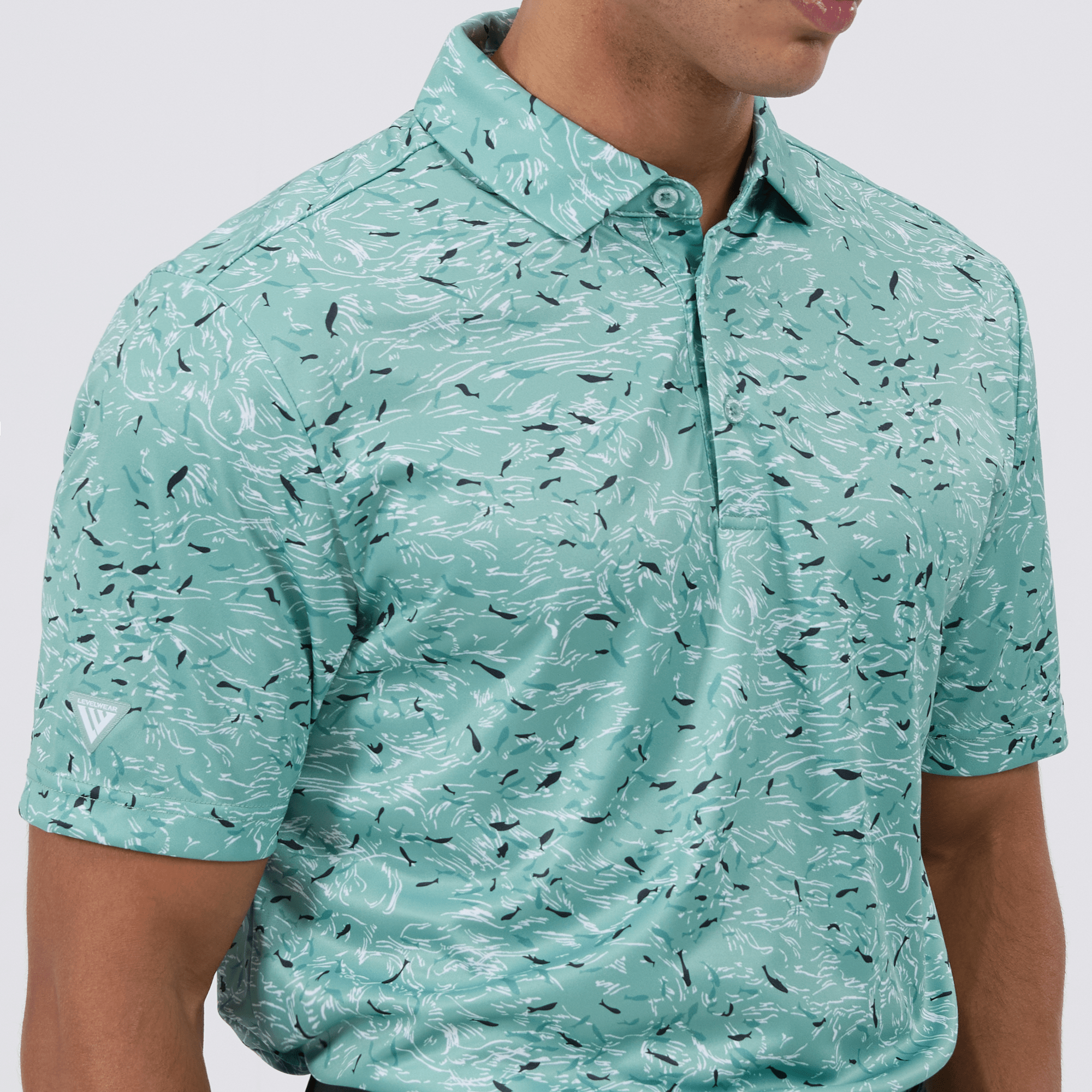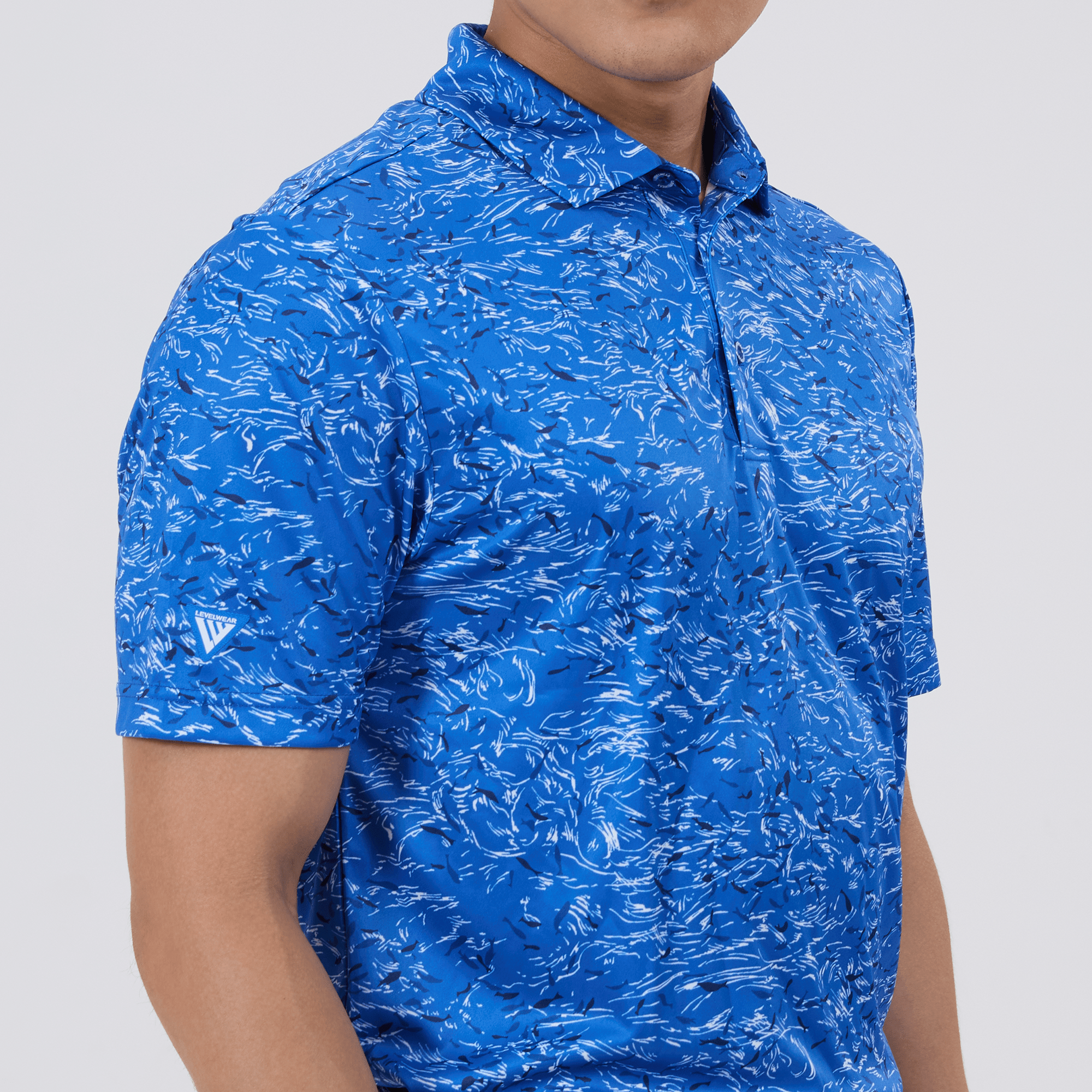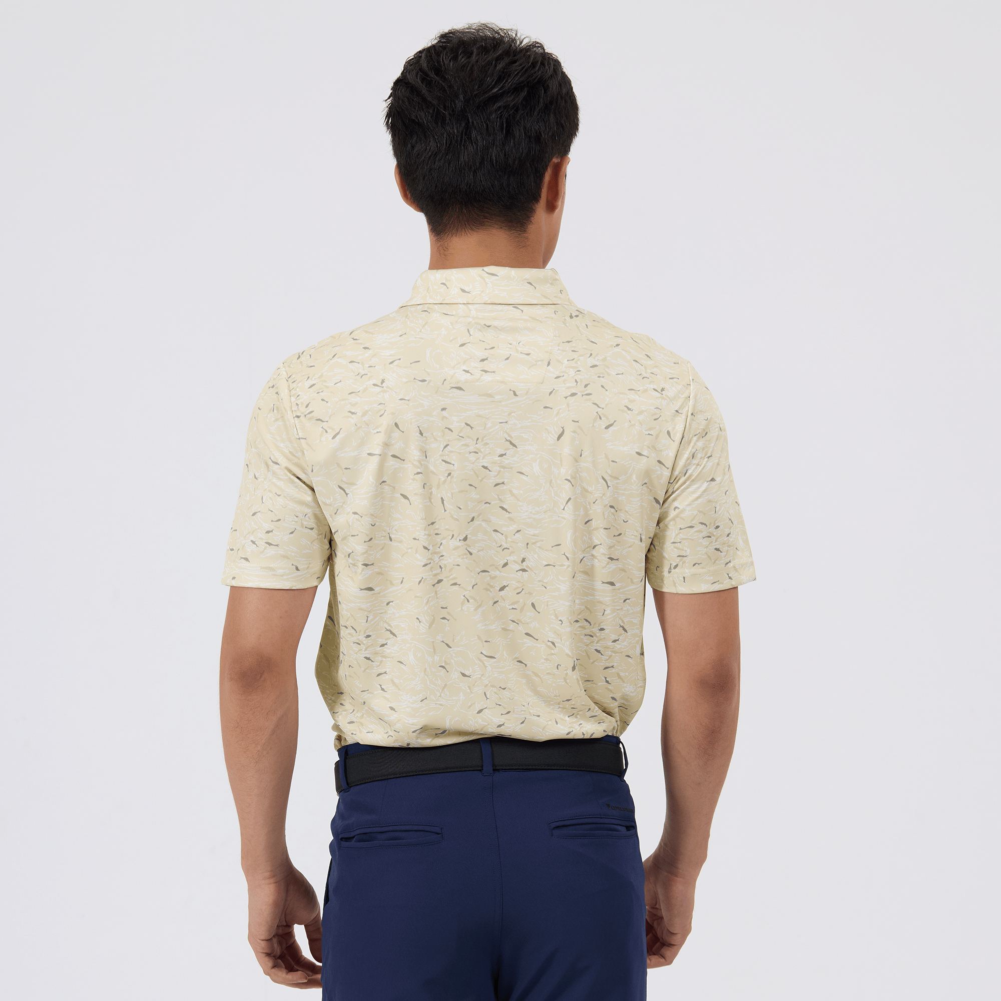 Elevate your golf attire with the men's Koi golf polo, a reflection of our commitment to sustainability and high-performance design. This polo is crafted entirely from 100% recycled polyester, emphasizing our dedication to environmental responsibility. Engineered to keep you dry and comfortable, the moisture-wicking fabric ensures you stay cool under pressure, whether you're on the green or at the driving range. The self-fabric collar with a built-in collar stay keeps your look sharp and structured throughout the day. A high-low hem detail with side slits offers enhanced mobility and a contemporary fit, while the striking all-over print makes a bold statement on style. The Koi golf polo is not just a piece of clothing, but a statement of care for the planet and a testament to functional, stylish sportswear.