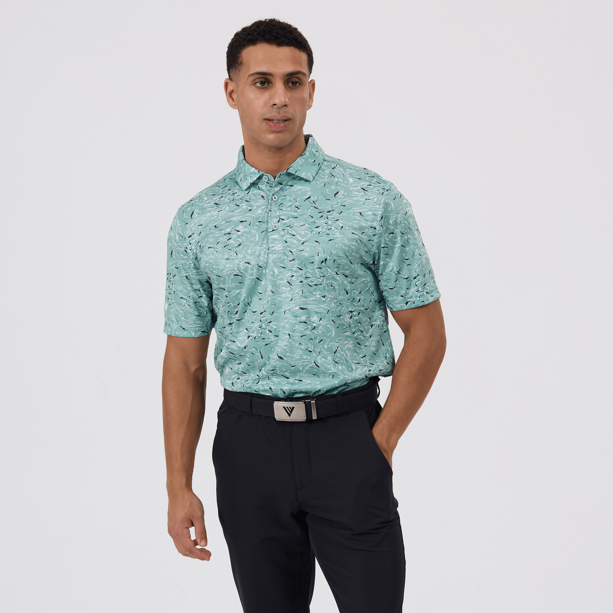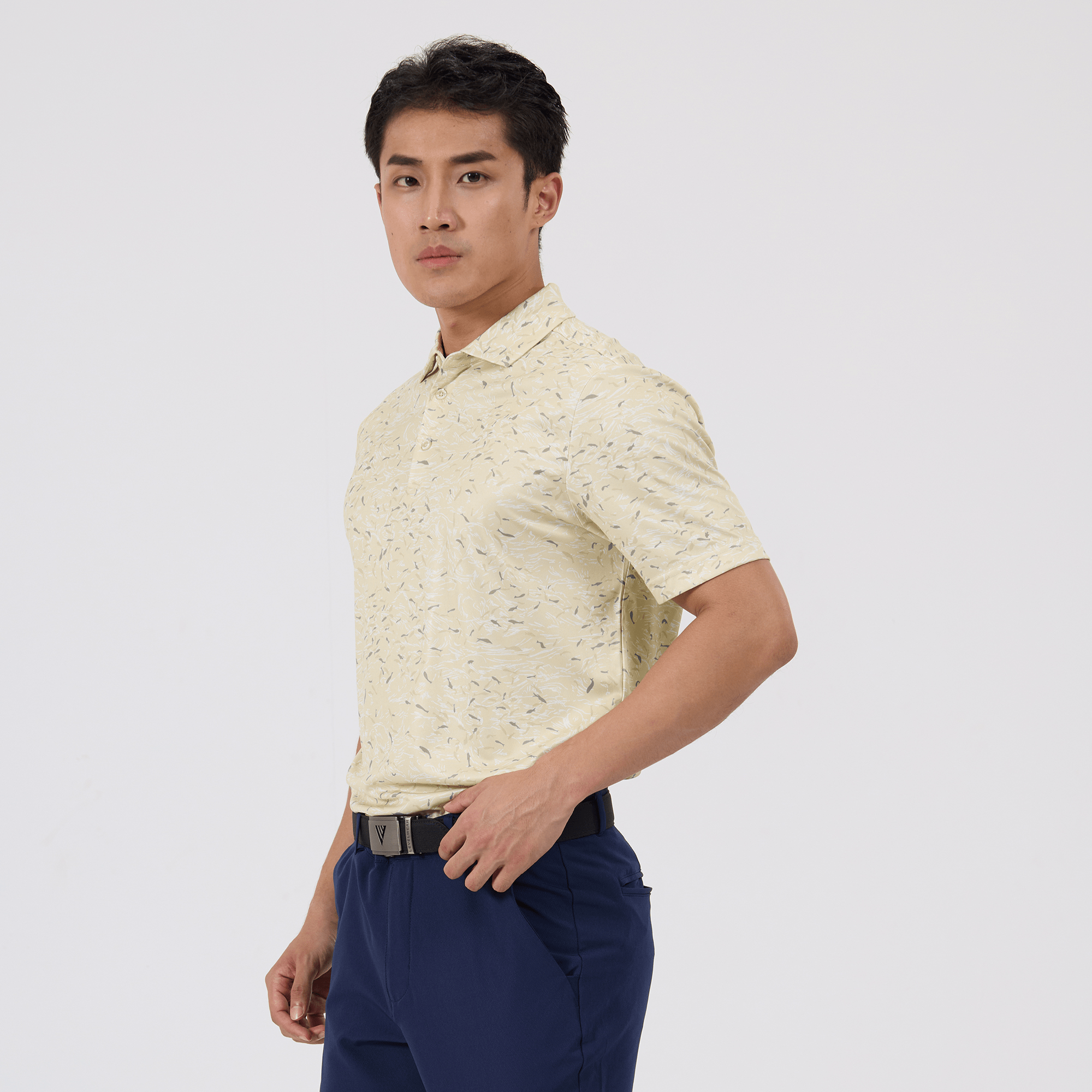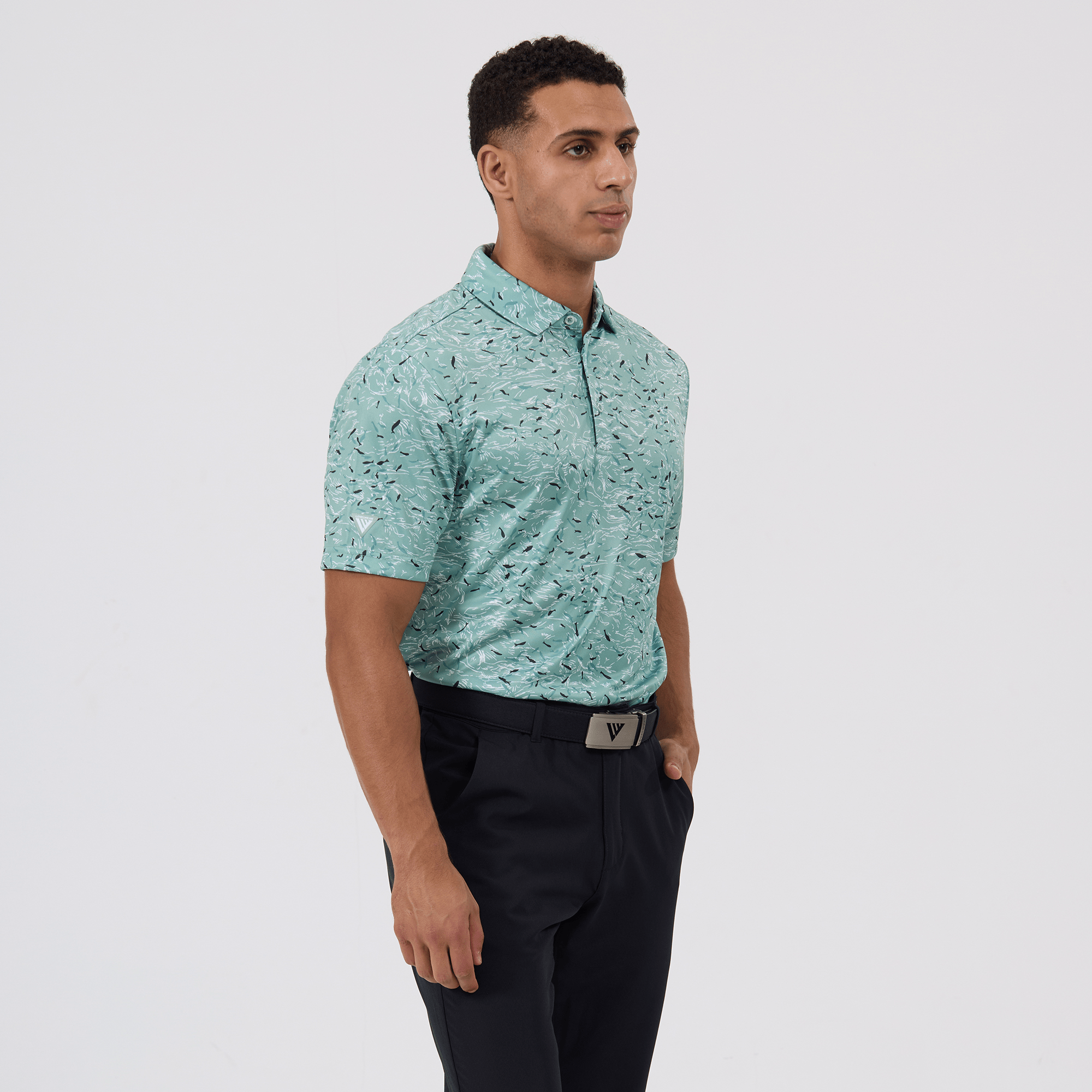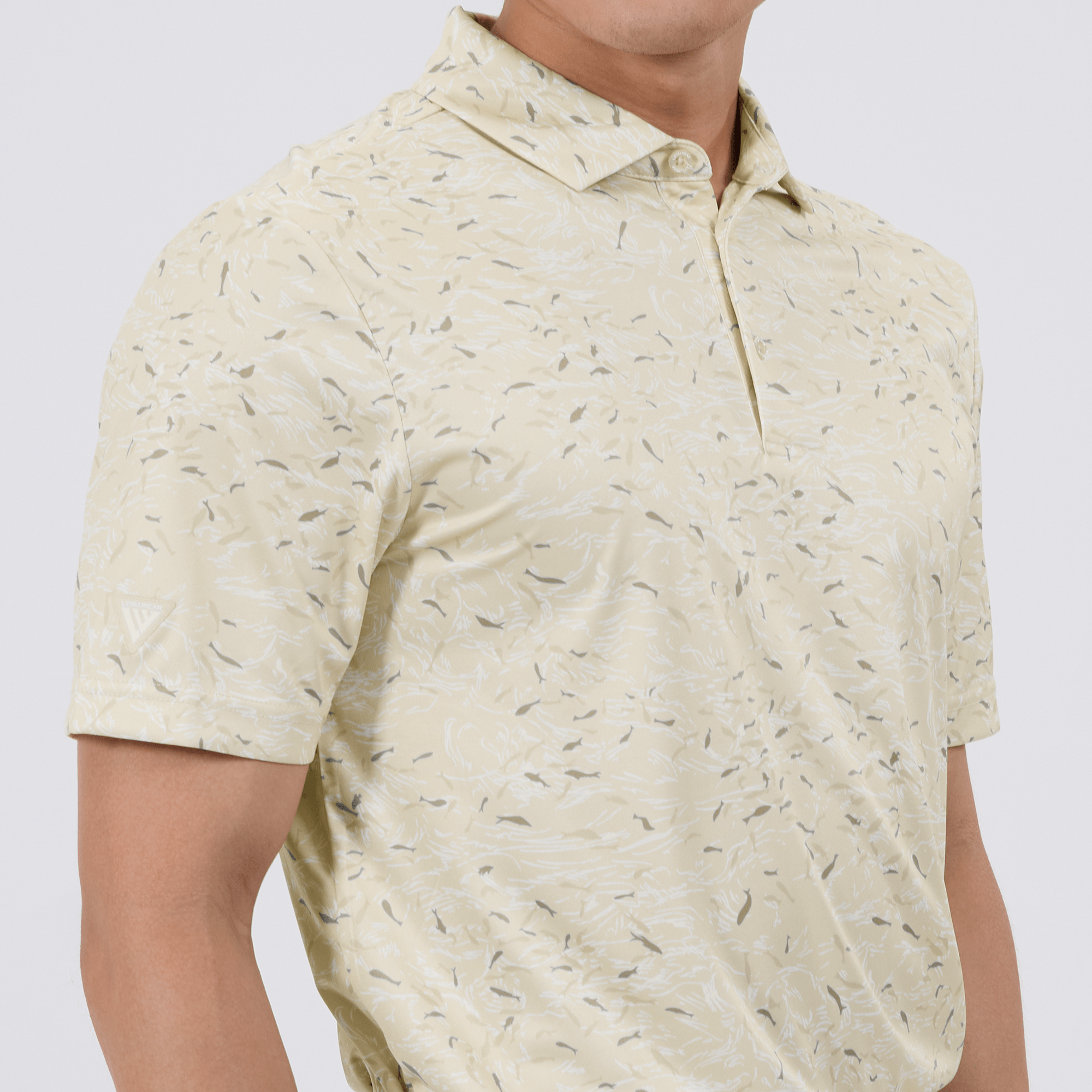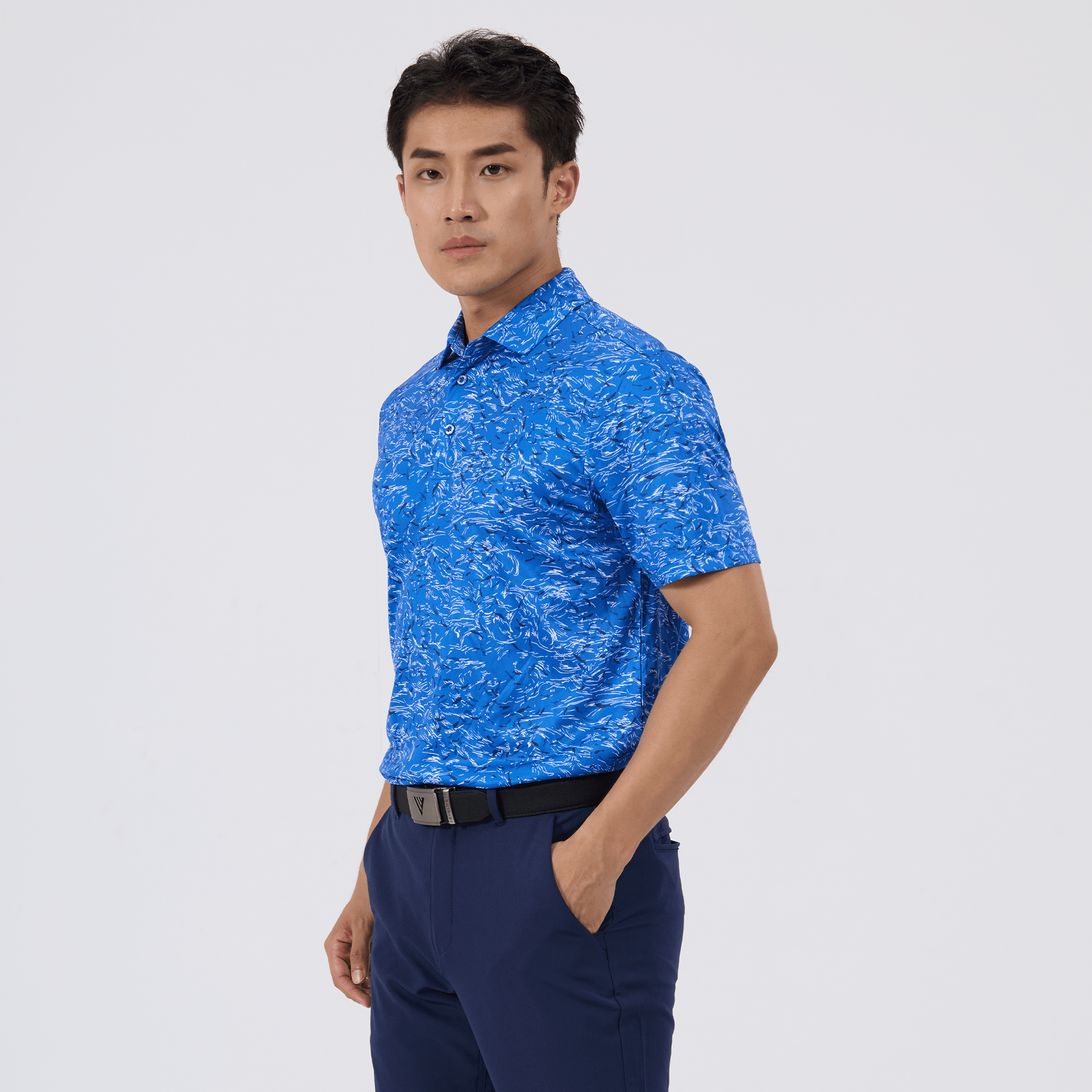 Elevate your golf attire with the men's Koi golf polo, a reflection of our commitment to sustainability and high-performance design. This polo is crafted entirely from 100% recycled polyester, emphasizing our dedication to environmental responsibility. Engineered to keep you dry and comfortable, the moisture-wicking fabric ensures you stay cool under pressure, whether you're on the green or at the driving range. The self-fabric collar with a built-in collar stay keeps your look sharp and structured throughout the day. A high-low hem detail with side slits offers enhanced mobility and a contemporary fit, while the striking all-over print makes a bold statement on style. The Koi golf polo is not just a piece of clothing, but a statement of care for the planet and a testament to functional, stylish sportswear.