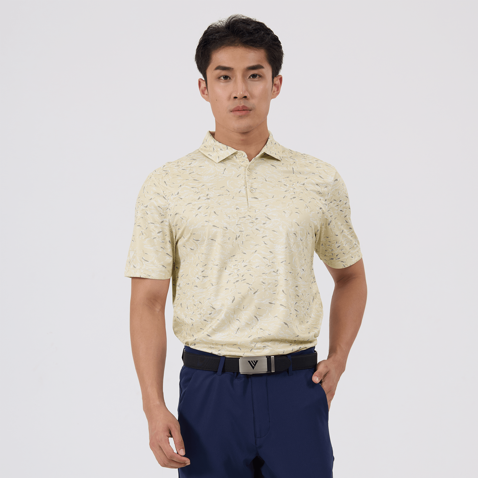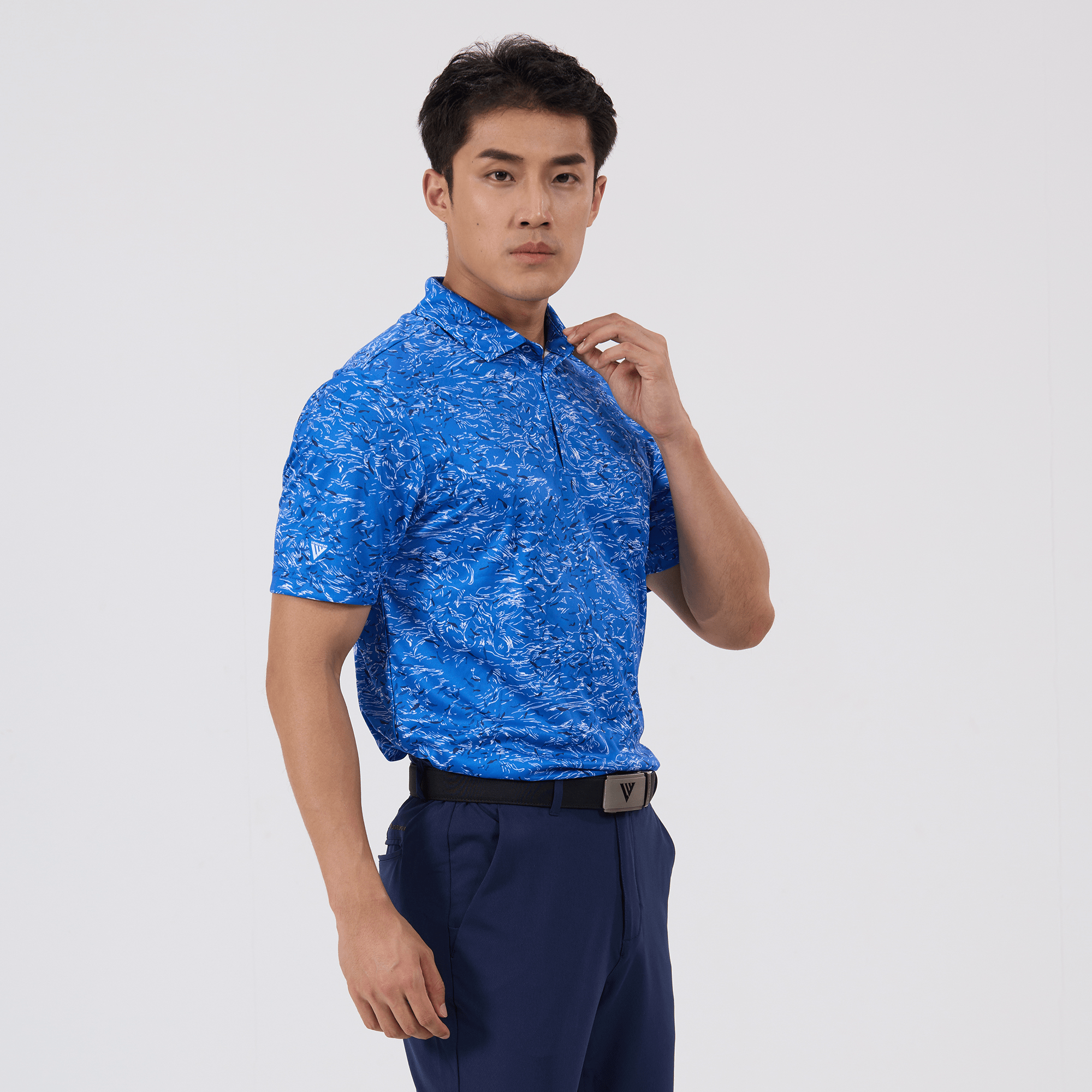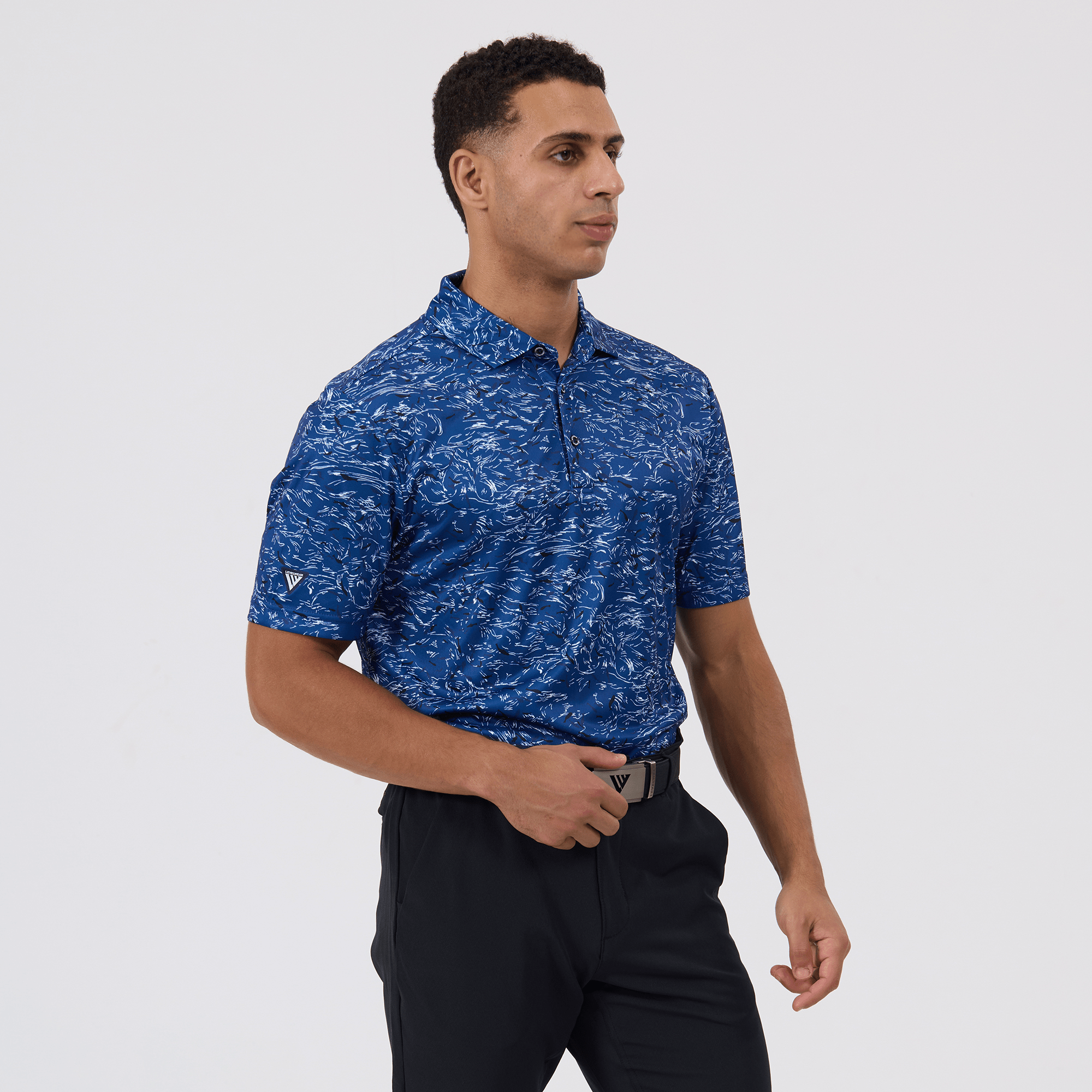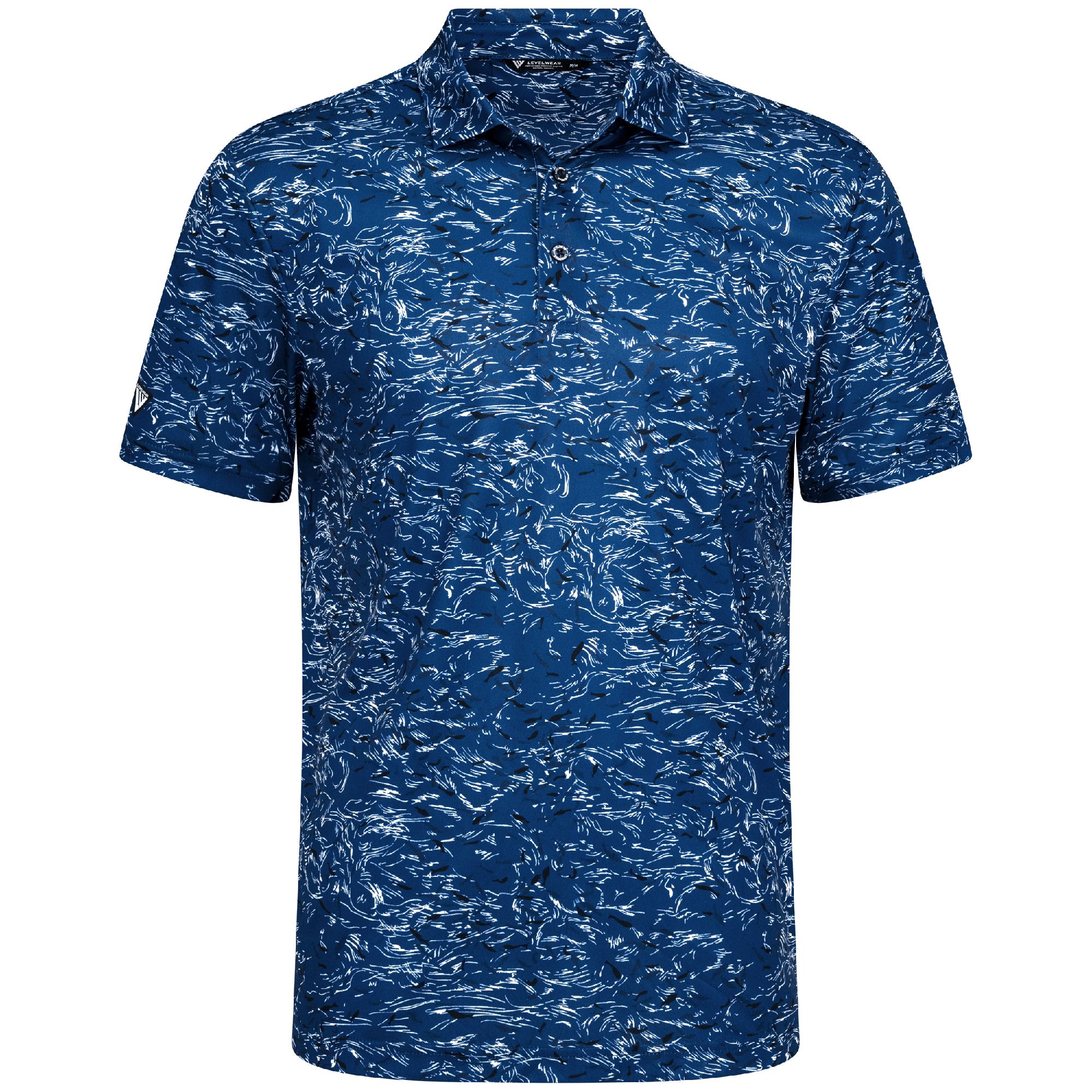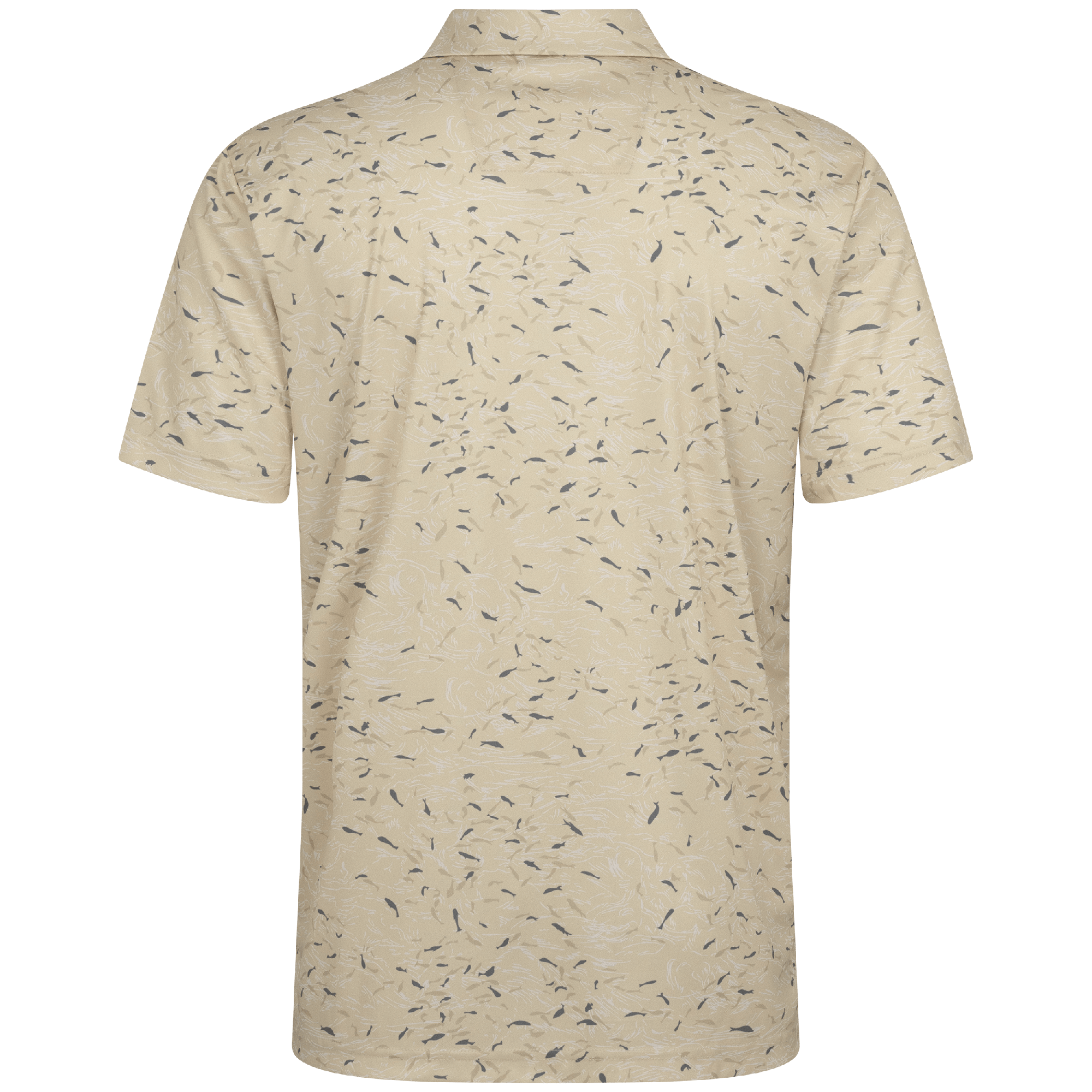 Elevate your golf attire with the men's Koi golf polo, a reflection of our commitment to sustainability and high-performance design. This polo is crafted entirely from 100% recycled polyester, emphasizing our dedication to environmental responsibility. Engineered to keep you dry and comfortable, the moisture-wicking fabric ensures you stay cool under pressure, whether you're on the green or at the driving range. The self-fabric collar with a built-in collar stay keeps your look sharp and structured throughout the day. A high-low hem detail with side slits offers enhanced mobility and a contemporary fit, while the striking all-over print makes a bold statement on style. The Koi golf polo is not just a piece of clothing, but a statement of care for the planet and a testament to functional, stylish sportswear.
