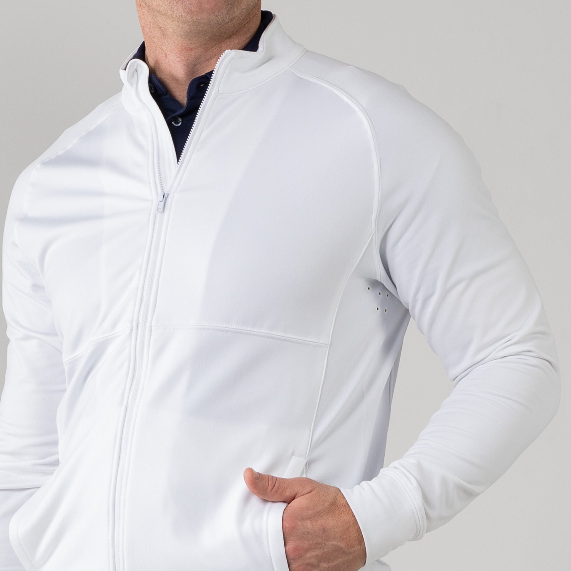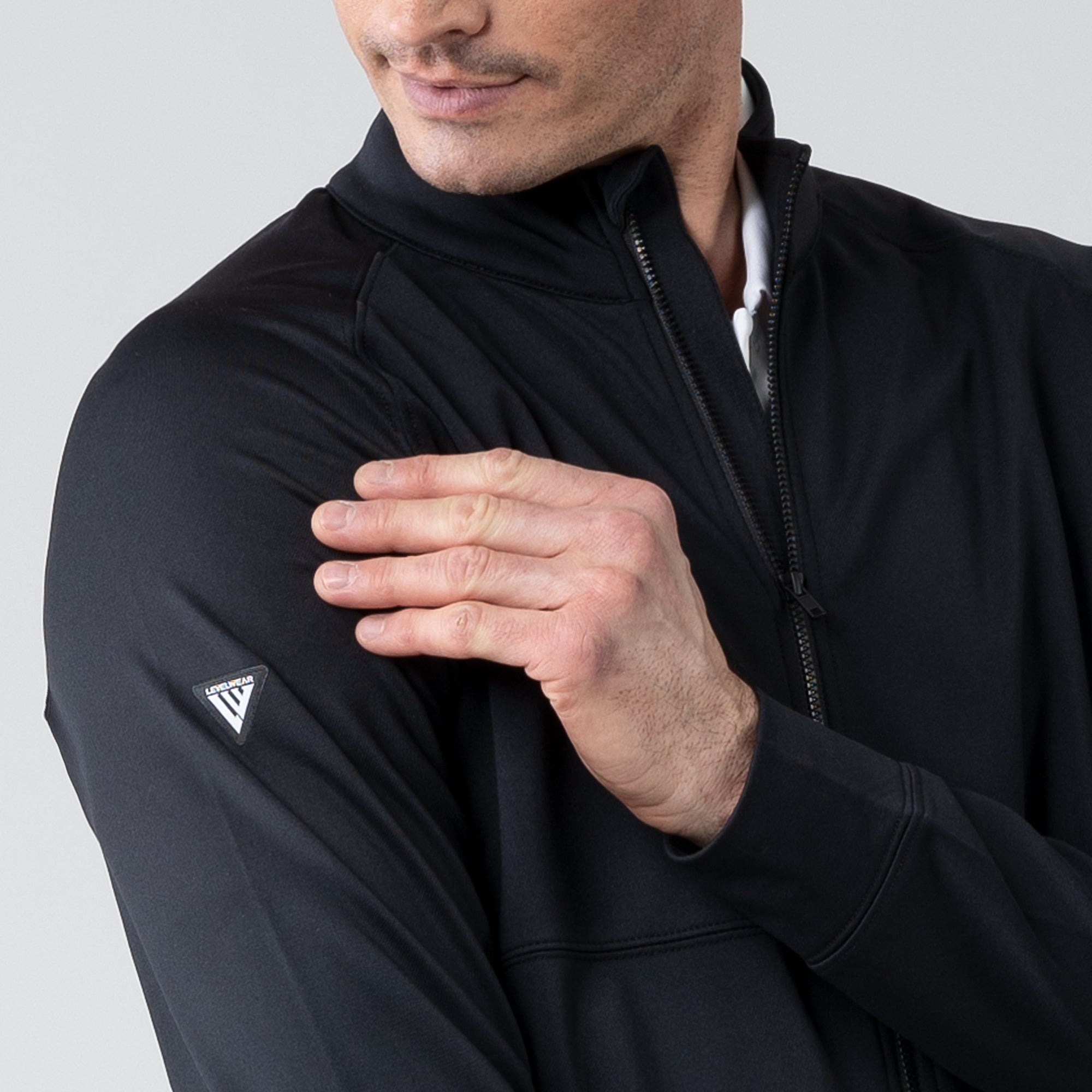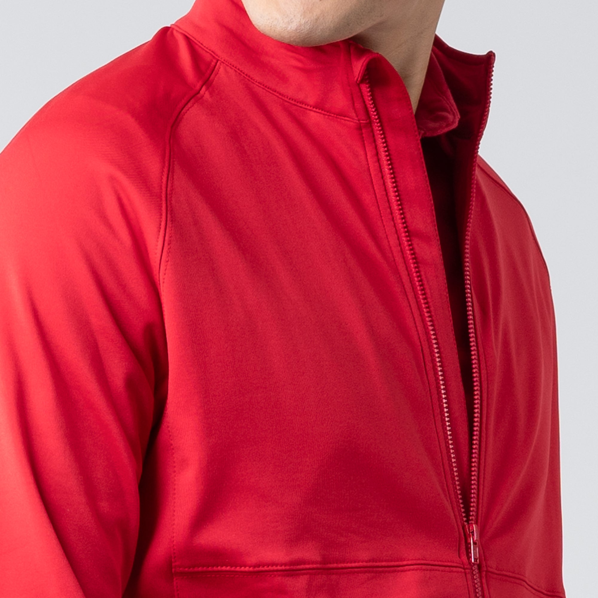 Gear up with the Nitro, a full-zip lightweight jacket that is as versatile as it is functional. Constructed from an 88% polyester and 12% spandex blend, this jacket offers performance stretch for unrestricted movement and a brushed interior that provides essential warmth without bulk. The raglan shoulder seams enhance your range of motion, making it perfect for active wear or casual outings. Features like vented underarms ensure breathability, while the mock neck collar and banded sleeves help maintain a sleek, streamlined profile. With practical side pockets and a distinctive chest panel, the Nitro Jacket is ideal for those who demand both high performance and style in their outdoor or everyday apparel.