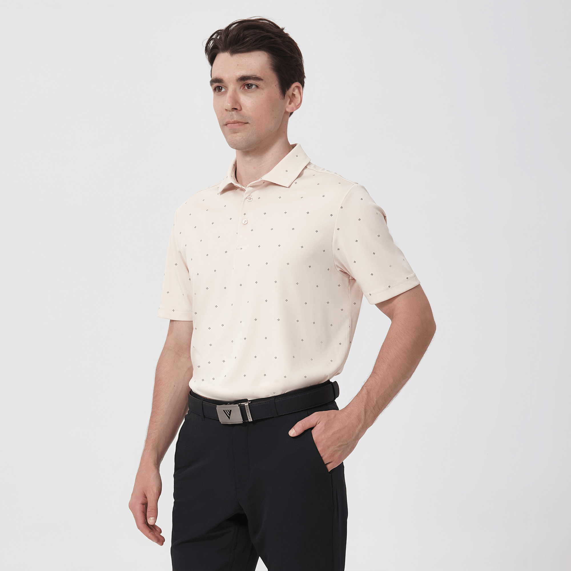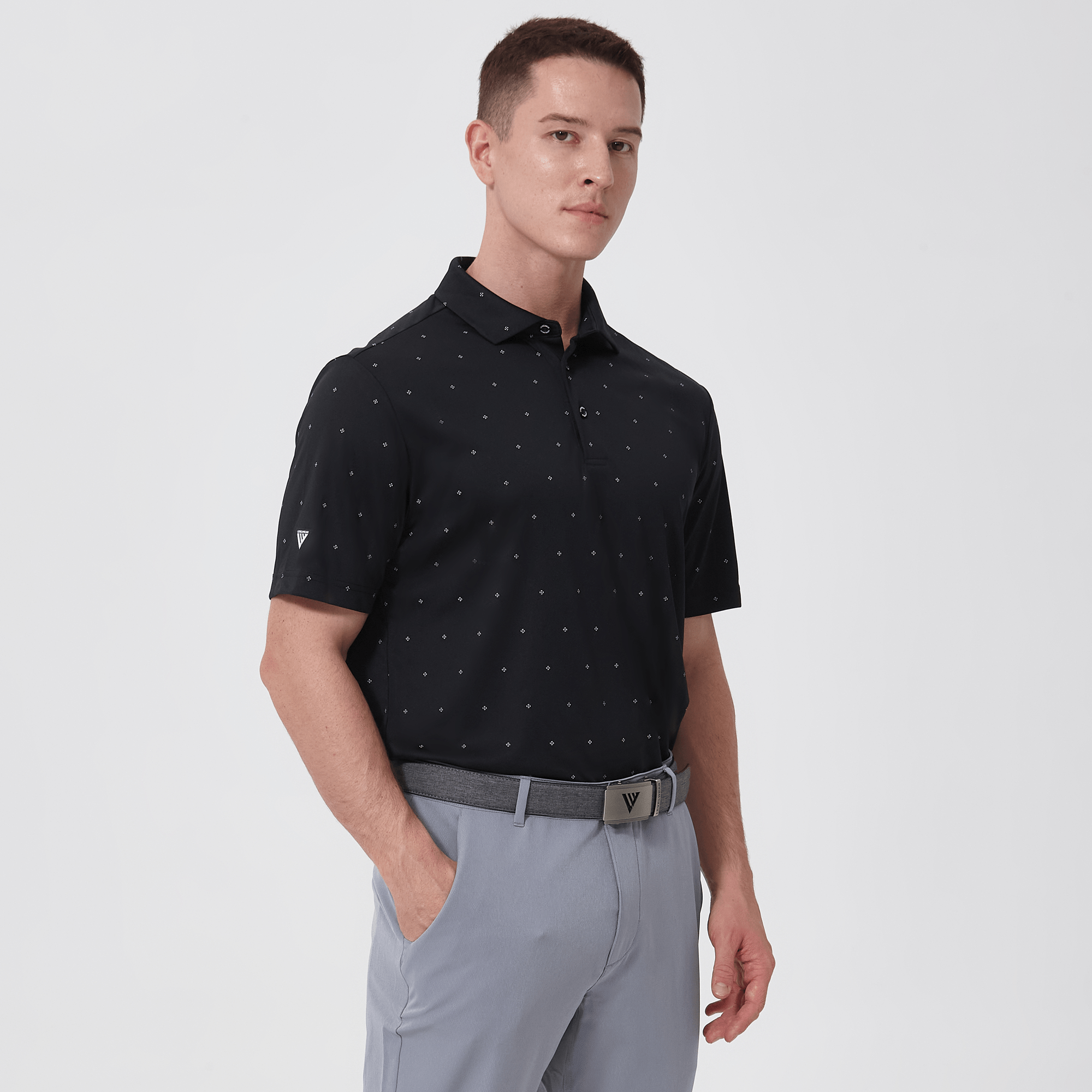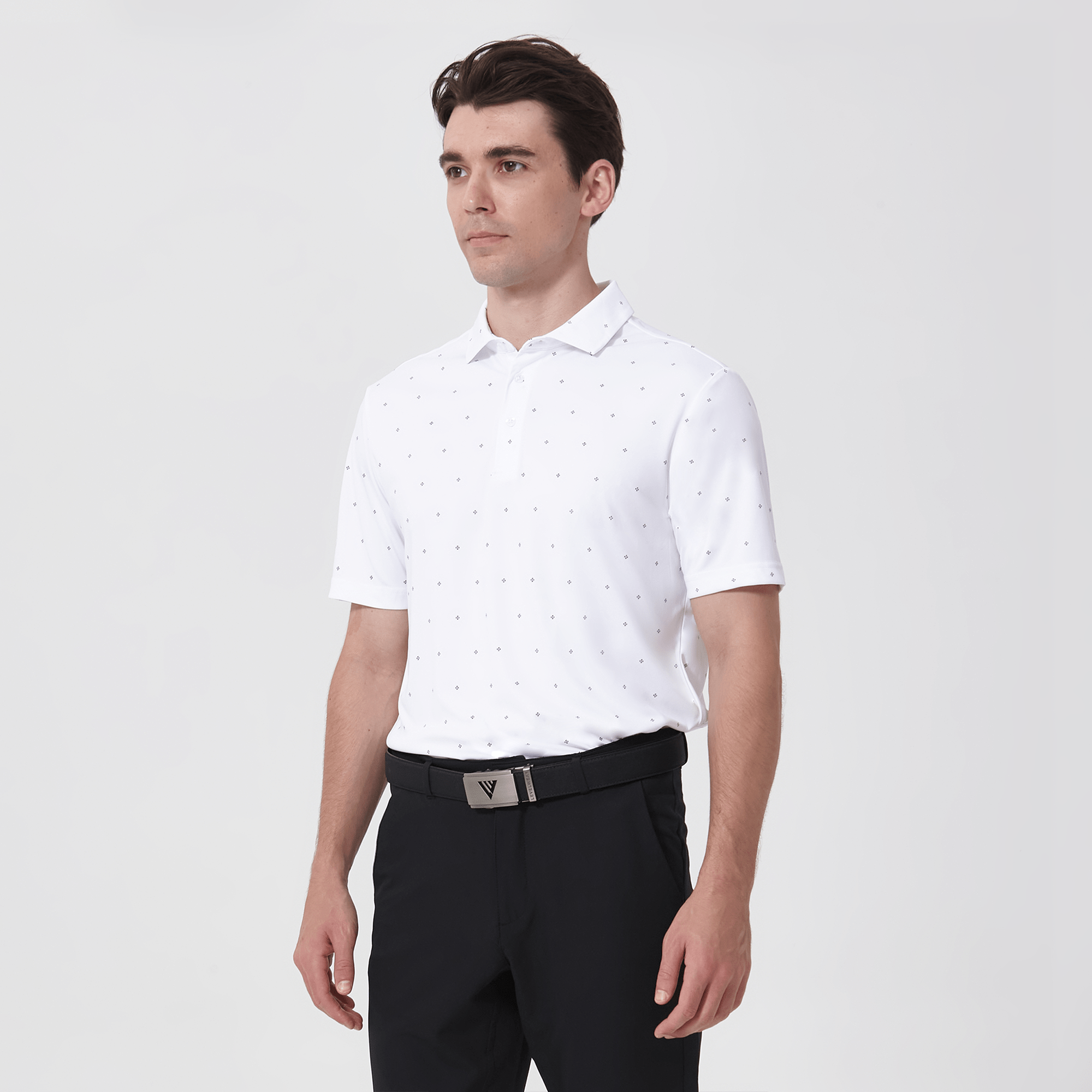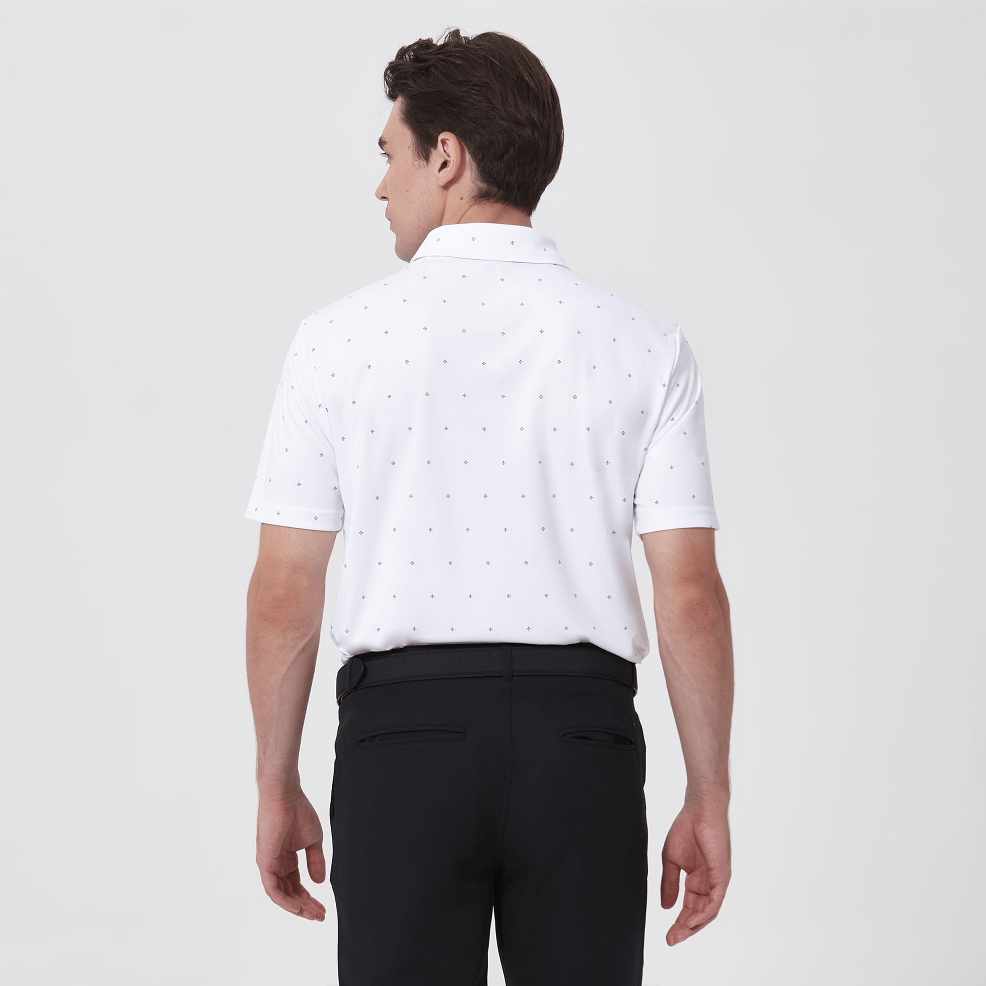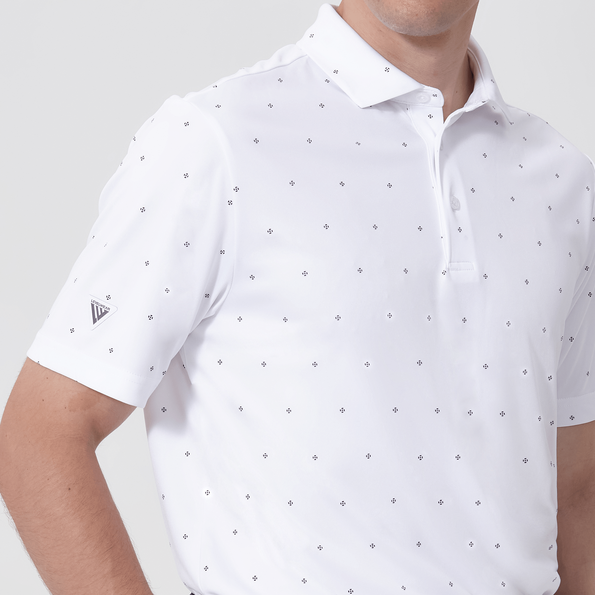 Presenting the men's Vision polo, specifically designed for golf enthusiasts seeking optimal performance on the course. Made from 100% polyester, this polo ensures durability and features moisture-wicking technology to keep you dry during your rounds. Its anti-static property prevents unwanted cling, enhancing your comfort and focus while playing. The self-fabric collar with a built-in collar stay maintains a neat appearance, while the high-low hem detail with side slits promotes enhanced mobility, crucial for a smooth swing. Finished with a subtle all-over print, the Vision polo is perfect for golfers looking to combine functionality with a classic look on the green.