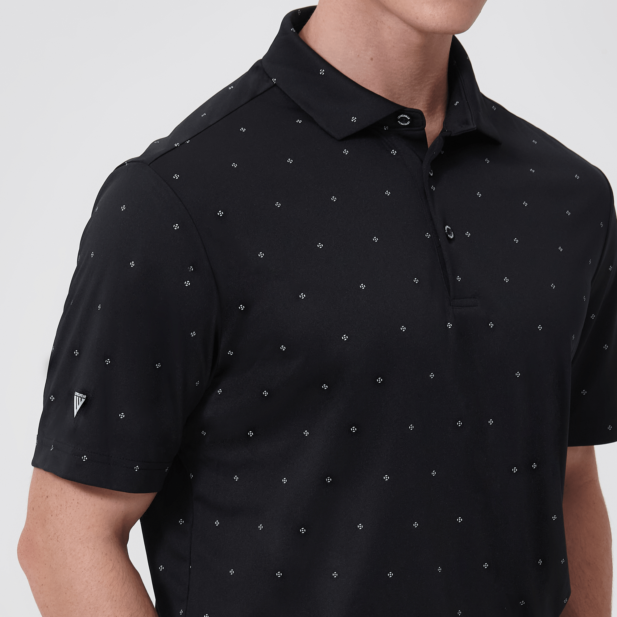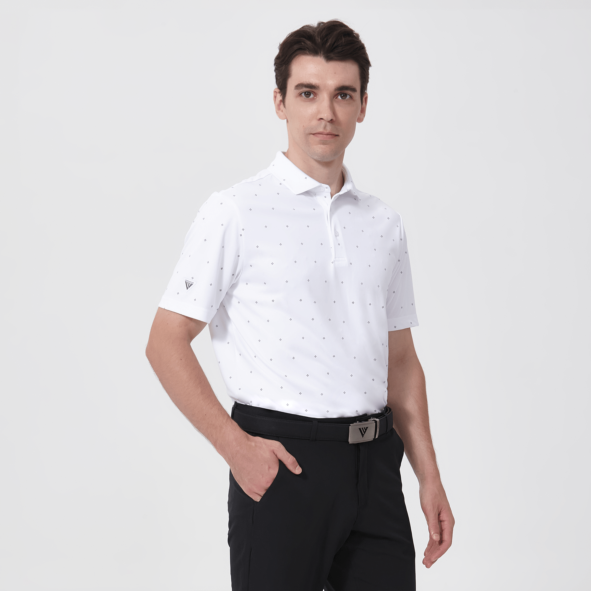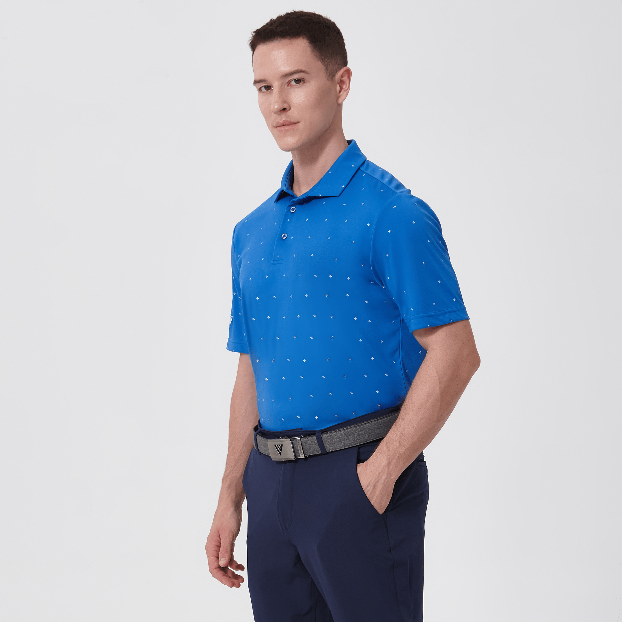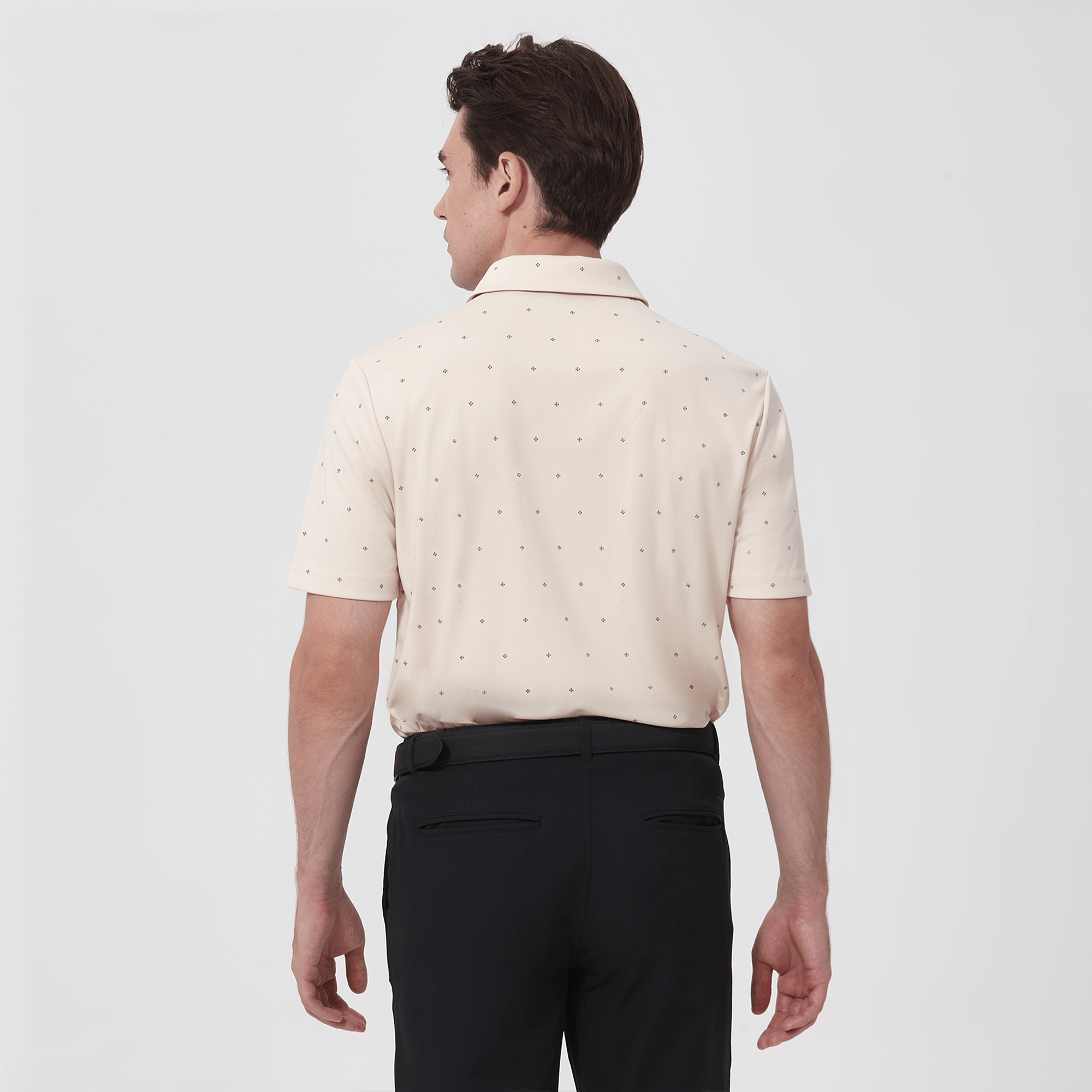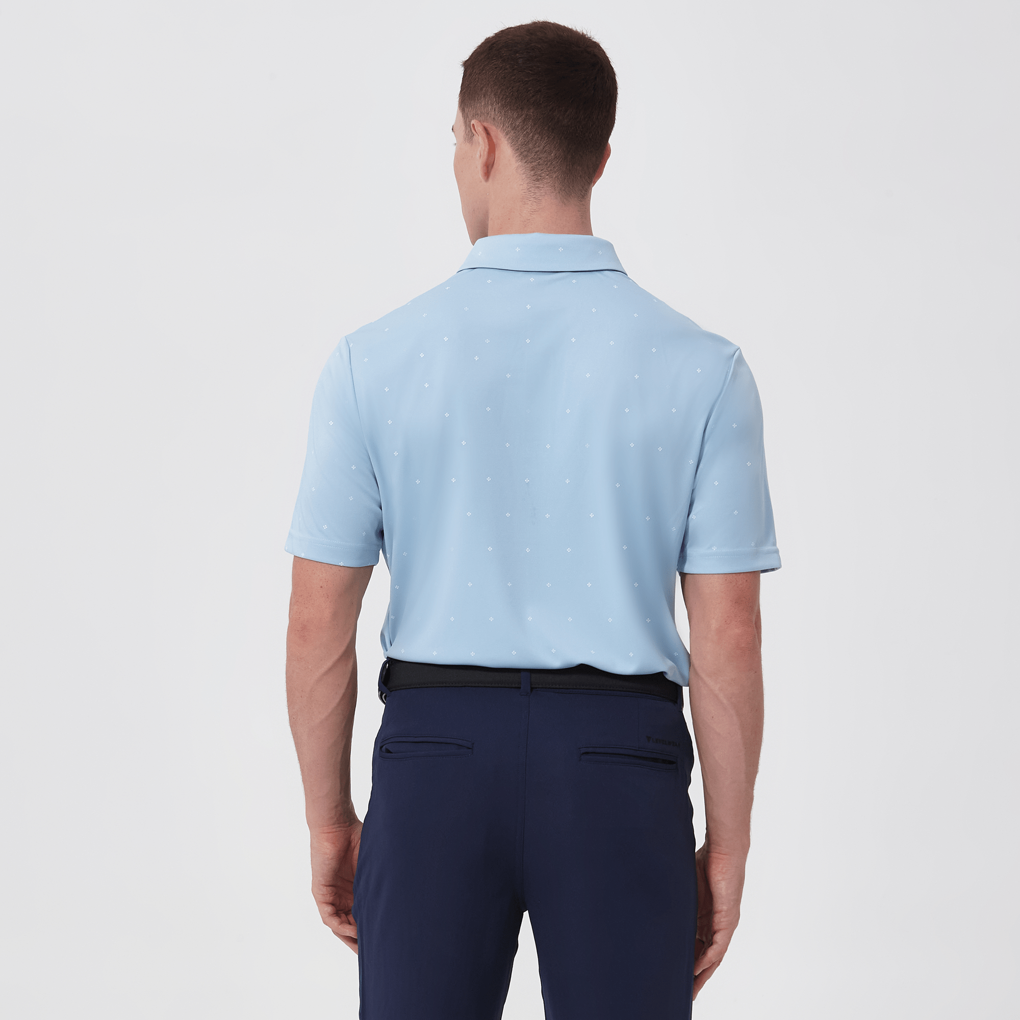 Presenting the men's Vision polo, specifically designed for golf enthusiasts seeking optimal performance on the course. Made from 100% polyester, this polo ensures durability and features moisture-wicking technology to keep you dry during your rounds. Its anti-static property prevents unwanted cling, enhancing your comfort and focus while playing. The self-fabric collar with a built-in collar stay maintains a neat appearance, while the high-low hem detail with side slits promotes enhanced mobility, crucial for a smooth swing. Finished with a subtle all-over print, the Vision polo is perfect for golfers looking to combine functionality with a classic look on the green.