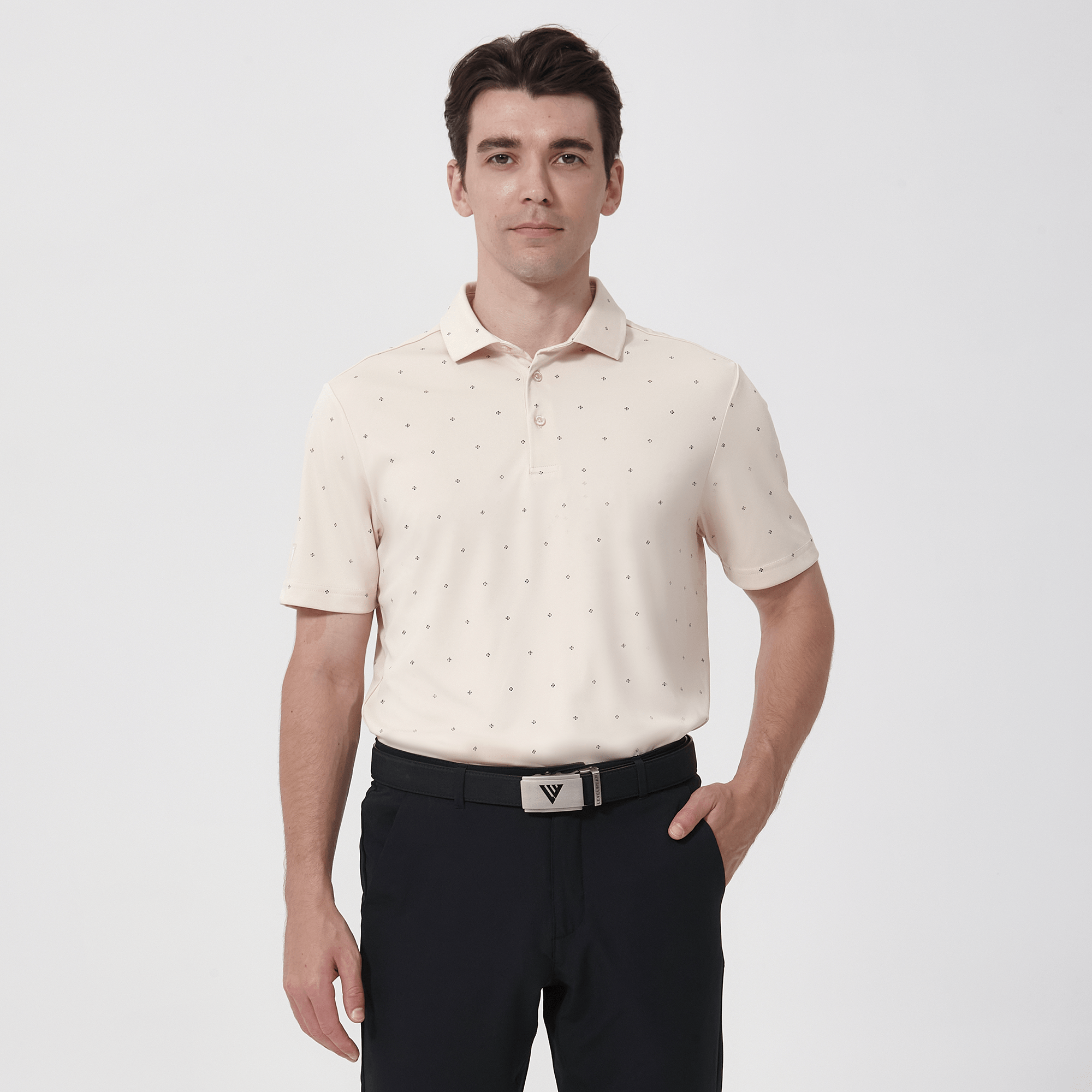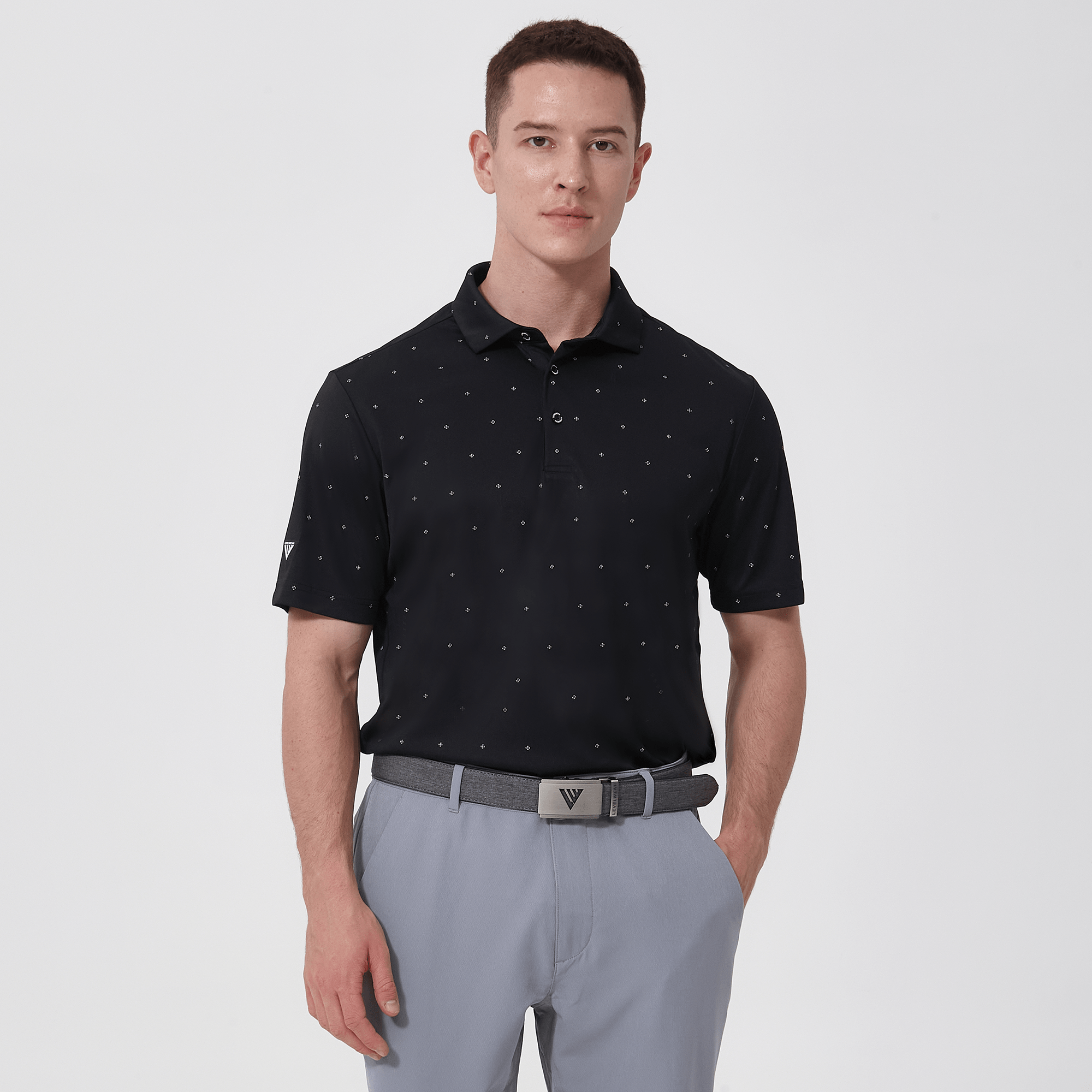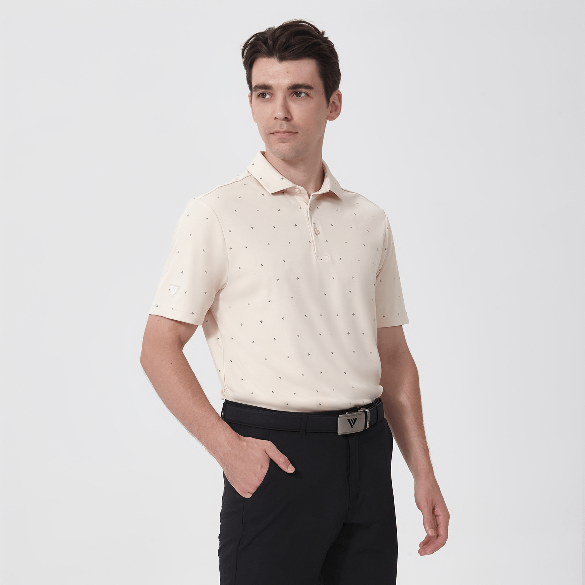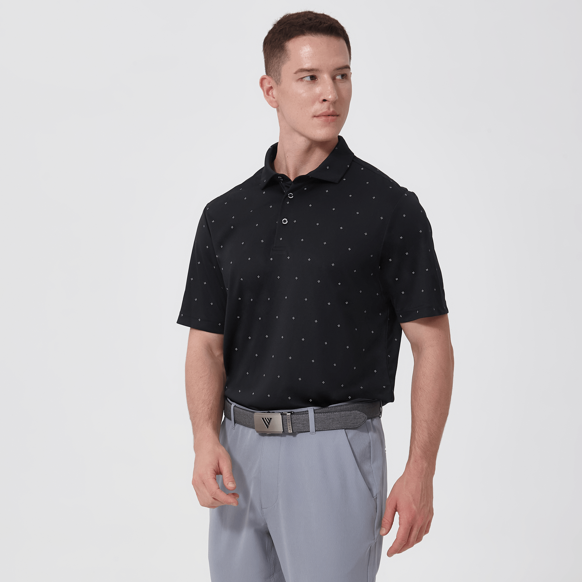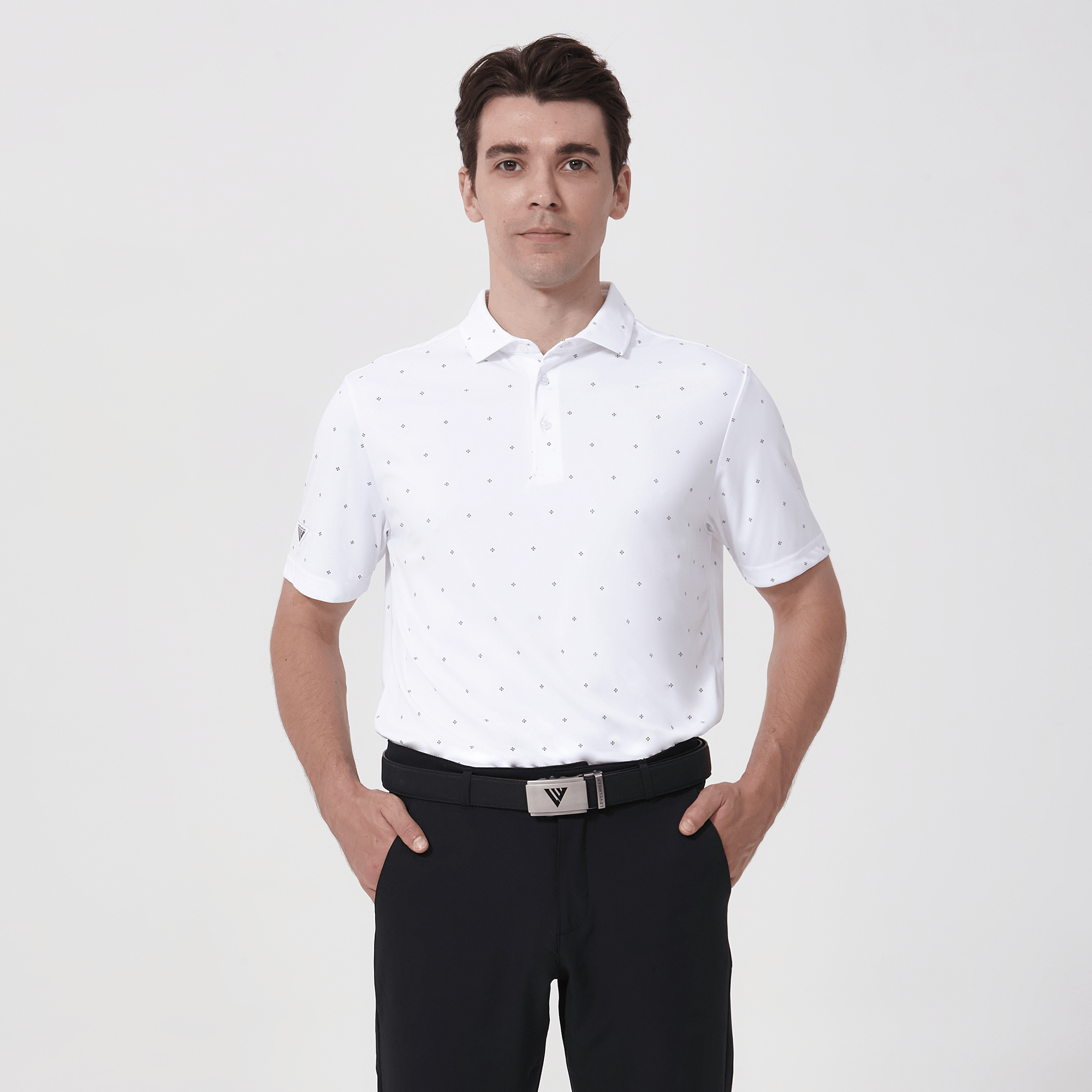 Presenting the men's Vision polo, specifically designed for golf enthusiasts seeking optimal performance on the course. Made from 100% polyester, this polo ensures durability and features moisture-wicking technology to keep you dry during your rounds. Its anti-static property prevents unwanted cling, enhancing your comfort and focus while playing. The self-fabric collar with a built-in collar stay maintains a neat appearance, while the high-low hem detail with side slits promotes enhanced mobility, crucial for a smooth swing. Finished with a subtle all-over print, the Vision polo is perfect for golfers looking to combine functionality with a classic look on the green.