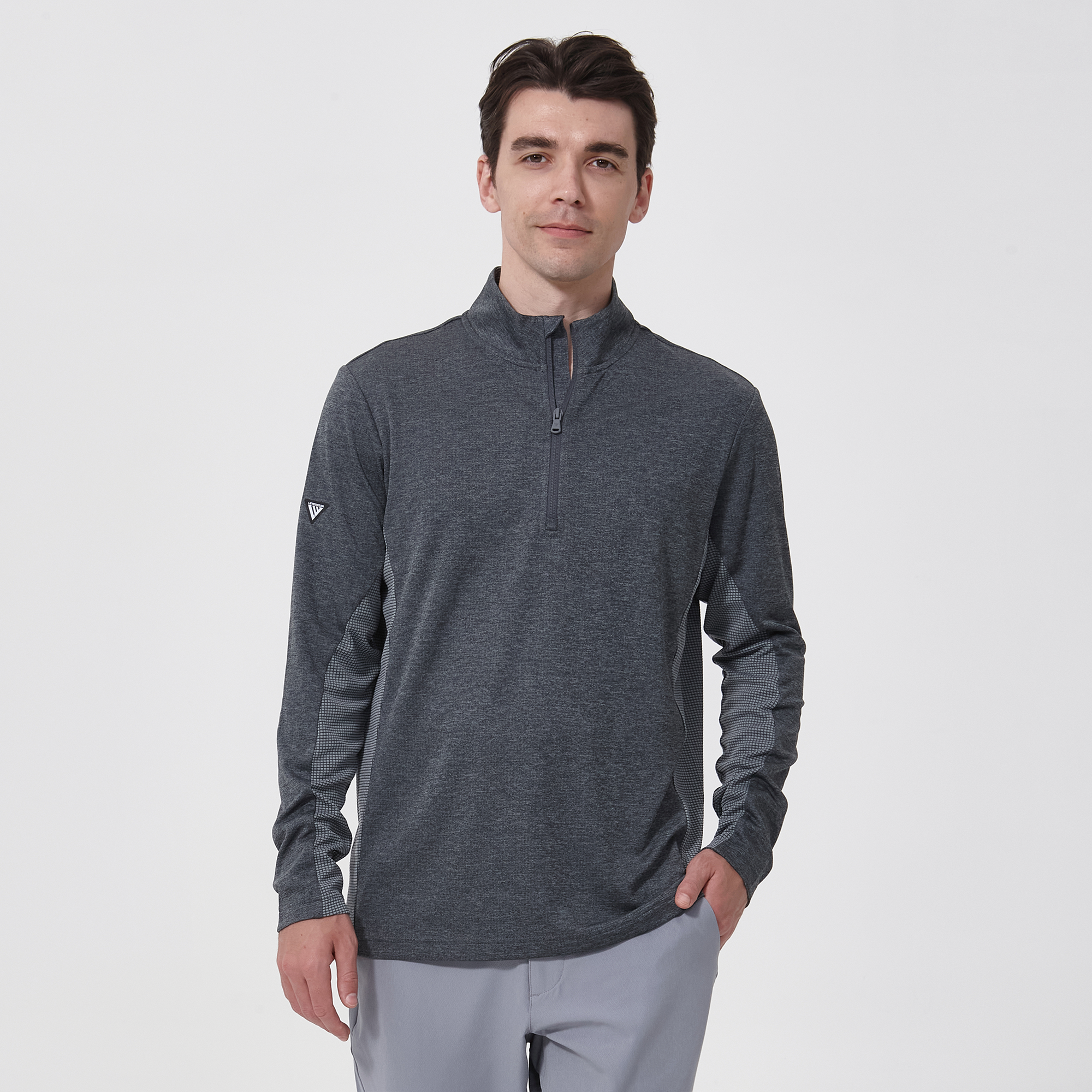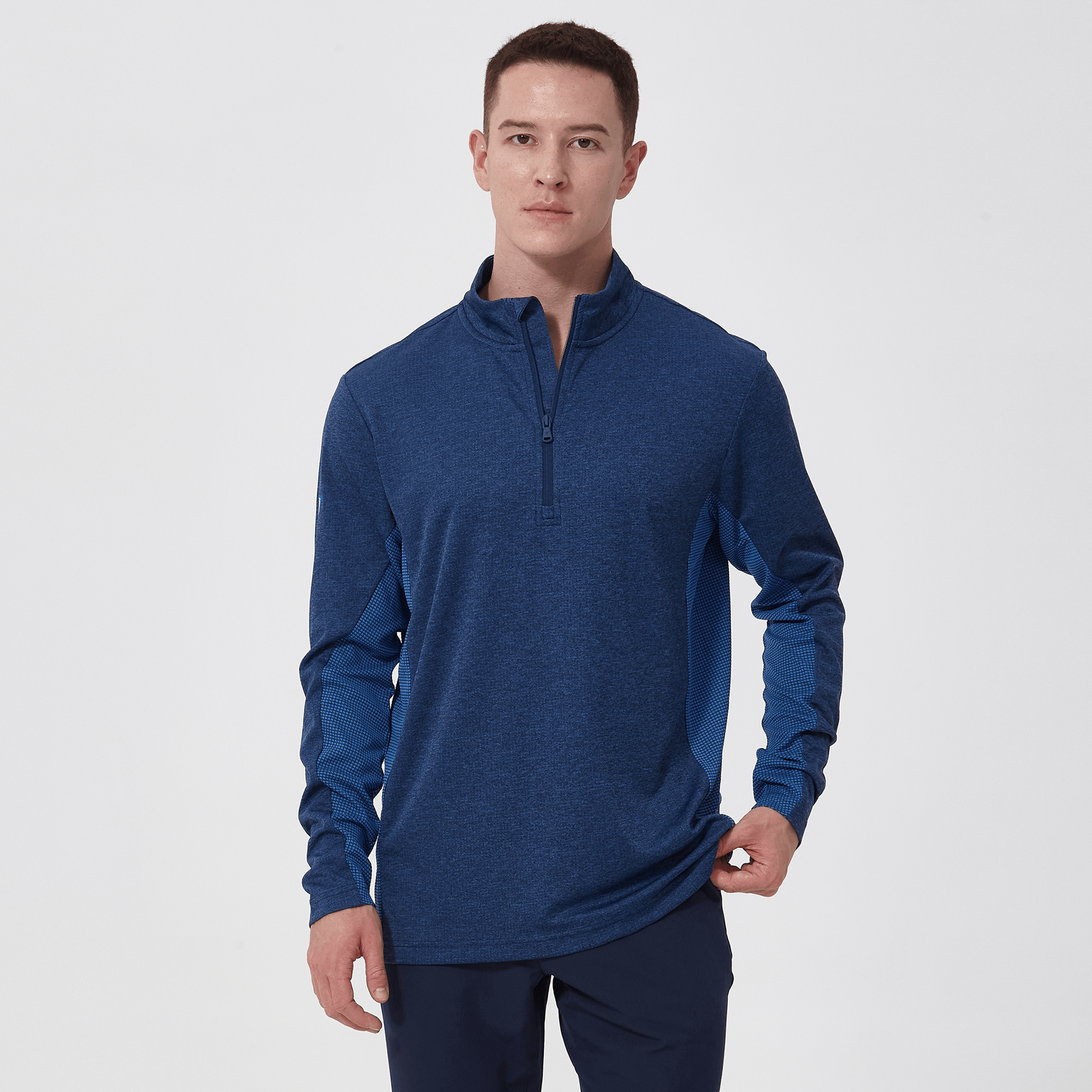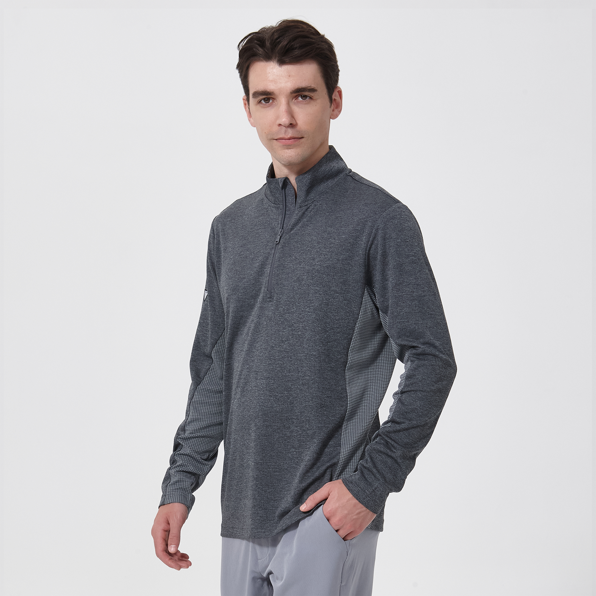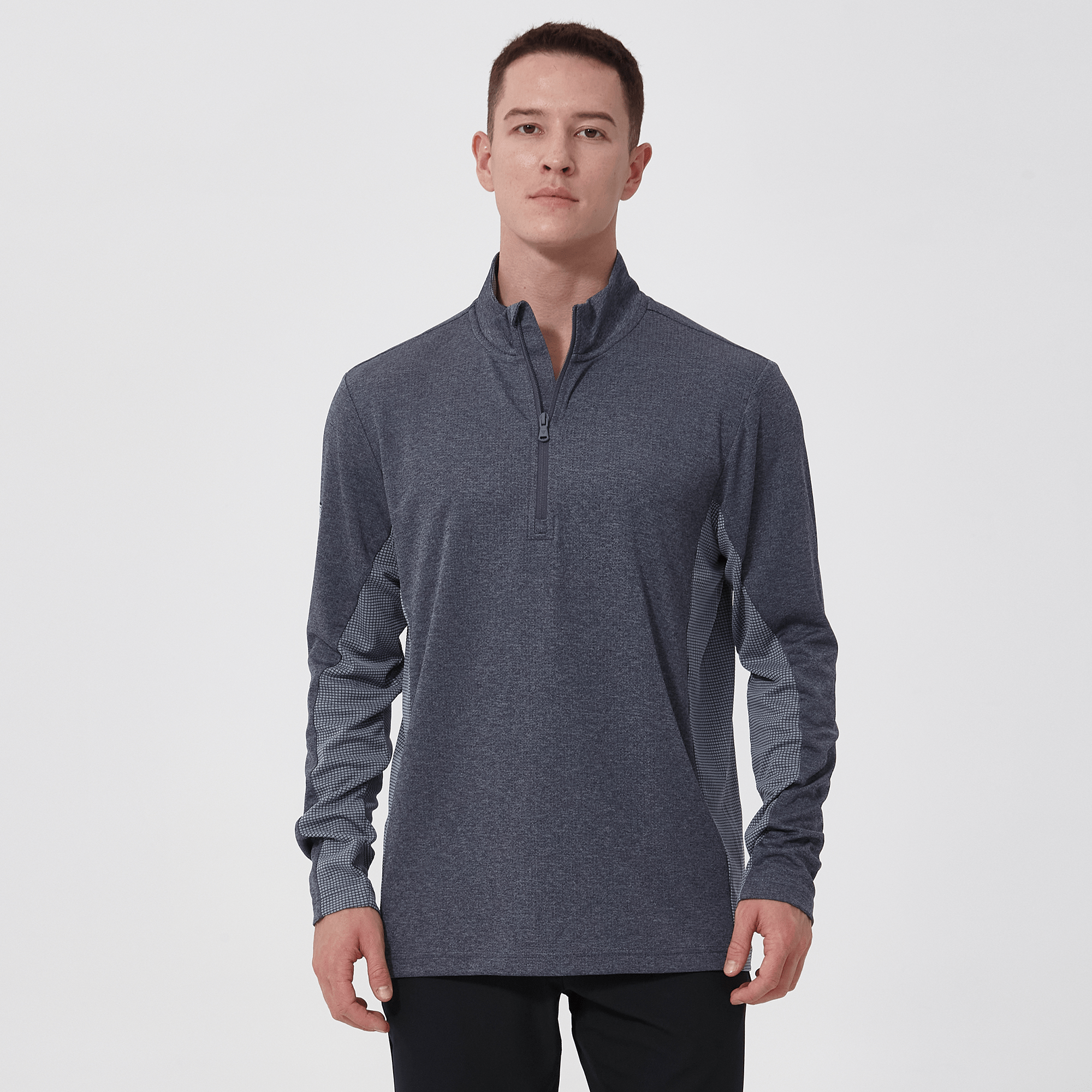 Perfect for golfers and active individuals alike, the men's Waffle midlayer combines technical performance with stylish details. This quarter-zip piece is crafted entirely from 100% polyester, featuring a textured waffle fabric that not only looks great but also provides moisture-wicking capabilities to keep you dry and comfortable during vigorous activities. The design includes forward shoulder seams for better mobility and a stand-up collar that adds a modern touch while offering additional coverage. Reversed self-contrast on the underarm panels, side panels, and collar facing adds a subtle yet distinct aesthetic, making this midlayer a versatile option for wearing both on the golf course and as part of a casual activewear ensemble.