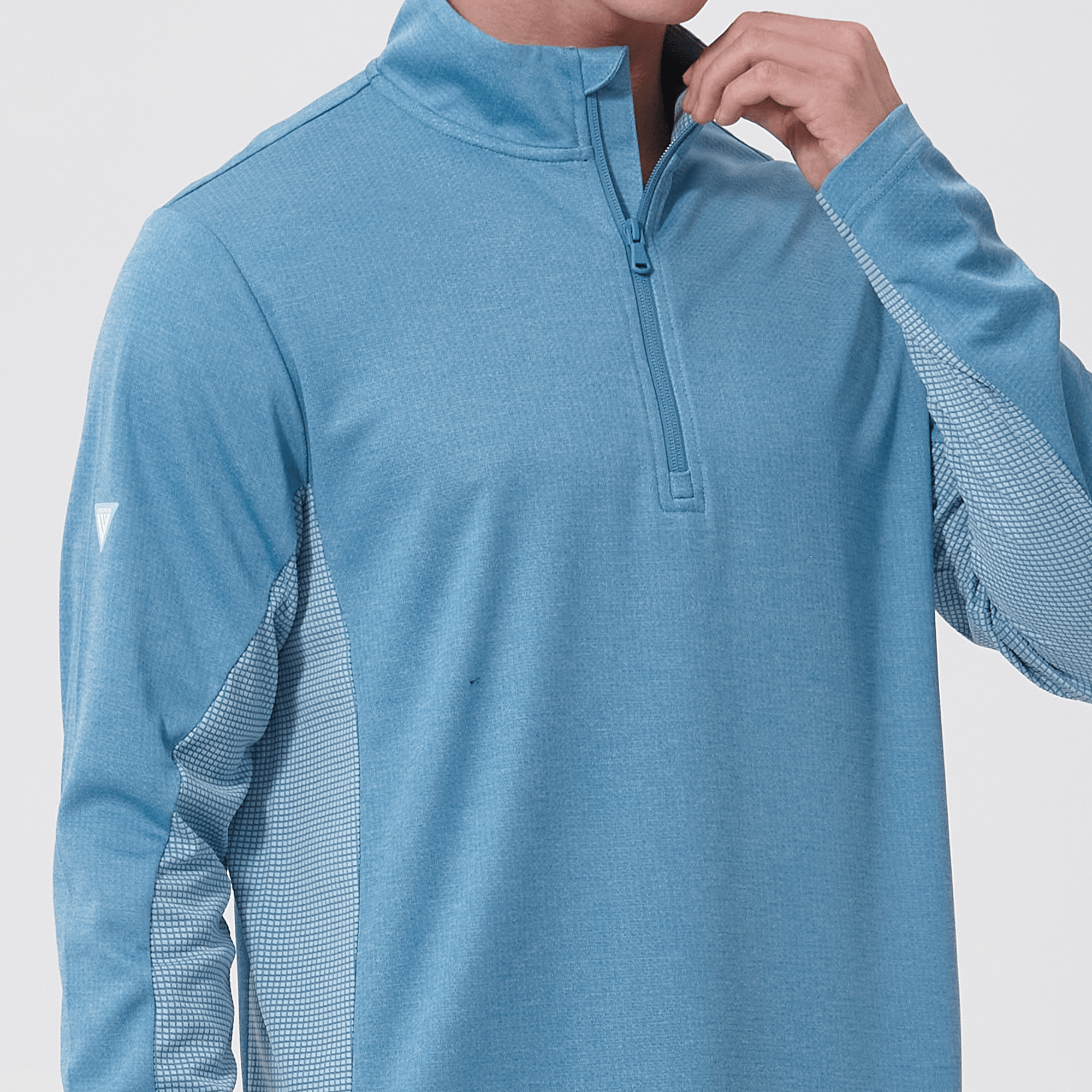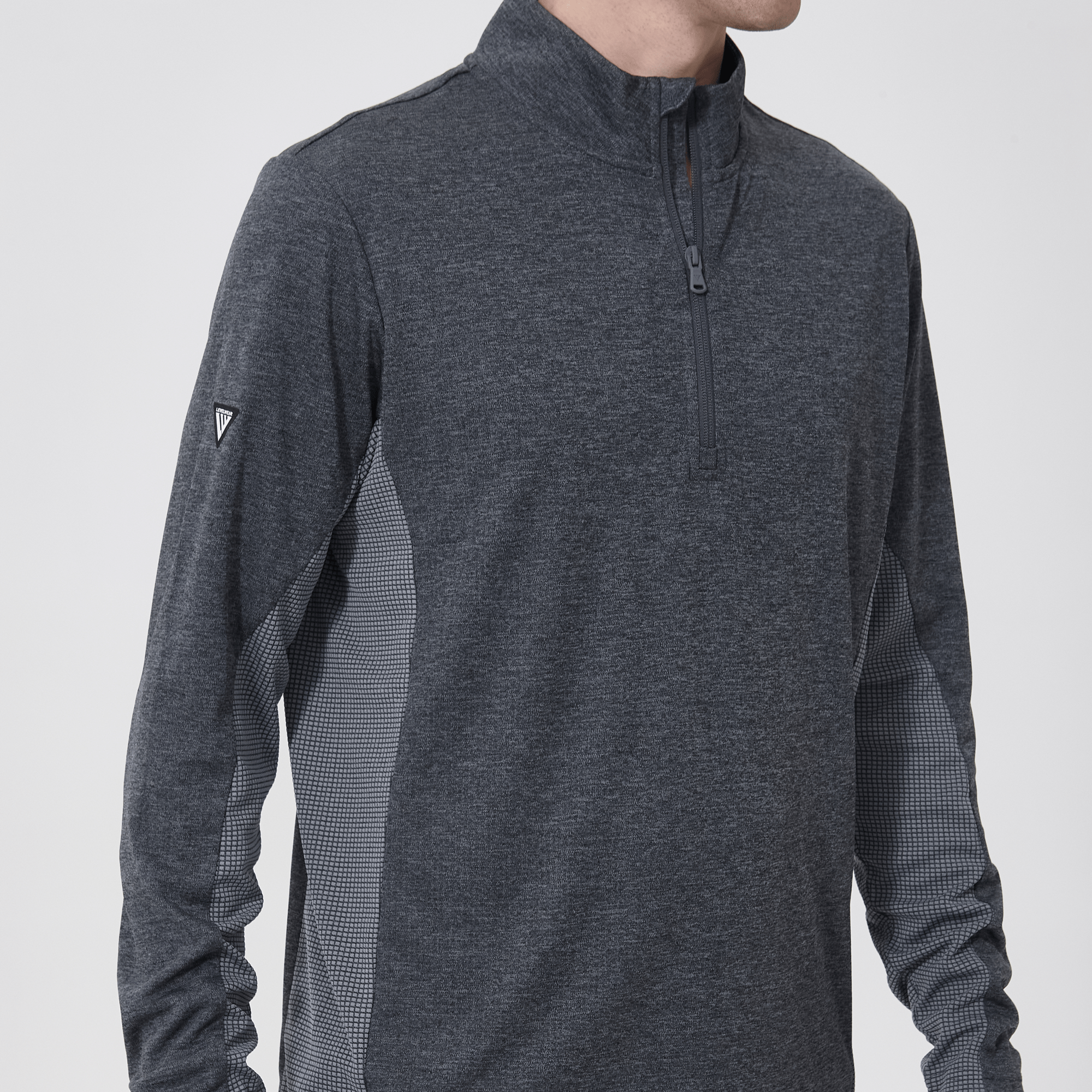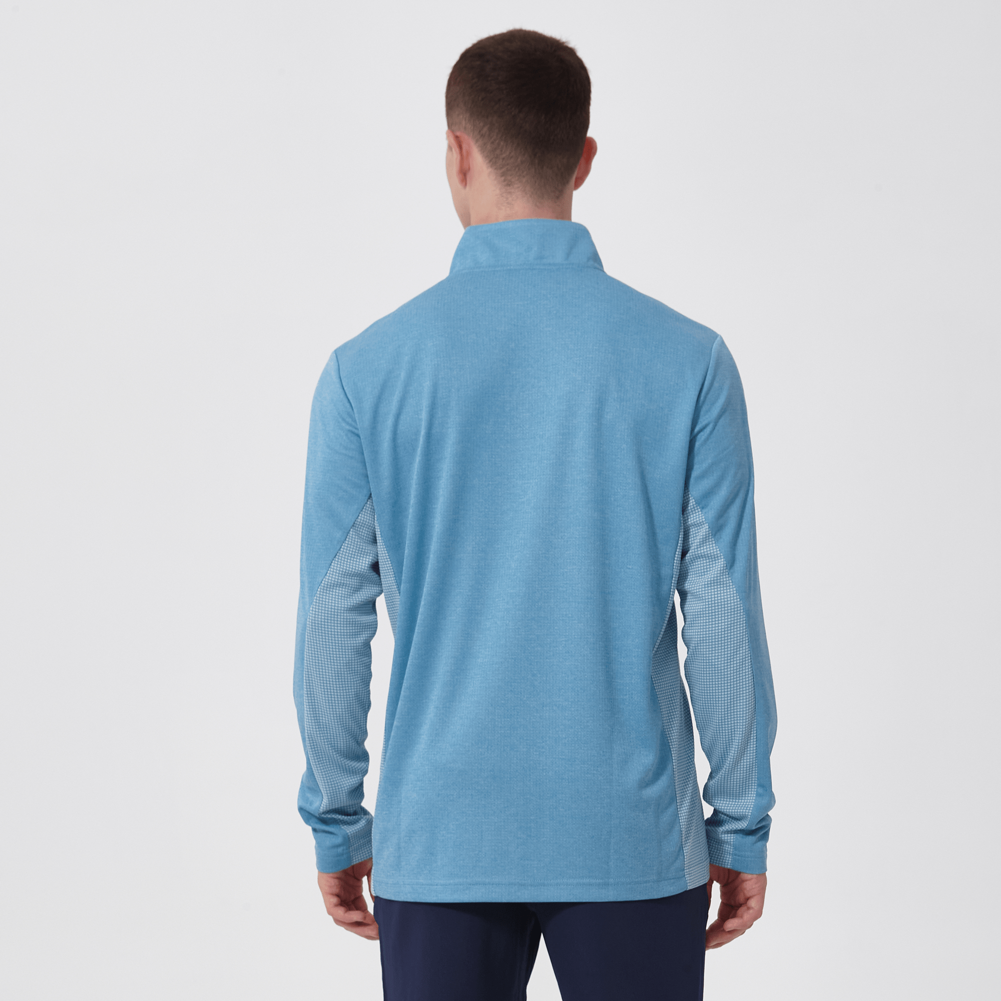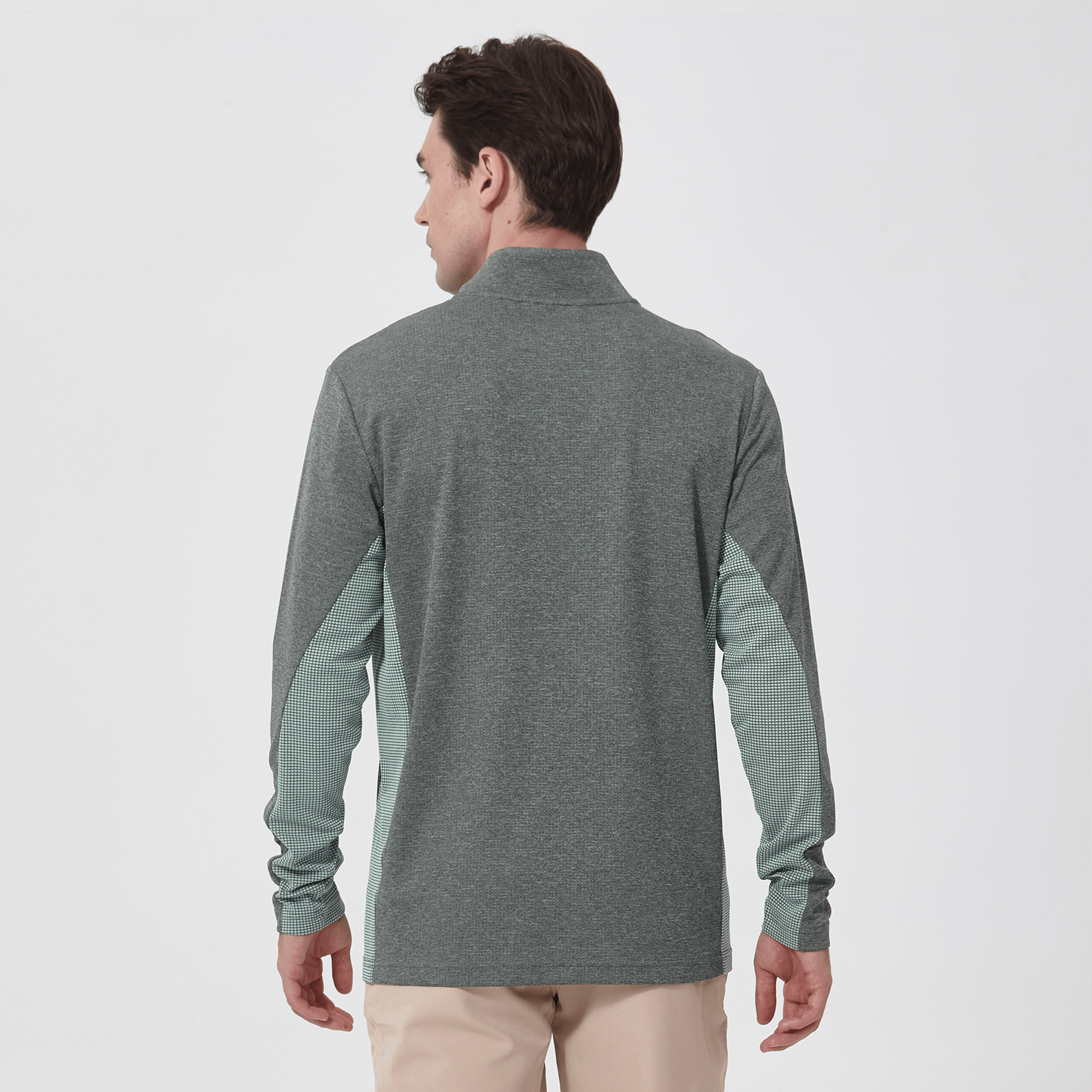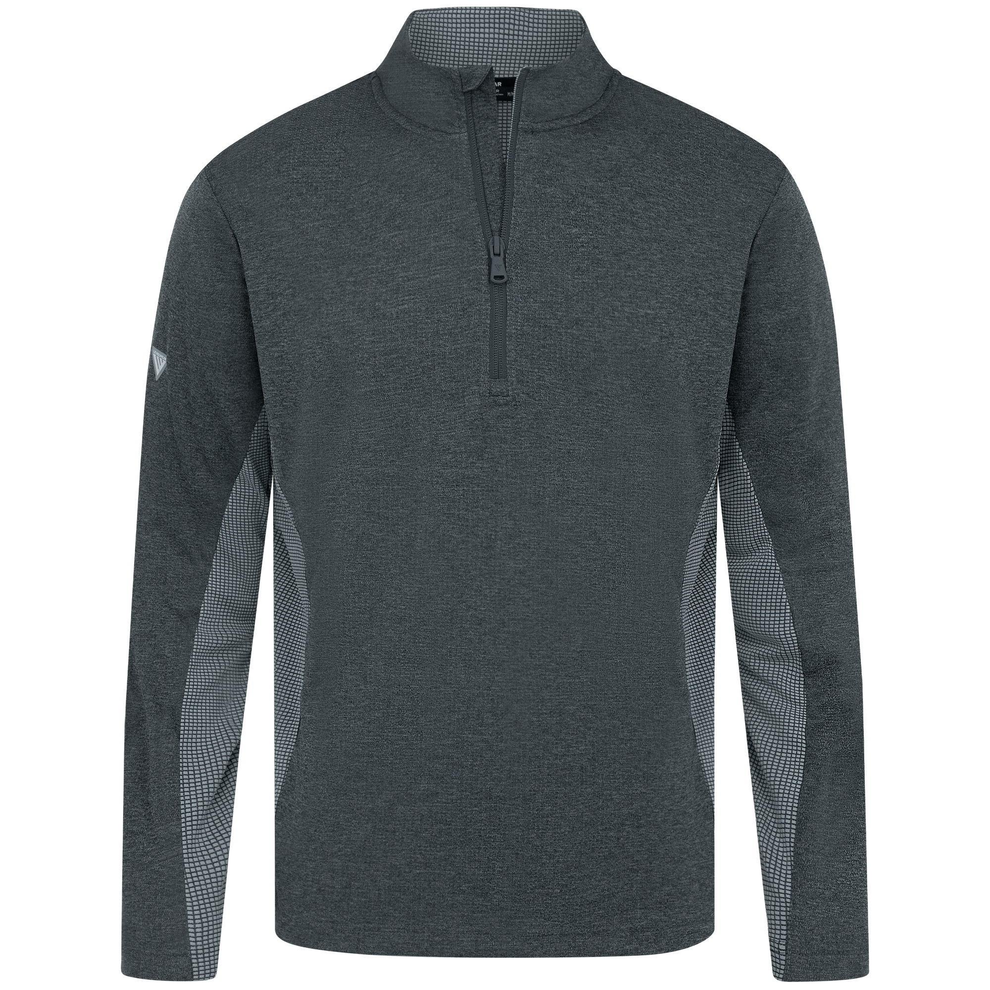 Perfect for golfers and active individuals alike, the men's Waffle midlayer combines technical performance with stylish details. This quarter-zip piece is crafted entirely from 100% polyester, featuring a textured waffle fabric that not only looks great but also provides moisture-wicking capabilities to keep you dry and comfortable during vigorous activities. The design includes forward shoulder seams for better mobility and a stand-up collar that adds a modern touch while offering additional coverage. Reversed self-contrast on the underarm panels, side panels, and collar facing adds a subtle yet distinct aesthetic, making this midlayer a versatile option for wearing both on the golf course and as part of a casual activewear ensemble.