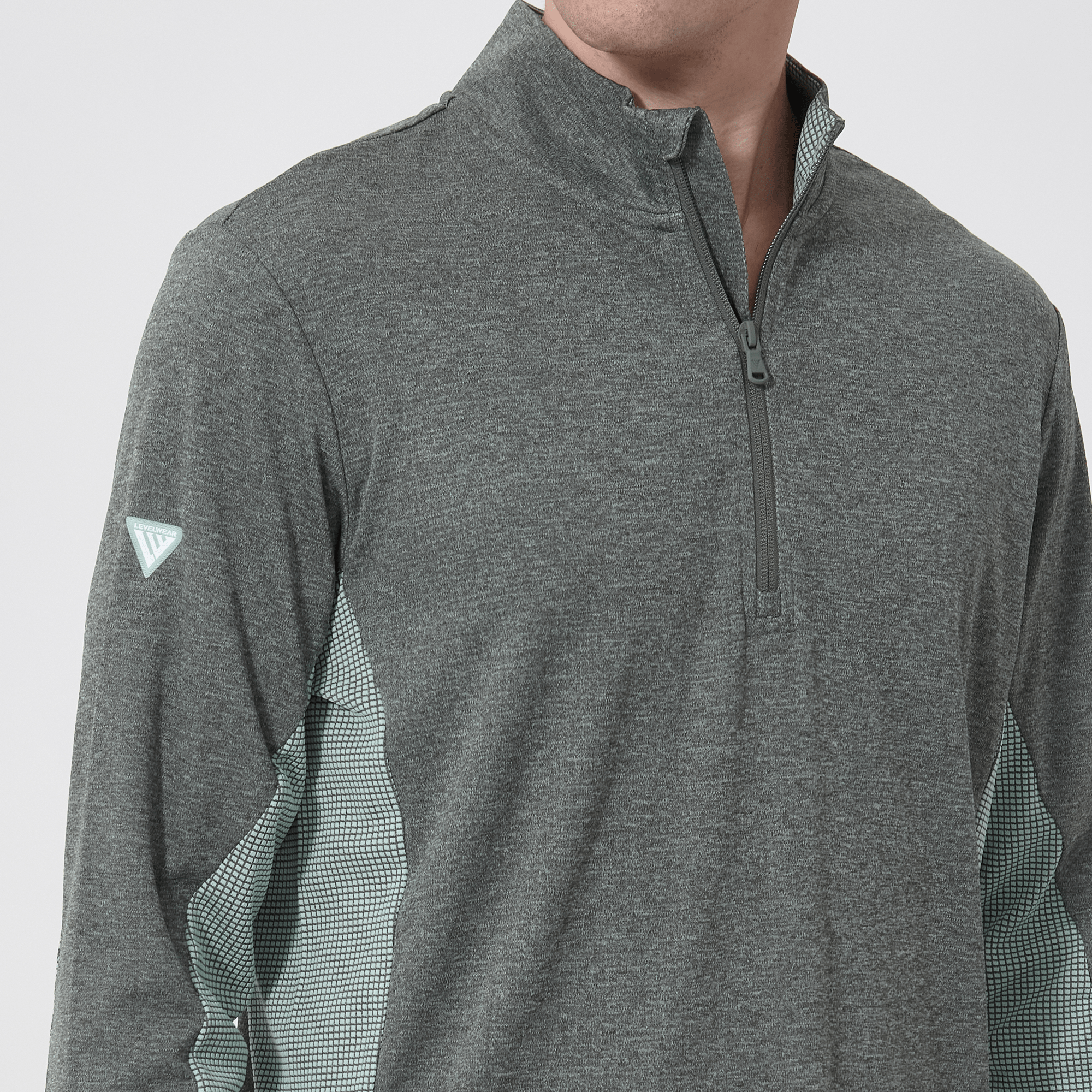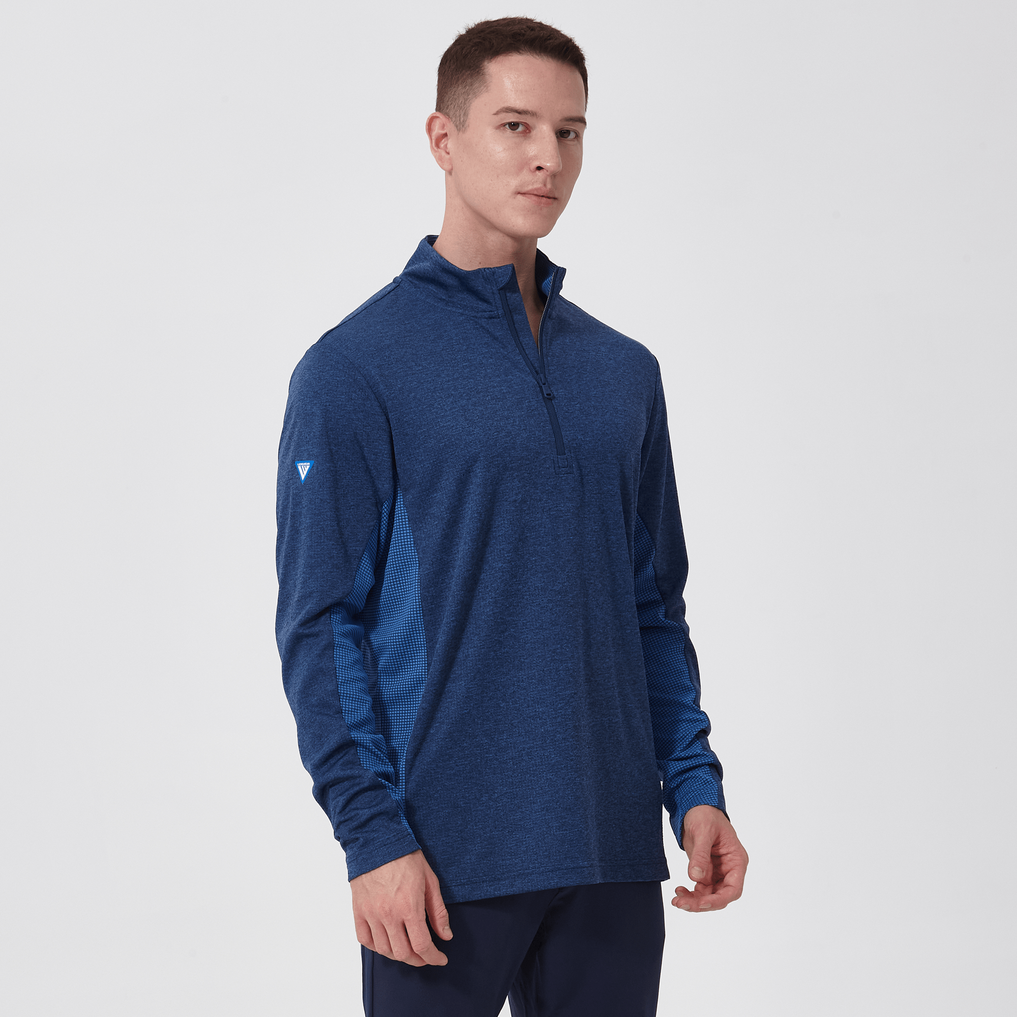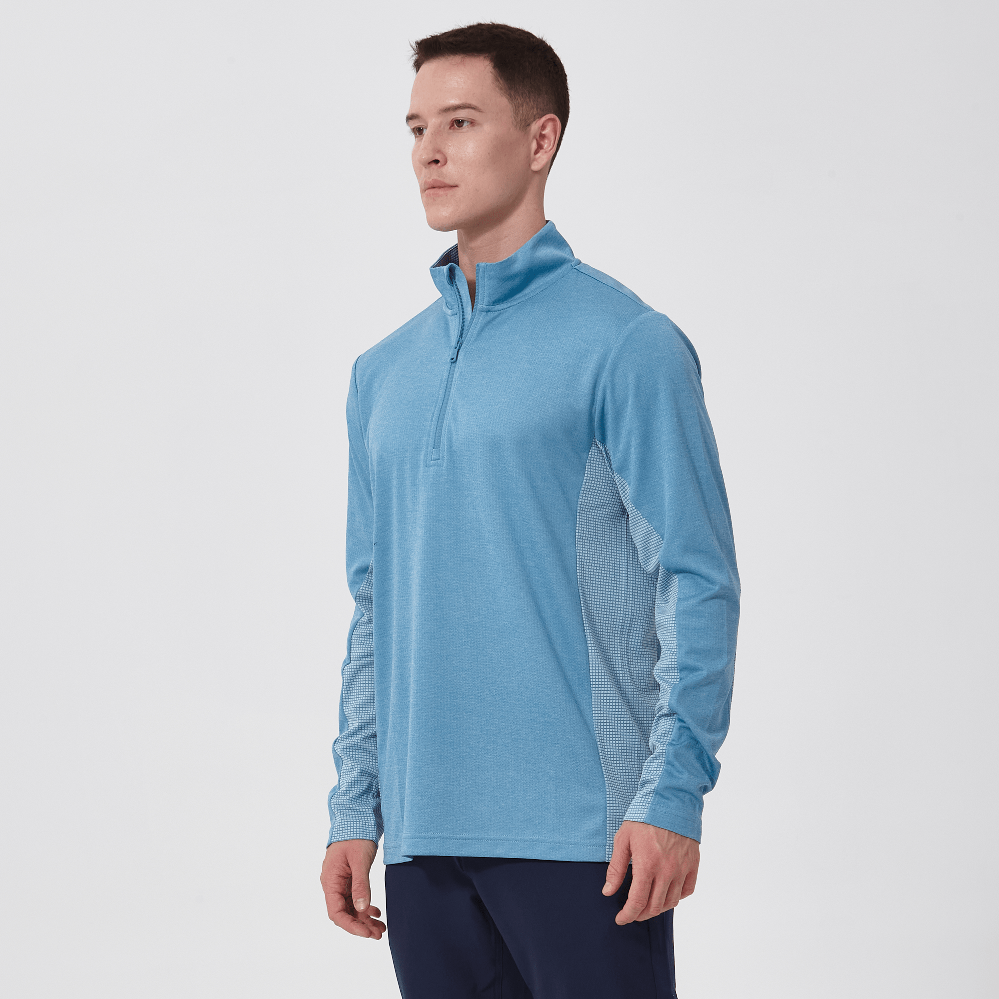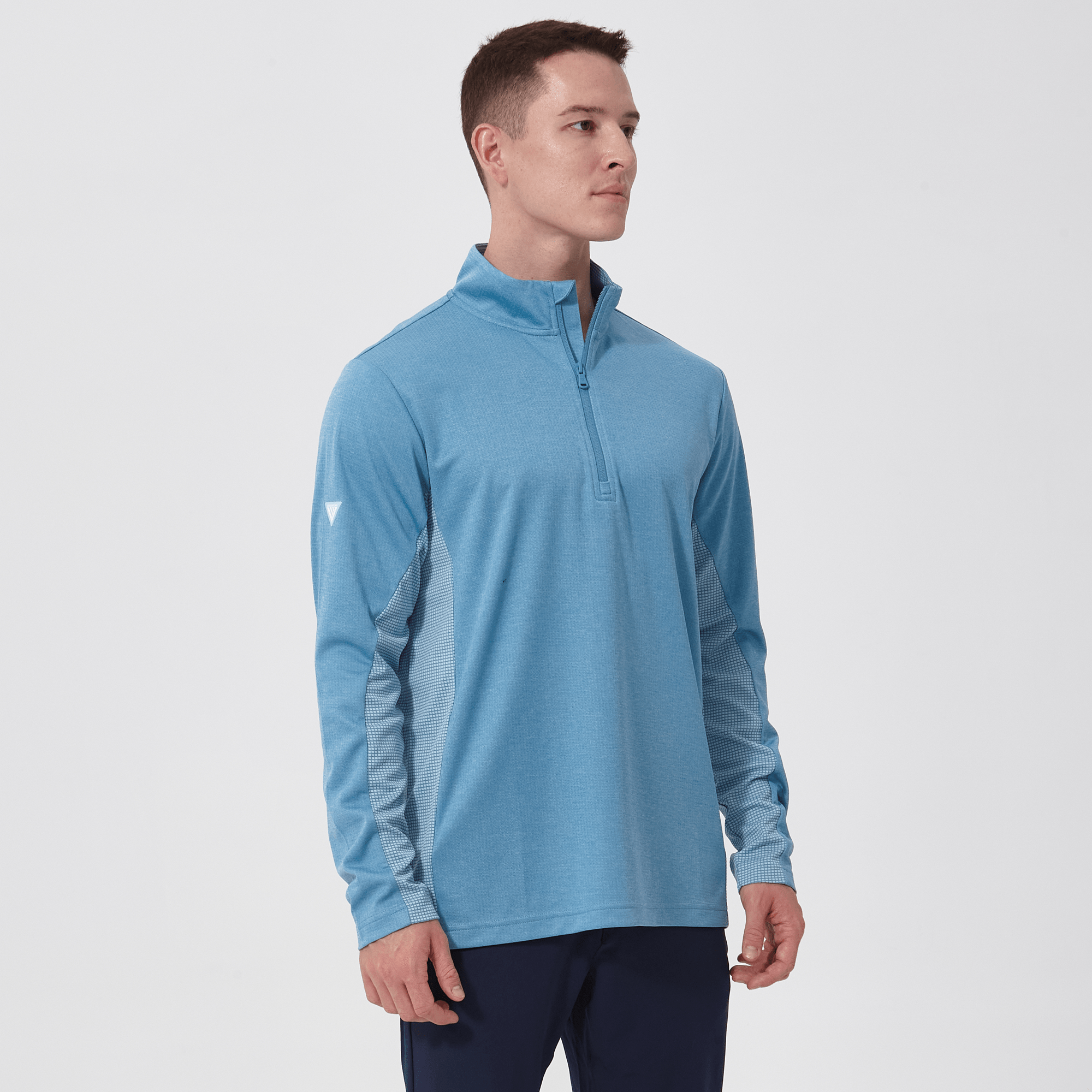 Perfect for golfers and active individuals alike, the men's Waffle midlayer combines technical performance with stylish details. This quarter-zip piece is crafted entirely from 100% polyester, featuring a textured waffle fabric that not only looks great but also provides moisture-wicking capabilities to keep you dry and comfortable during vigorous activities. The design includes forward shoulder seams for better mobility and a stand-up collar that adds a modern touch while offering additional coverage. Reversed self-contrast on the underarm panels, side panels, and collar facing adds a subtle yet distinct aesthetic, making this midlayer a versatile option for wearing both on the golf course and as part of a casual activewear ensemble.