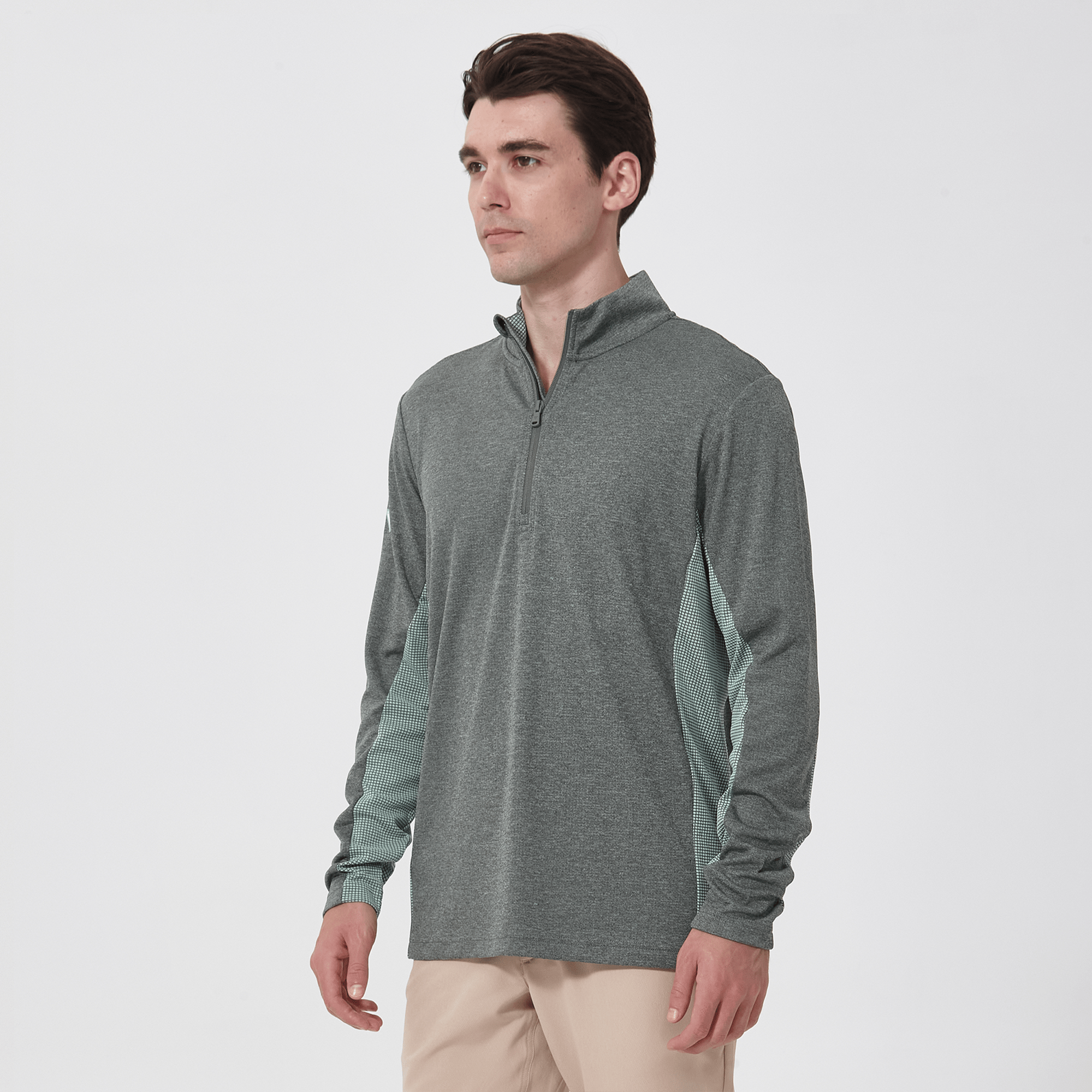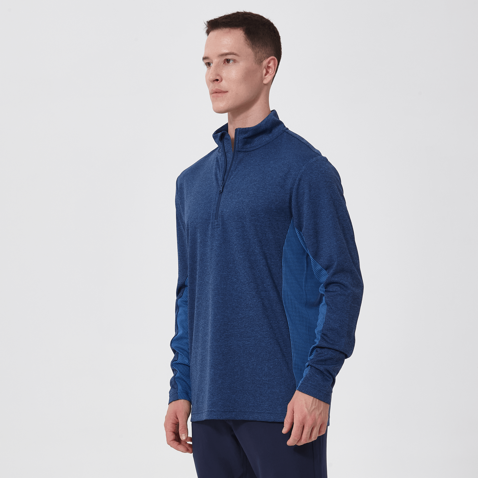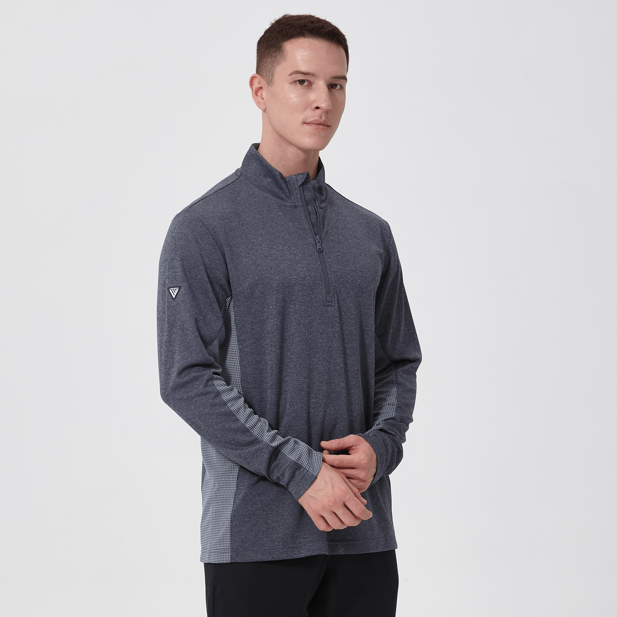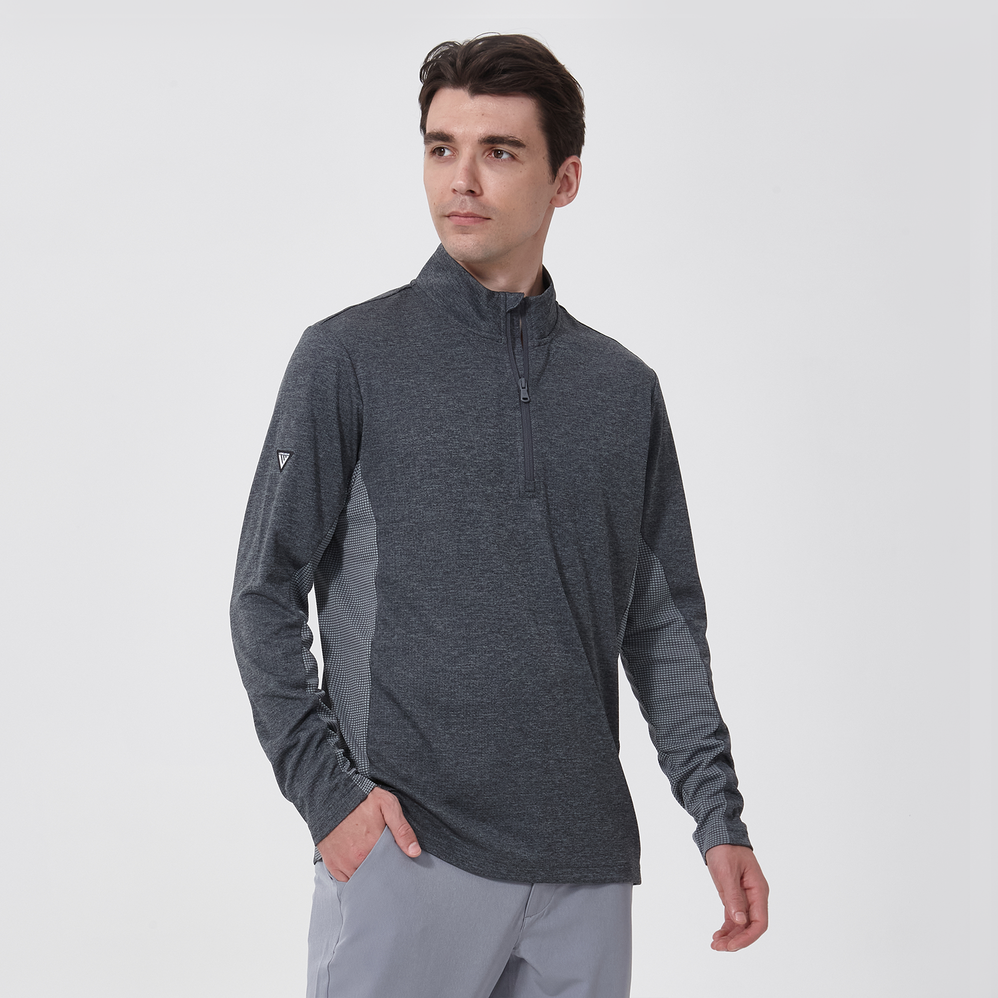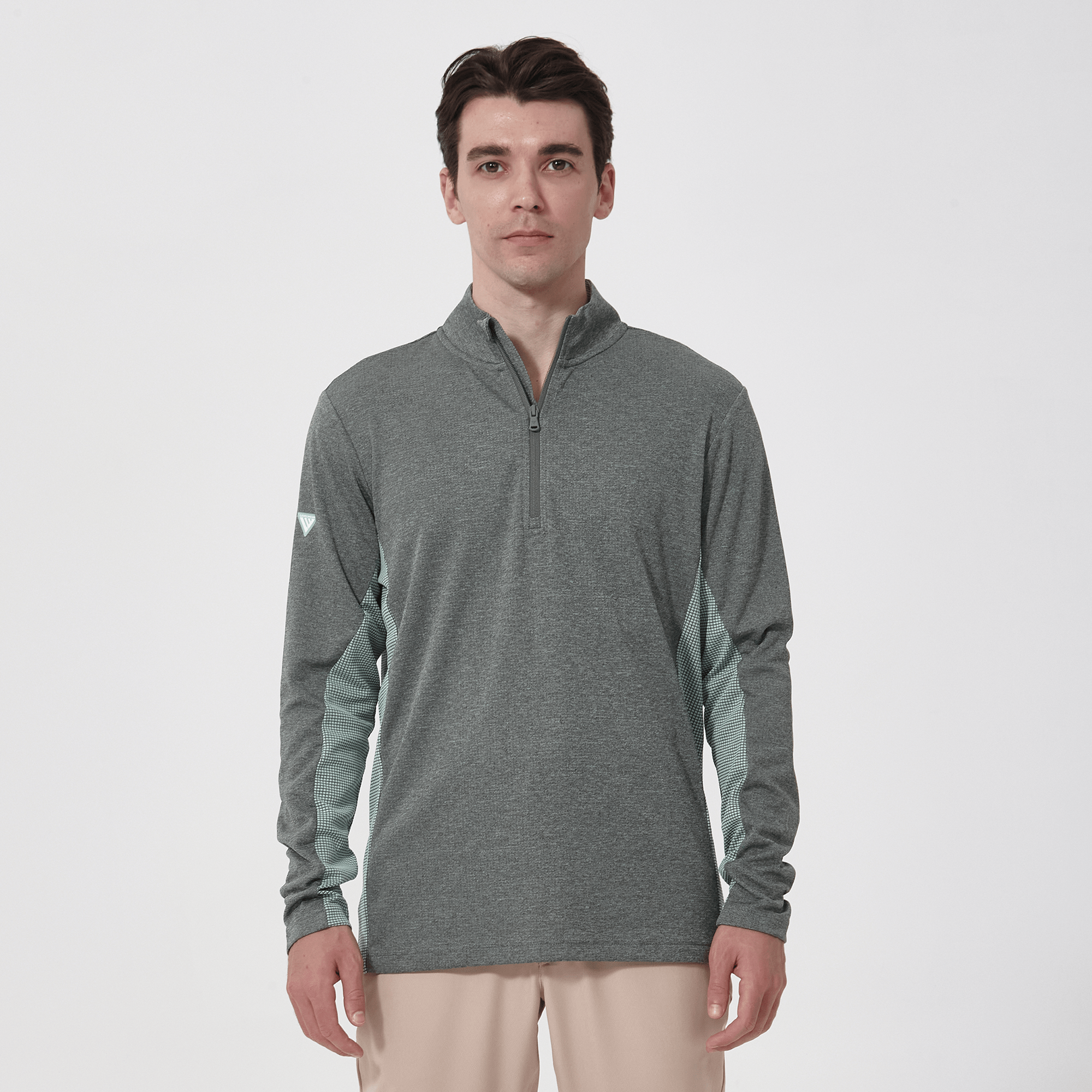 Perfect for golfers and active individuals alike, the men's Waffle midlayer combines technical performance with stylish details. This quarter-zip piece is crafted entirely from 100% polyester, featuring a textured waffle fabric that not only looks great but also provides moisture-wicking capabilities to keep you dry and comfortable during vigorous activities. The design includes forward shoulder seams for better mobility and a stand-up collar that adds a modern touch while offering additional coverage. Reversed self-contrast on the underarm panels, side panels, and collar facing adds a subtle yet distinct aesthetic, making this midlayer a versatile option for wearing both on the golf course and as part of a casual activewear ensemble.