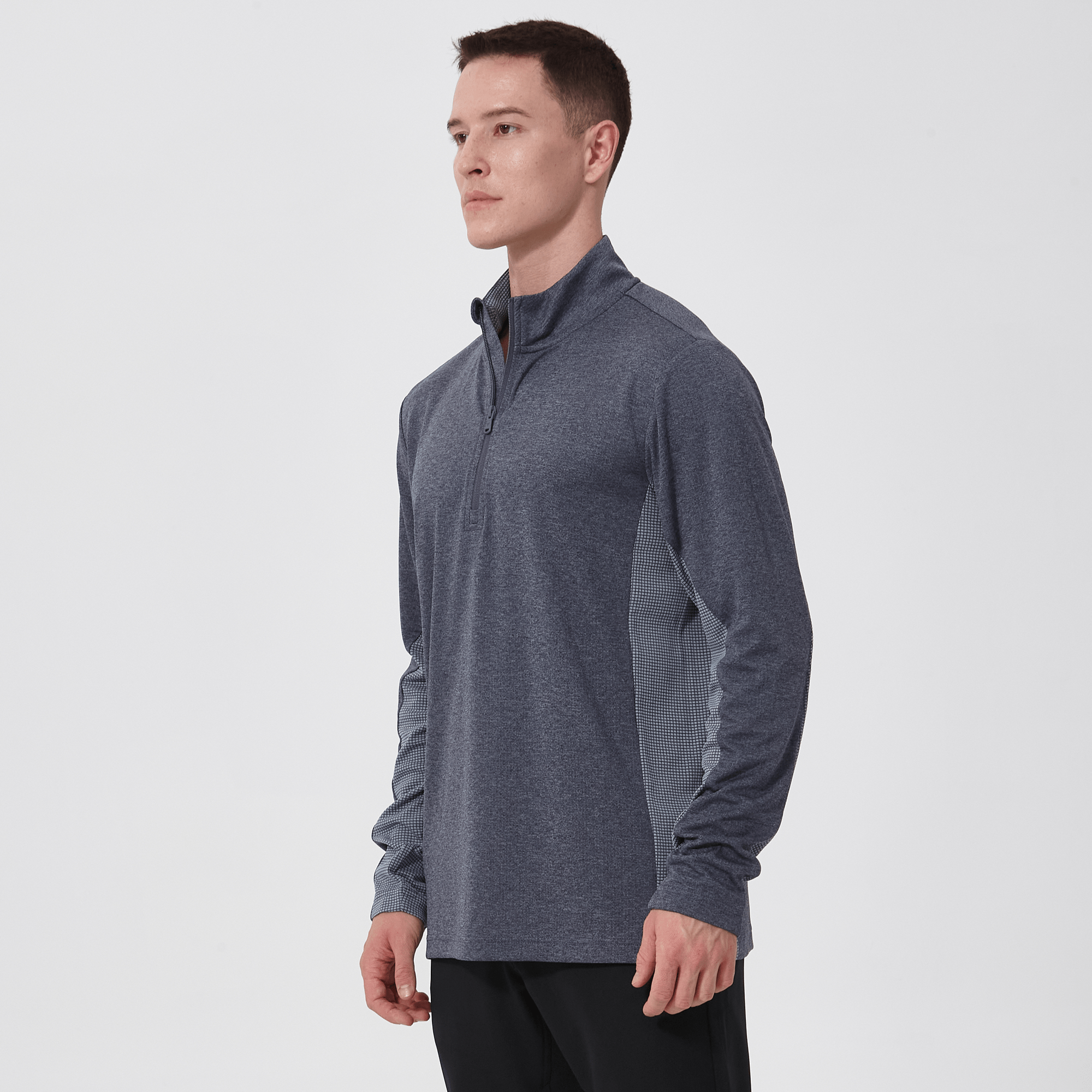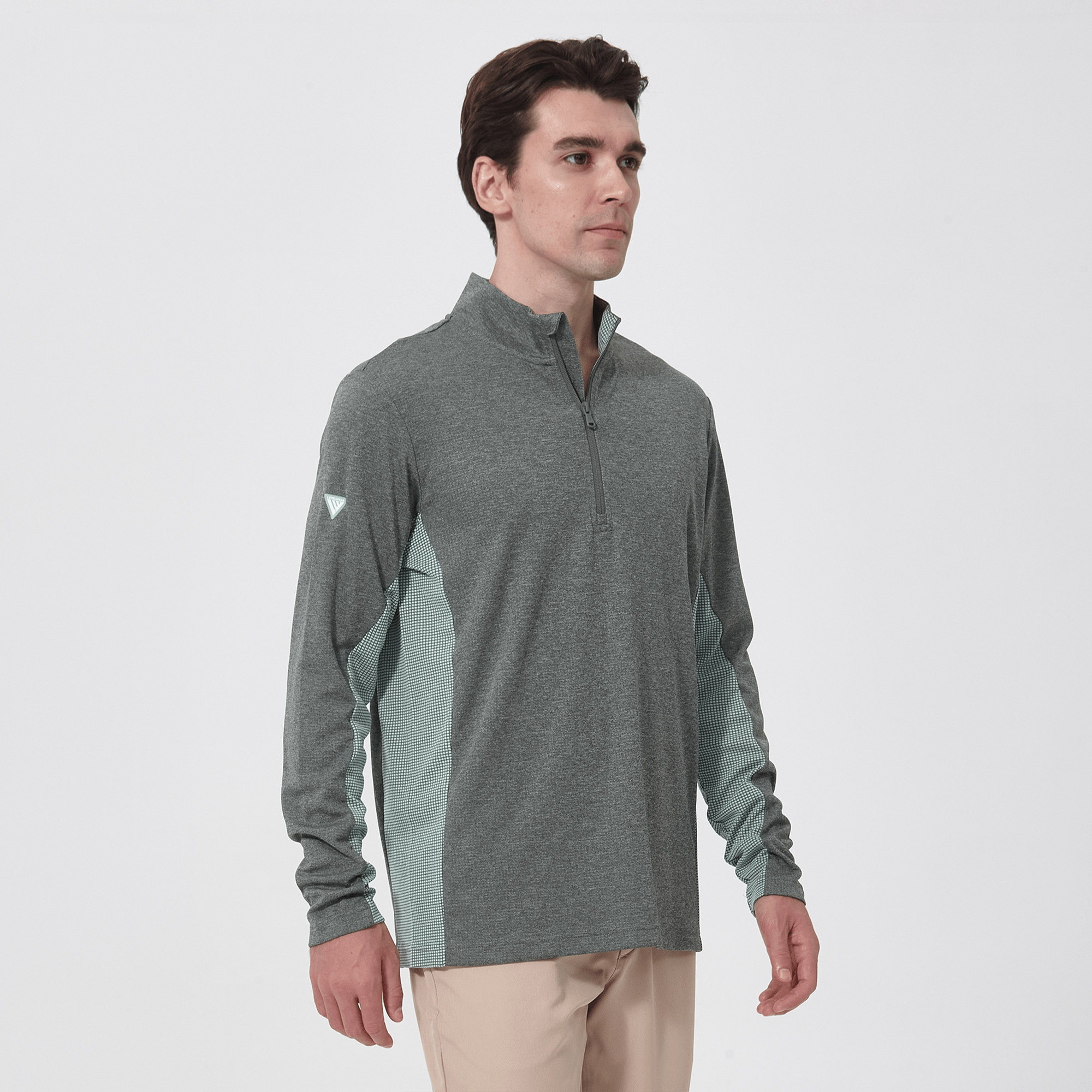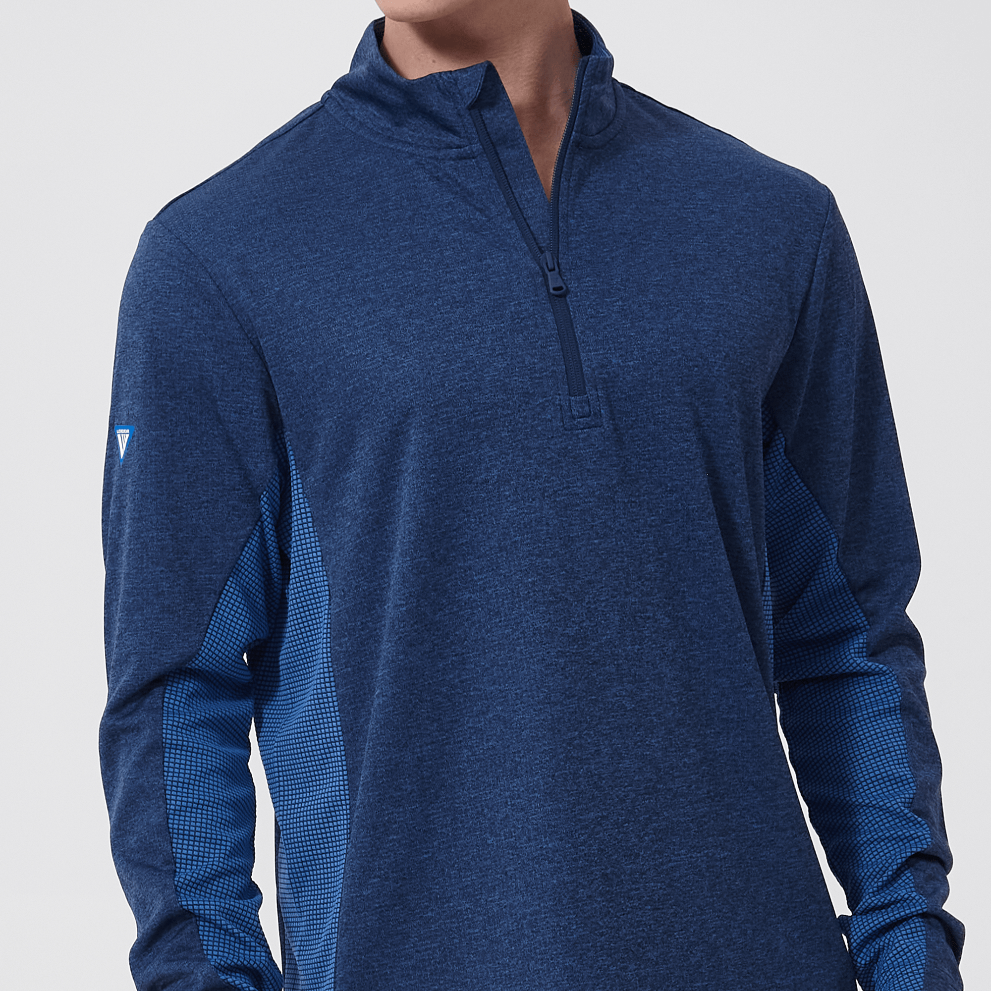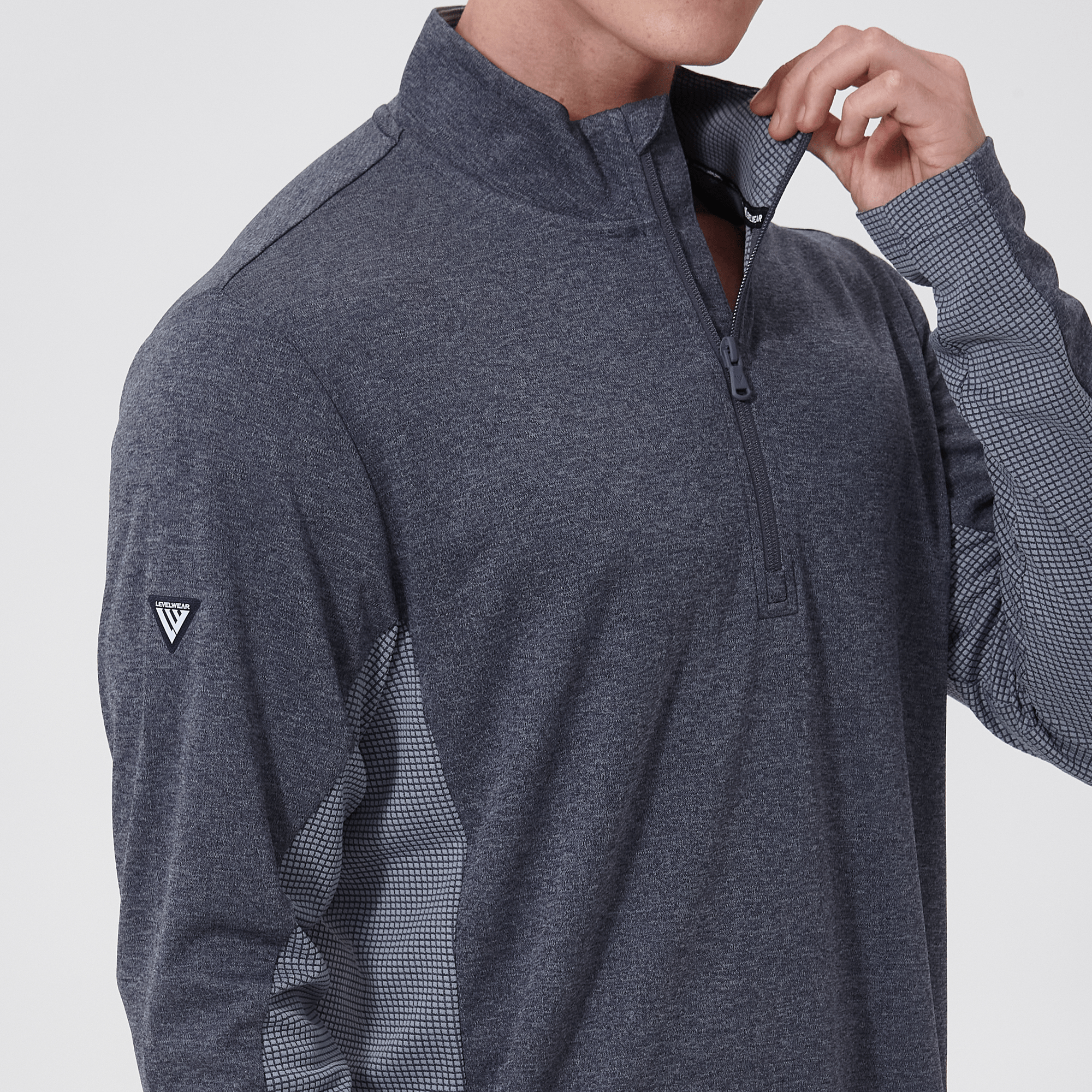 Perfect for golfers and active individuals alike, the men's Waffle midlayer combines technical performance with stylish details. This quarter-zip piece is crafted entirely from 100% polyester, featuring a textured waffle fabric that not only looks great but also provides moisture-wicking capabilities to keep you dry and comfortable during vigorous activities. The design includes forward shoulder seams for better mobility and a stand-up collar that adds a modern touch while offering additional coverage. Reversed self-contrast on the underarm panels, side panels, and collar facing adds a subtle yet distinct aesthetic, making this midlayer a versatile option for wearing both on the golf course and as part of a casual activewear ensemble.