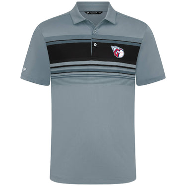 Elevate your game with the Onward men's polo, designed for avid golfers. This shirt features UPF50+ protection and moisture-wicking technology to keep you dry and shielded on sunny days. Its anti-bacterial properties ensure lasting freshness during play. The stylish stripe print across the front chest and a neat self-fabric collar with a built-in collar stay enhance its sophisticated and classic appearance. Tailored with a high-low hem and side slits for greater mobility, this polo is made from 92% recycled polyester and 8% spandex, blending eco-conscious fashion with functional design.
