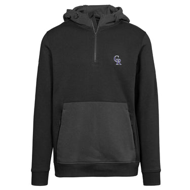Step out in style with the men's Chicane hoodie, a dynamic blend of comfort and modern design, perfect for both athletic and casual wear. This quarter-zip hoodie is made from a soft and durable blend of 80% cotton and 20% polyester, ensuring long-lasting wear and easy care. Featuring a vislon zipper that provides a smooth and reliable closure, this hoodie also boasts contrasting elements on the hood, top back panel, and kangaroo pocket for a sharp, eye-catching look. An adjustable hood and a secured zipper pocket enhance functionality, making it perfect for securing essentials on the go. Finished with ribbed bottom hem and cuffs for a snug fit, the Chicane hoodie is your go-to for staying cozy and stylish in cooler weather.
